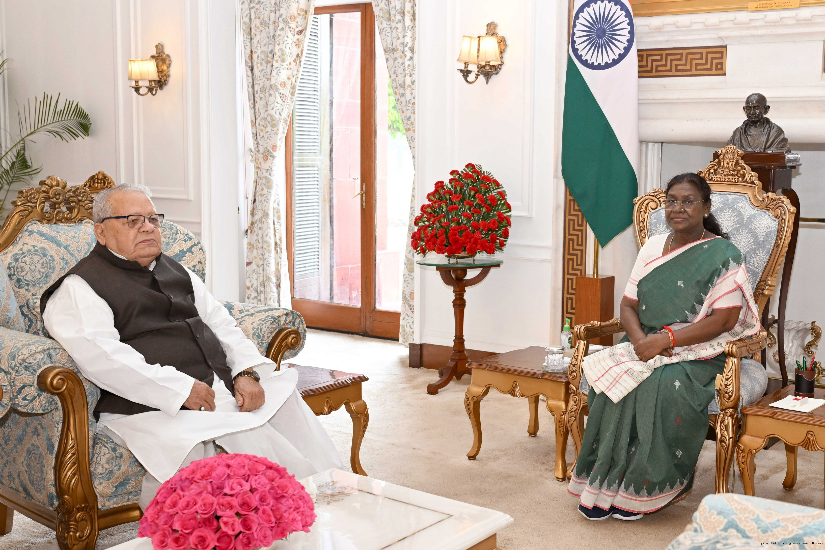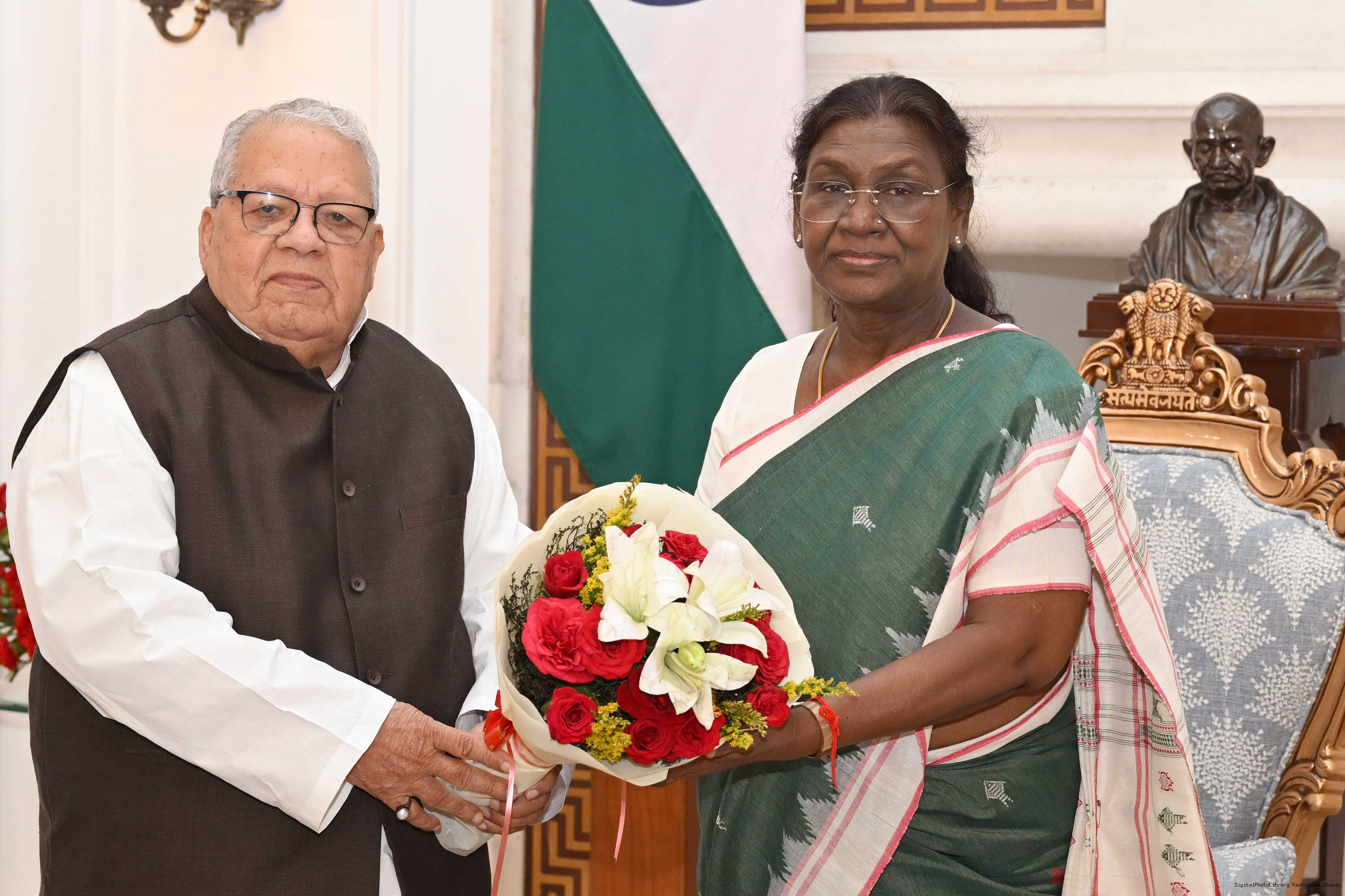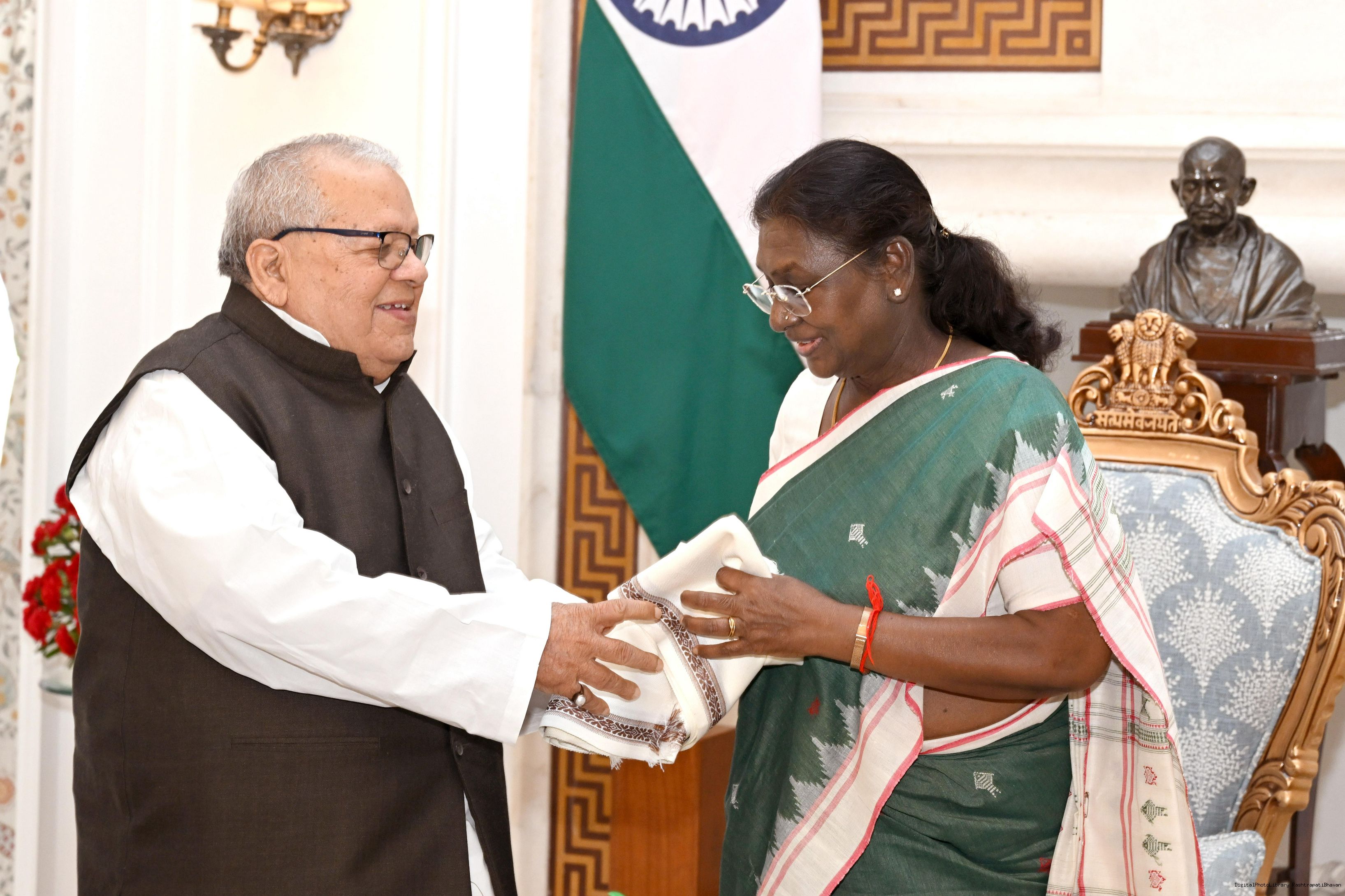 | Caption: | Shri Kalraj Mishra, Former Governor of Rajasthan and Himachal Pradesh called on the President of India, Smt. Droupadi Murmu at Rashtrapati Bhavan on October 18, 2025. |