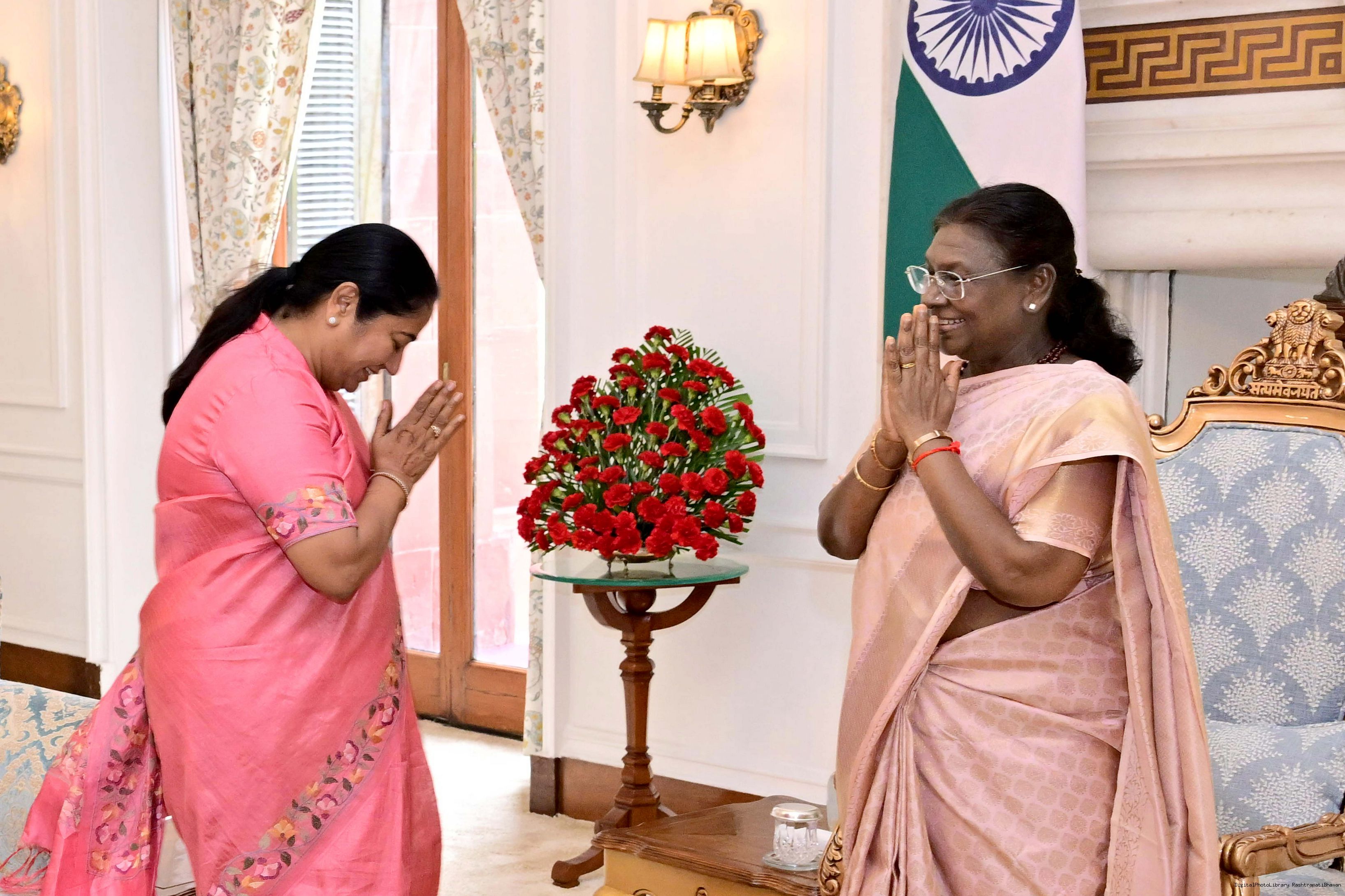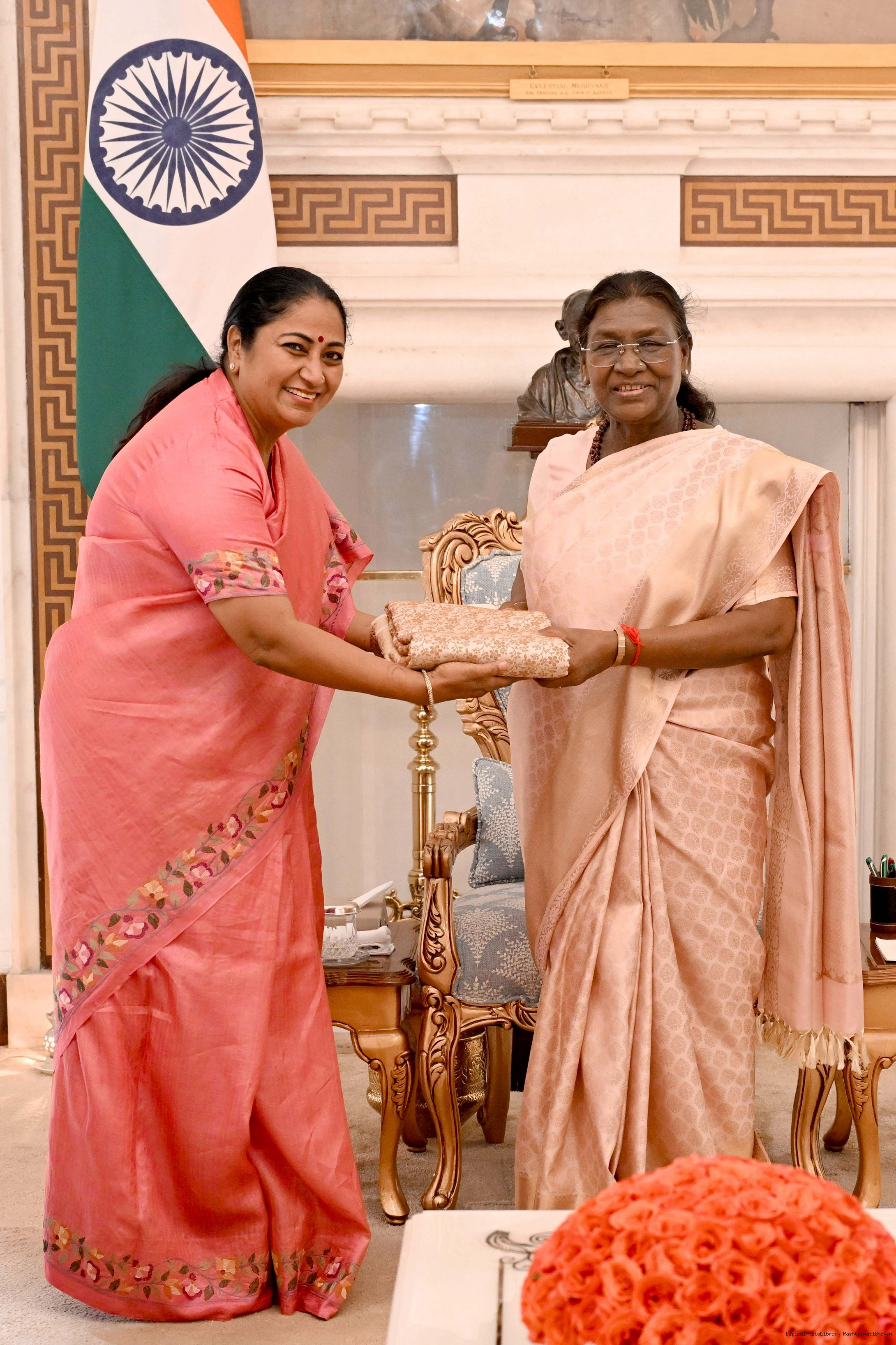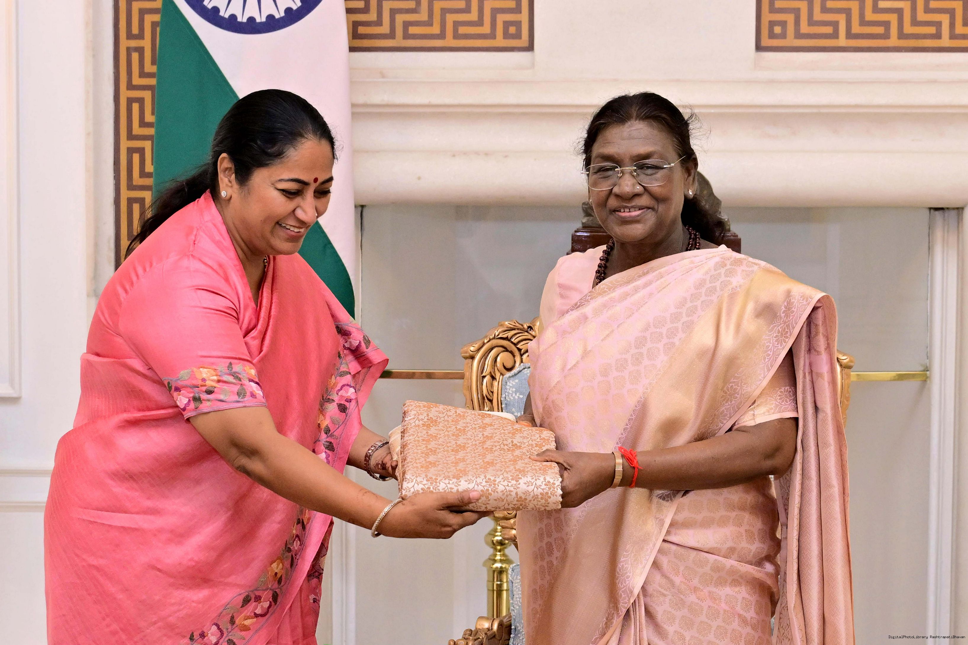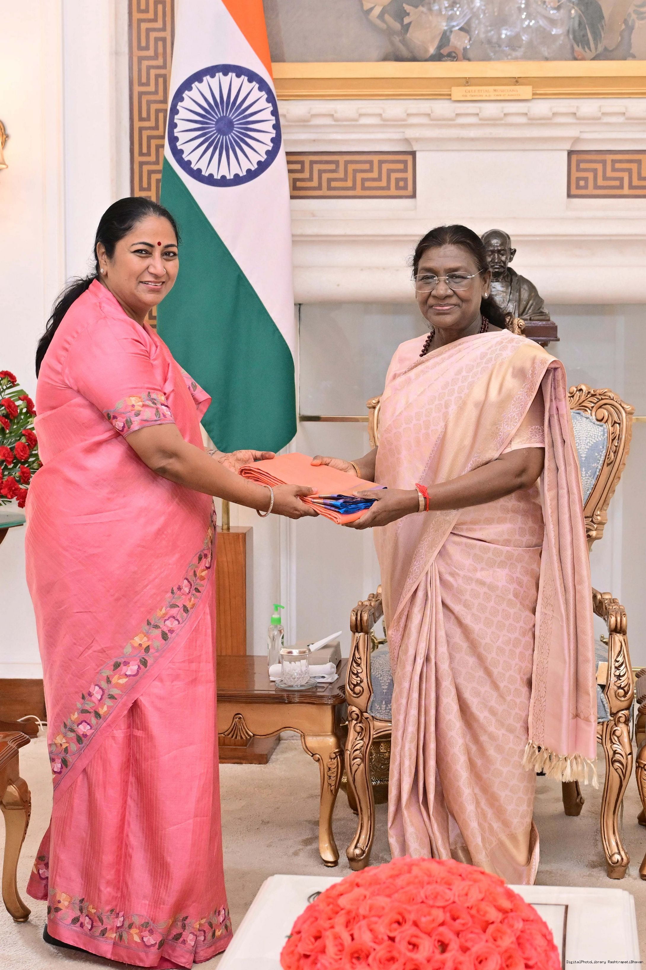 | Caption: | The Chief Minister of Delhi, Smt Rekha Gupta called on the President of India, Smt. Droupadi Murmu at Rashtrapati Bhavan and shared Diwali greetings on October 20, 2025. |