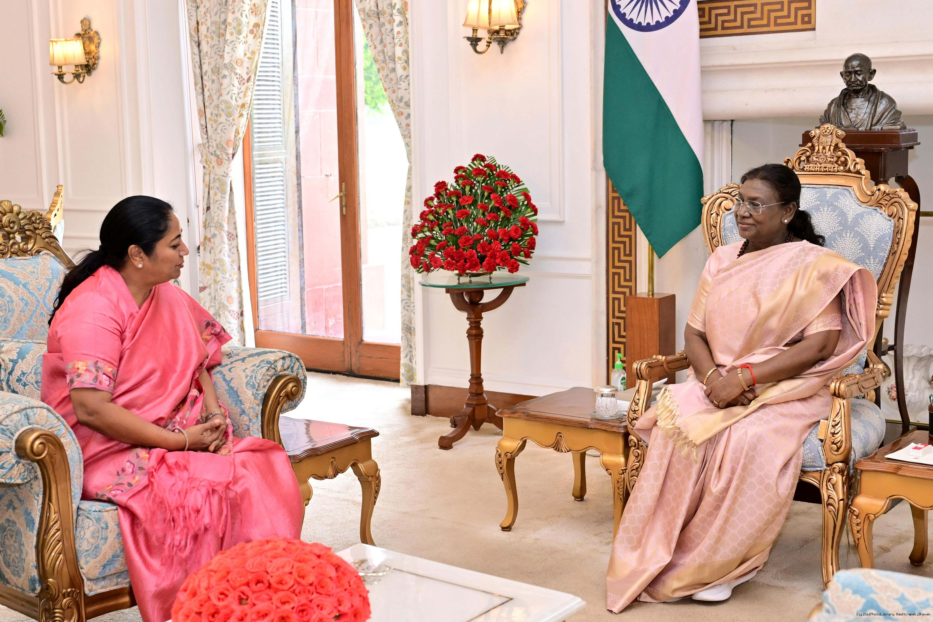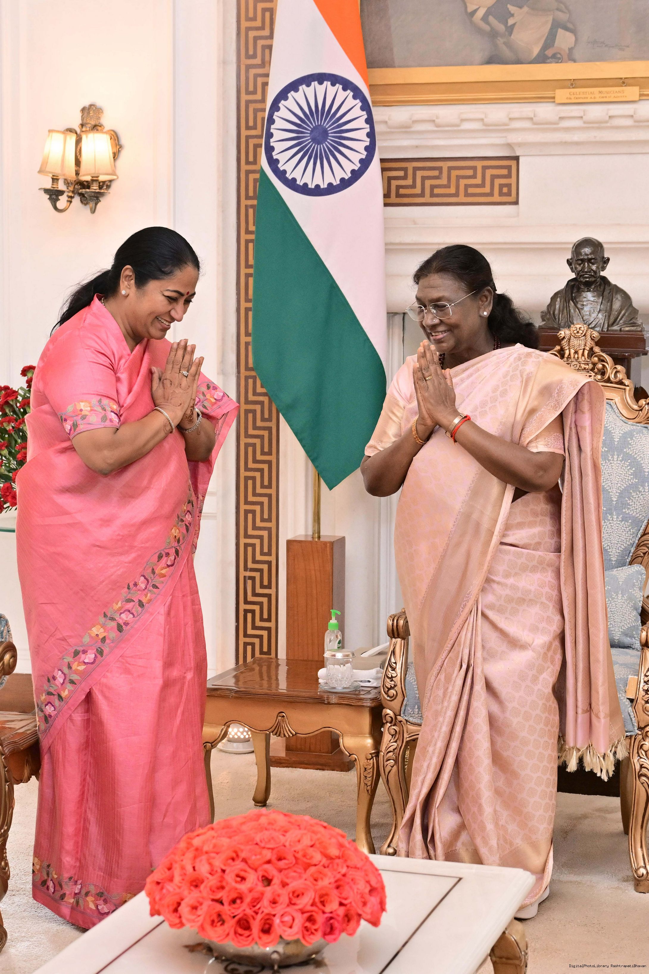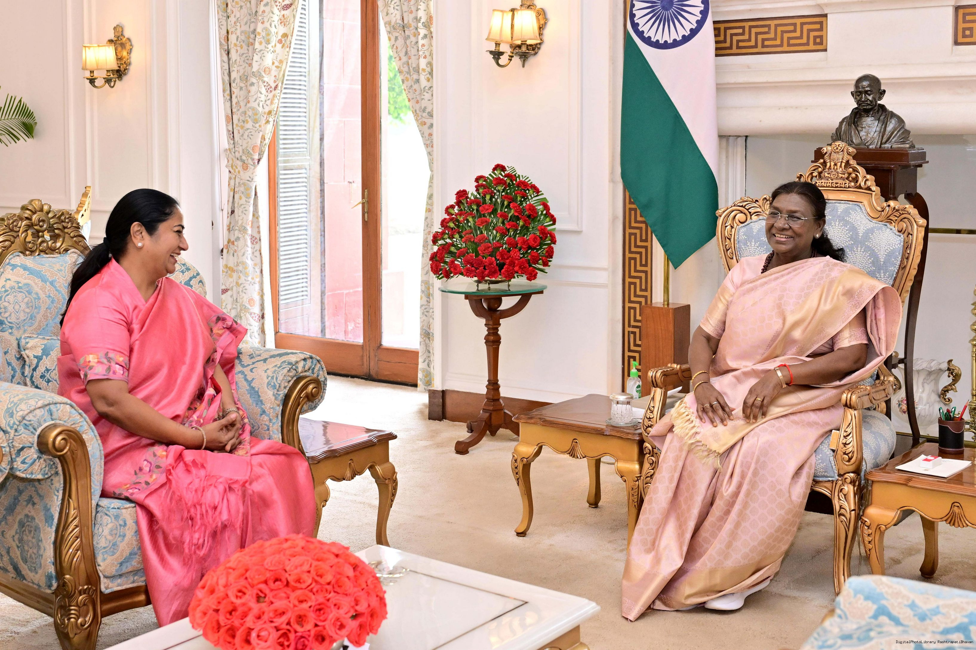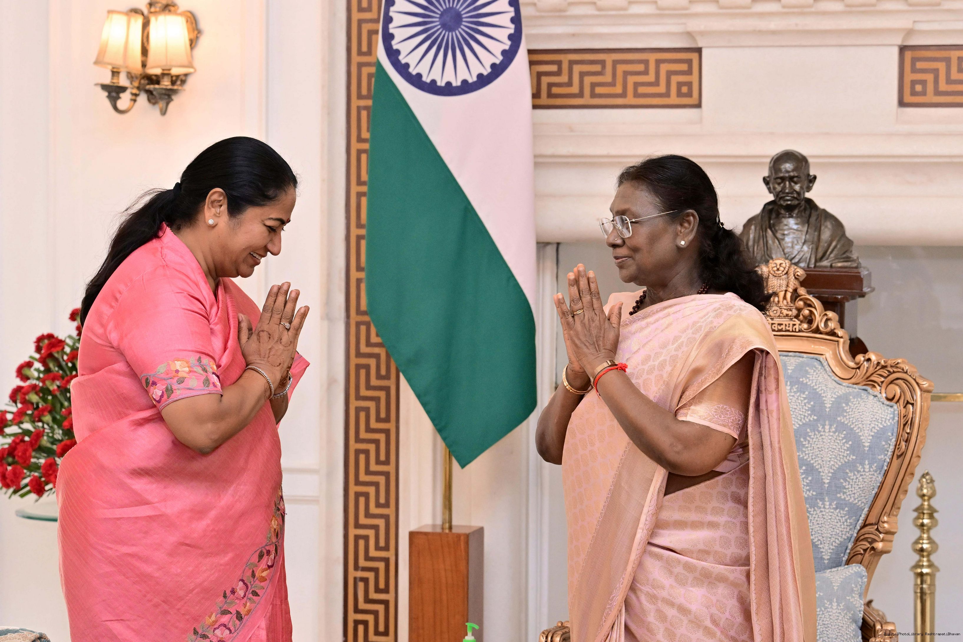 | Caption: | The Chief Minister of Delhi, Smt Rekha Gupta called on the President of India, Smt. Droupadi Murmu at Rashtrapati Bhavan and shared Diwali greetings on October 20, 2025. |
