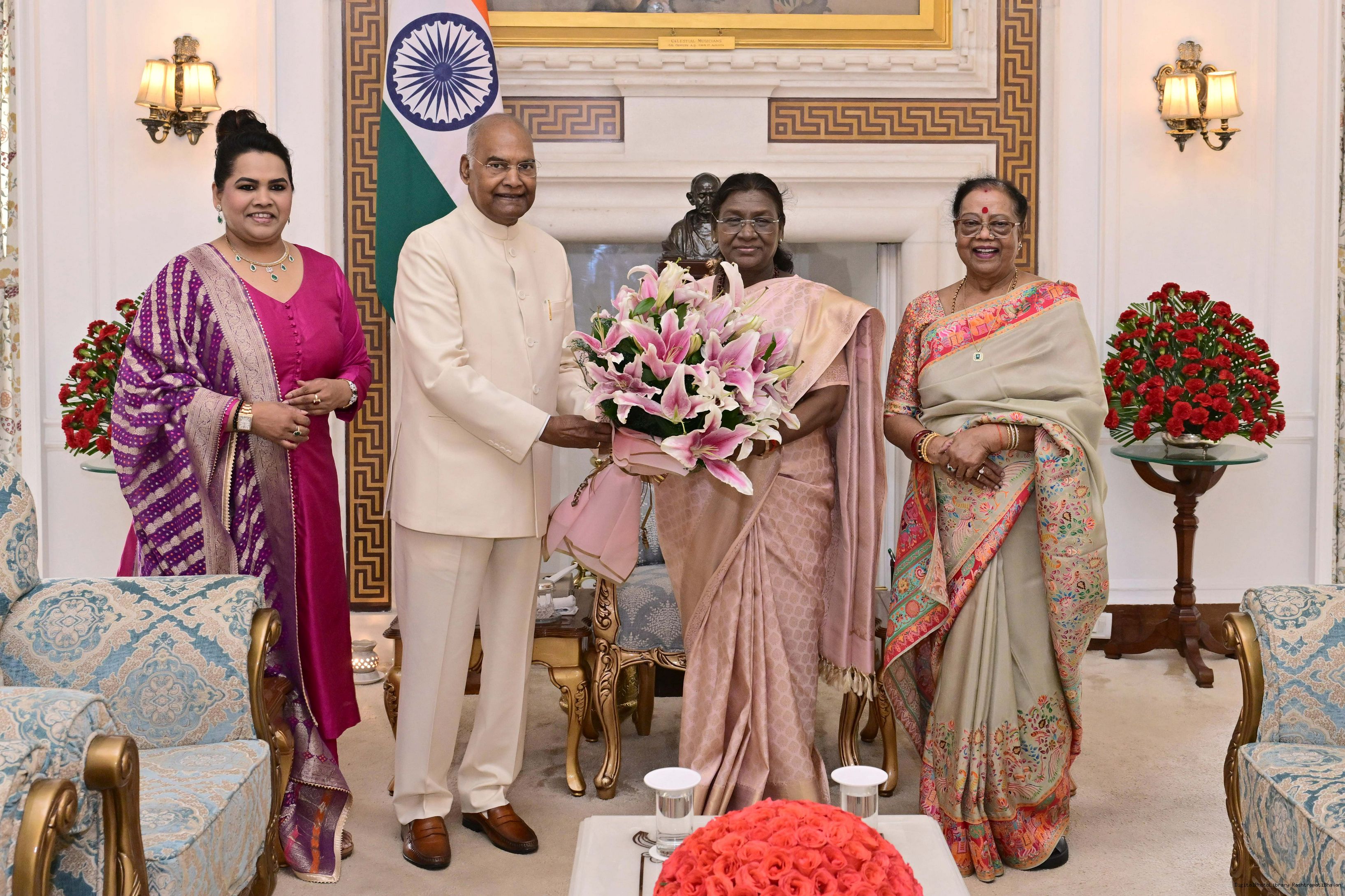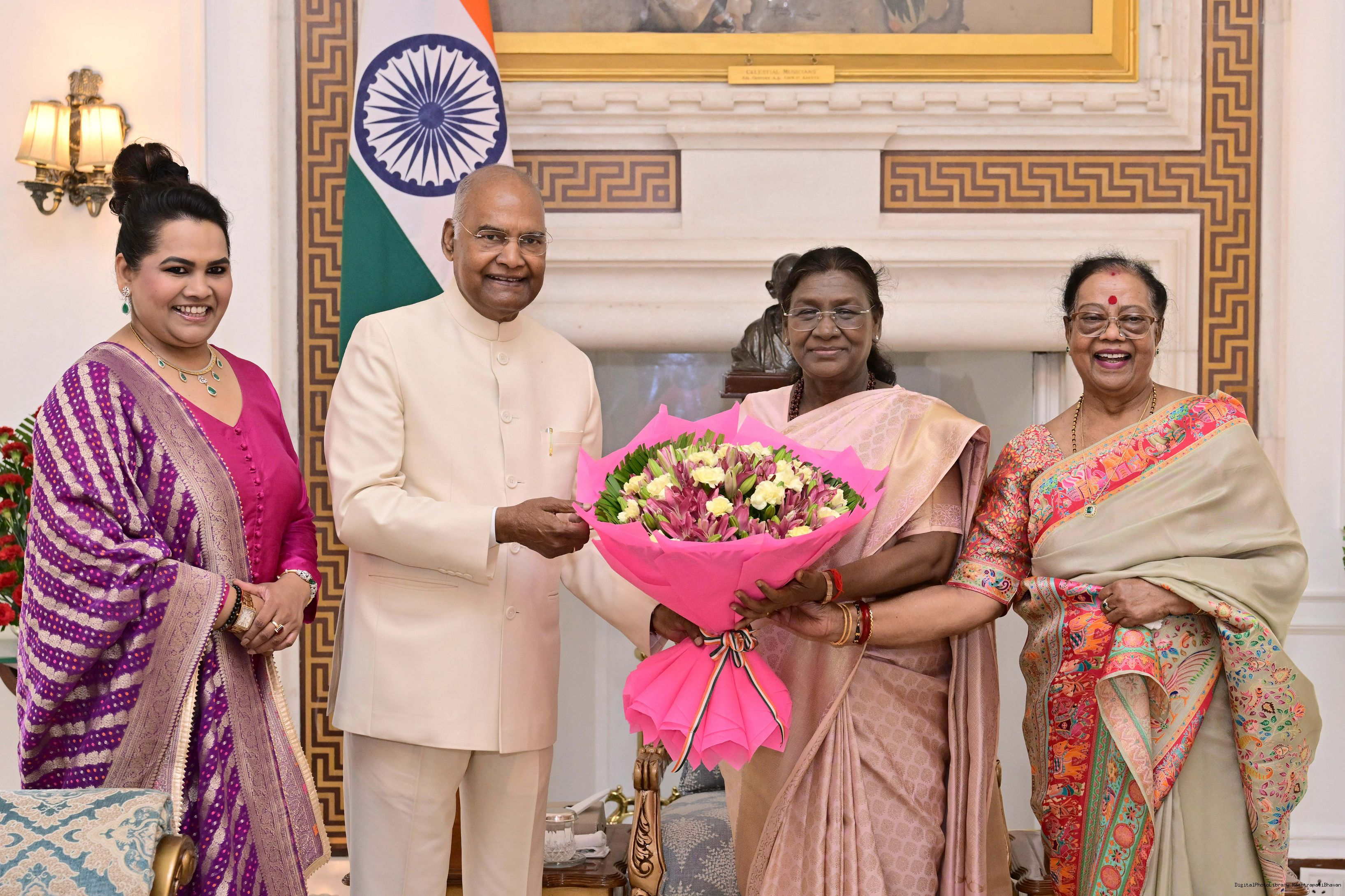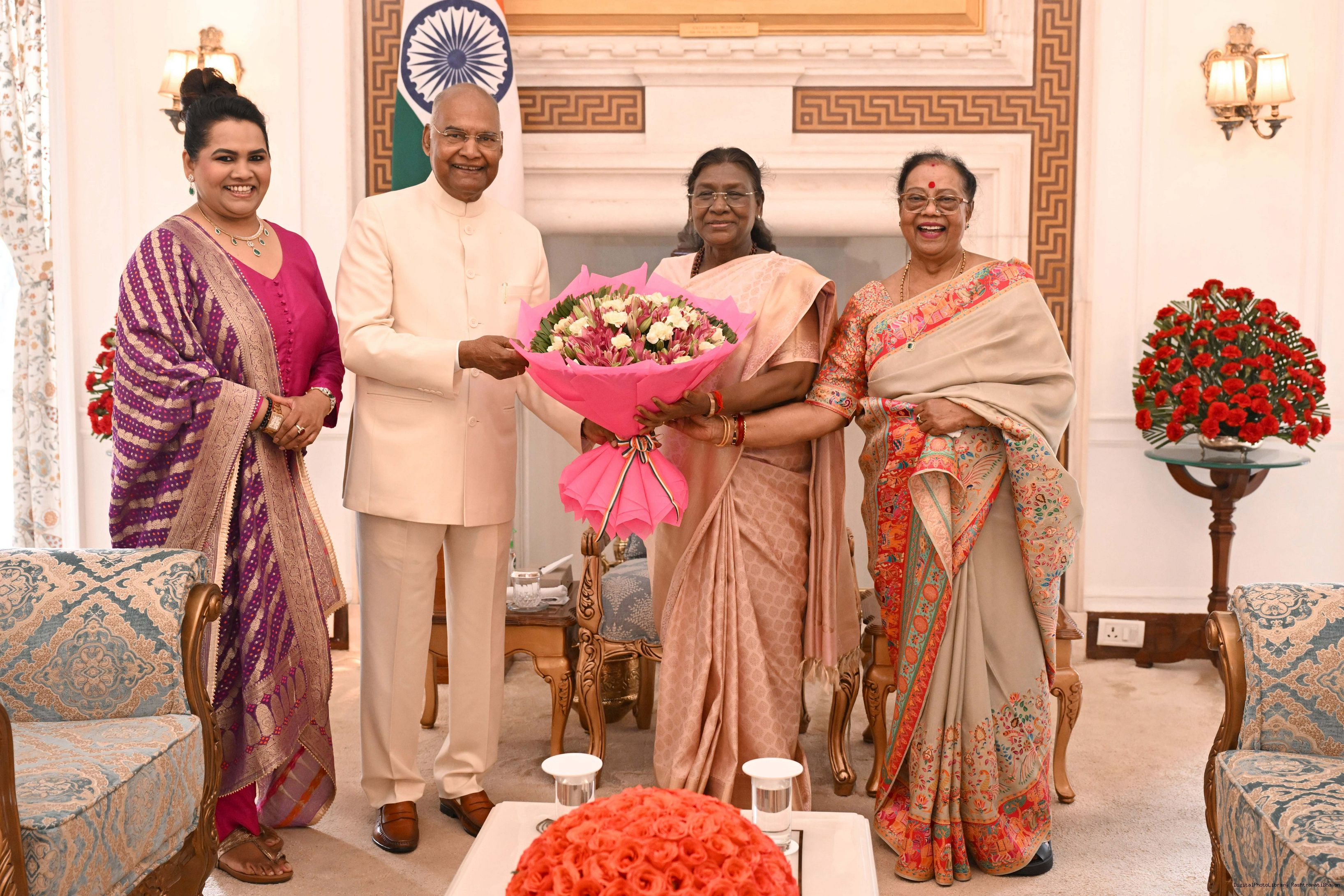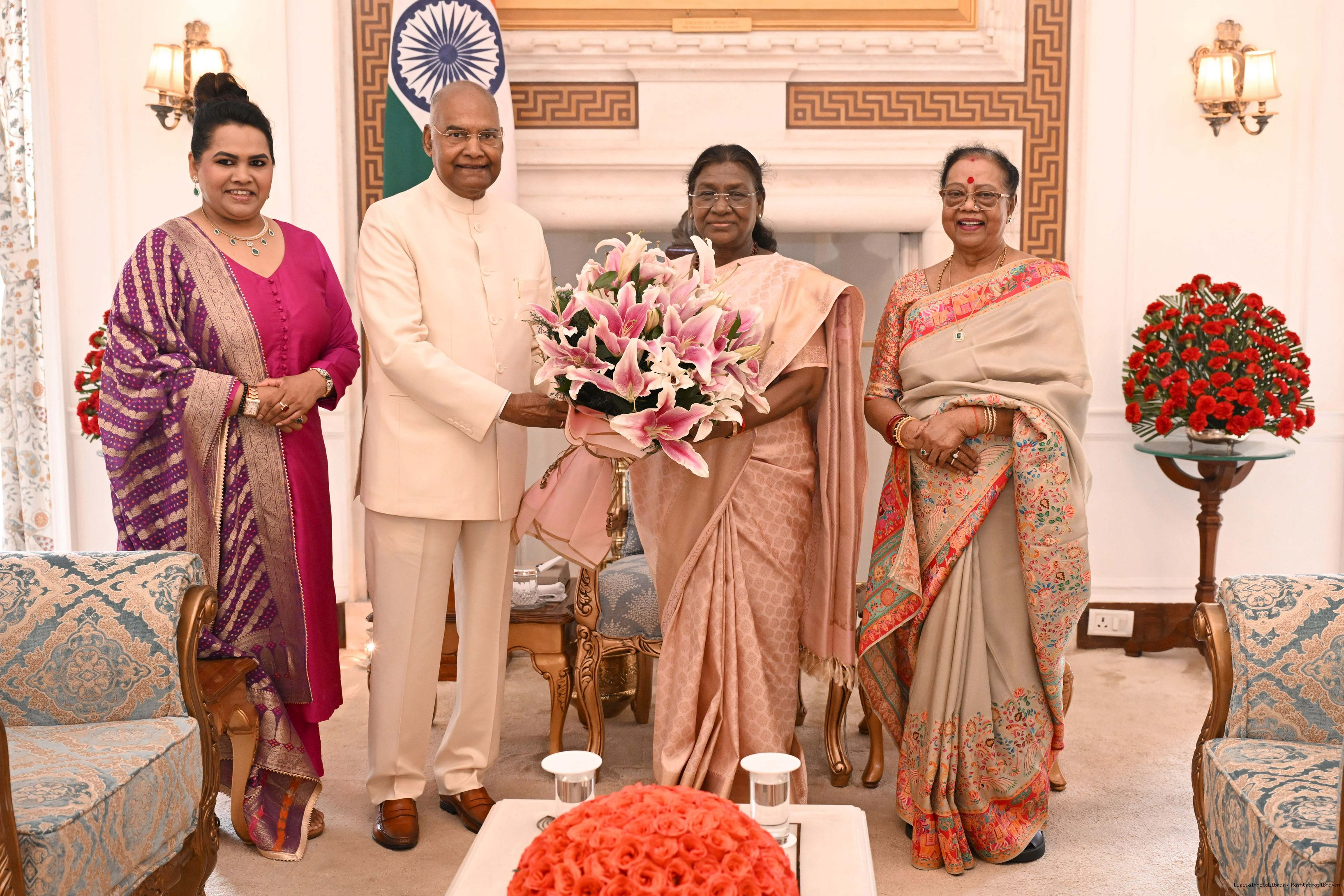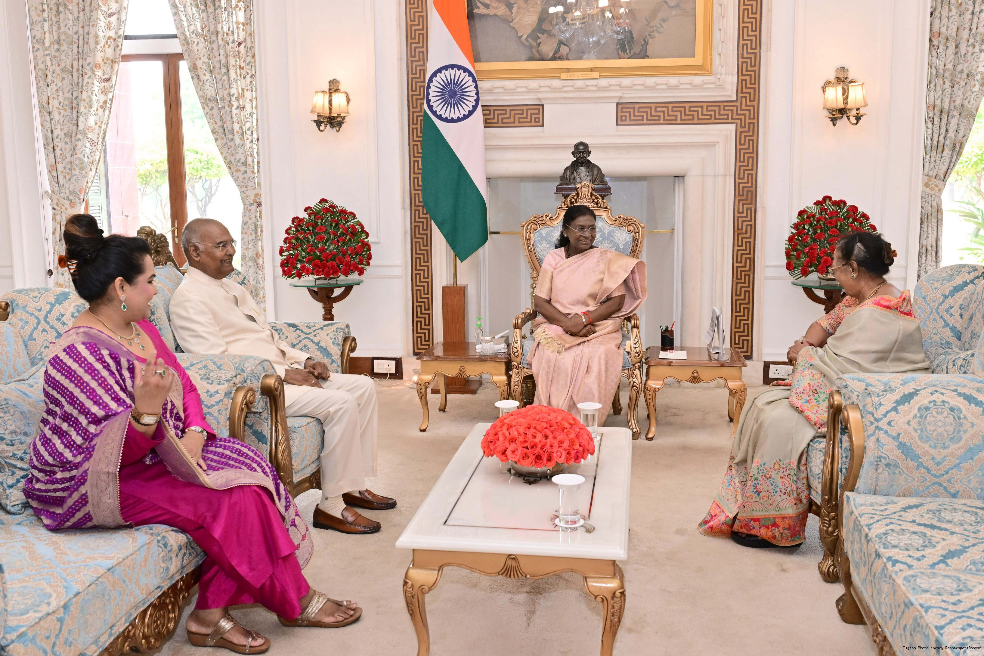 | Caption: | The Former President of India, Shri Ram Nath Kovind along with his family members called on the President of India, Smt. Droupadi Murmu and exchanged Diwali greetings on October 20, 2025. |