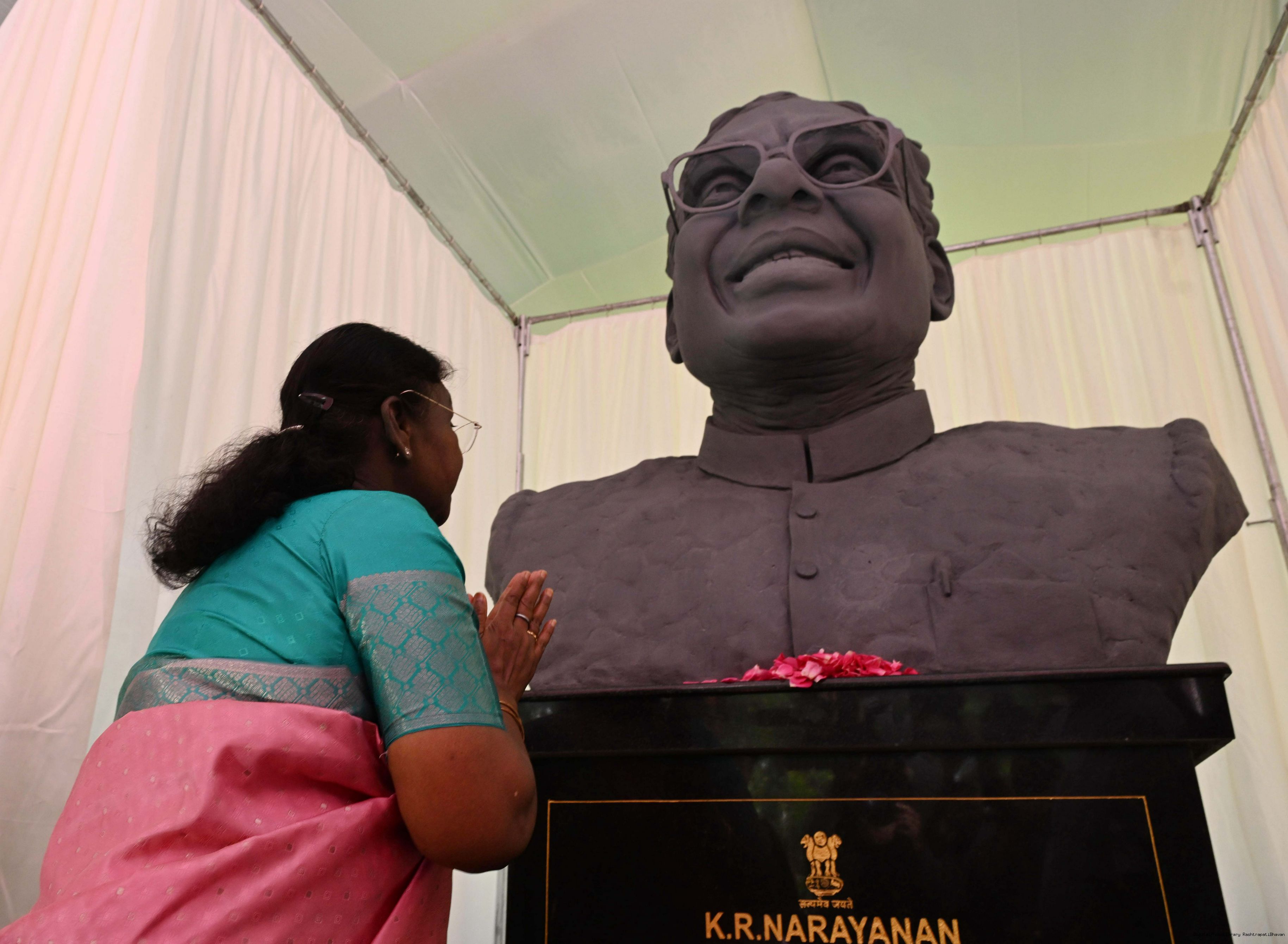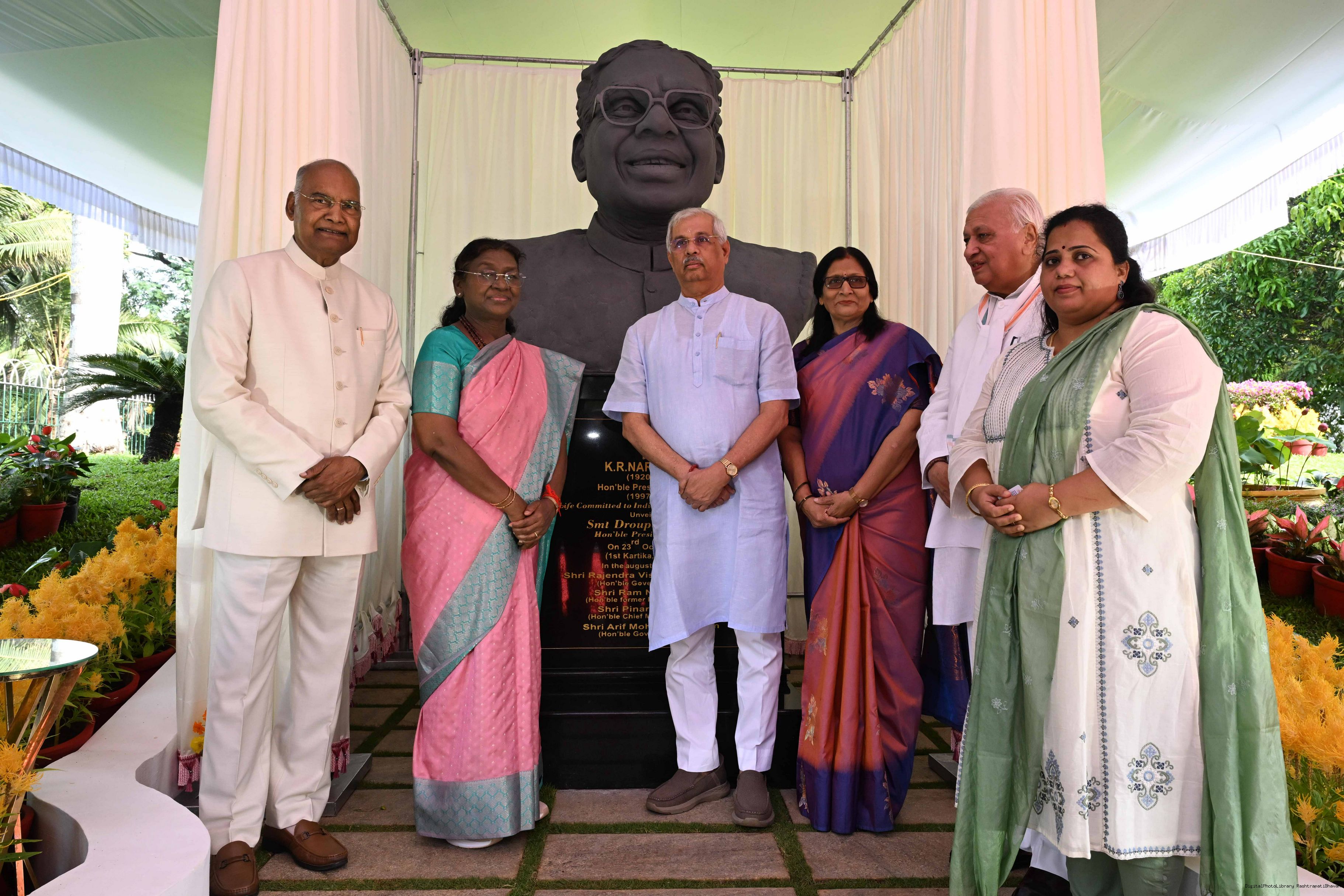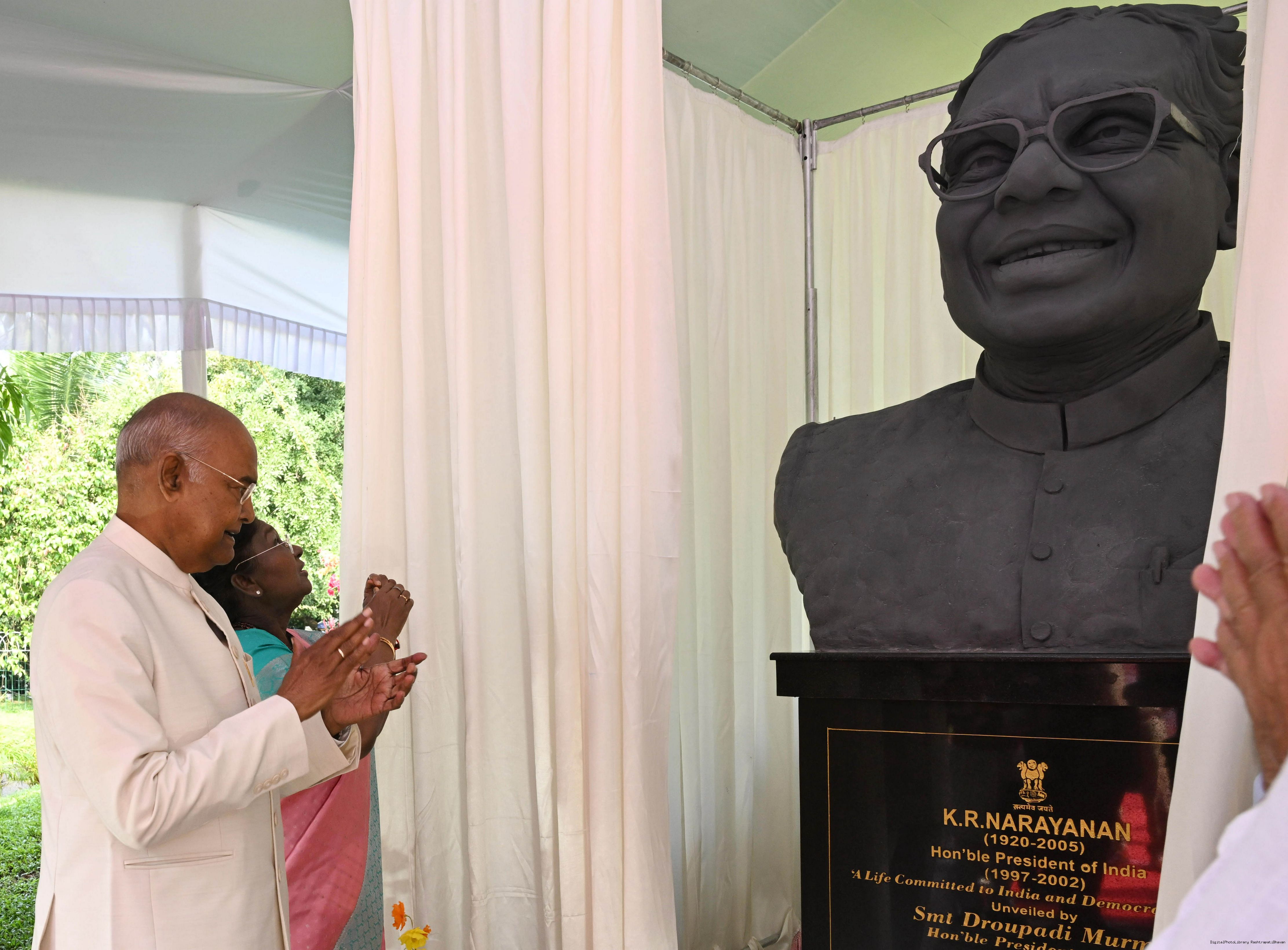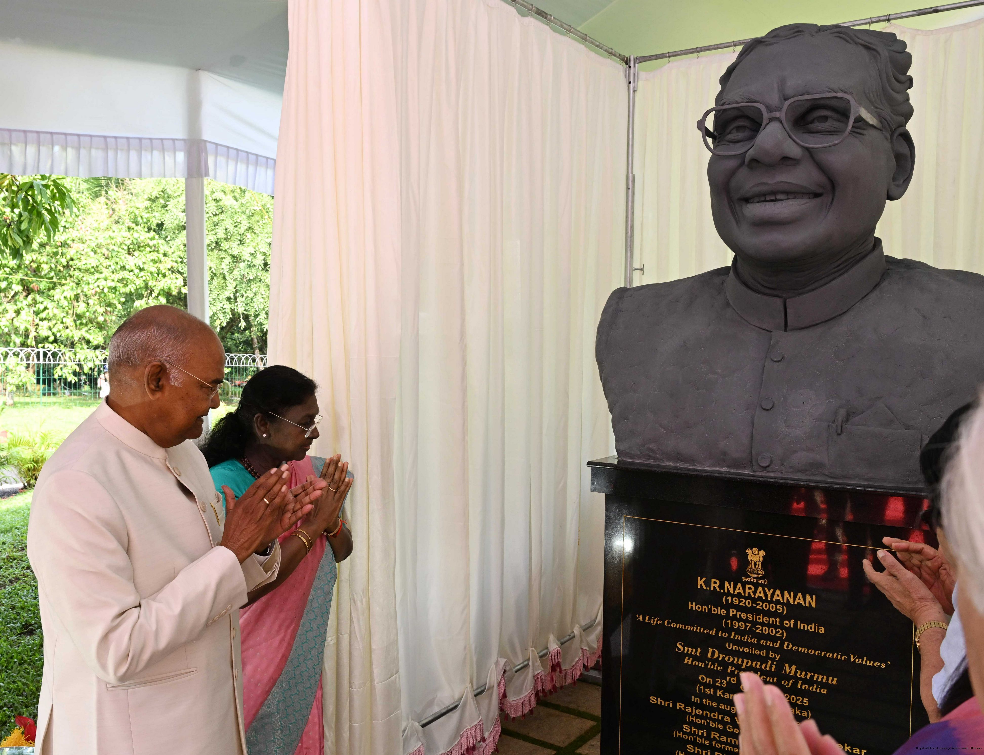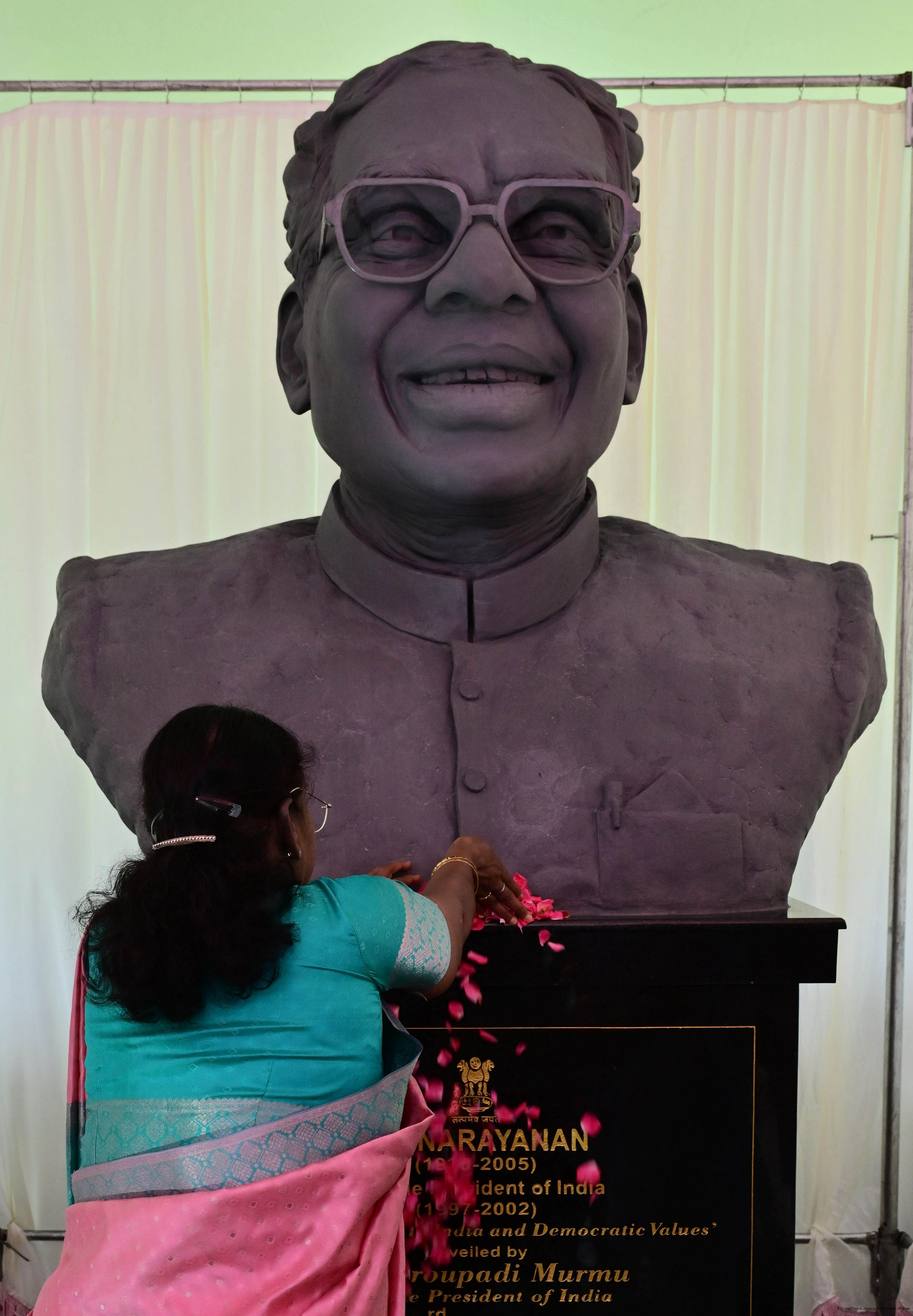 | Caption: | The President of India, Smt Droupadi Murmu unveiled the bust of former President of India, Shri KR Narayanan at Raj Bhavan, Thiruvananthapuram on October 23, 2025. |