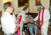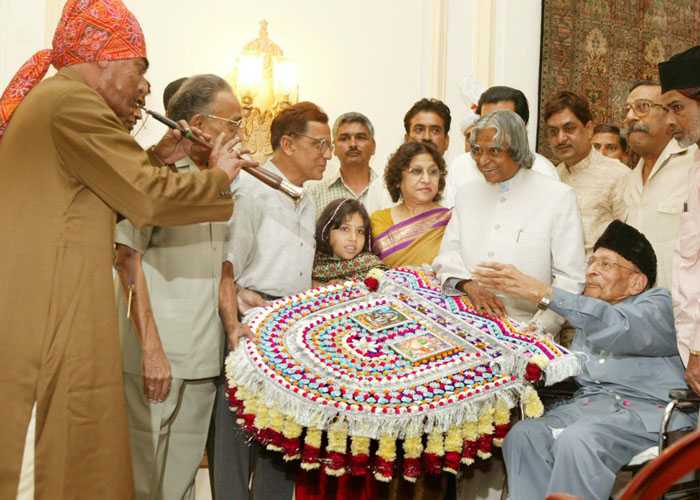 | Caption: | The President of India, Dr A P J Abdul Kalam interacting with the Members of Anjuman Sair e Gul Faroshan to present the Phool Walon ki Sair at the Yellow Drawing Room of Rashtrapati Bhavan in New Delhi on Oct 06, 2004 |