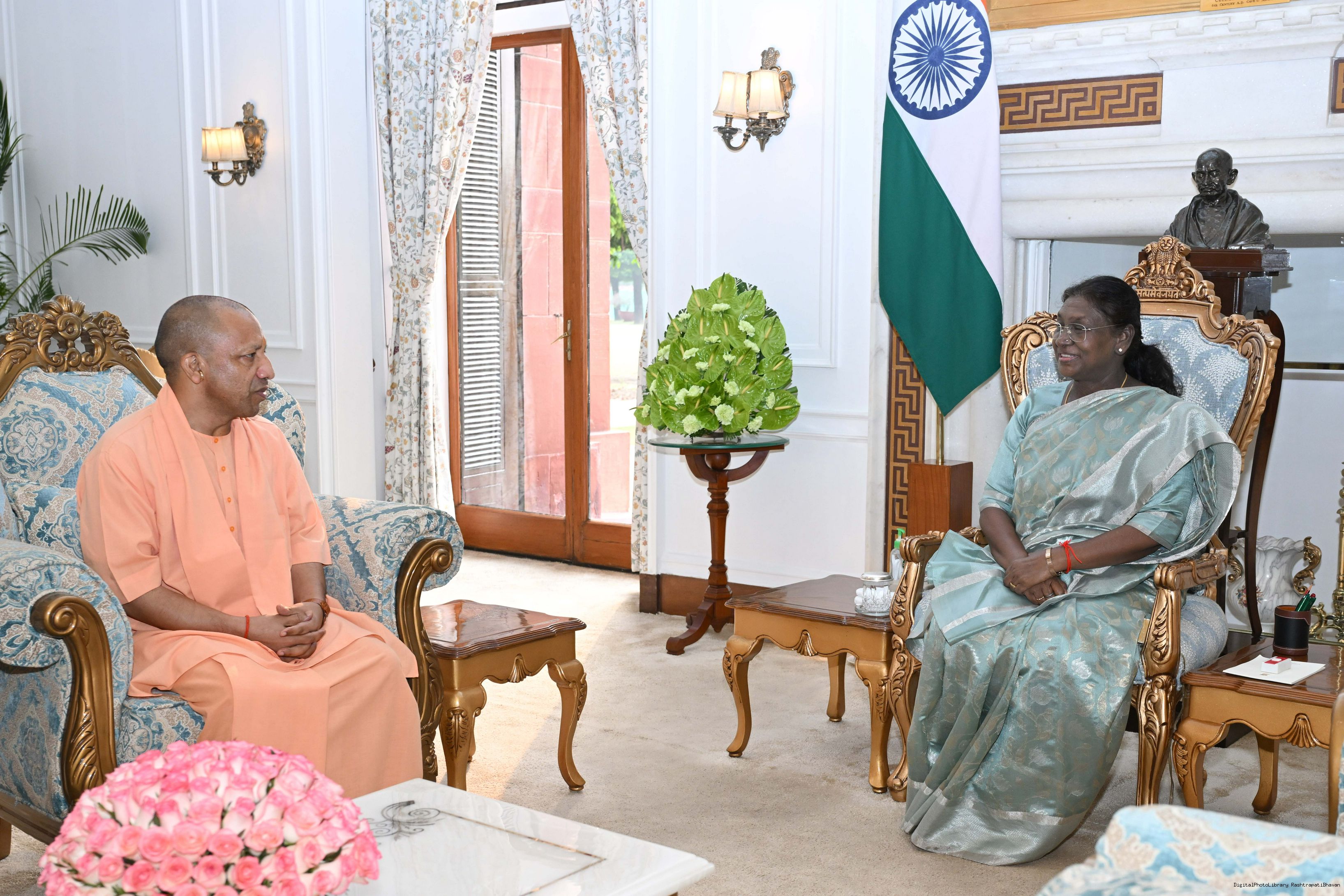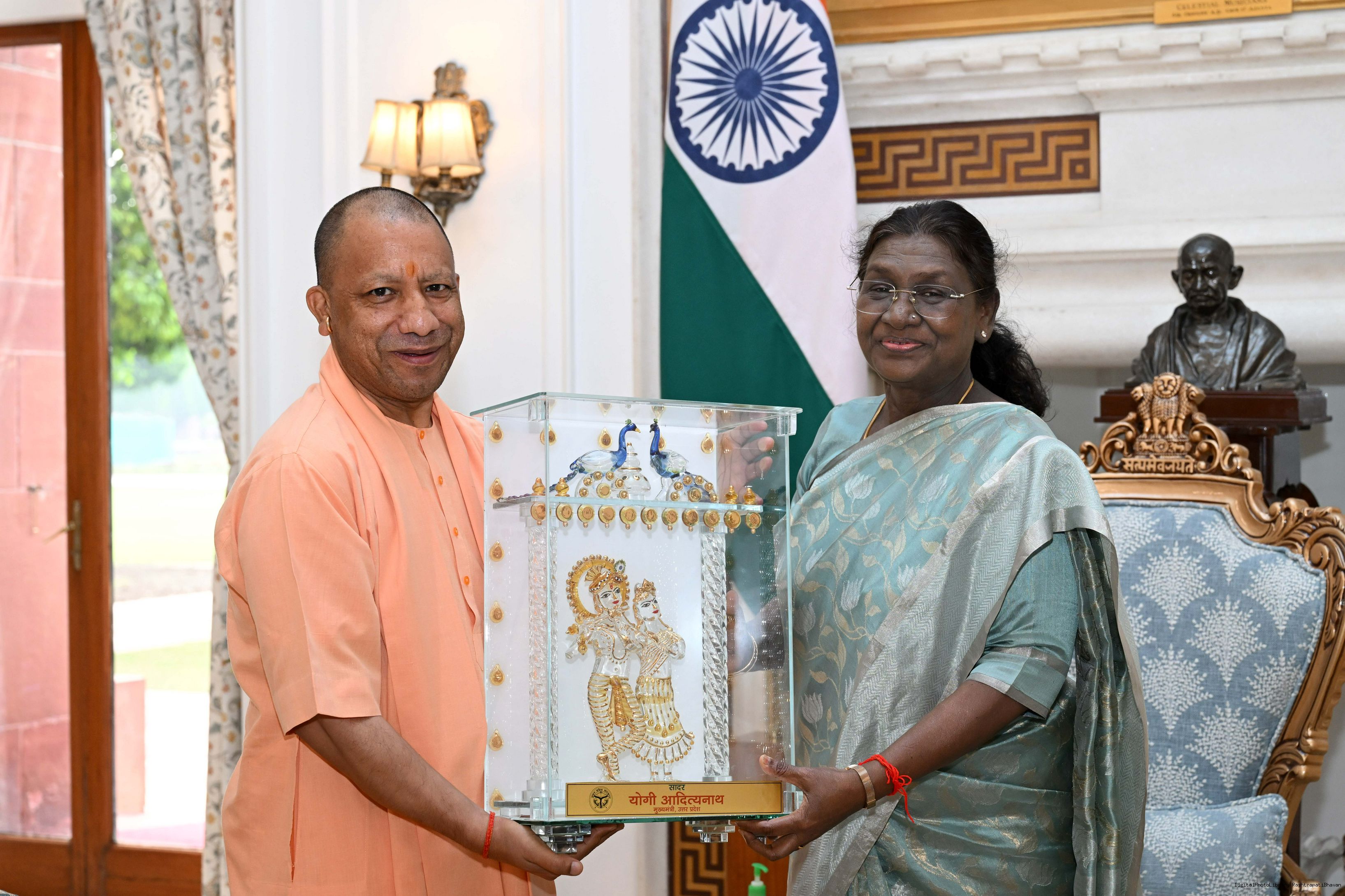 | Caption: | The Chief Minister of Uttar Pradesh, Yogi Adityanath called on the President of India, Smt. Droupadi Murmu at Rashtrapati Bhavan on October 25, 2025. |