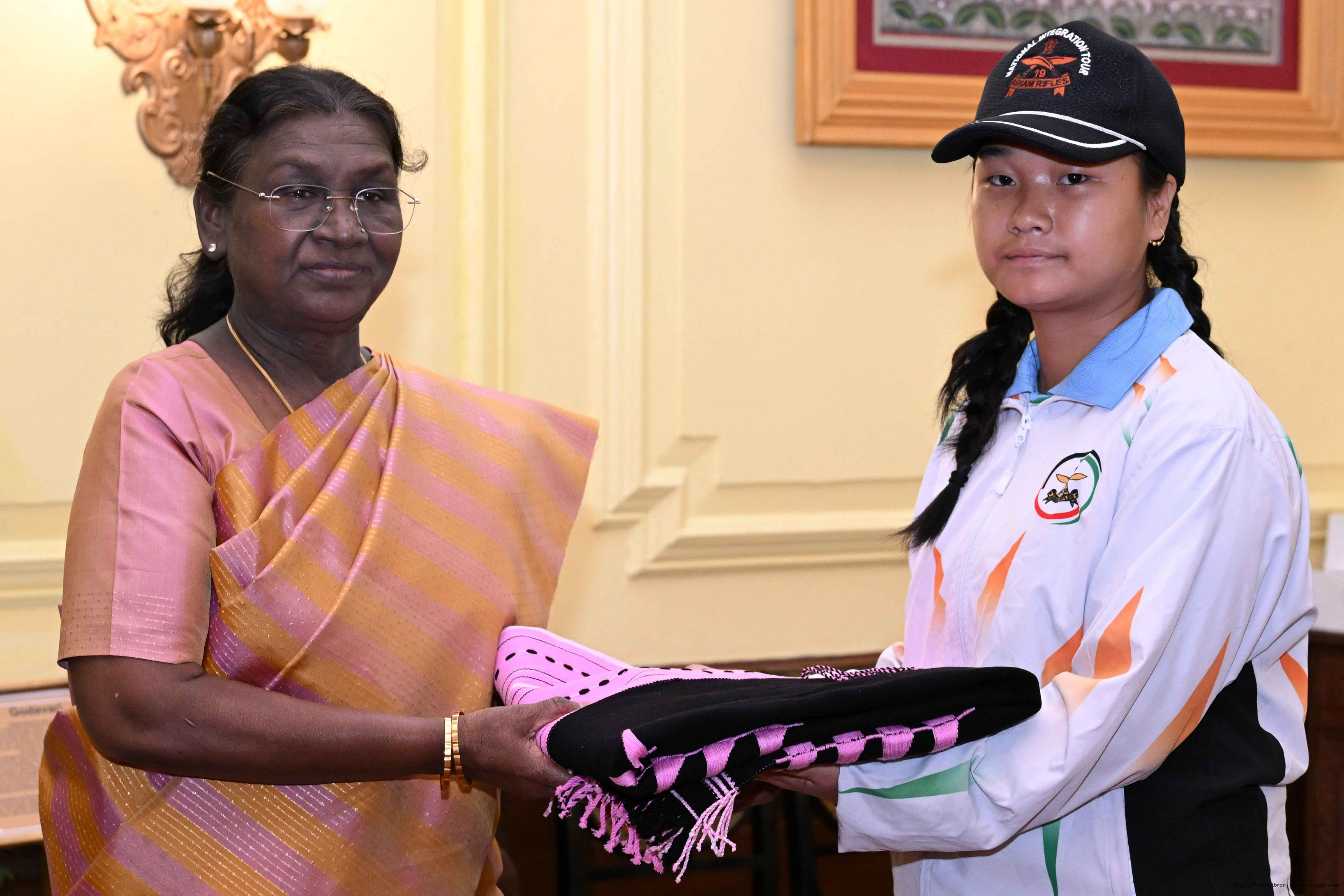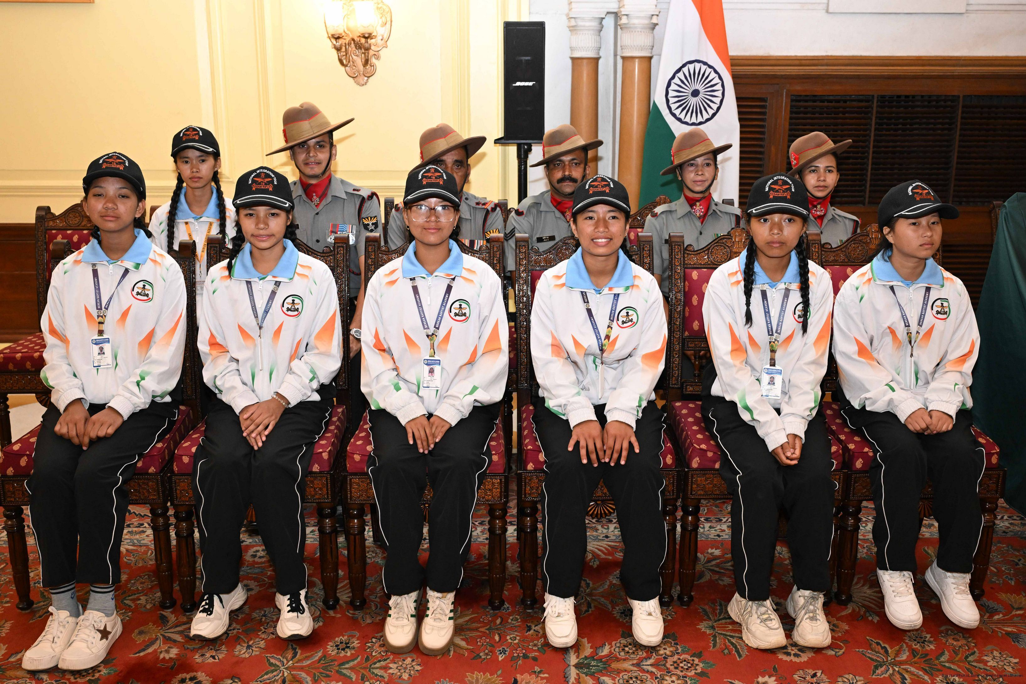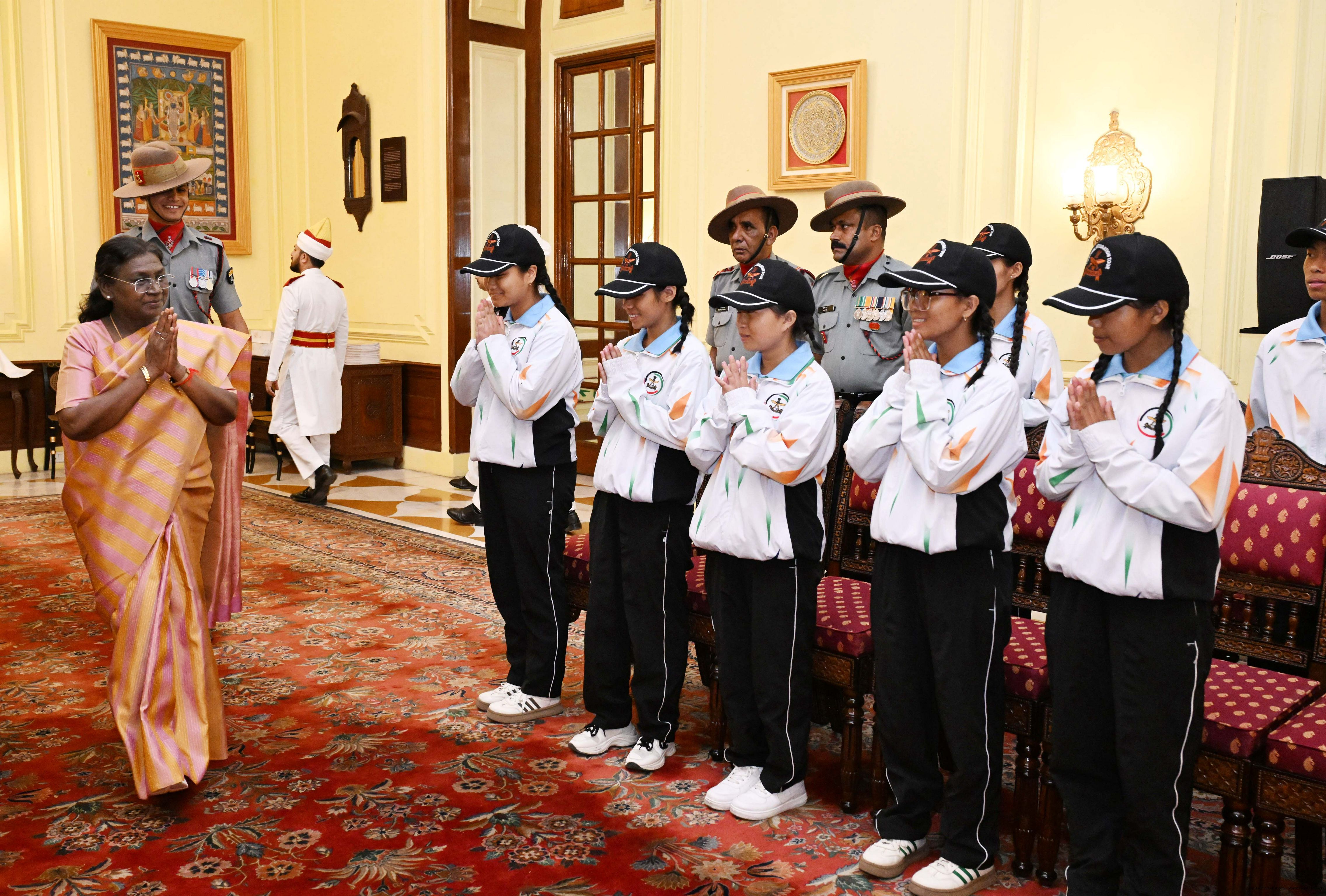 | Caption: | A group of students from Manipur called on the President of India, Smt. Droupadi Murmu. The group visited Rashtrapati Bhavan as part of the National Integration Tour (NIT) on October 26, 2025. |