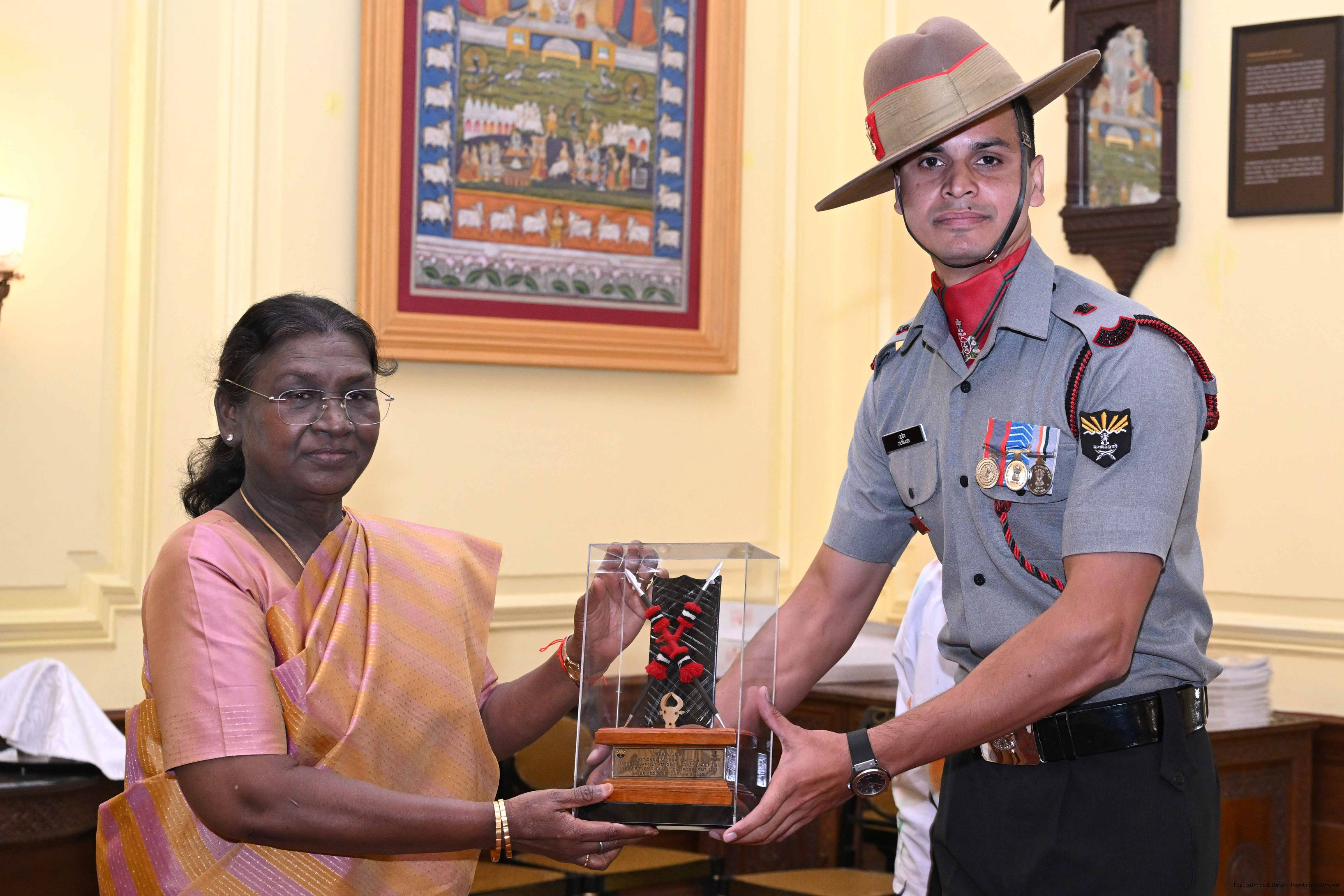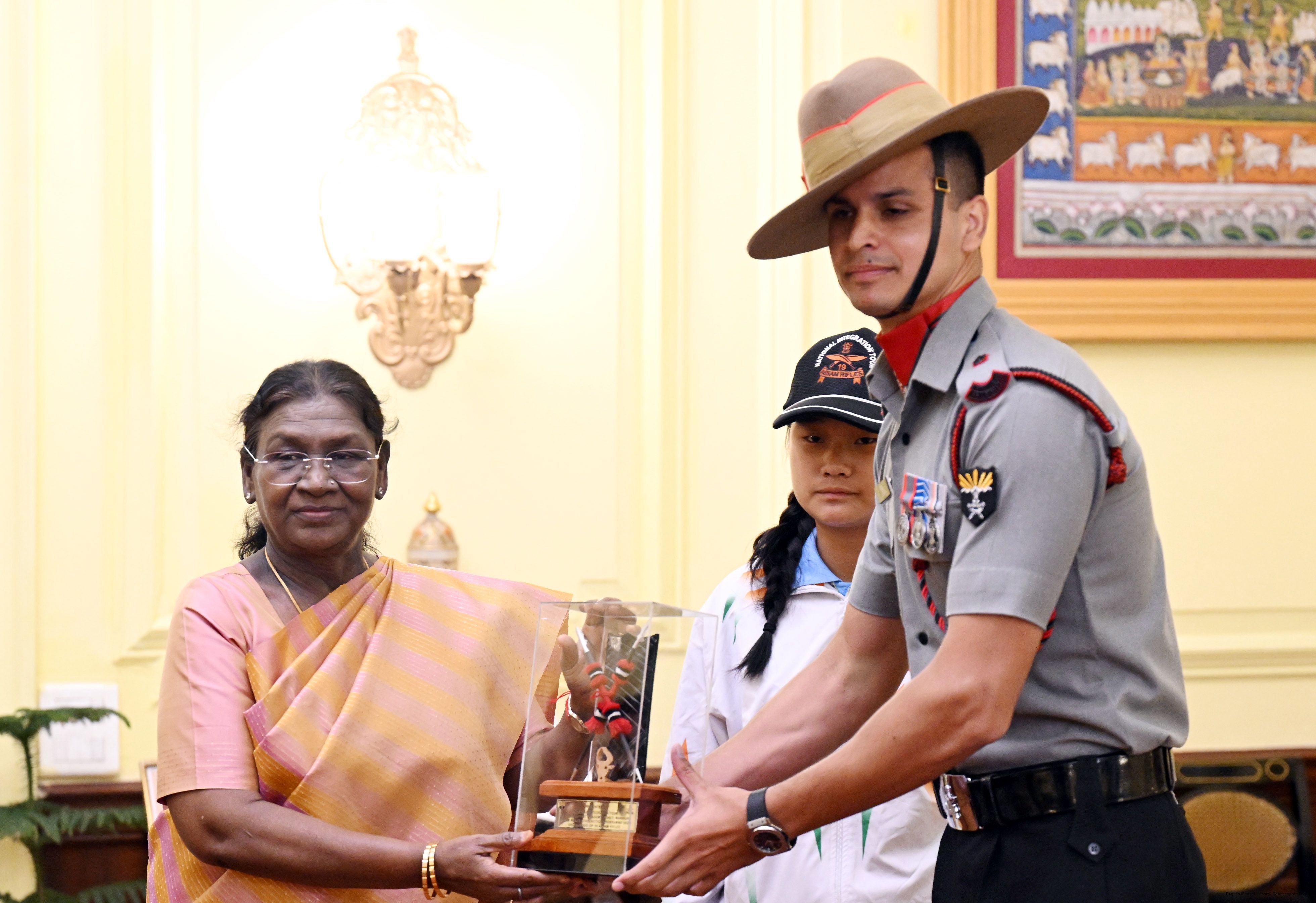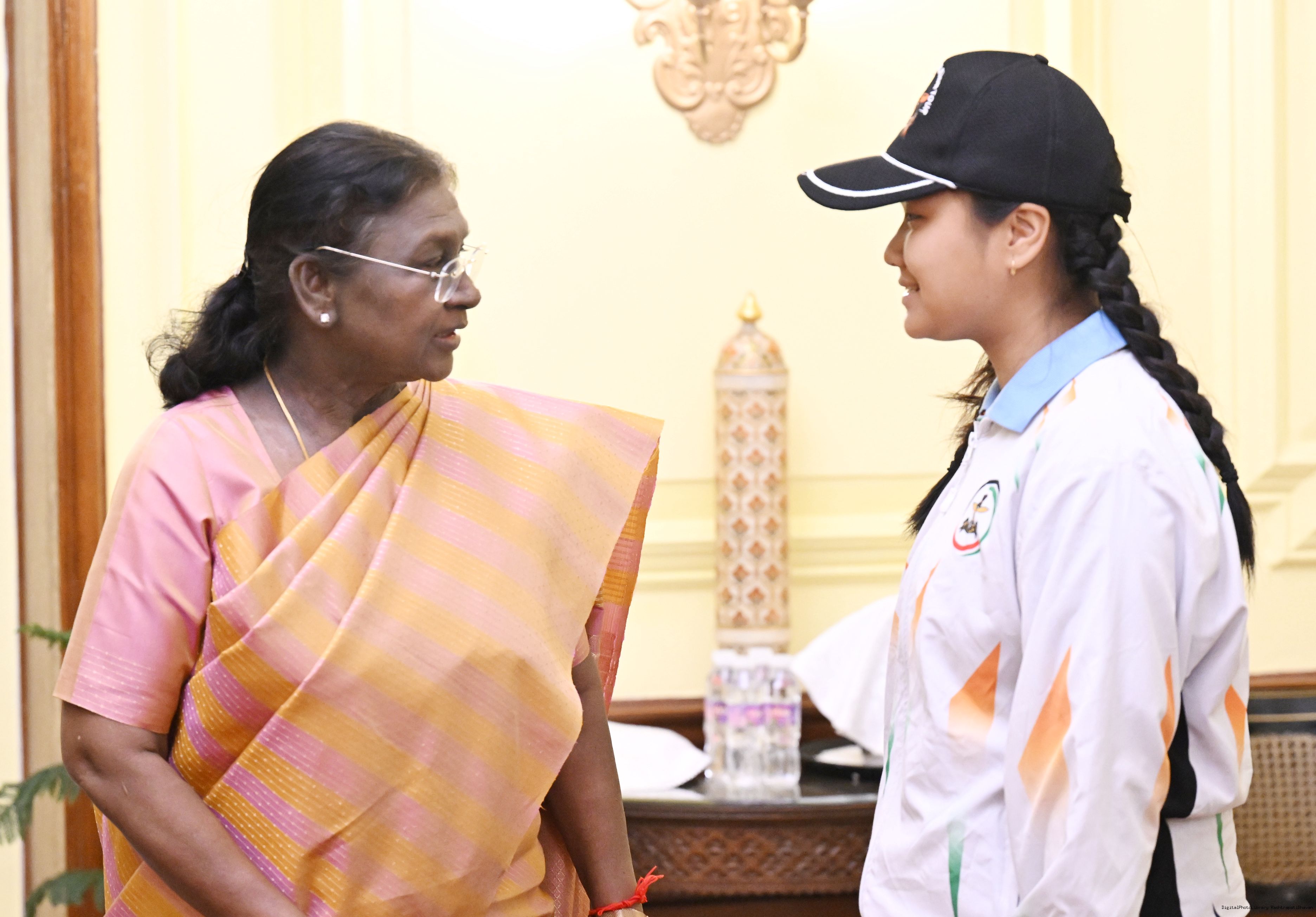 | Caption: | A group of students from Manipur called on the President of India, Smt. Droupadi Murmu. The group visited Rashtrapati Bhavan as part of the National Integration Tour (NIT) on October 26, 2025. |
