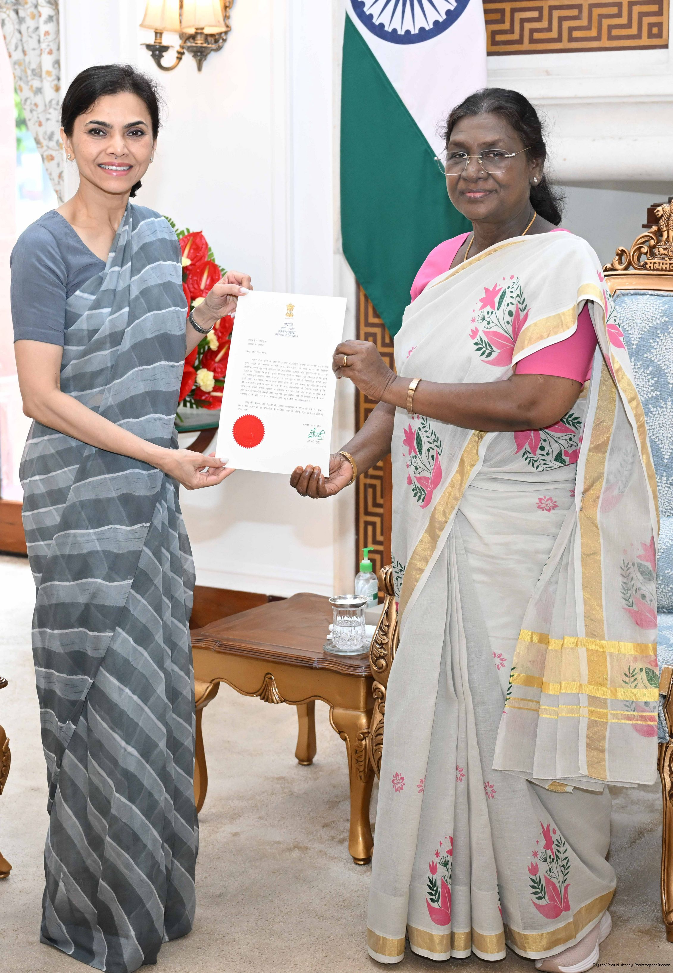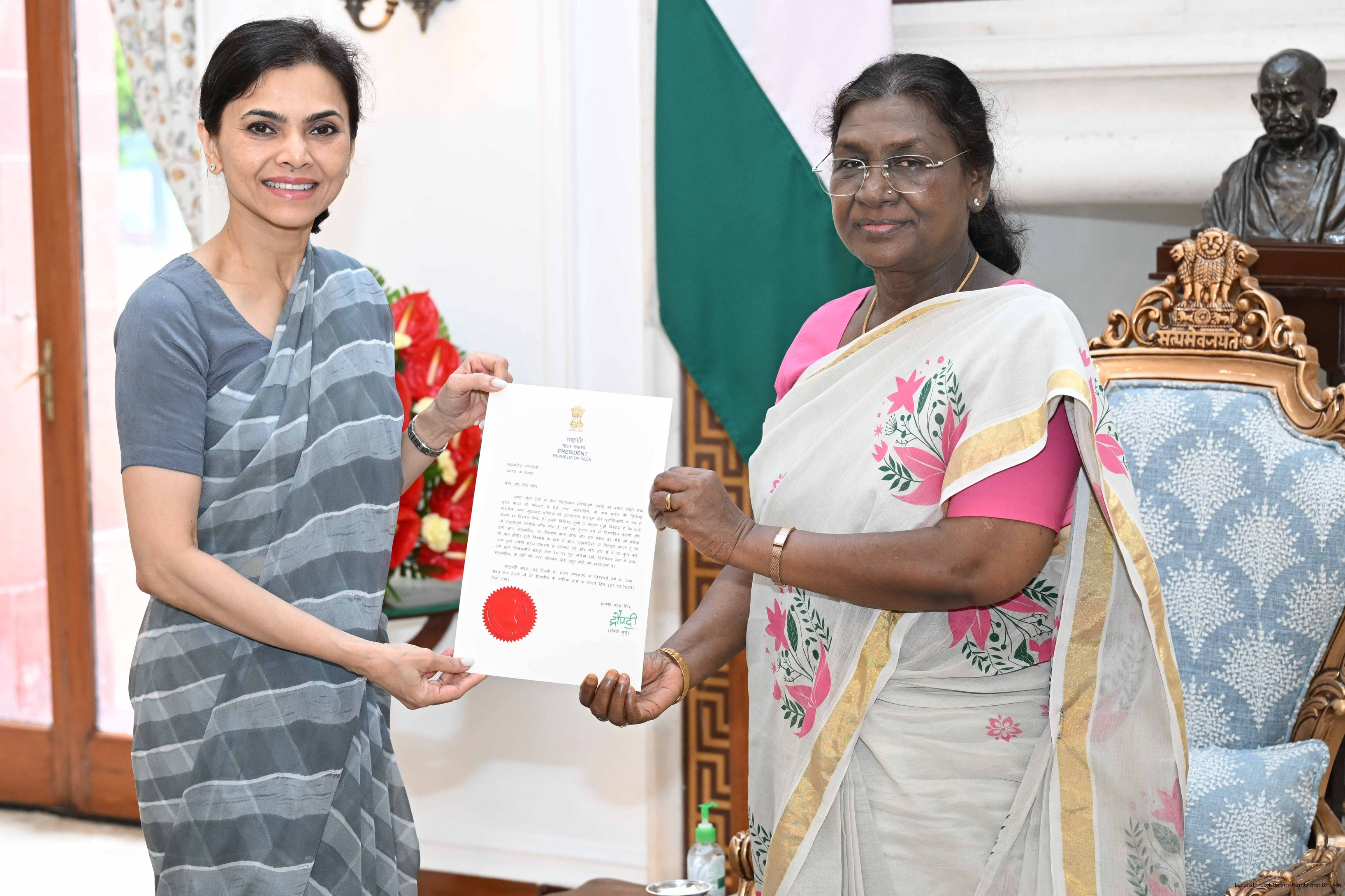 | Caption: | The Ambassador designate of India to Japan, Ms Nagma Mallick meeting with the President of India, Smt Droupadi Murmu at Rashtrapati Bhavan on October 28, 2025. |
