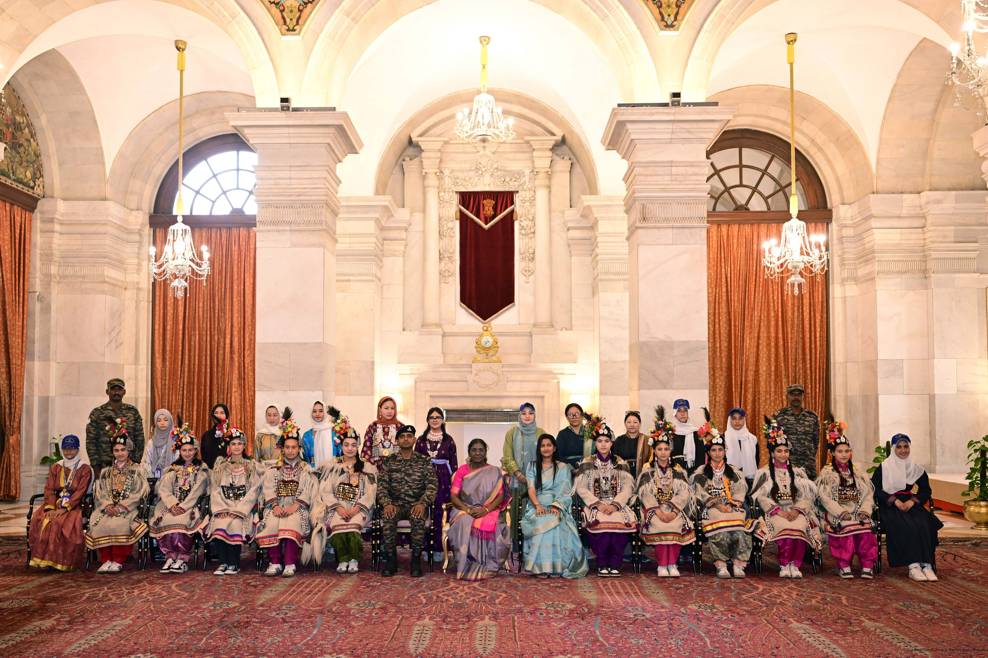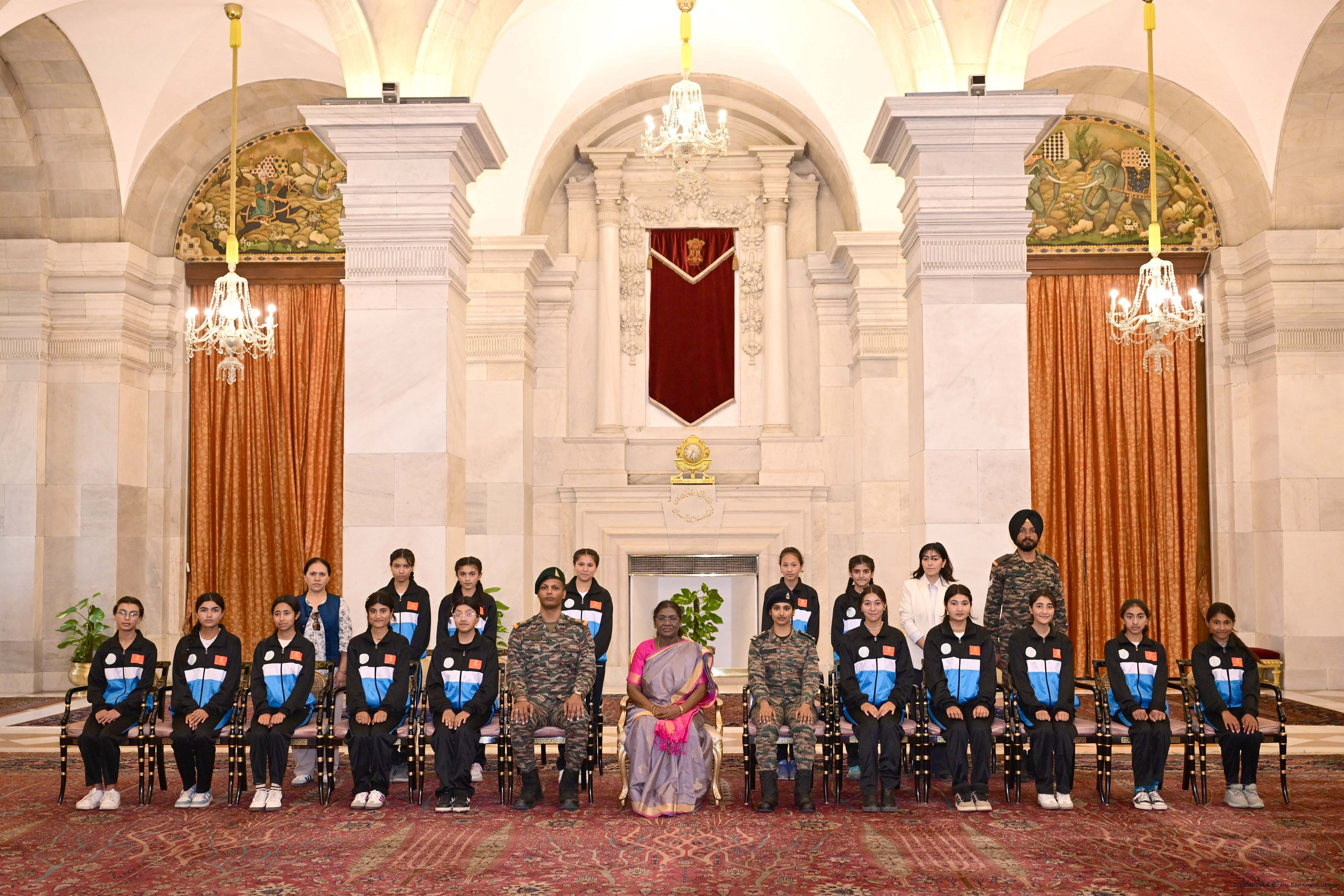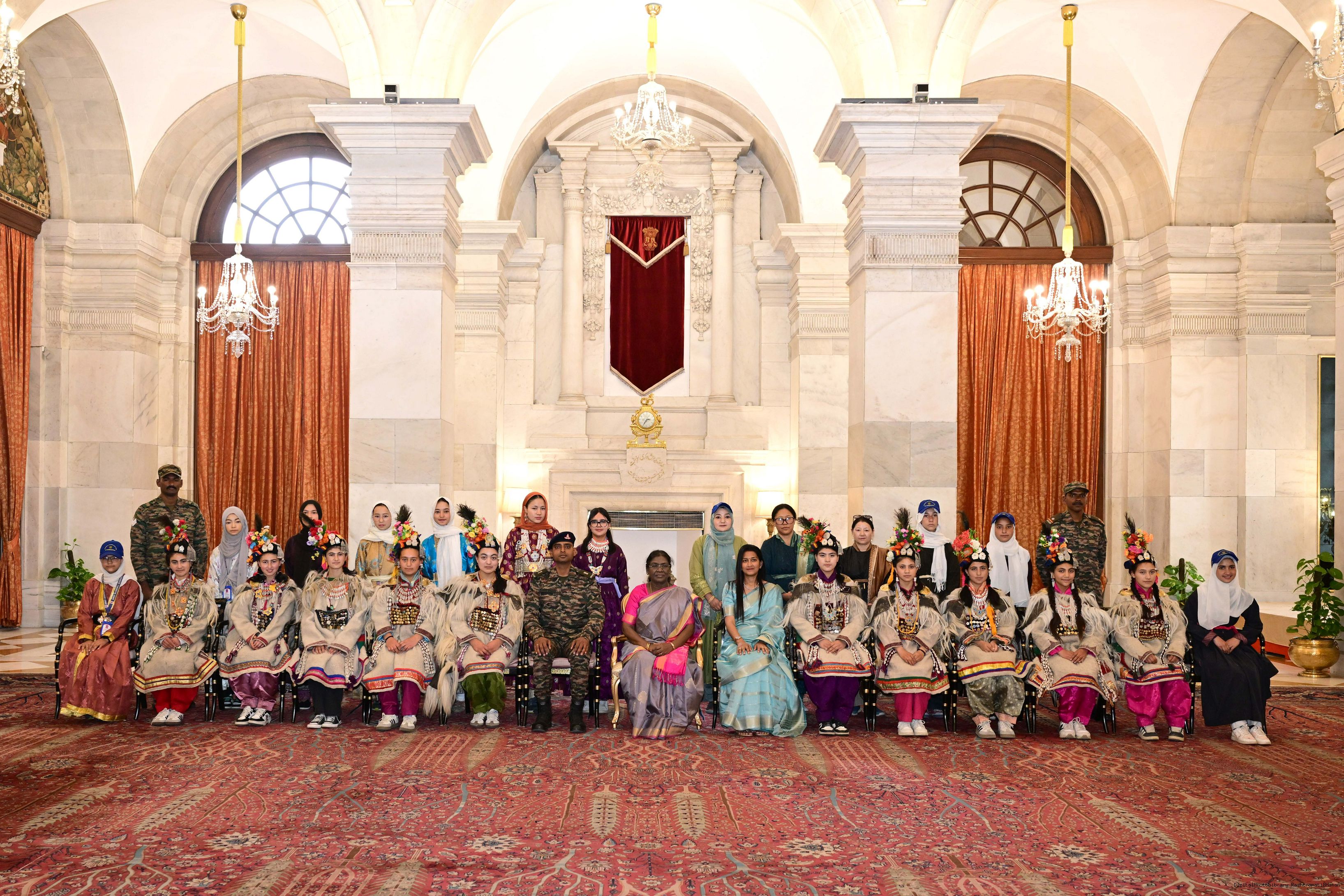 | Caption: | The President of India, Smt. Droupadi Murmu met two groups of students from Ladakh, at Rashtrapati Bhavan on October 29, 2025. They visited Rashtrapati Bhavan as part of the National Integration Tour (NIT). |