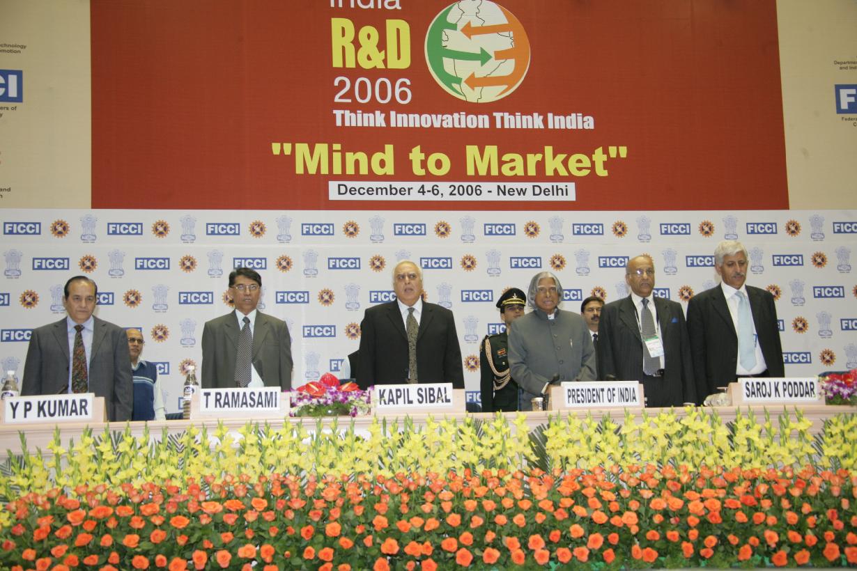 | Caption: | The President of India, Dr A P J Abdul Kalam inaugurating the Second International Conference-cum-Exhibition "India R & D Mind Market" at Vigyan Bhavan in New Delhi on Dec 04, 2006 |