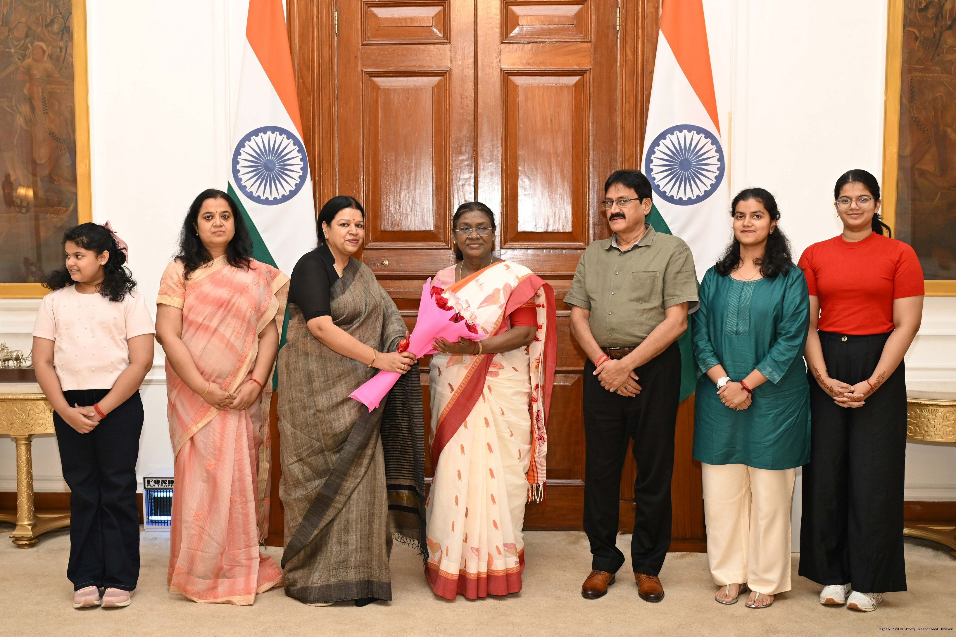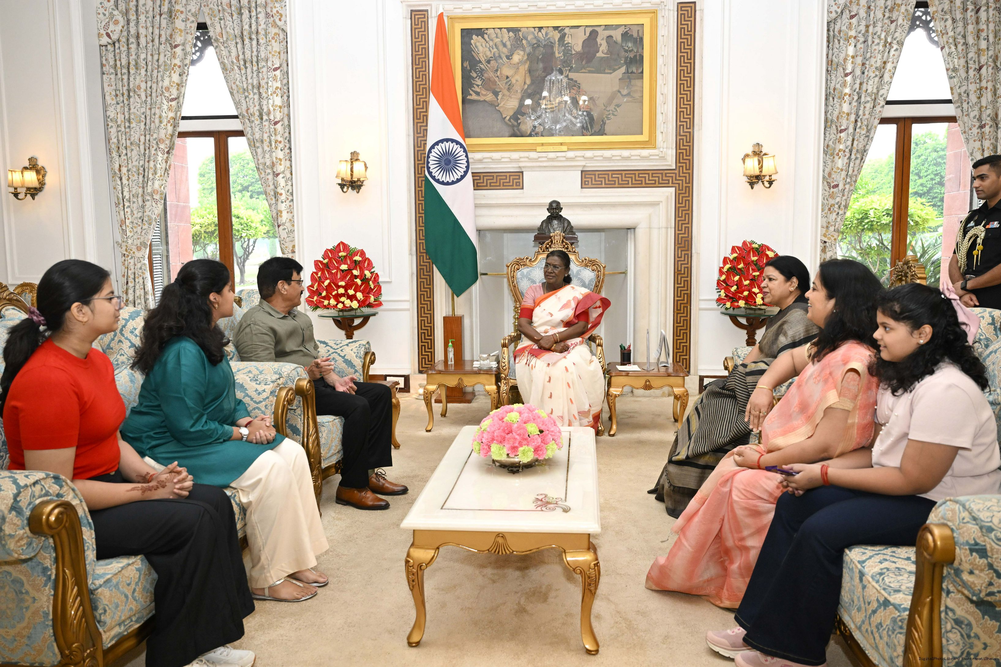 | Caption: | Shri S.S. Parihar, Former House Controller of Raj Bhavan, Ranchi, Jharkhand along with Smt. Shashi Singh and others meeting with the President of India, Smt Droupadi Murmu at Rashtrapati Bhavan on October 30, 2025. |