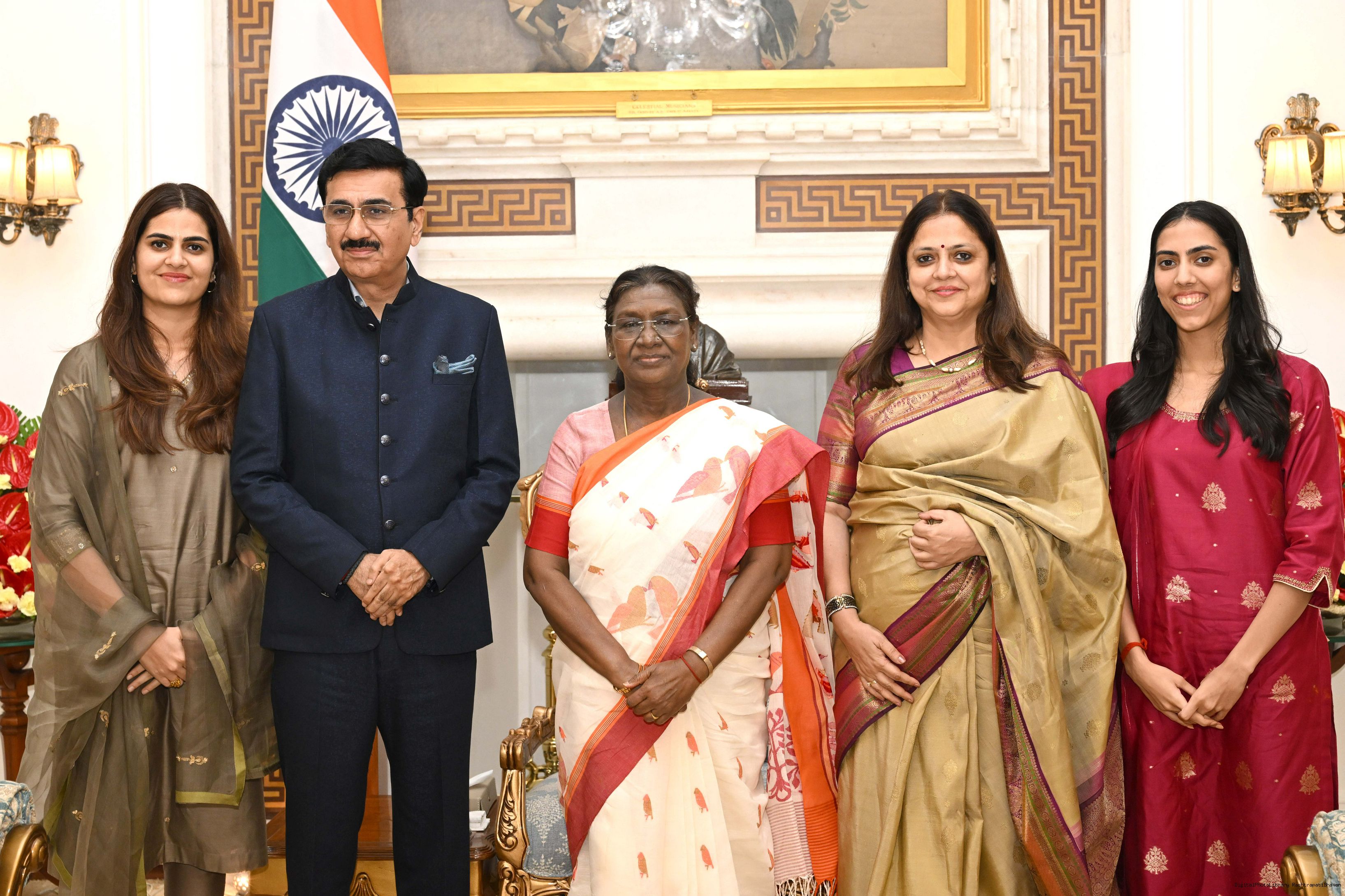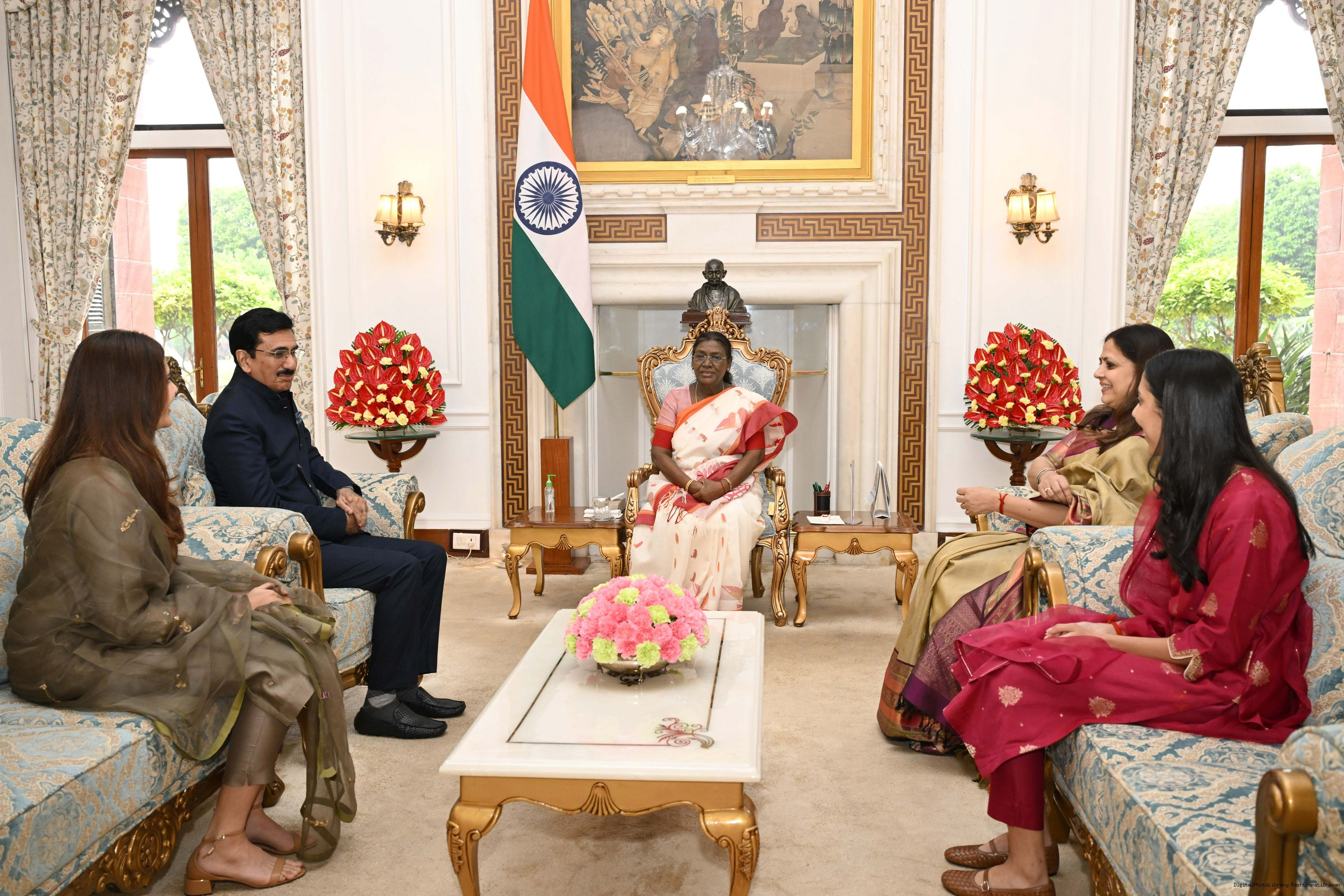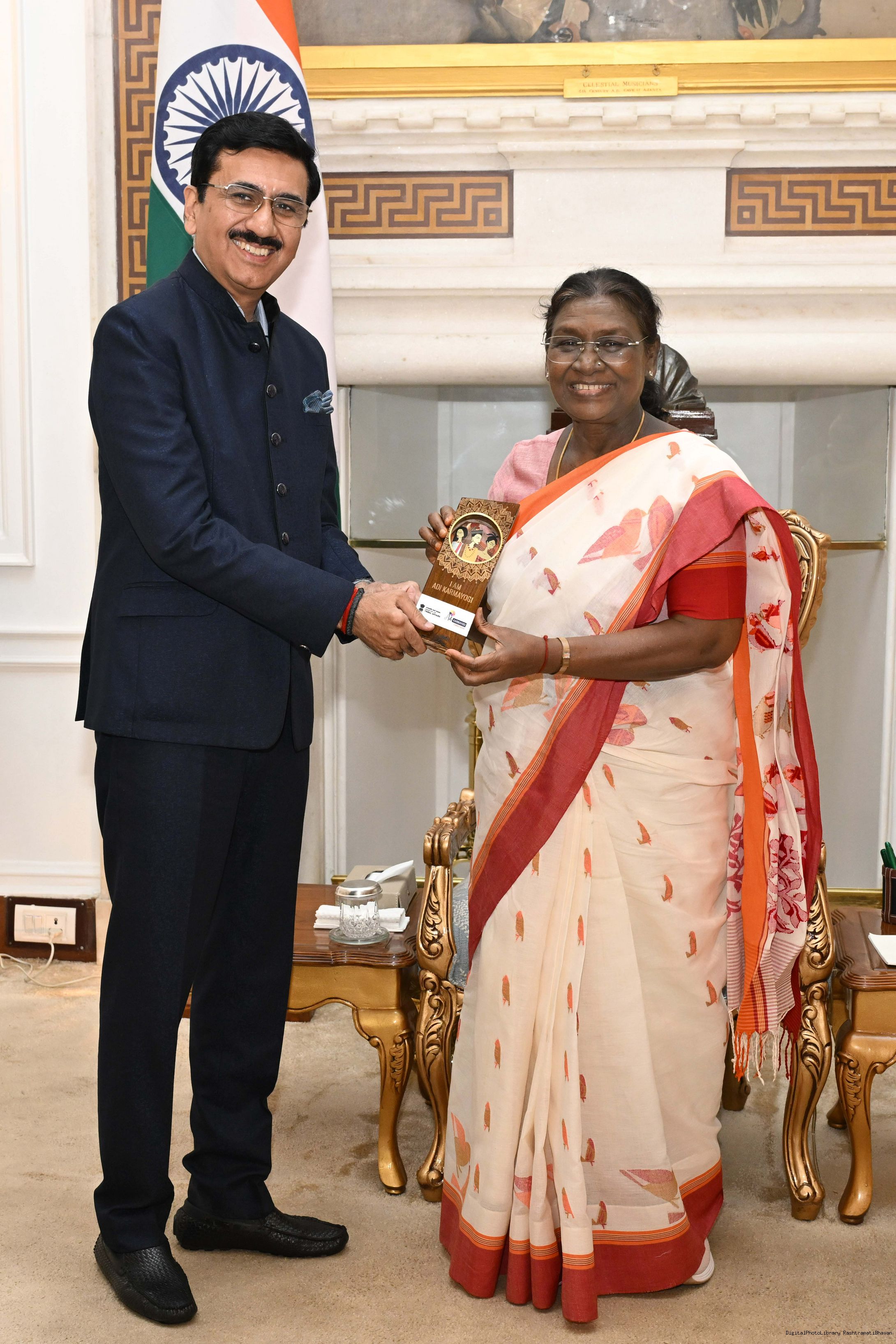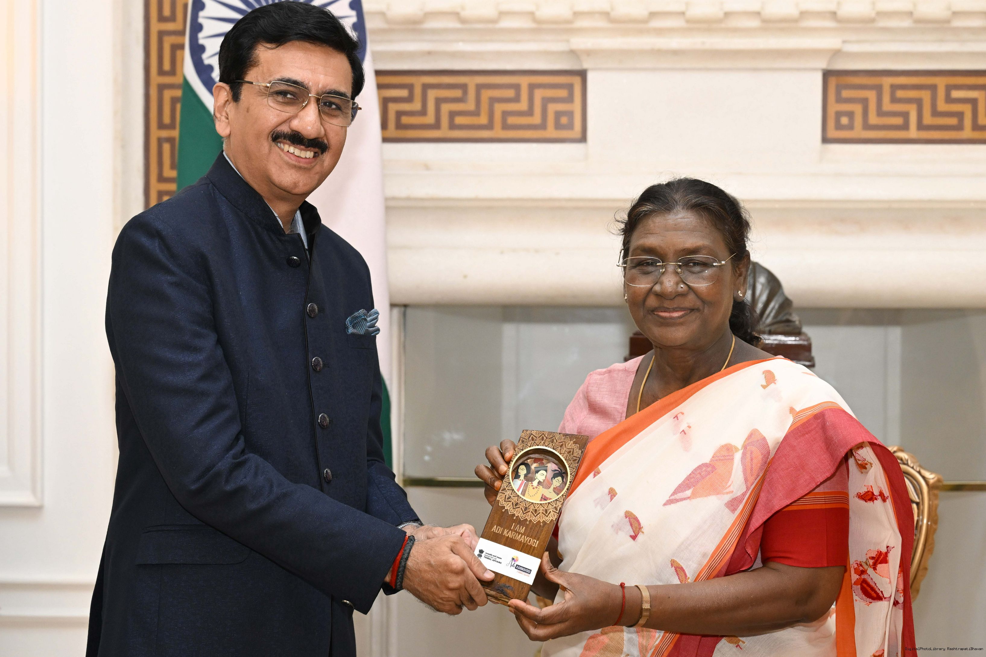 | Caption: | Shri Vibhu Nayar, Secretary, Ministry of Tribal Affairs, GoI along with spouse Smt. Sanjana Nayar and others meeting with the President of India, Smt Droupadi Murmu at Rashtrapati Bhavan on October 30, 2025. |