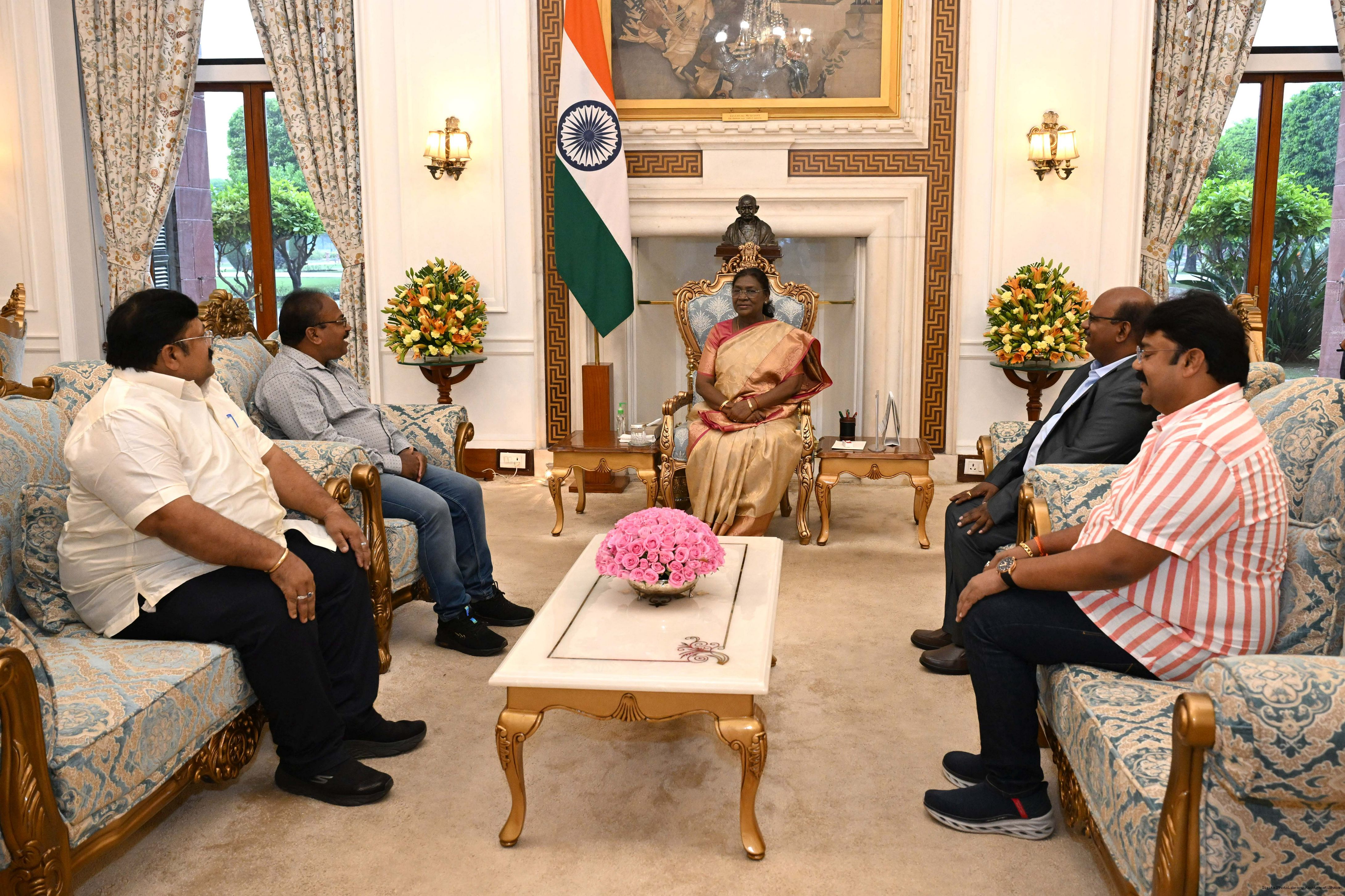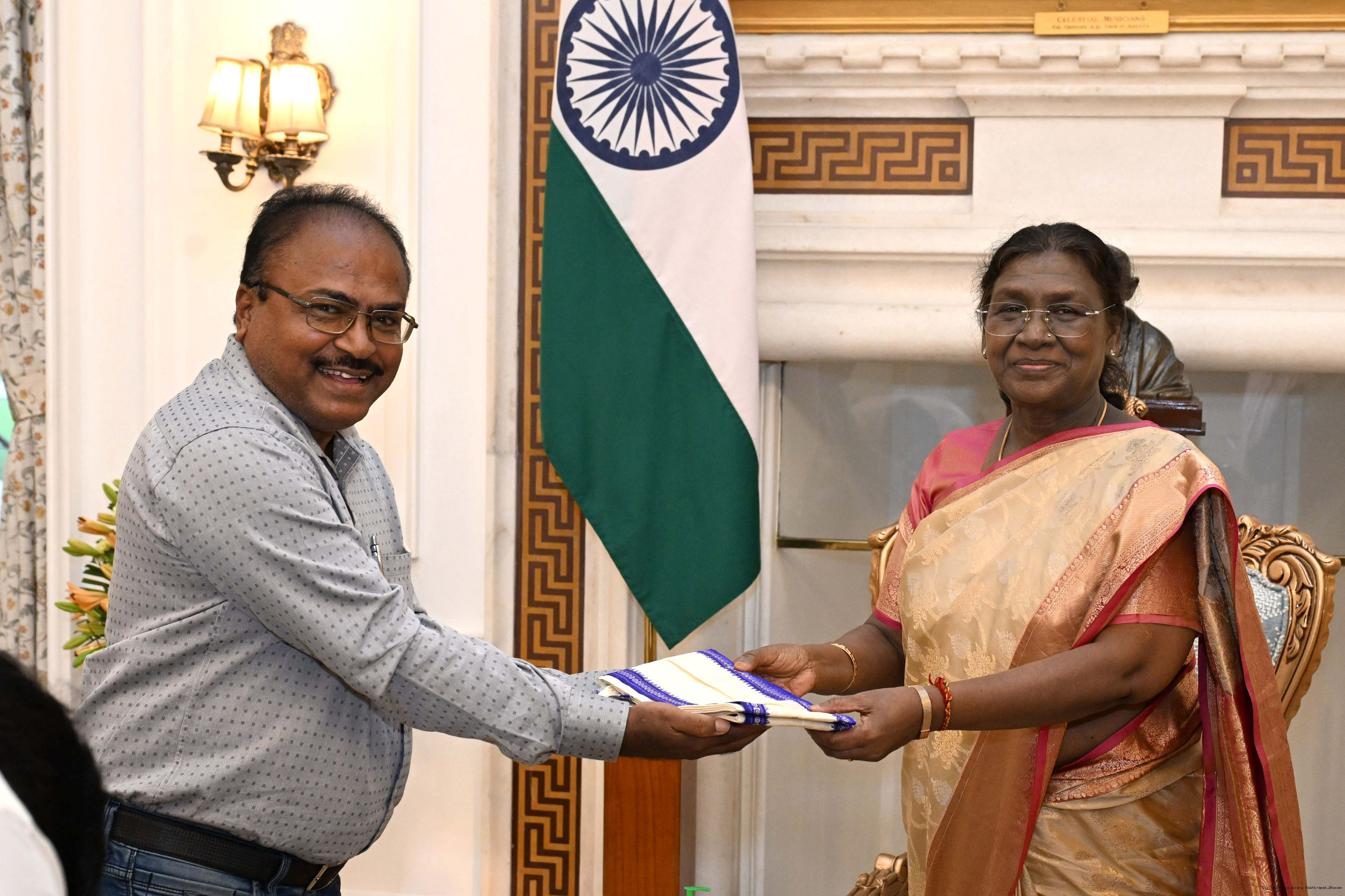 | Caption: | Shri Sourav Pattnaik from District Mayurbhanj, Odisha along with Shri Sasanka Shekhar Parida and others meeting with the President of India, Smt Droupadi Murmu at Rashtrapati Bhavan on October 31, 2025. |