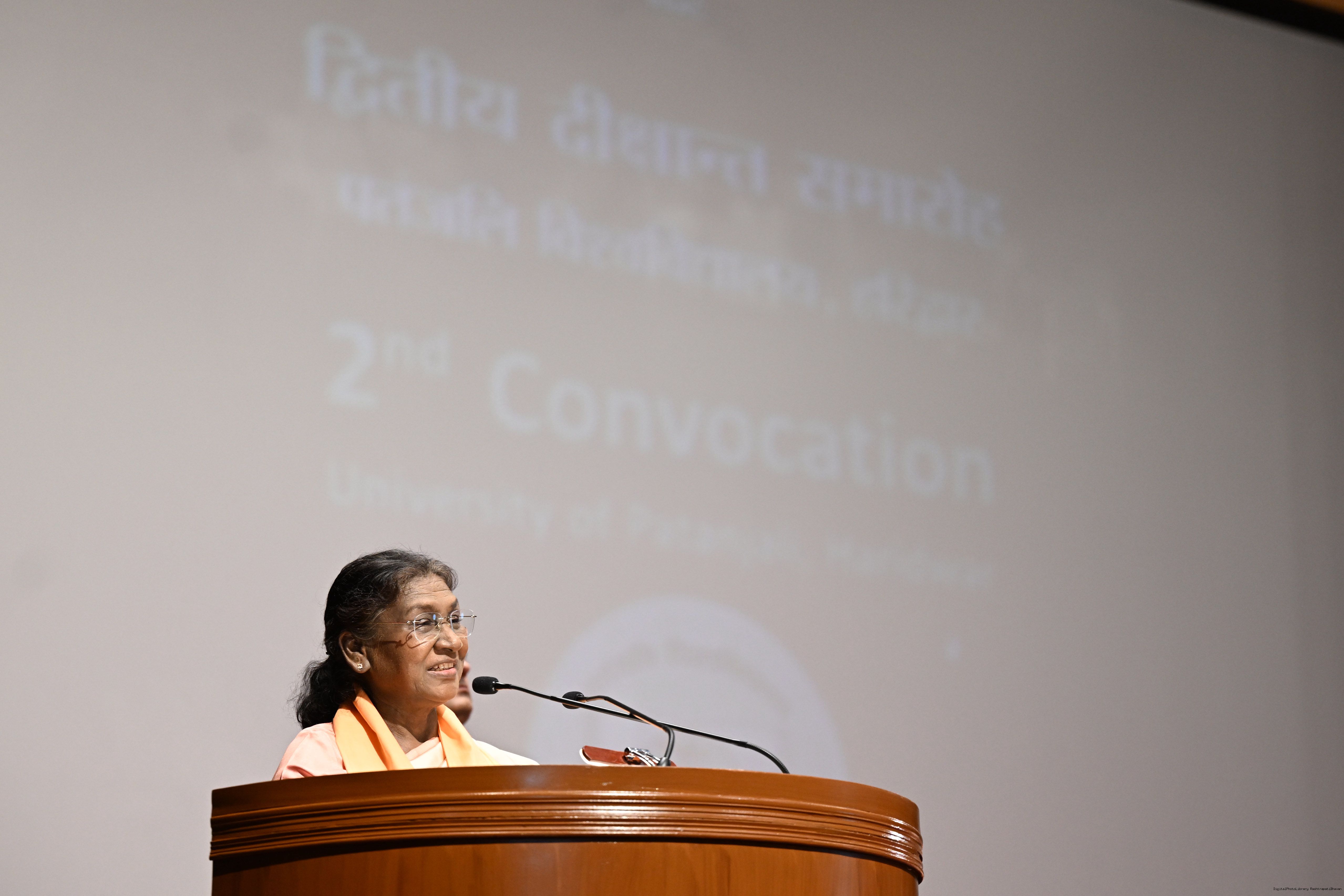 | Caption: | The President of India, Smt Droupadi Murmu, graced the second convocation ceremony of the University of Patanjali at Haridwar, Uttarakhand on November 2, 2025. |