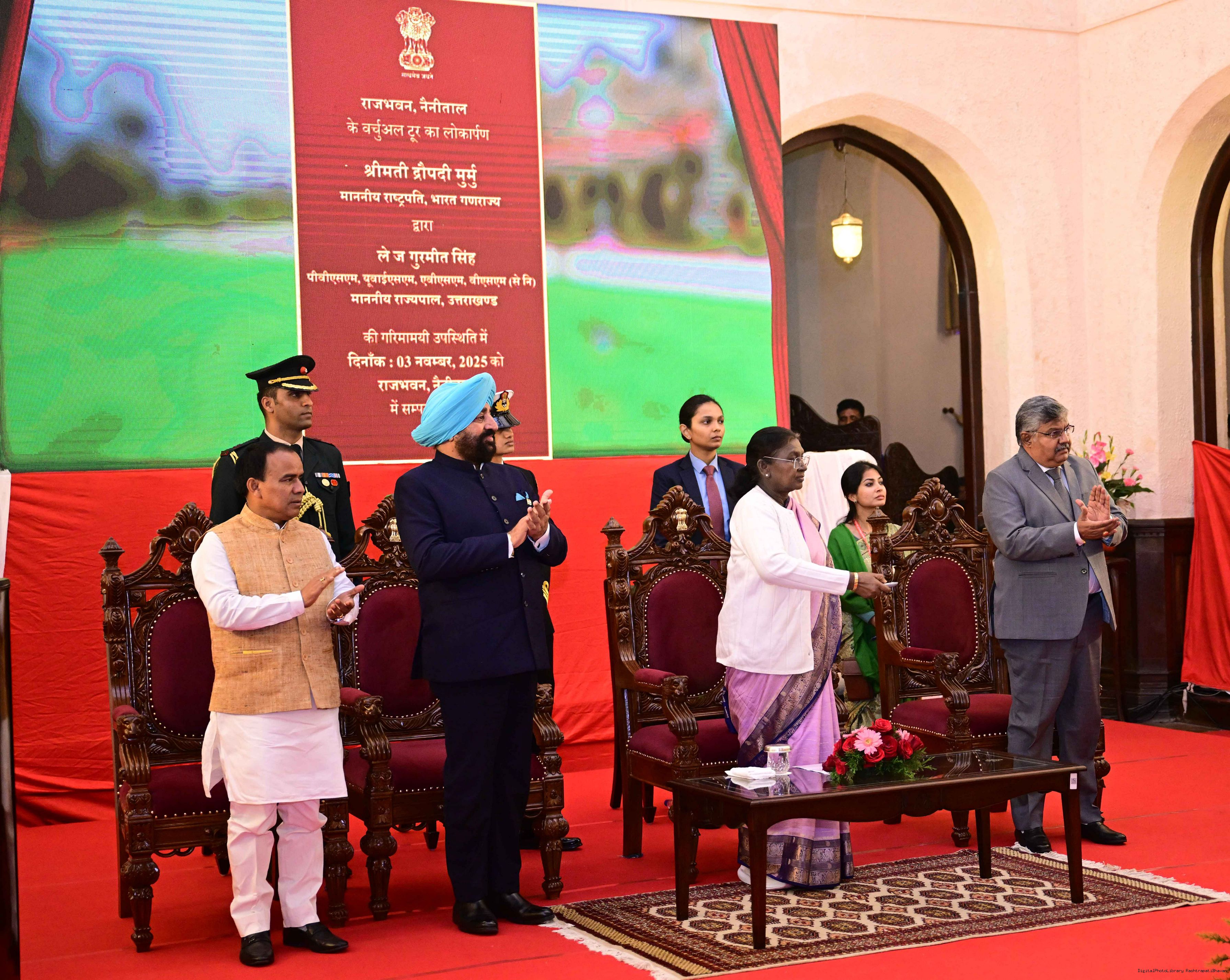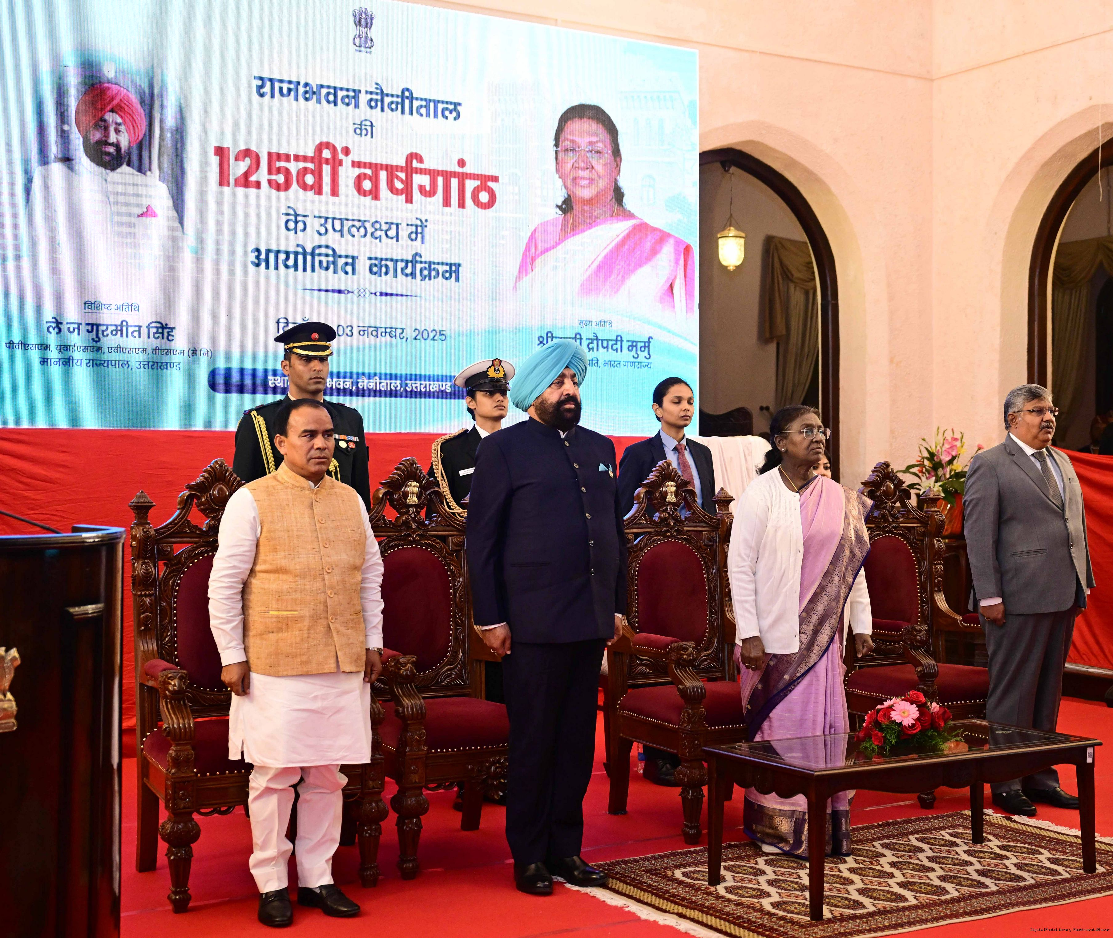 | Caption: | The President of India, Smt. Droupadi Murmu graced a function to commemorate the 125 years of the establishment of the Raj Bhavan, Nainital, Uttarakhand on November 3, 2025. |