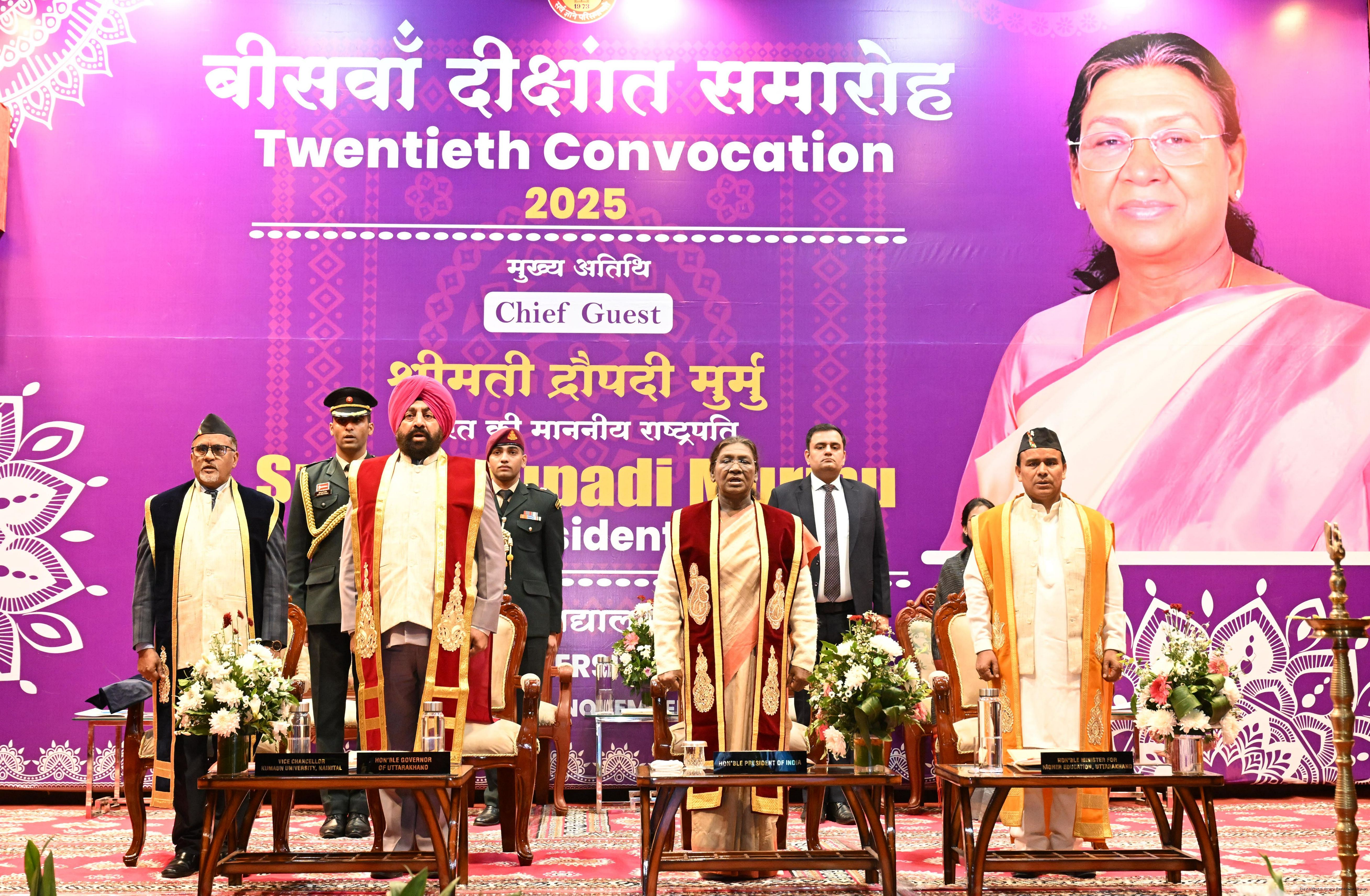 | Caption: | The President of India, Smt Droupadi Murmu, graced the 20th convocation ceremony of Kumaun University at Nainital, Uttarakhand on November 4, 2025. |
