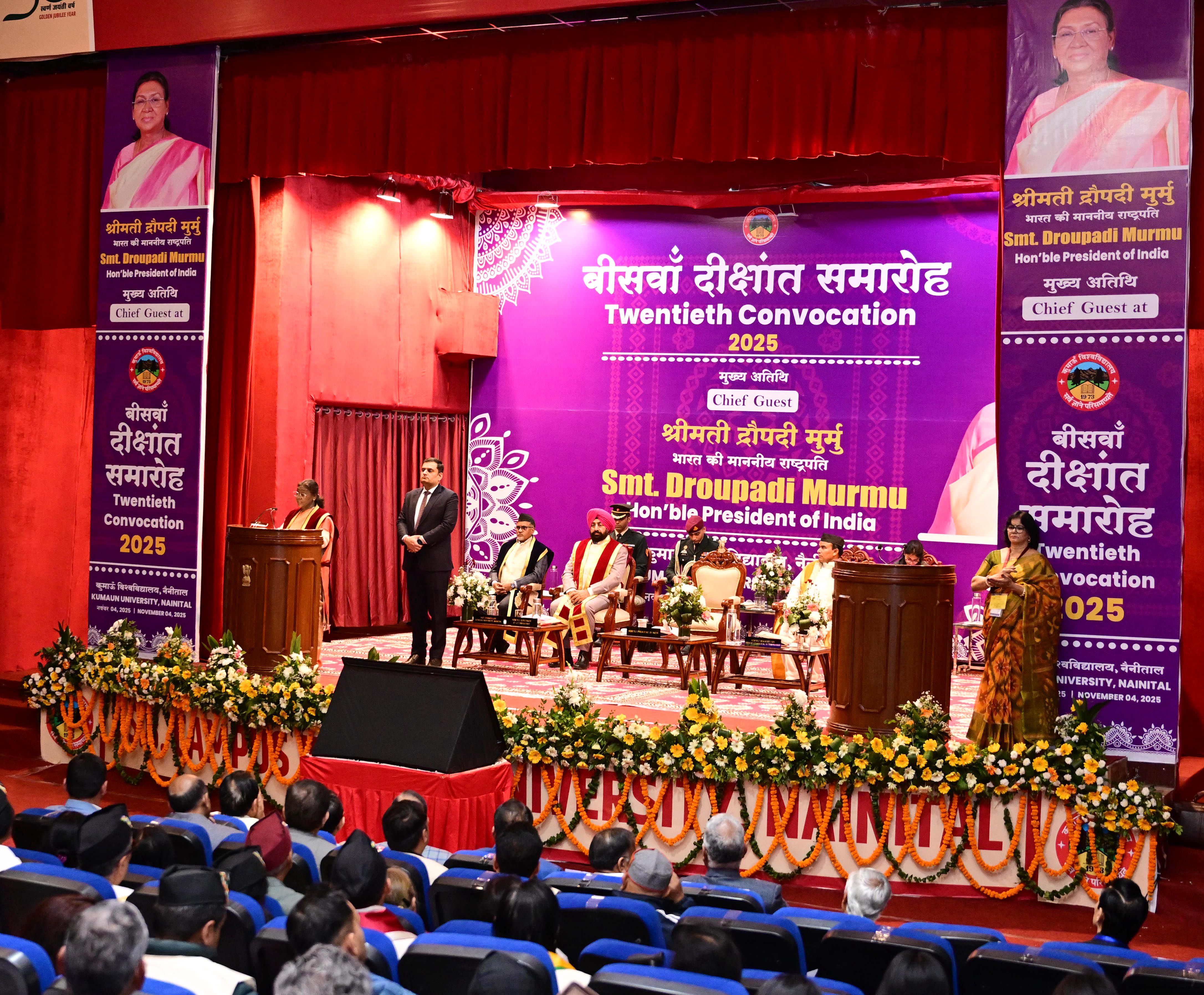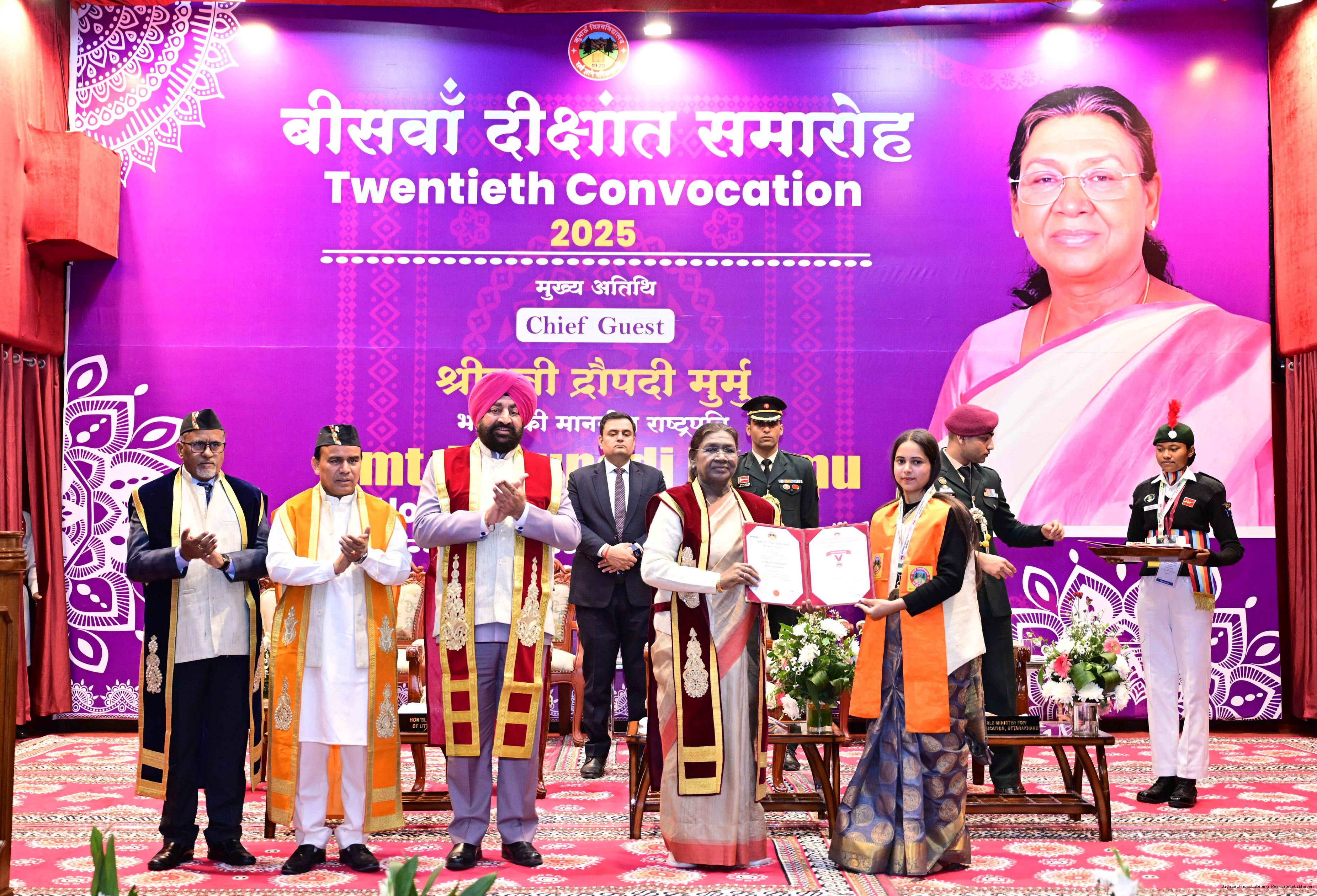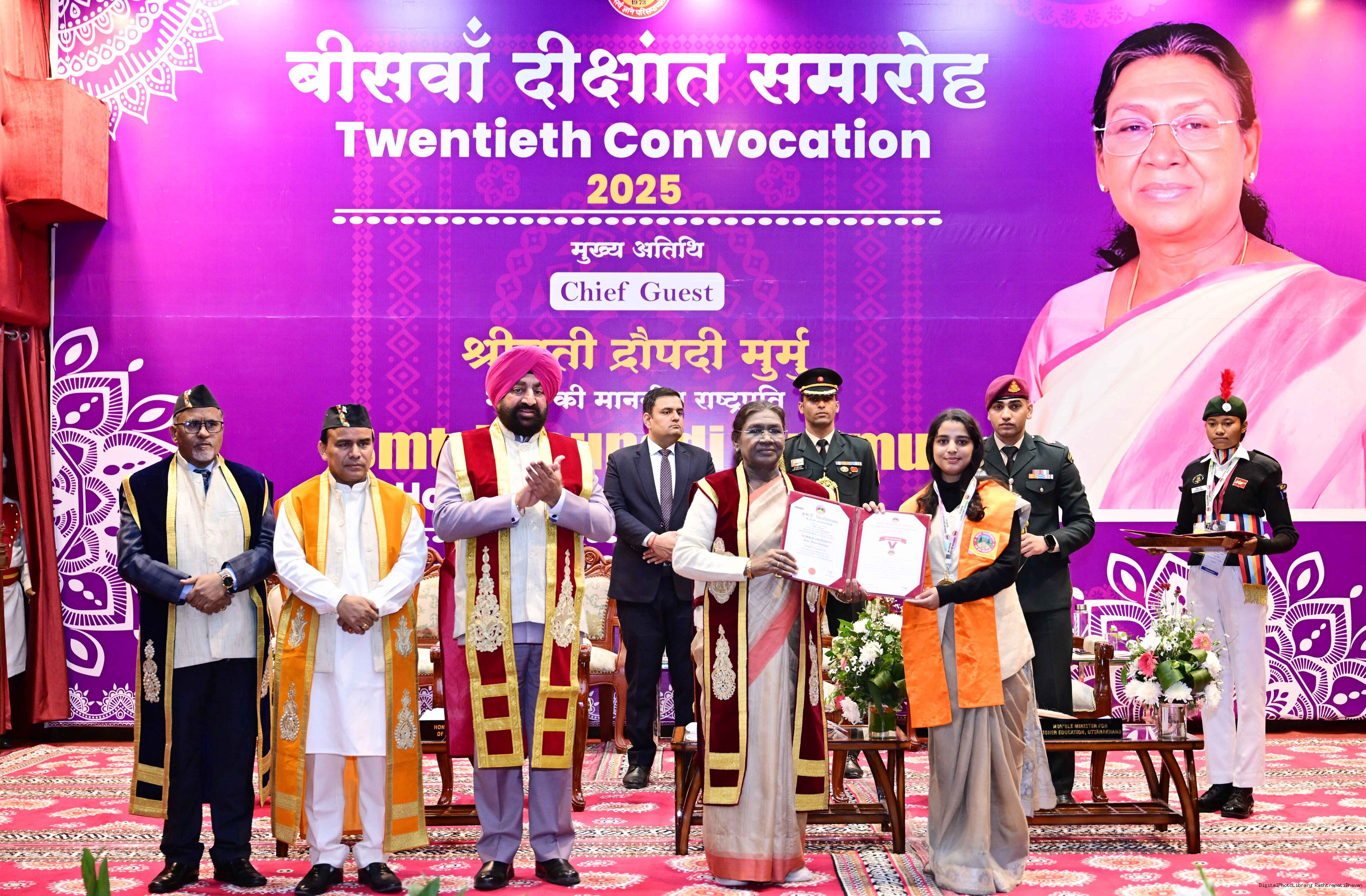 | Caption: | The President of India, Smt Droupadi Murmu, graced the 20th convocation ceremony of Kumaun University at Nainital, Uttarakhand on November 4, 2025. |