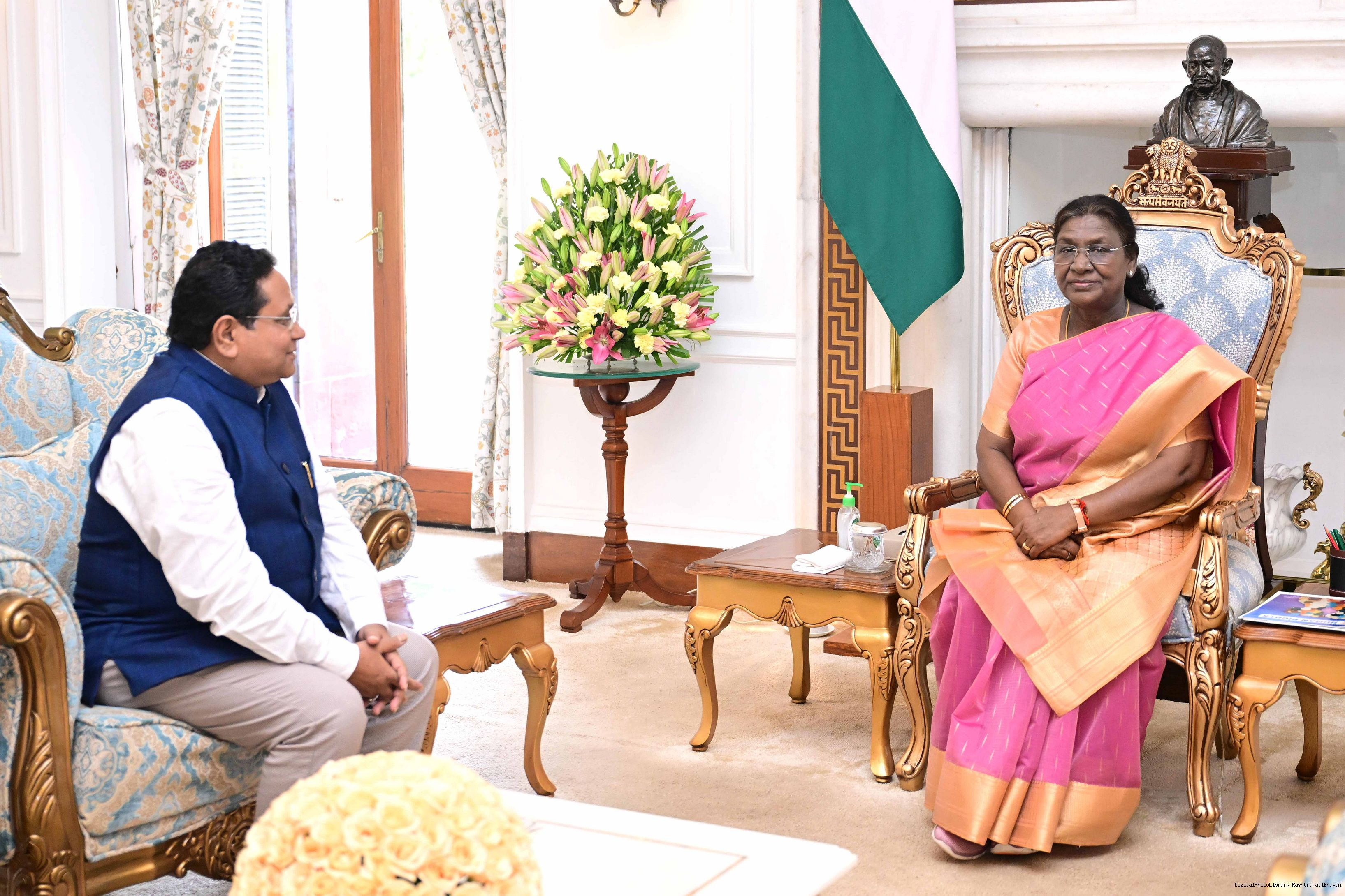 | Caption: | Prof. Jagneshwar Dandapat, VC, Utkal University, Bhubaneswar, Odisha meeting with the President of India, Smt. Droupadi Murmu at Rashtrapati Bhavan on November 6, 2025. |