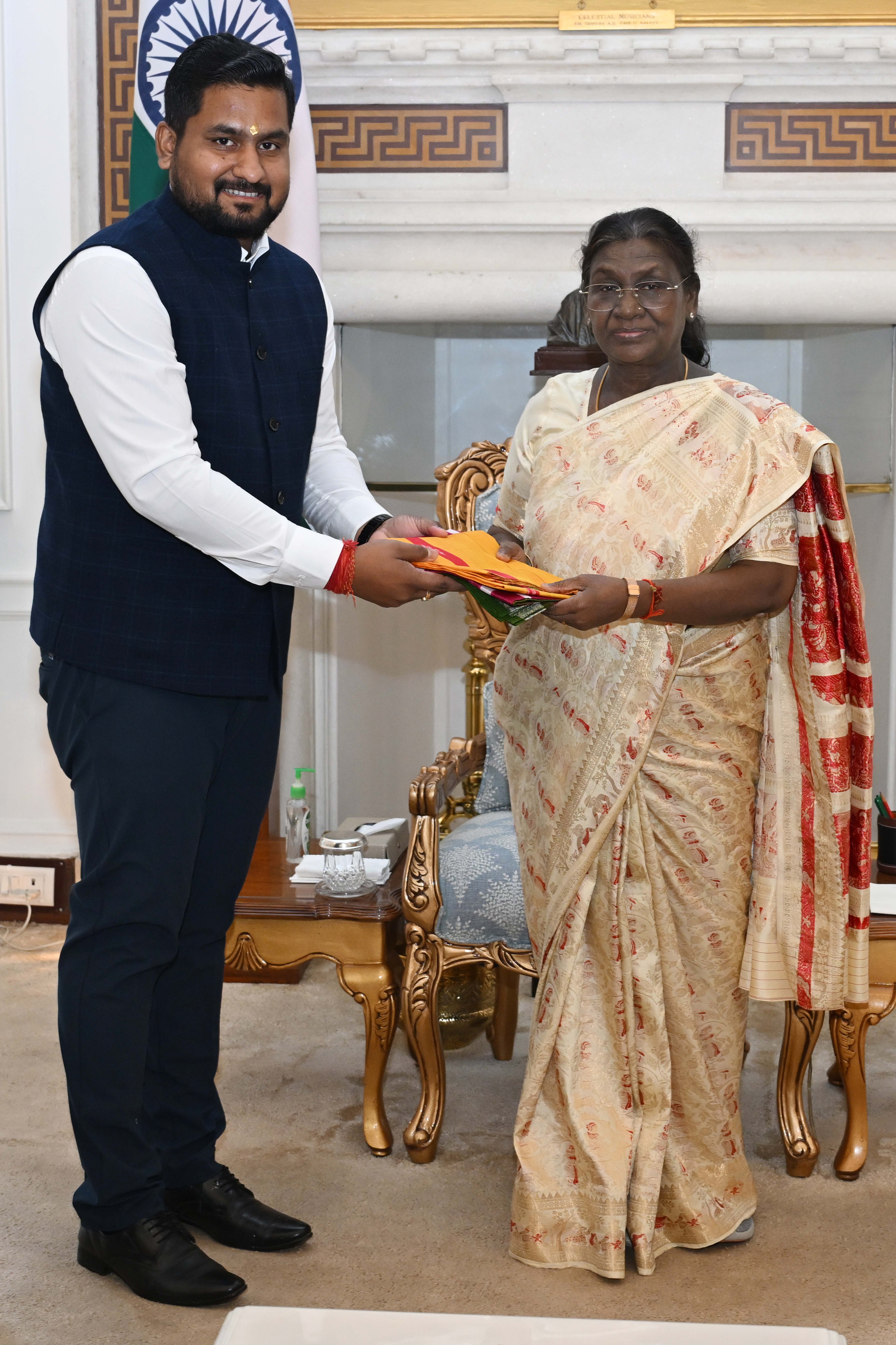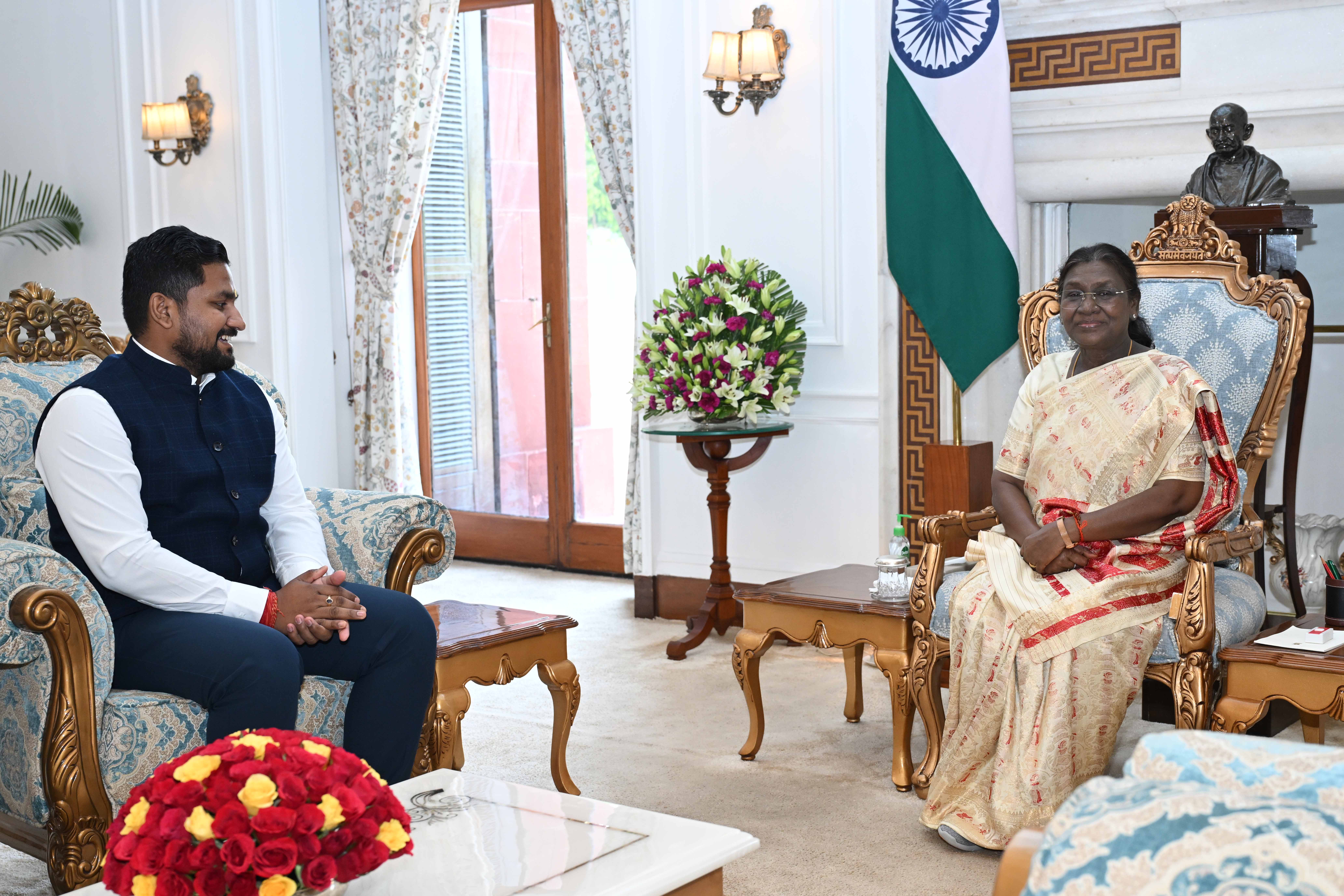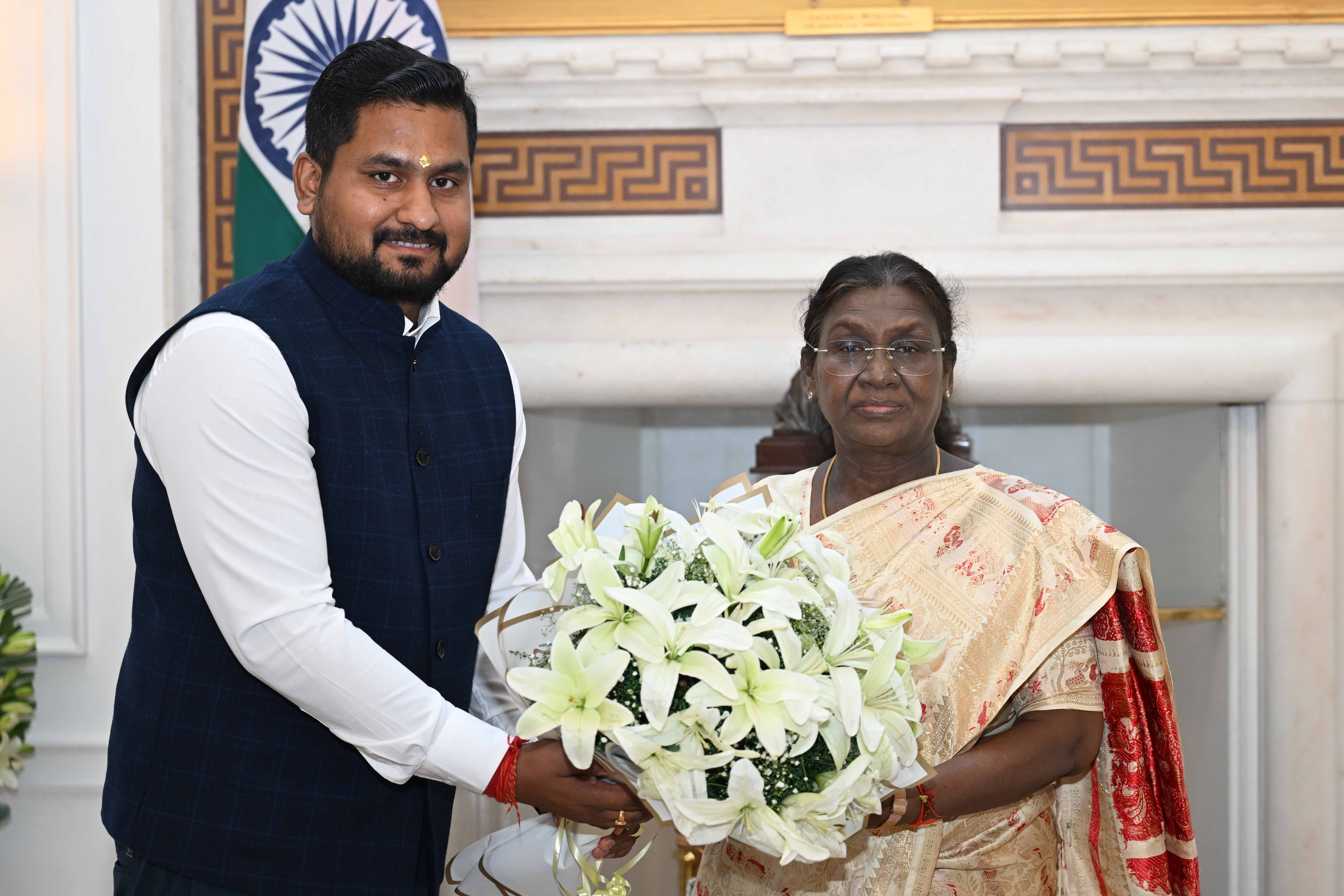 | Caption: | Shri Suryabansi Suraj, MoS (Ind) Higher Education Sports and Youth Services, Odisha meeting the President of India, Smt. Droupadi Murmu at Rashtrapati Bhavanon November 7, 2025. |