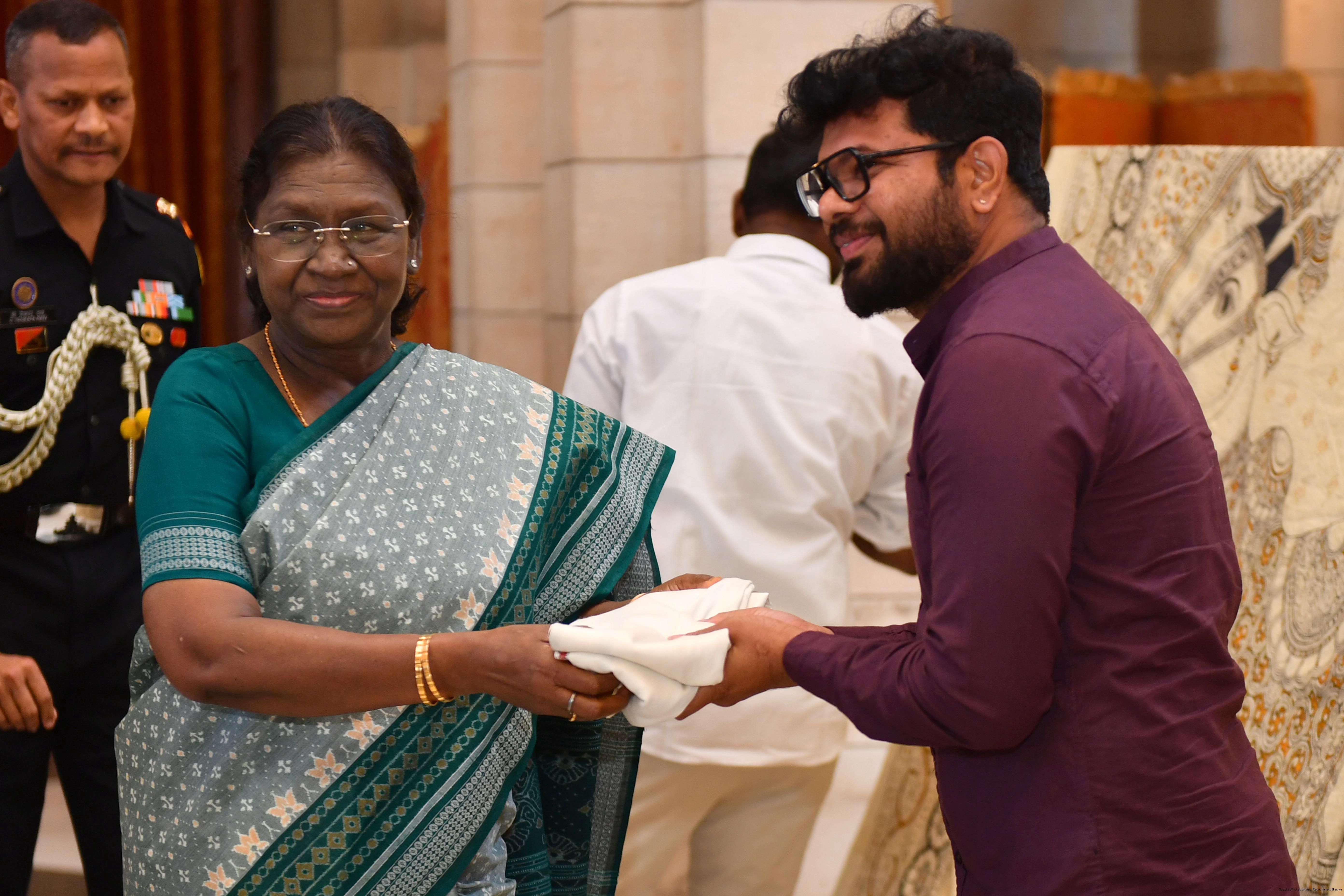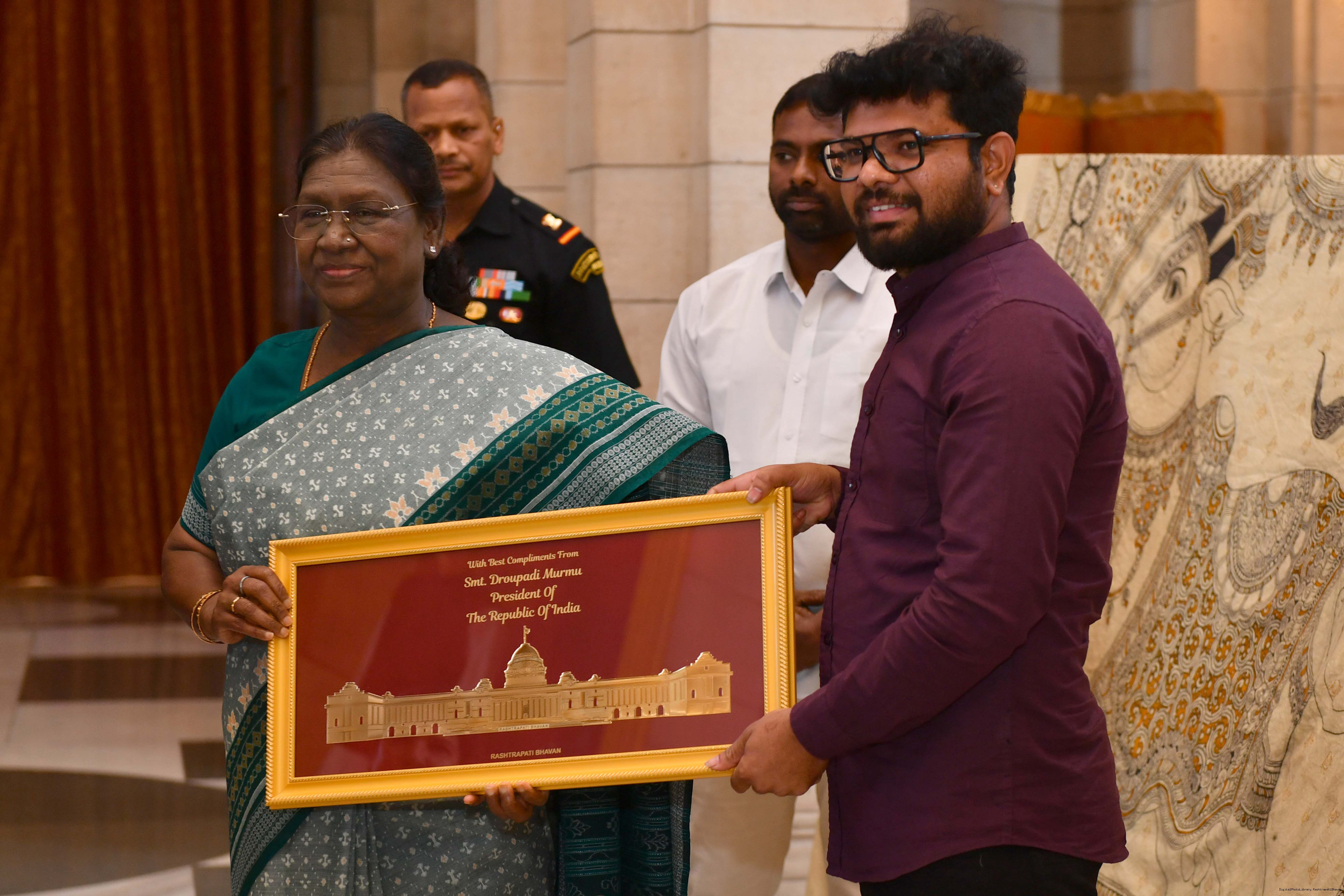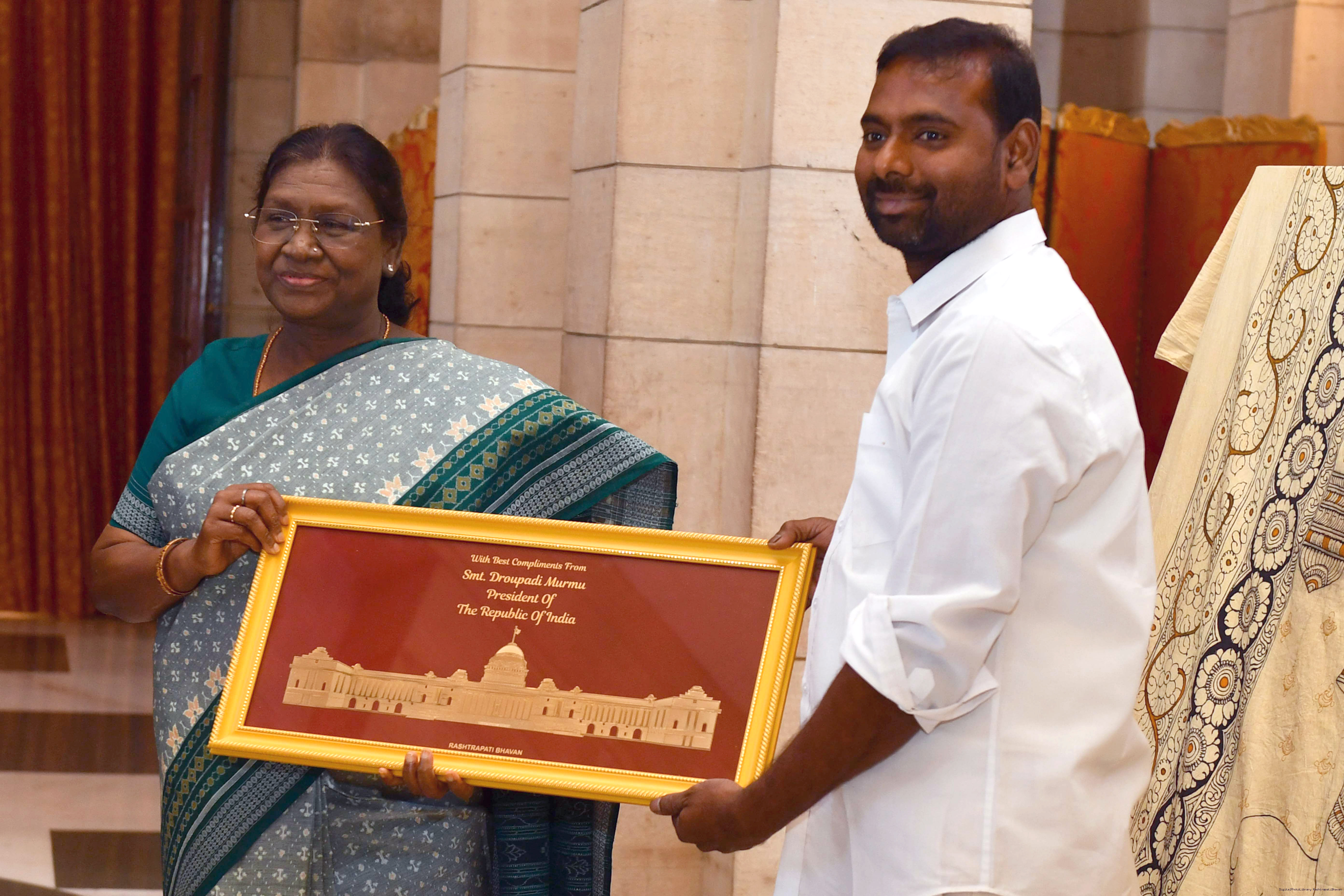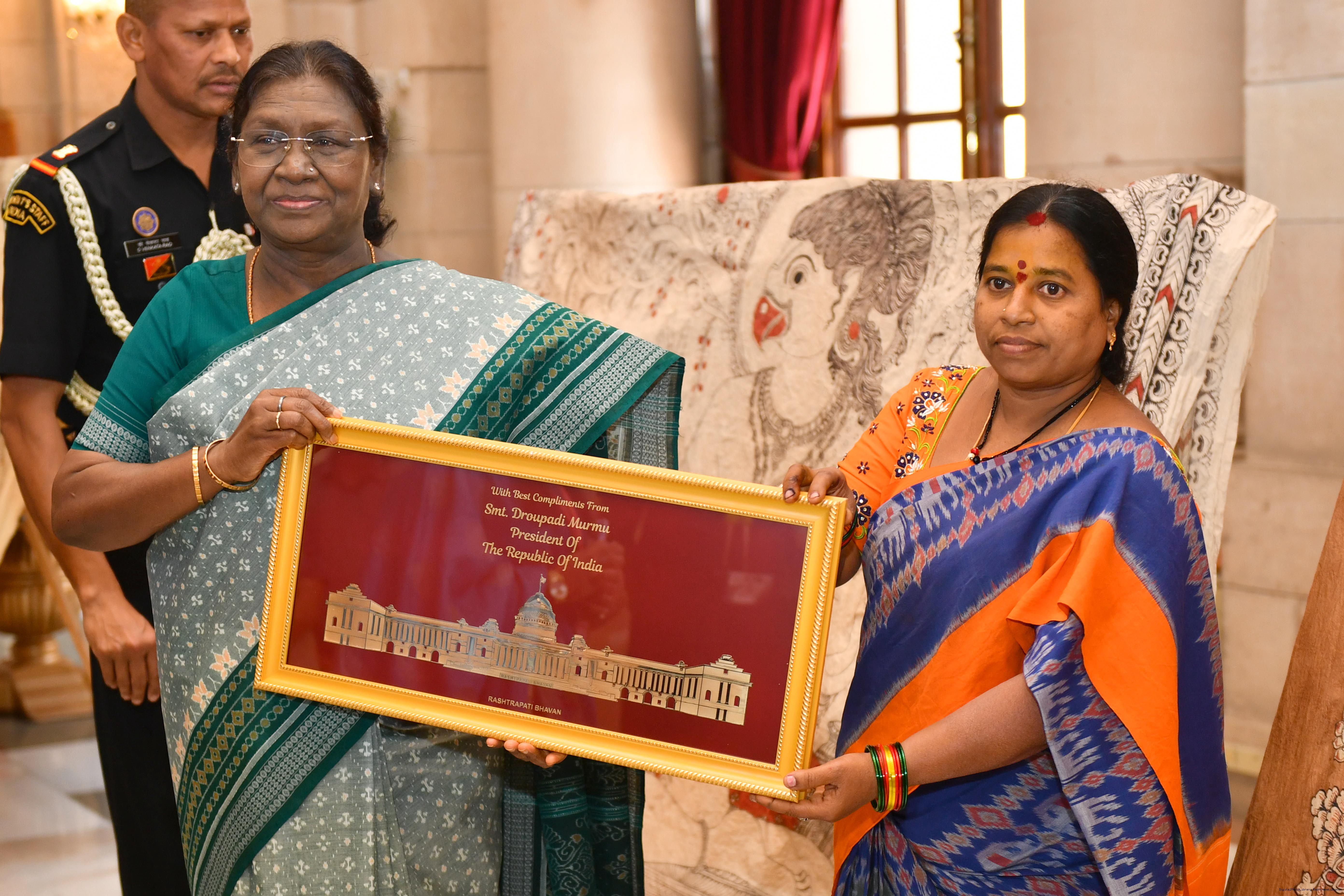 | Caption: | The President of India, Smt Droupadi Murmu met a group of artists of Kalamkari Art and witnessed their work at Rashtrapati Bhavan on February 24, 2026. |
