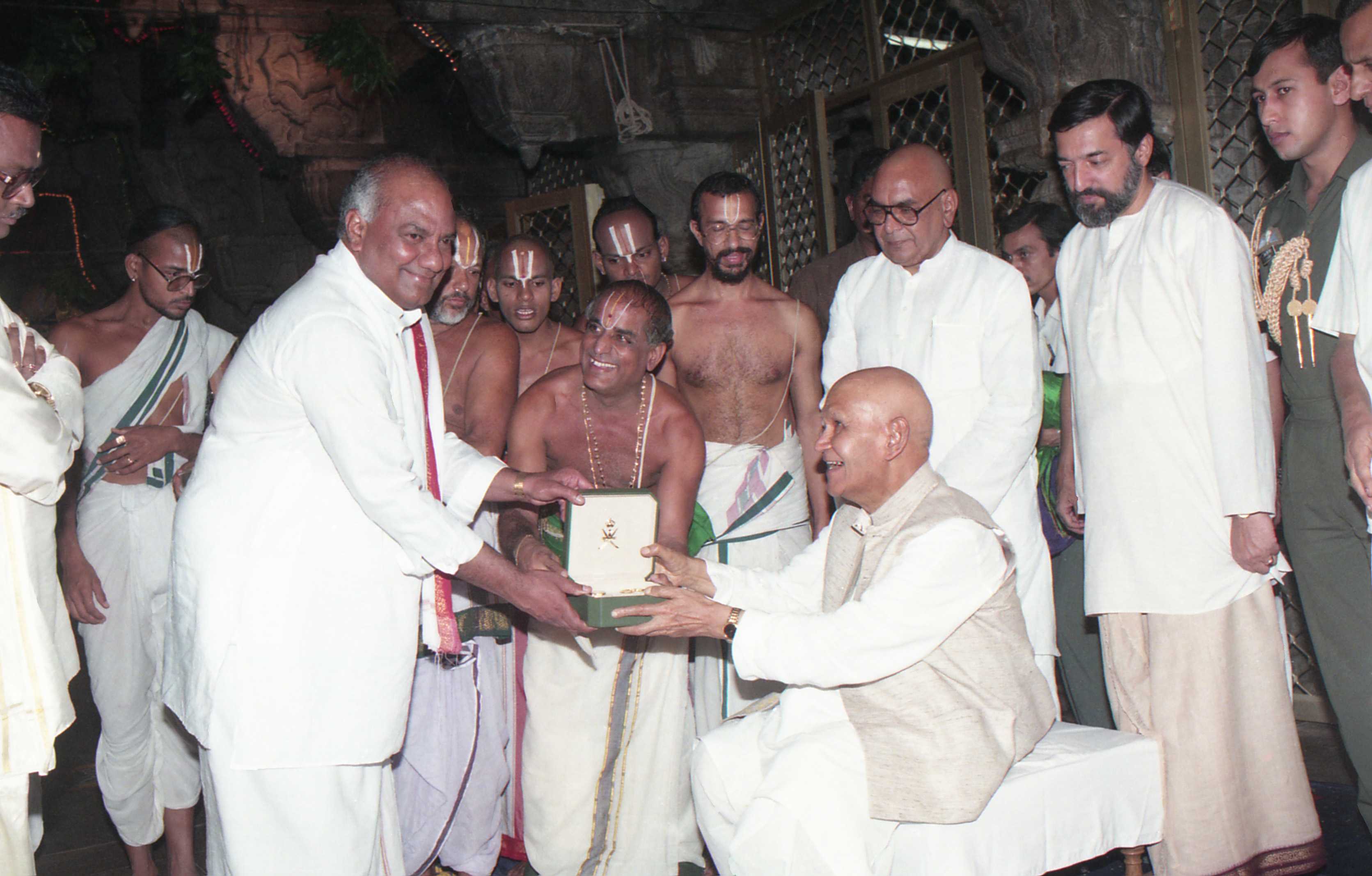 | Caption: | The President of India, Dr. Shankar Dayal Sharma visiting Srivari Temple, Tirumala, in Andhra Pradesh on October 24, 1996. |