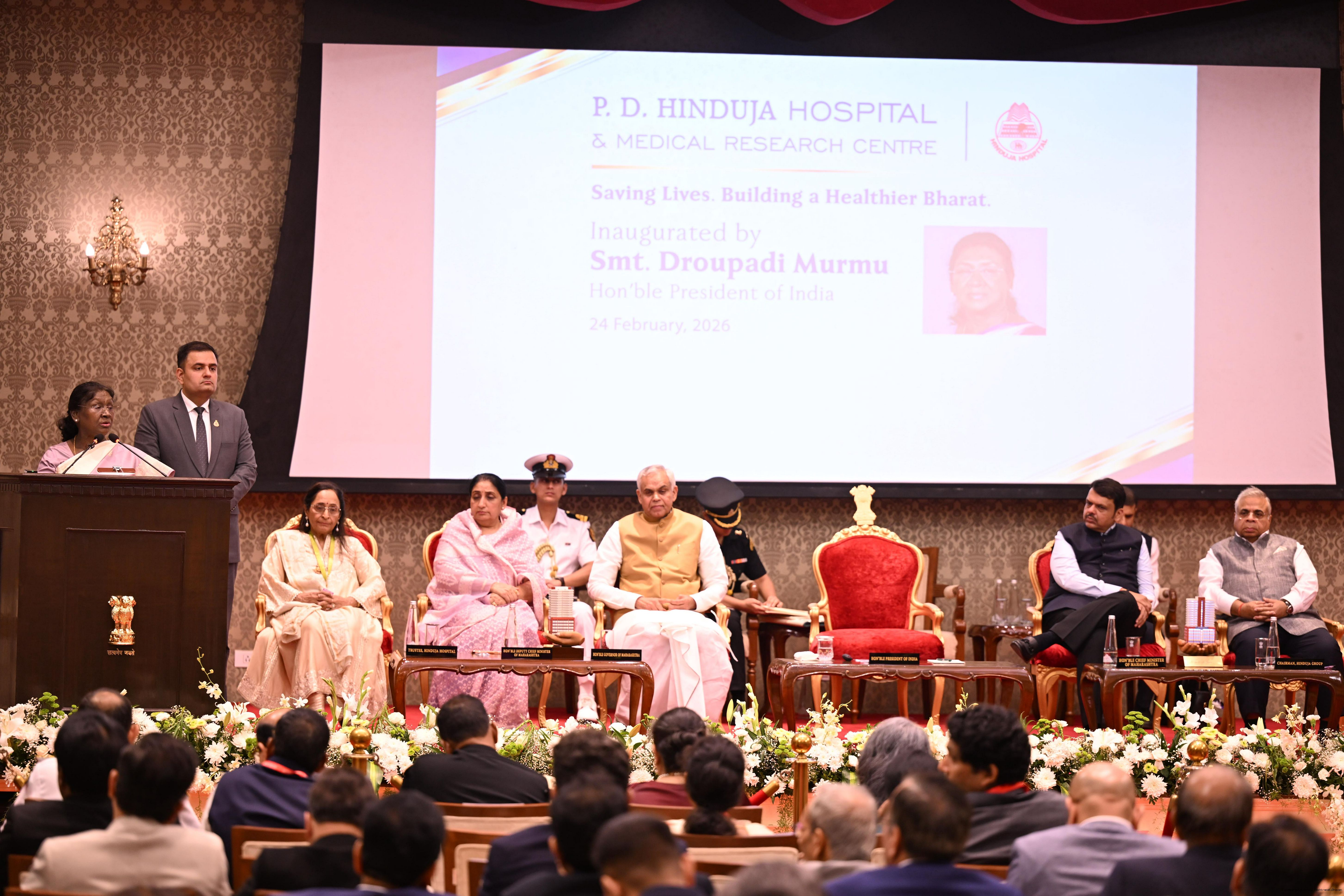 | Caption: | The President of India Smt Droupadi Murmu inaugurated a nationwide campaign ‘Saving Lives and Building a Healthier Bharat’, being organised by PD Hinduja Hospital, at Lok Bhavan, Mumbai on February 24, 2026. |
