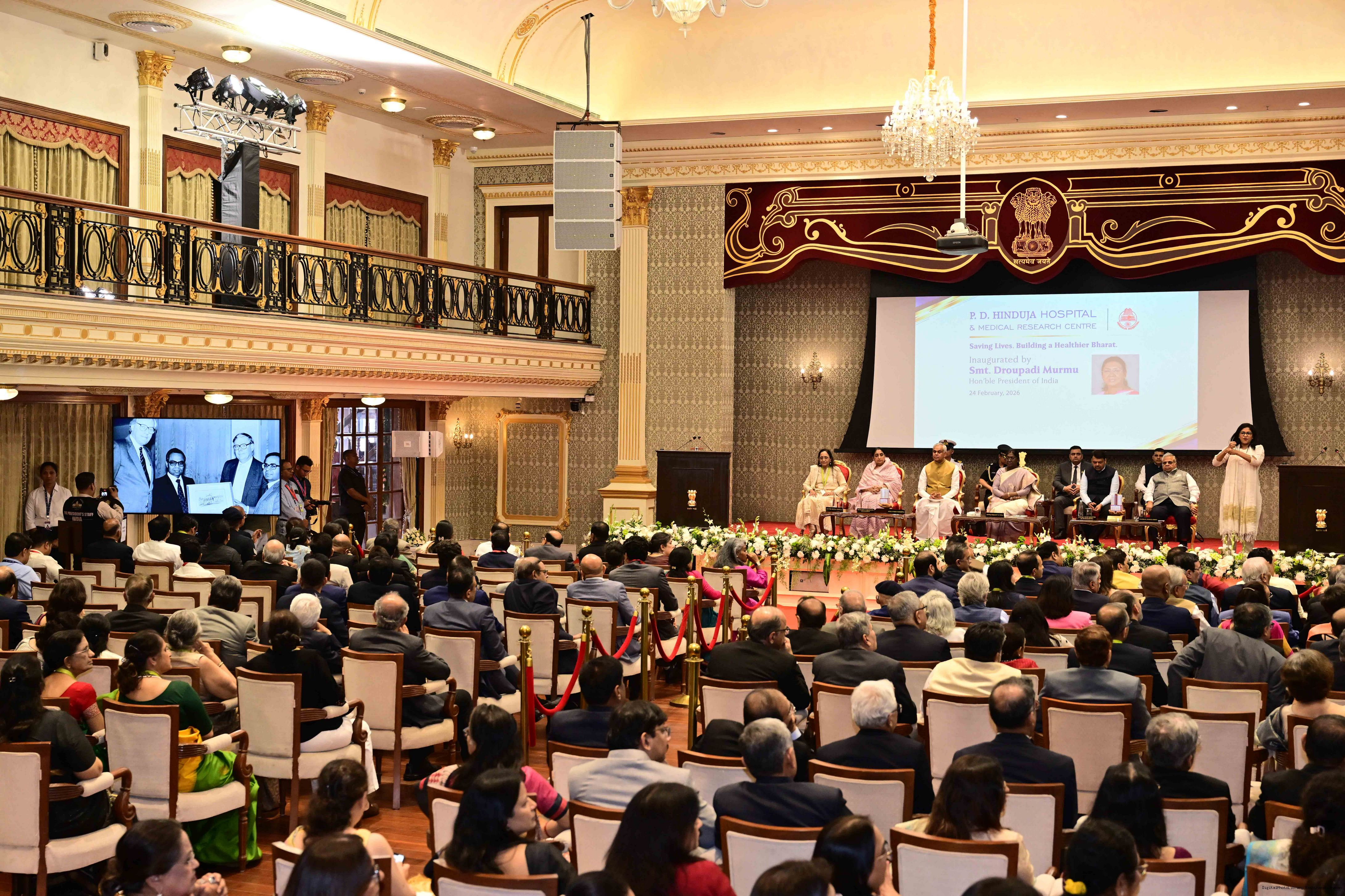 | Caption: | The President of India Smt Droupadi Murmu inaugurated a nationwide campaign ‘Saving Lives and Building a Healthier Bharat’, being organised by PD Hinduja Hospital, at Lok Bhavan, Mumbai on February 24, 2026. |