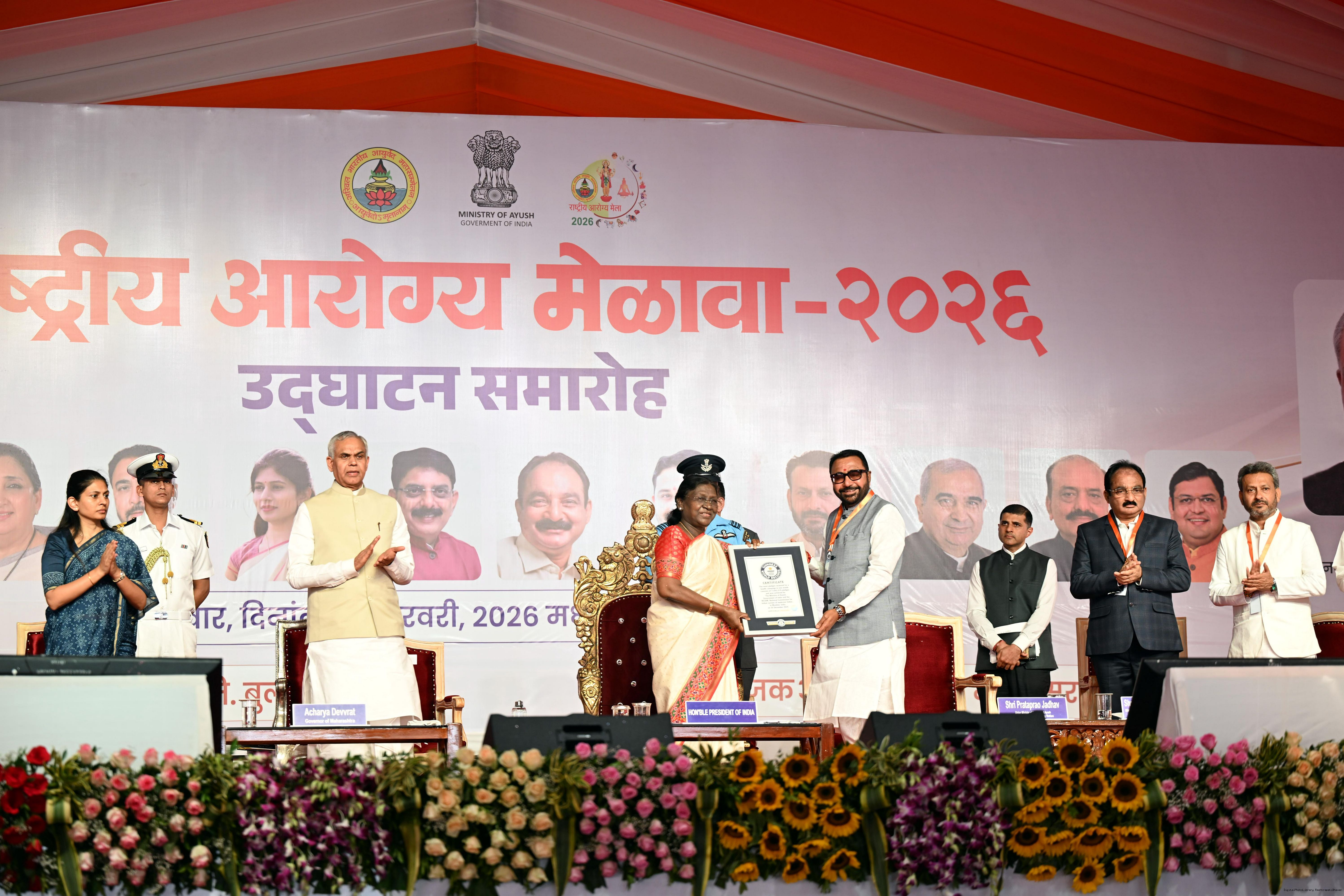 | Caption: | The President of India Smt Droupadi Murmu inaugurated the National Arogya Fair 2026 in Shegaon, Buldhana, Maharashtra on February 25, 2026. |