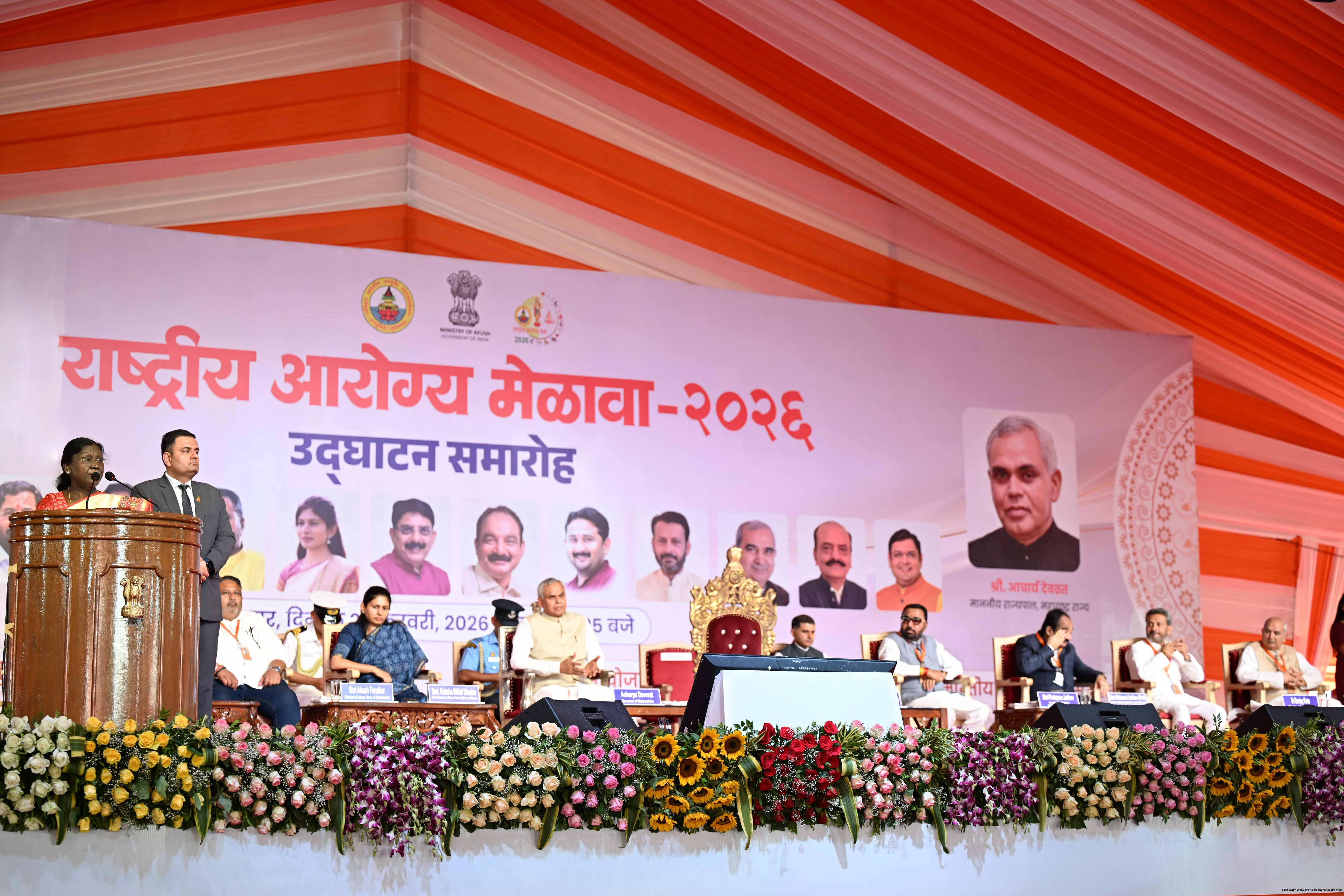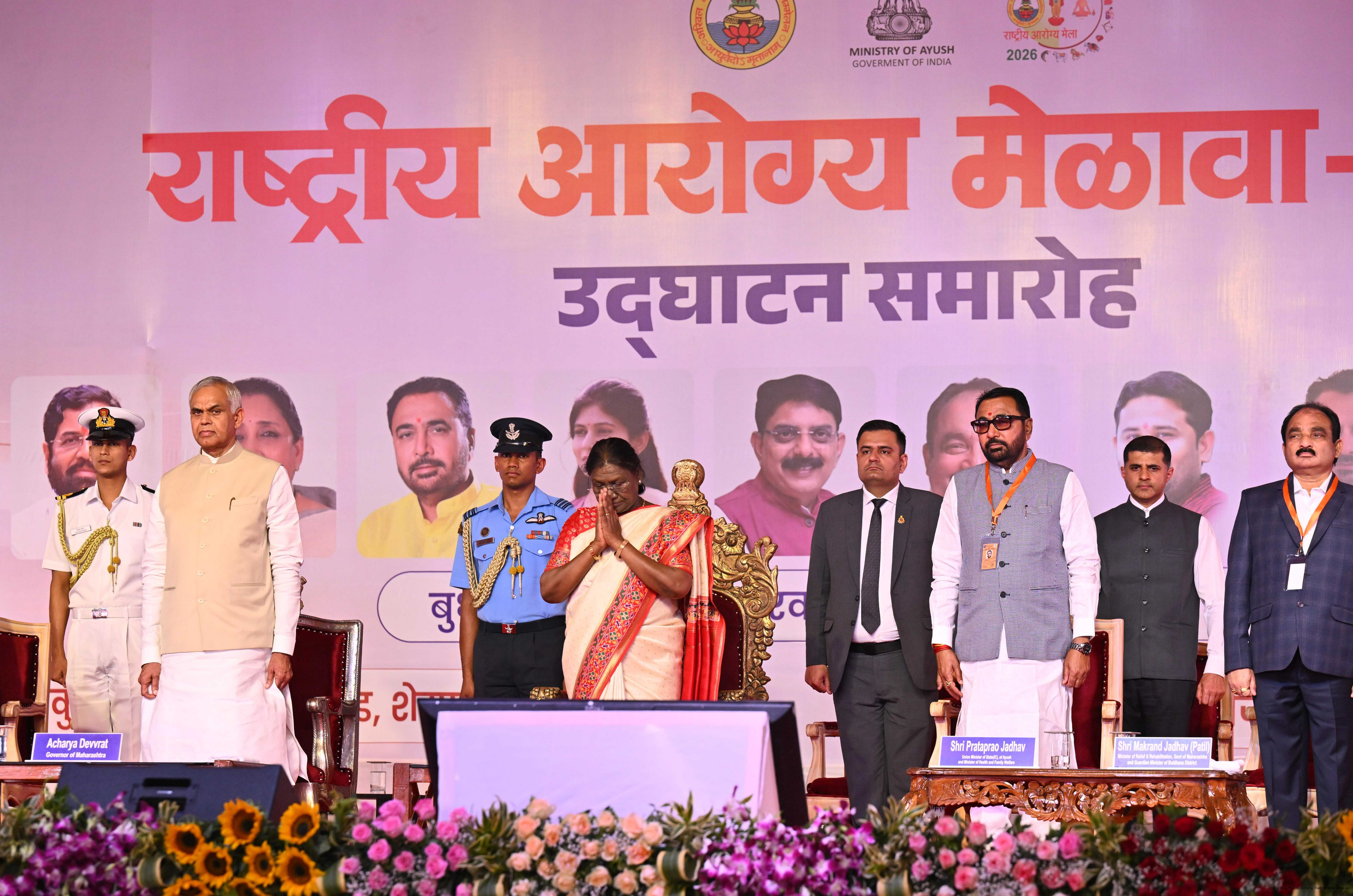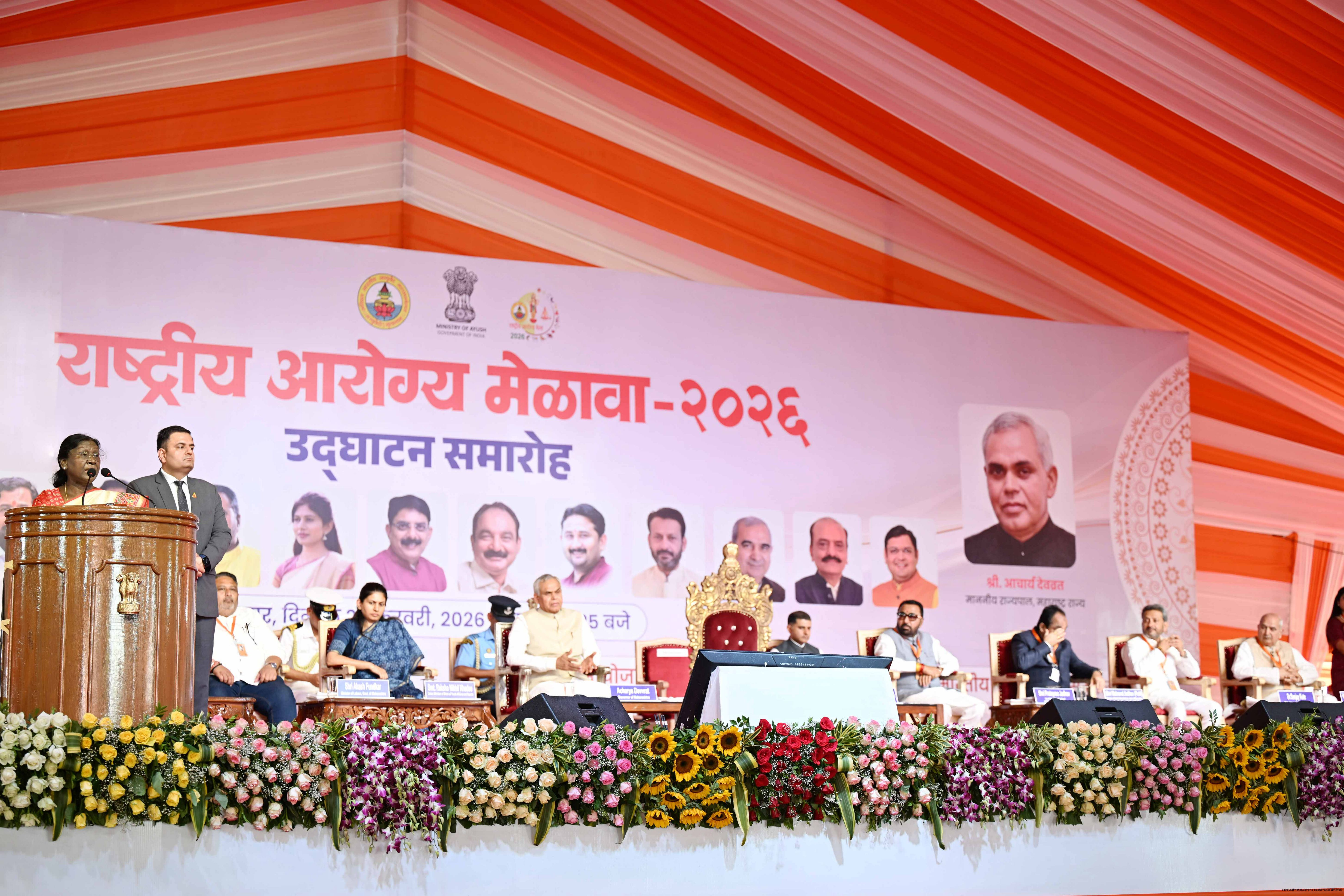 | Caption: | The President of India Smt Droupadi Murmu inaugurated the National Arogya Fair 2026 in Shegaon, Buldhana, Maharashtra on February 25, 2026. |