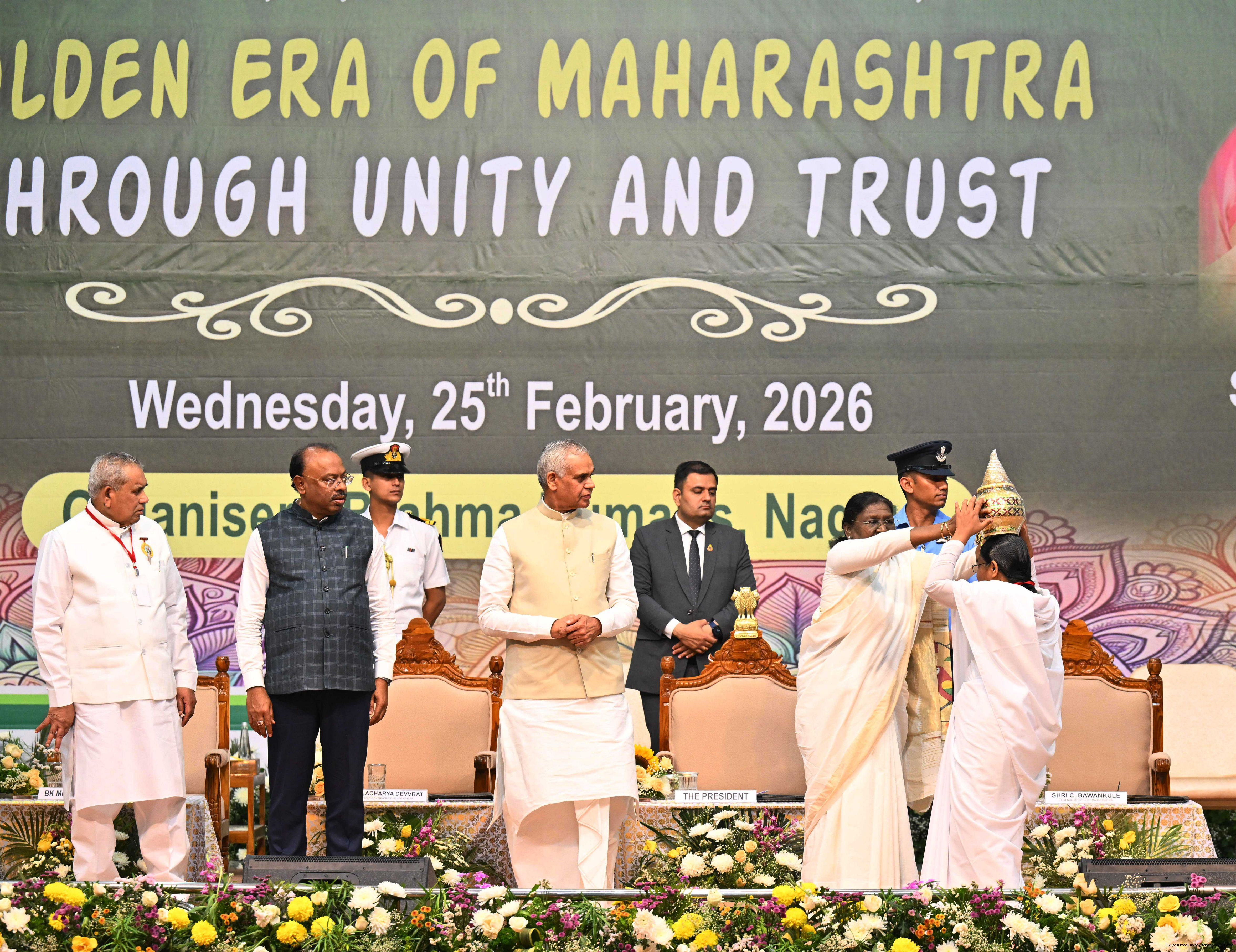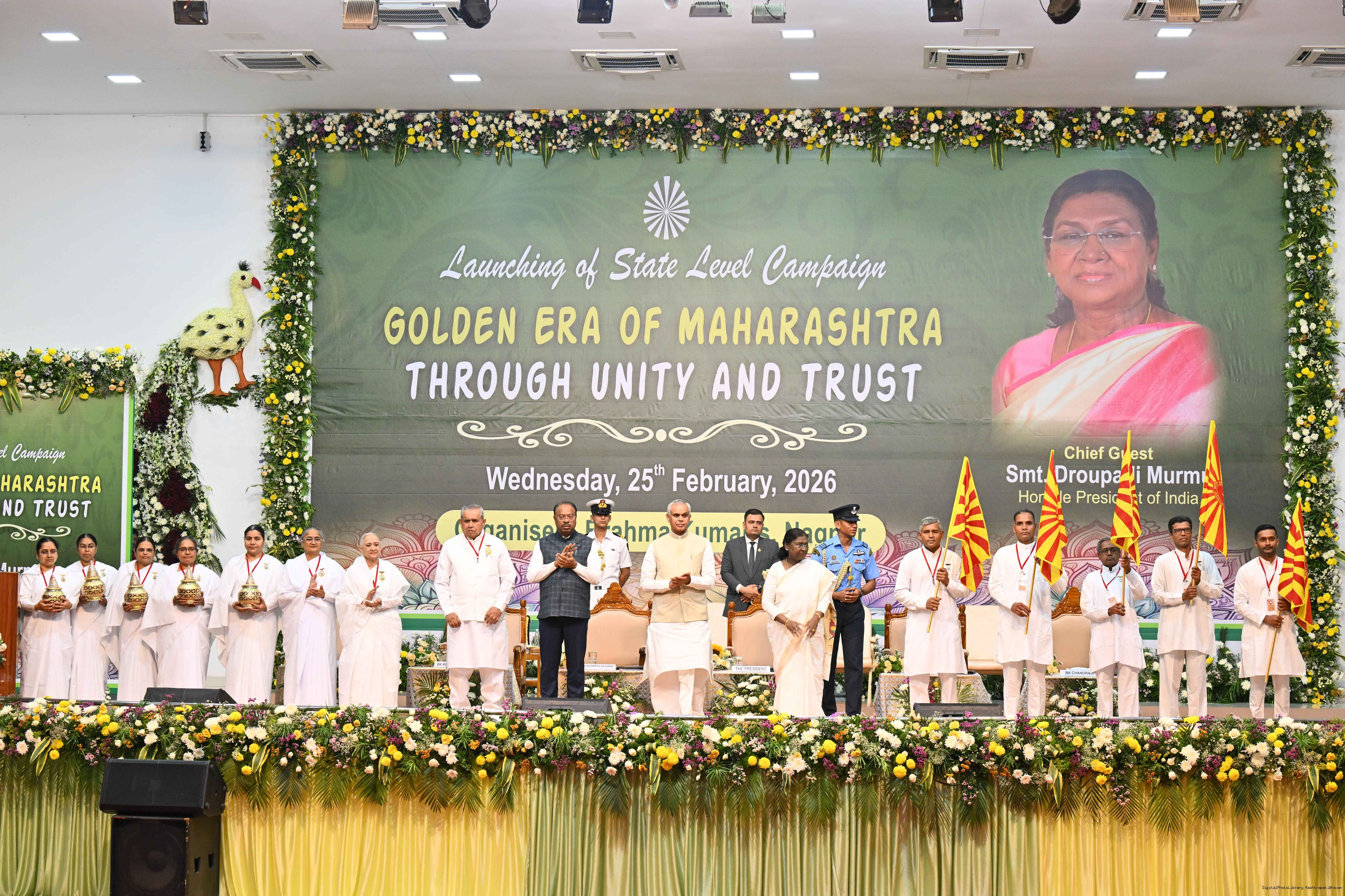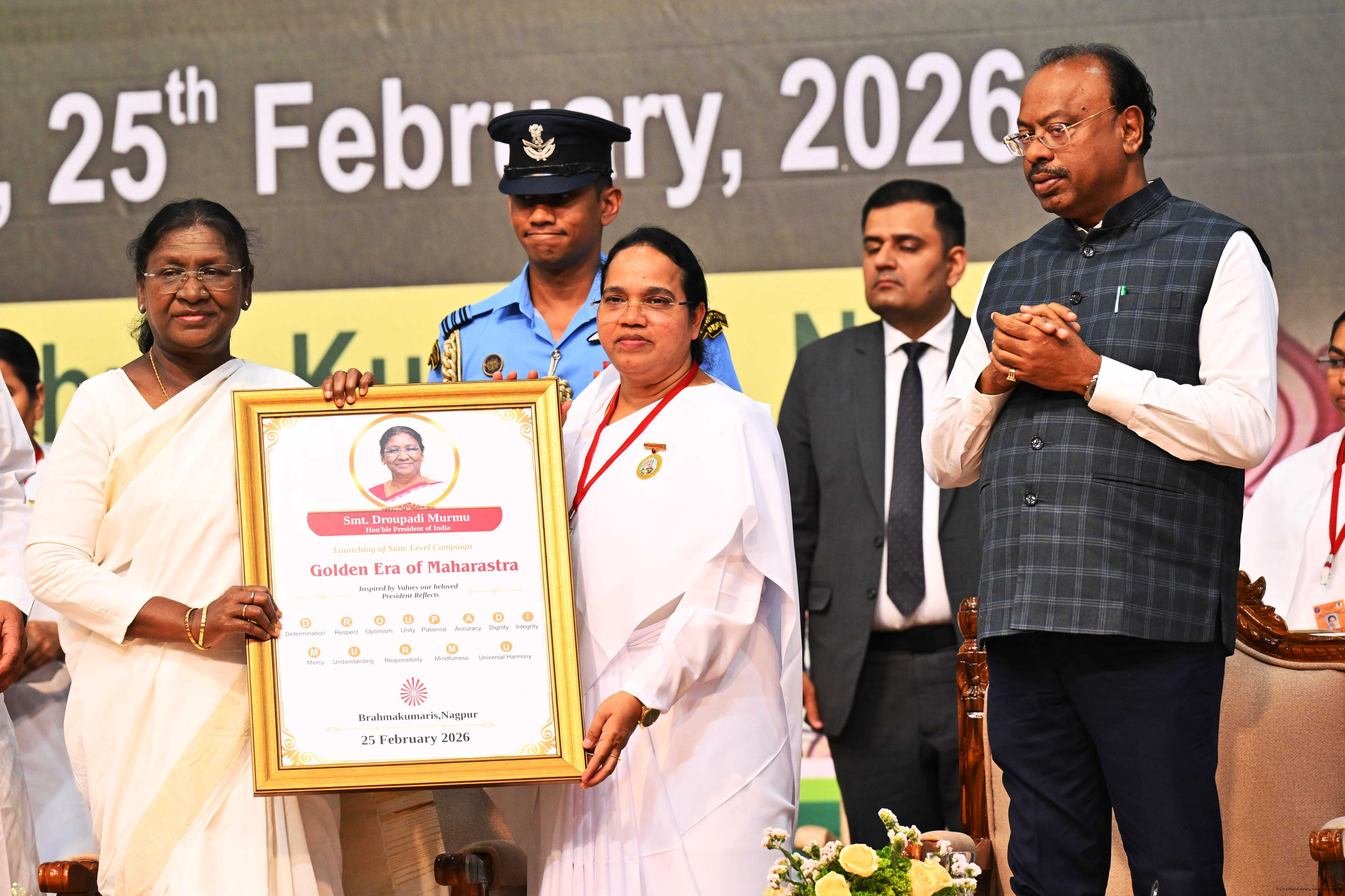 | Caption: | The President of India, Smt Droupadi Murmu graced the state-level launch of ‘Golden Era of Maharashtra through Unity and Trust’, organised by Brahma Kumaris at Vishwa Shanti Sarovar, Nagpur, Maharashtra on February 25, 2026. |