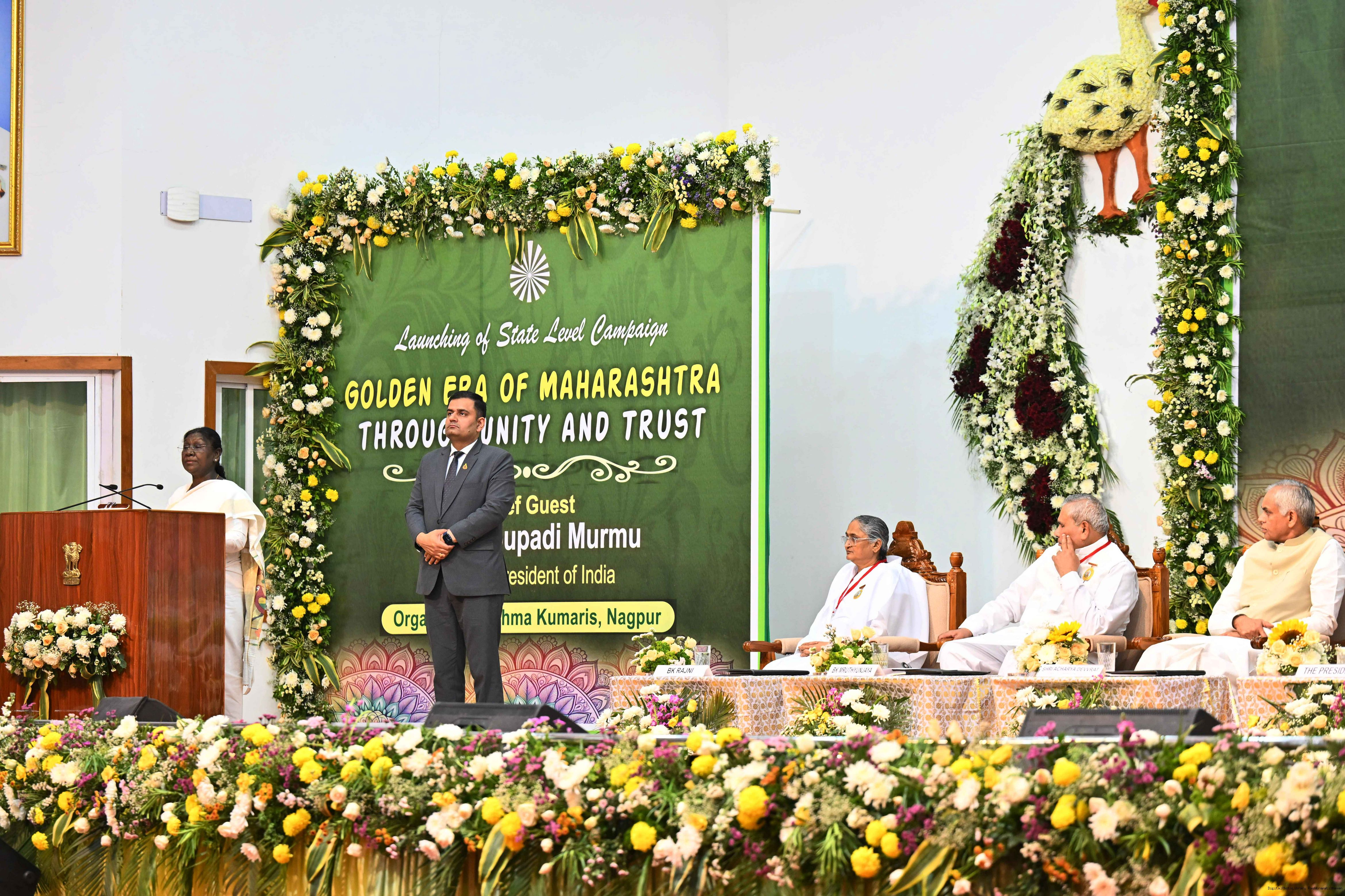 | Caption: | The President of India, Smt Droupadi Murmu graced the state-level launch of ‘Golden Era of Maharashtra through Unity and Trust’, organised by Brahma Kumaris at Vishwa Shanti Sarovar, Nagpur, Maharashtra on February 25, 2026. |