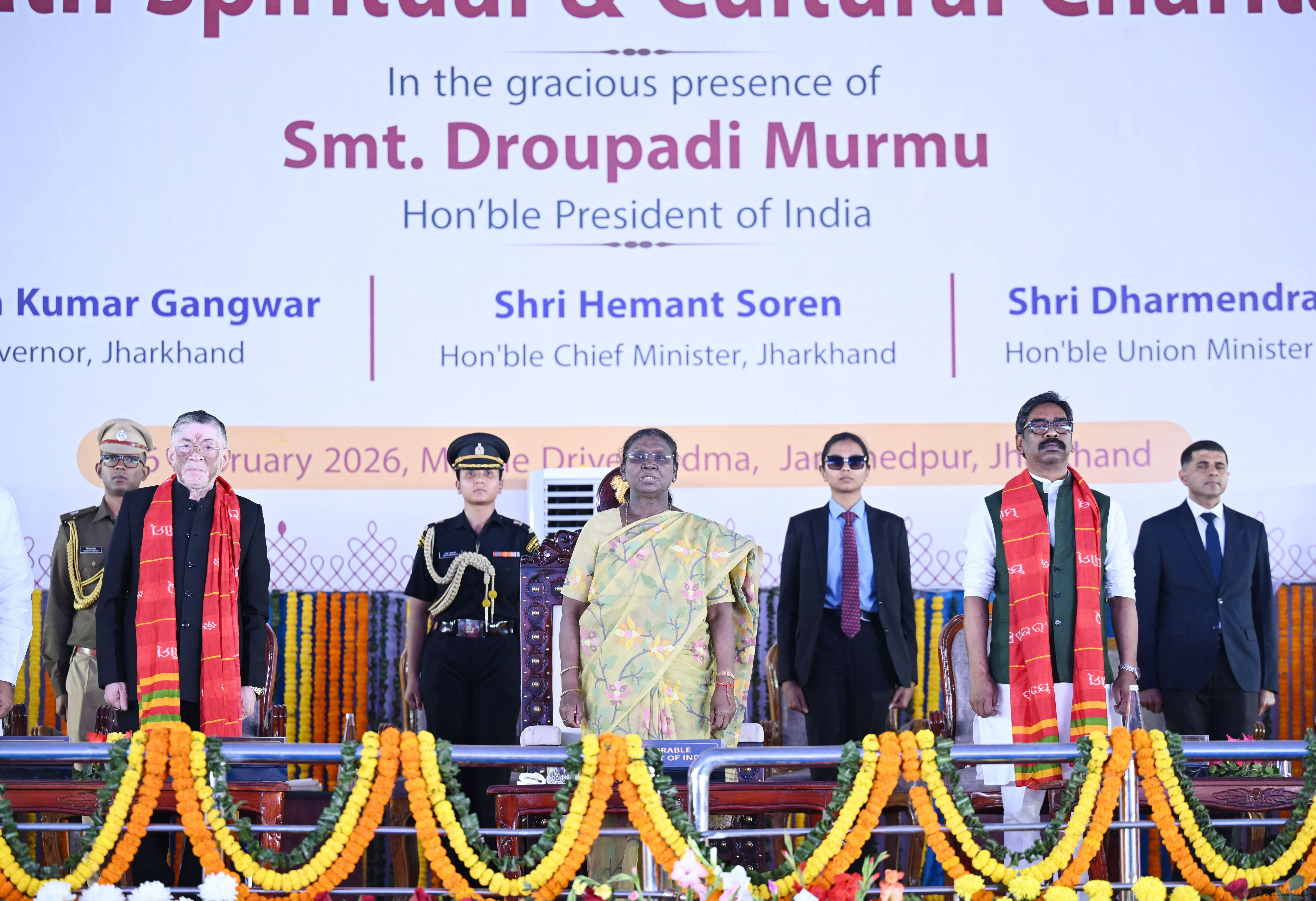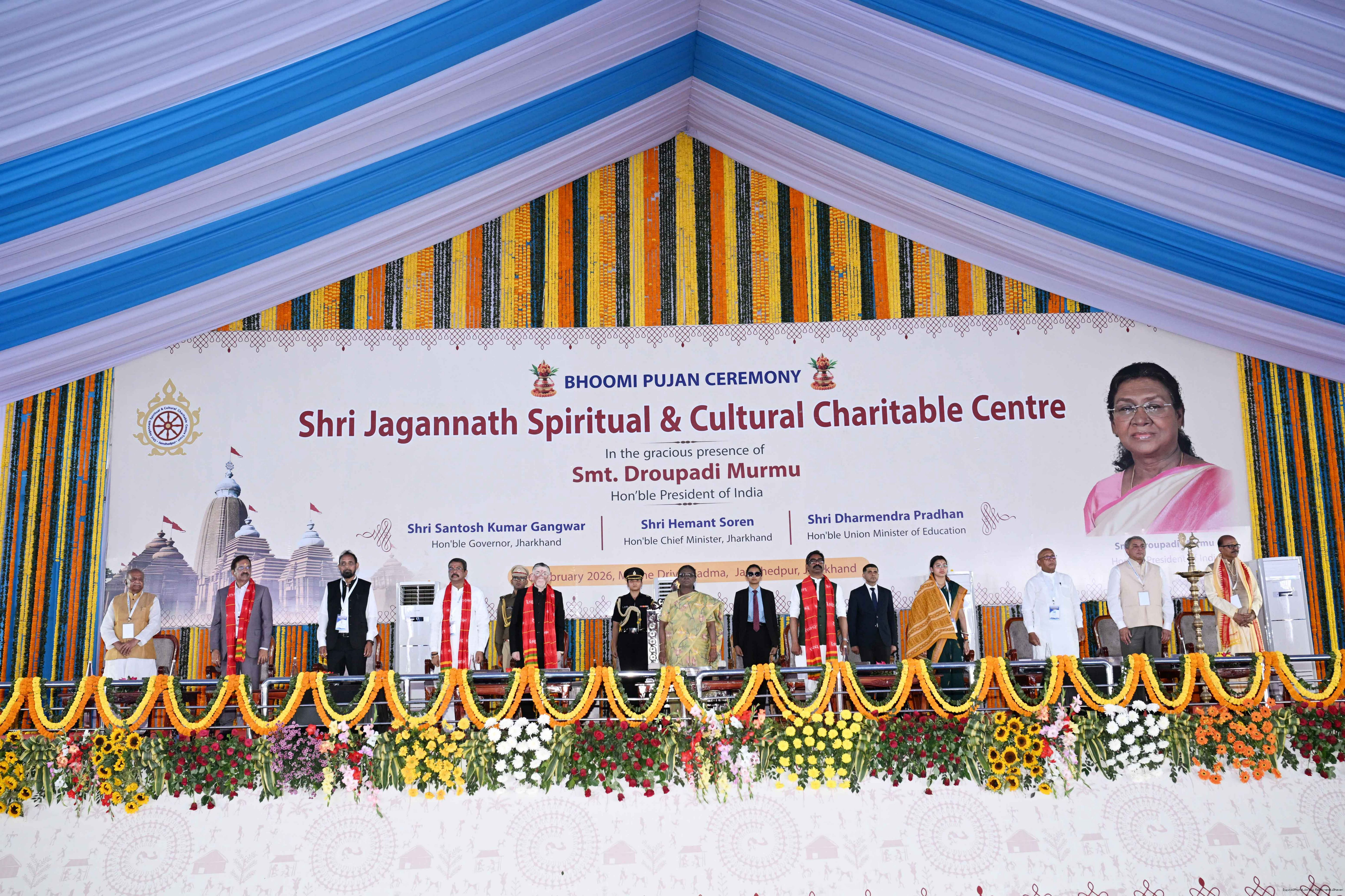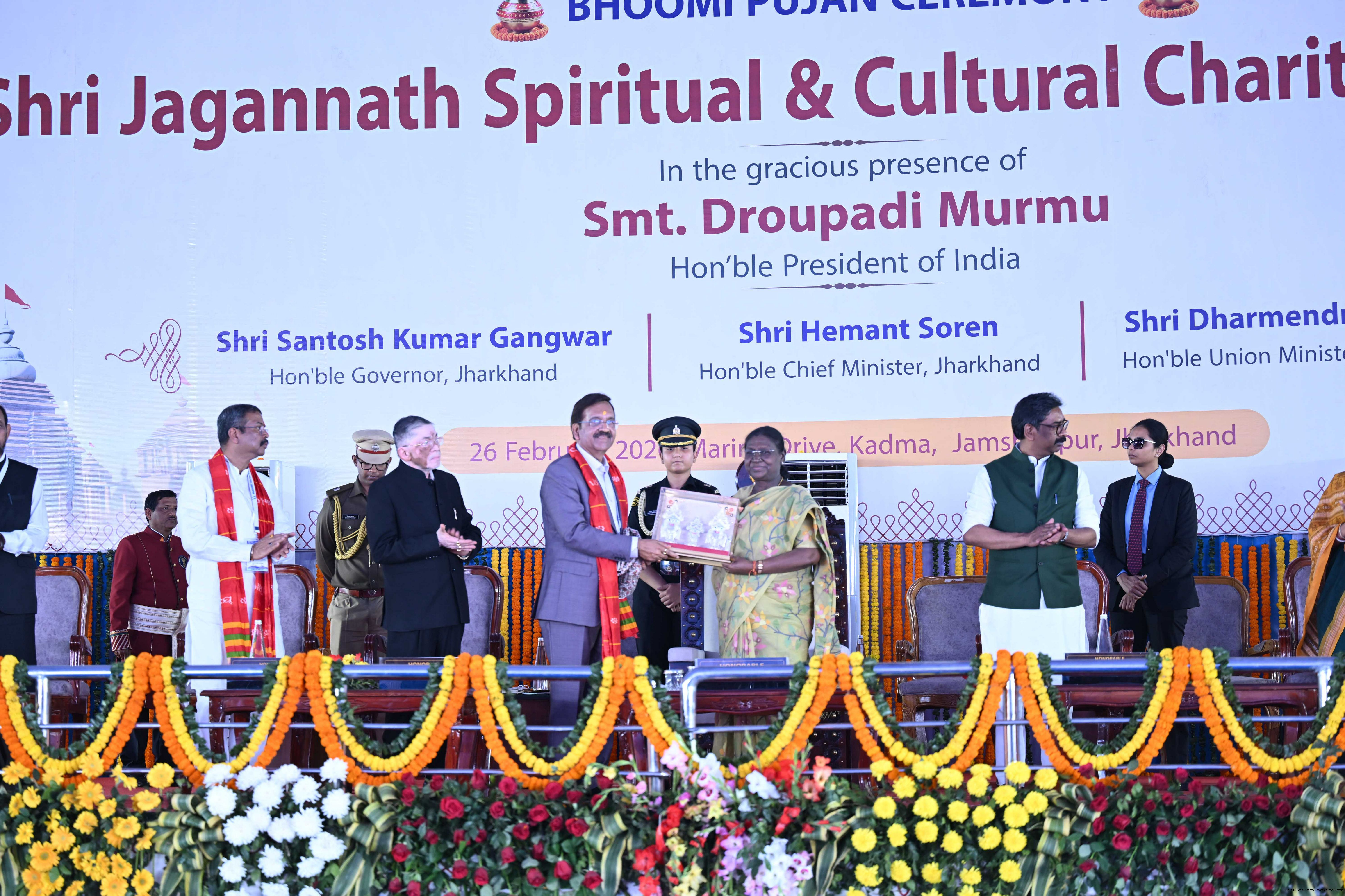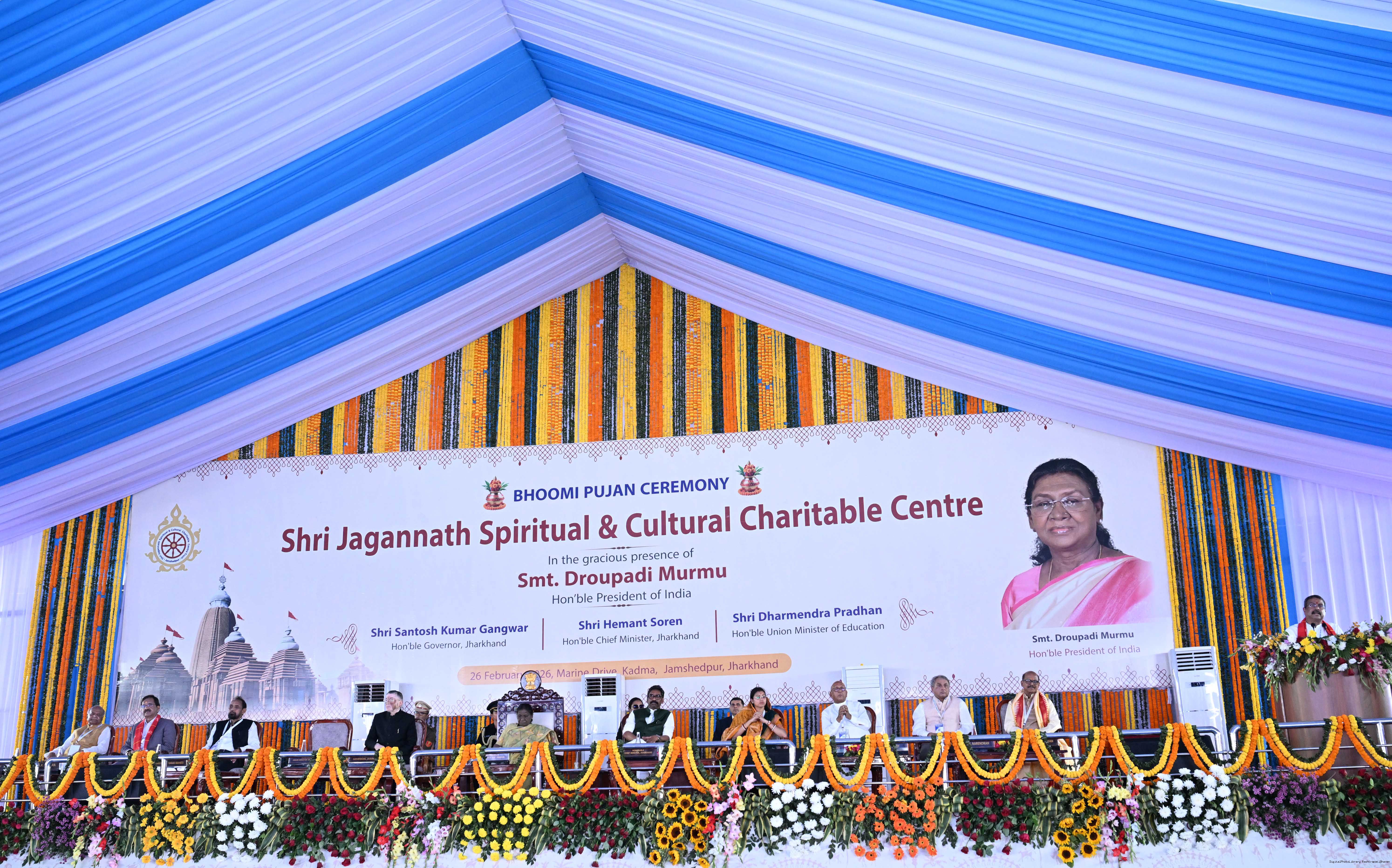 | Caption: | The President of India Smt Droupadi Murmu participated in the Bhoomi pujan ceremony of Sri Jagannath Temple at Jamshedpur, Jharkhand on February 26, 2026. |