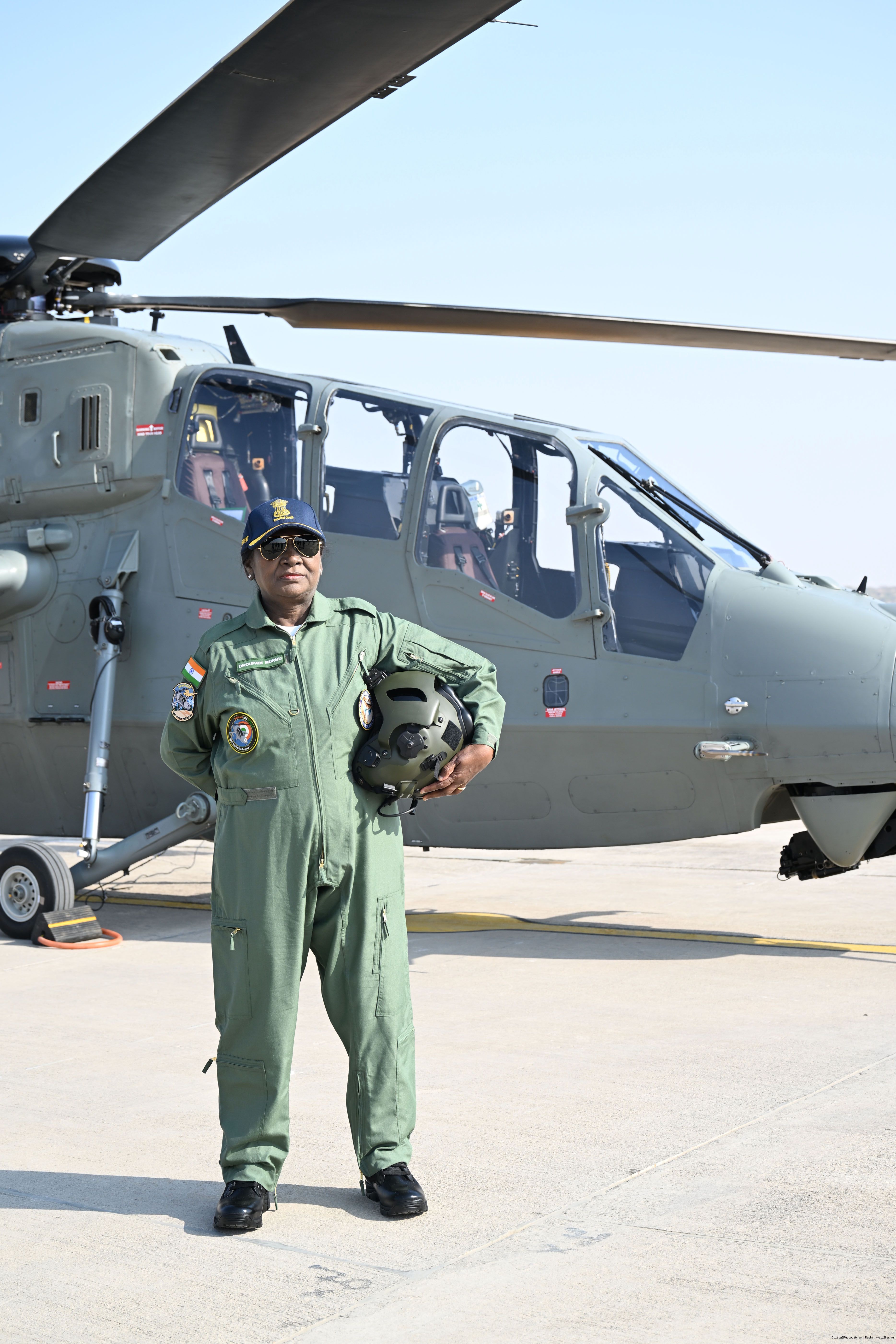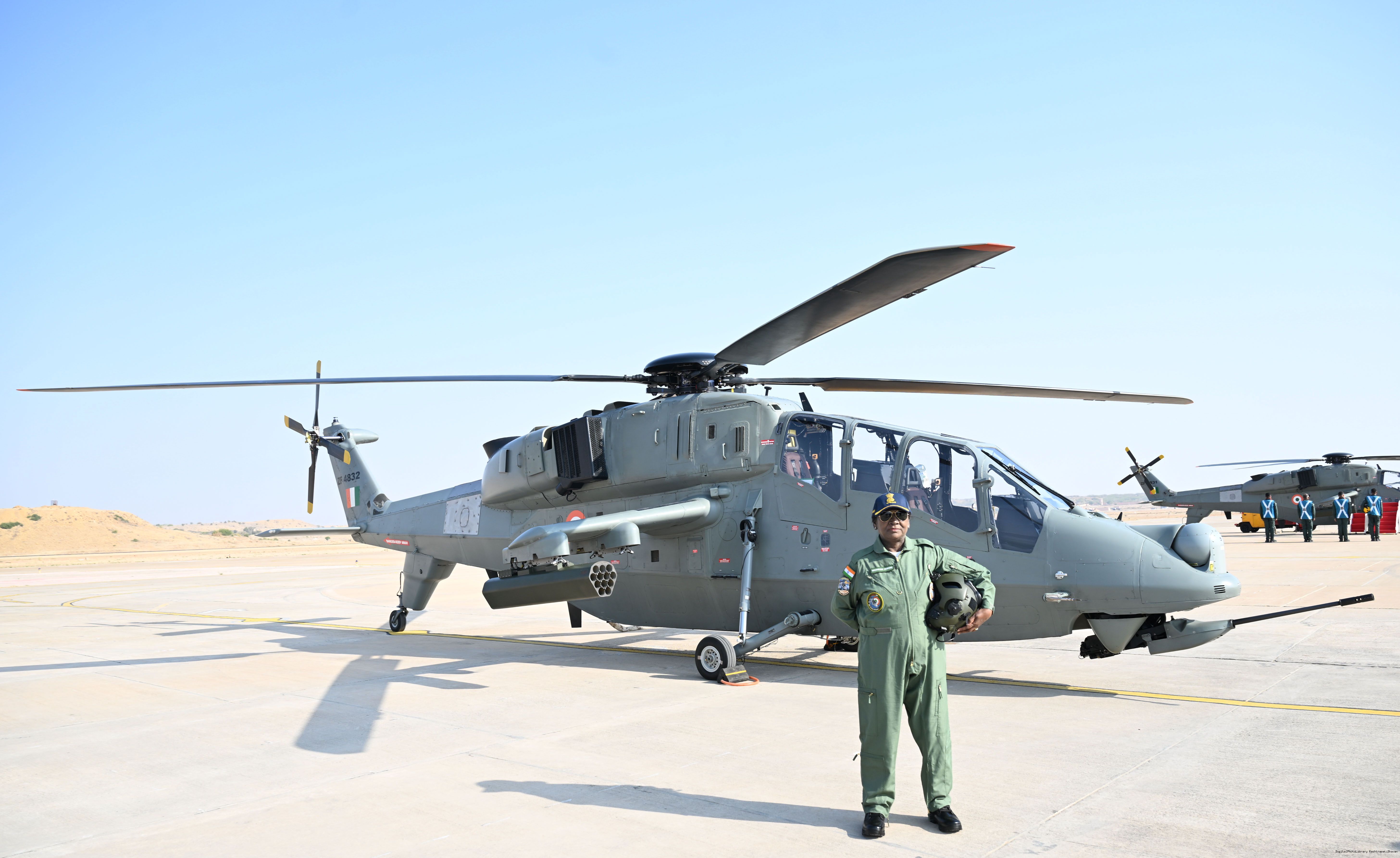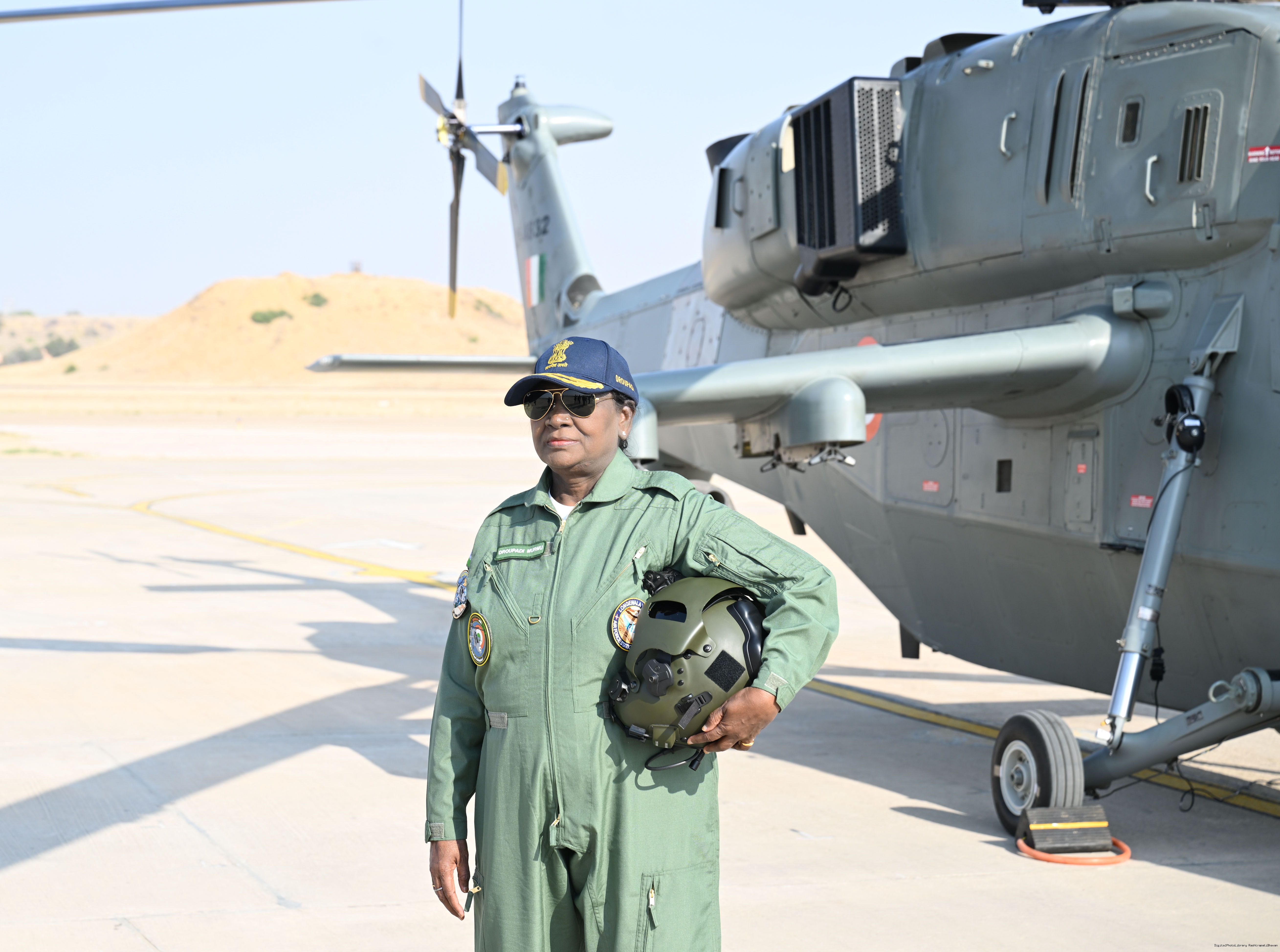 | Caption: | The President of India, Smt Droupadi Murmu undertook a sortie in the indigenous Light Combat Helicopter PRACHAND at Air Force Station Jaisalmer, Rajasthan on February 27, 2026. |