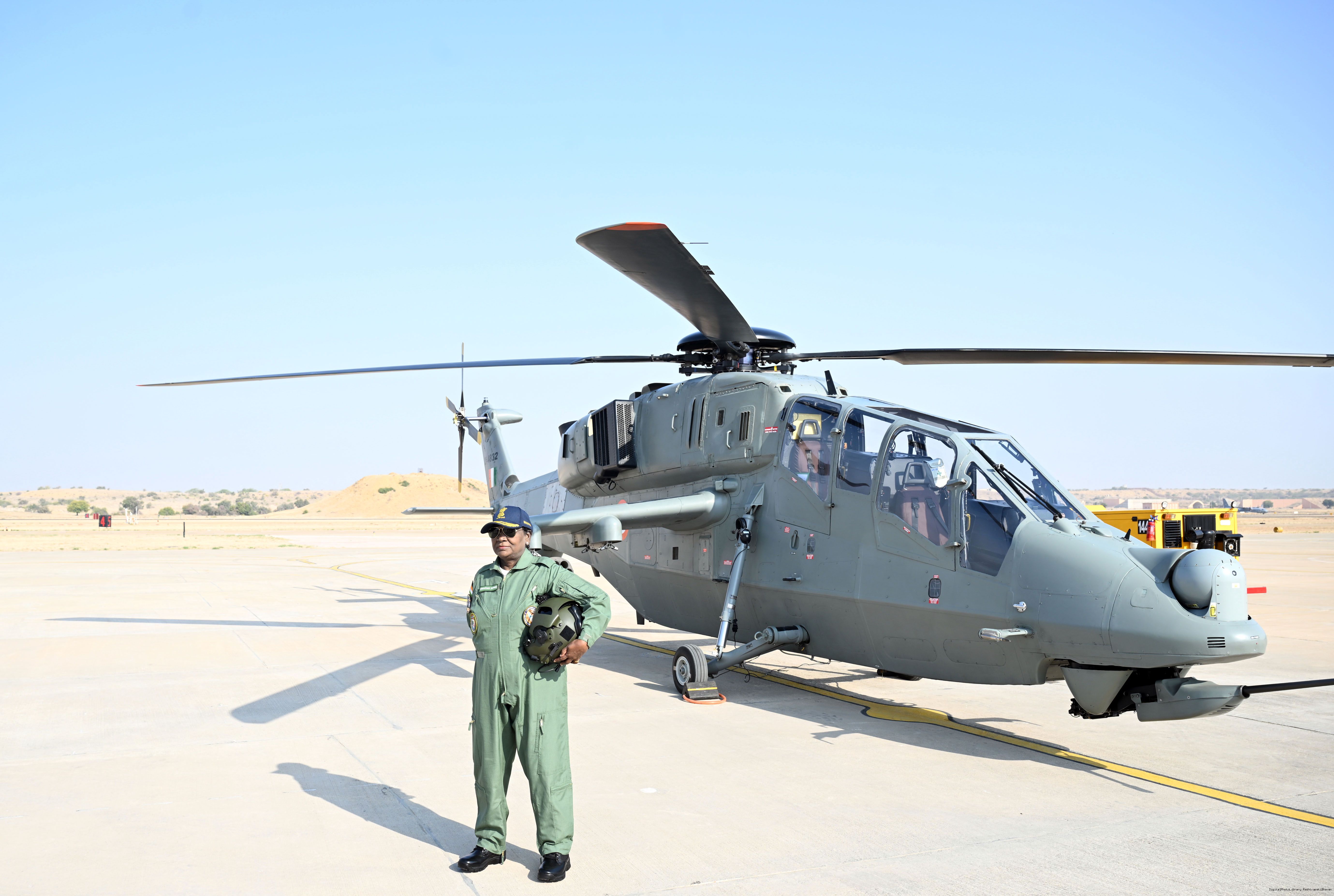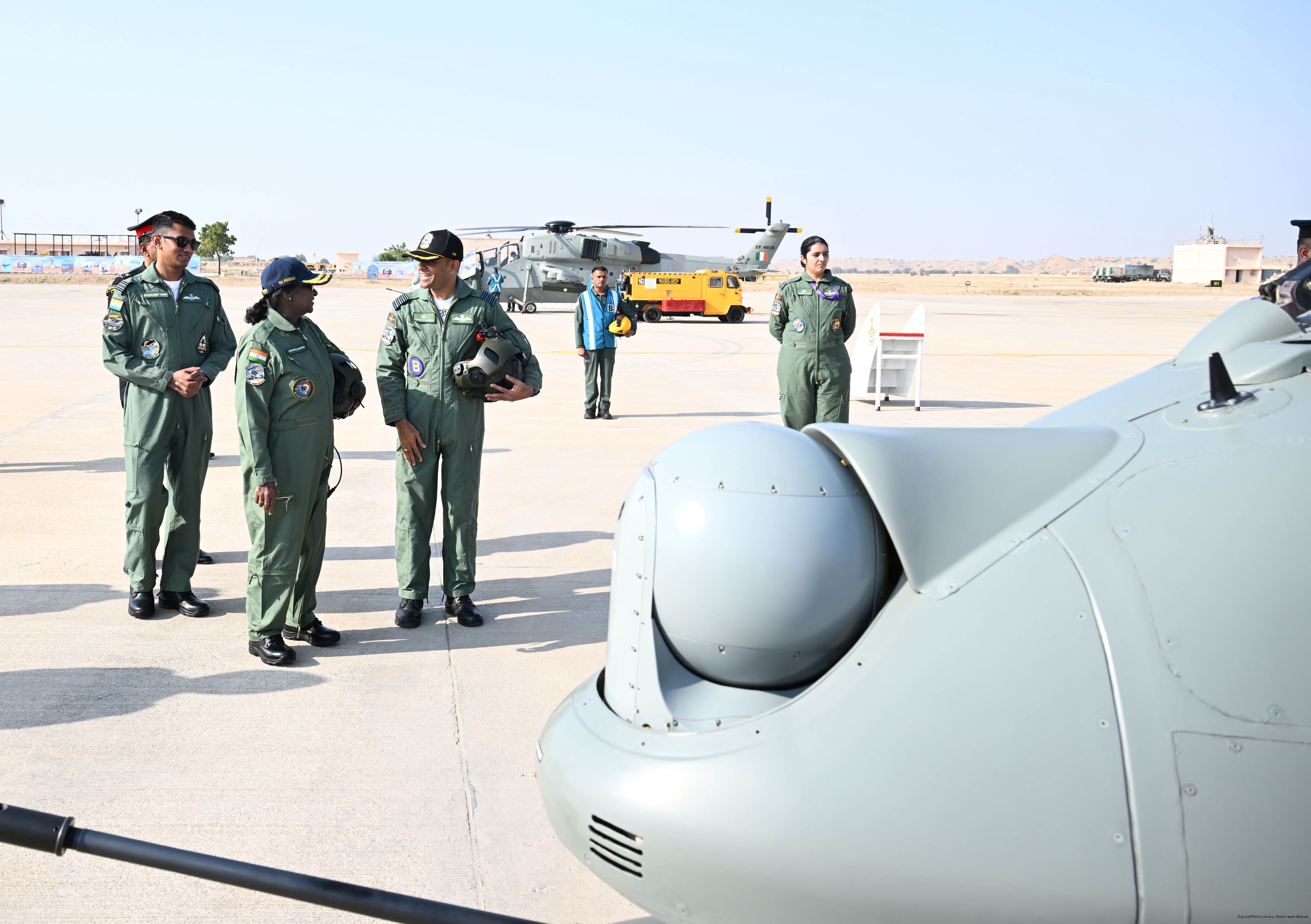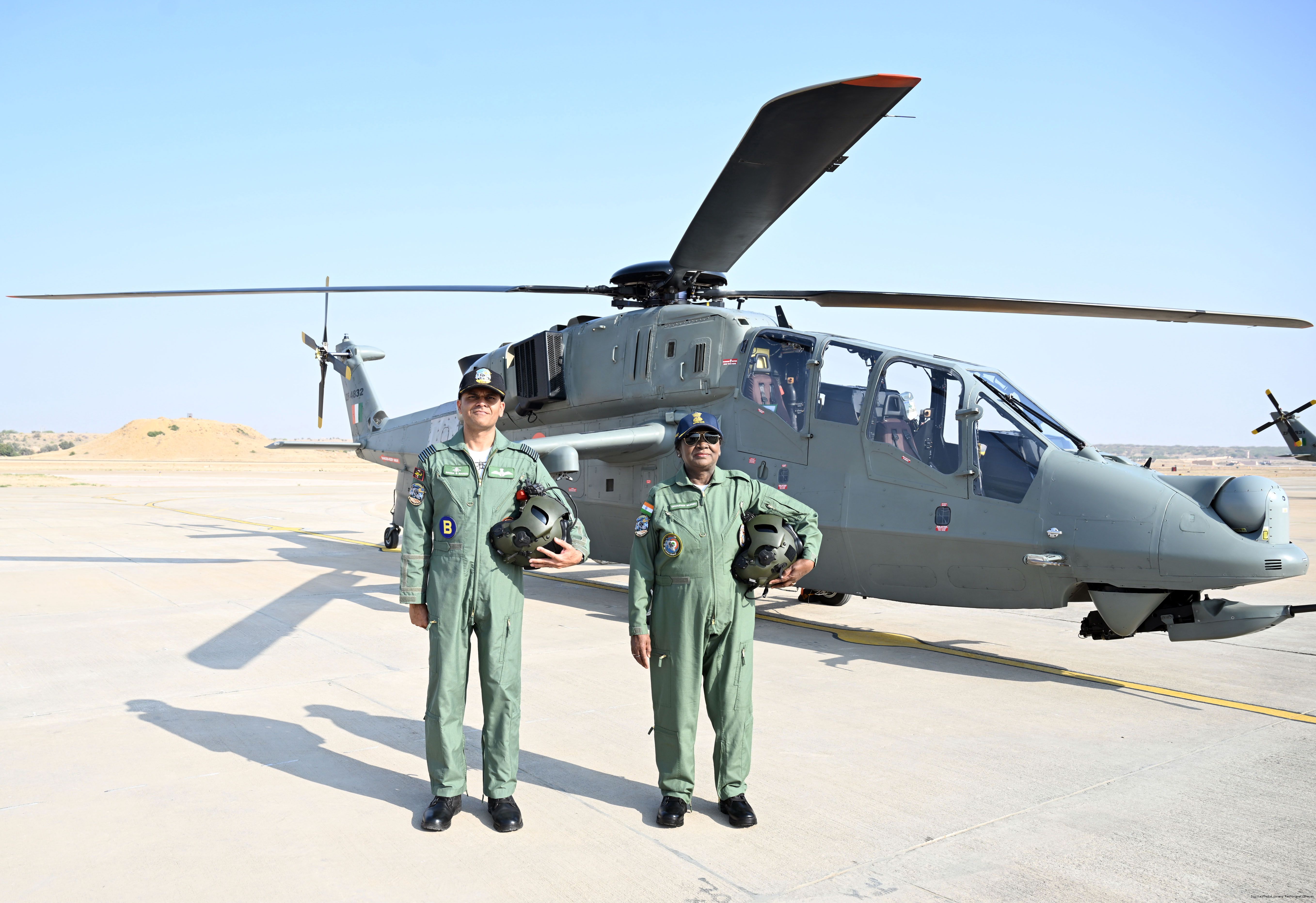 | Caption: | The President of India, Smt Droupadi Murmu undertook a sortie in the indigenous Light Combat Helicopter PRACHAND at Air Force Station Jaisalmer, Rajasthan on February 27, 2026. |