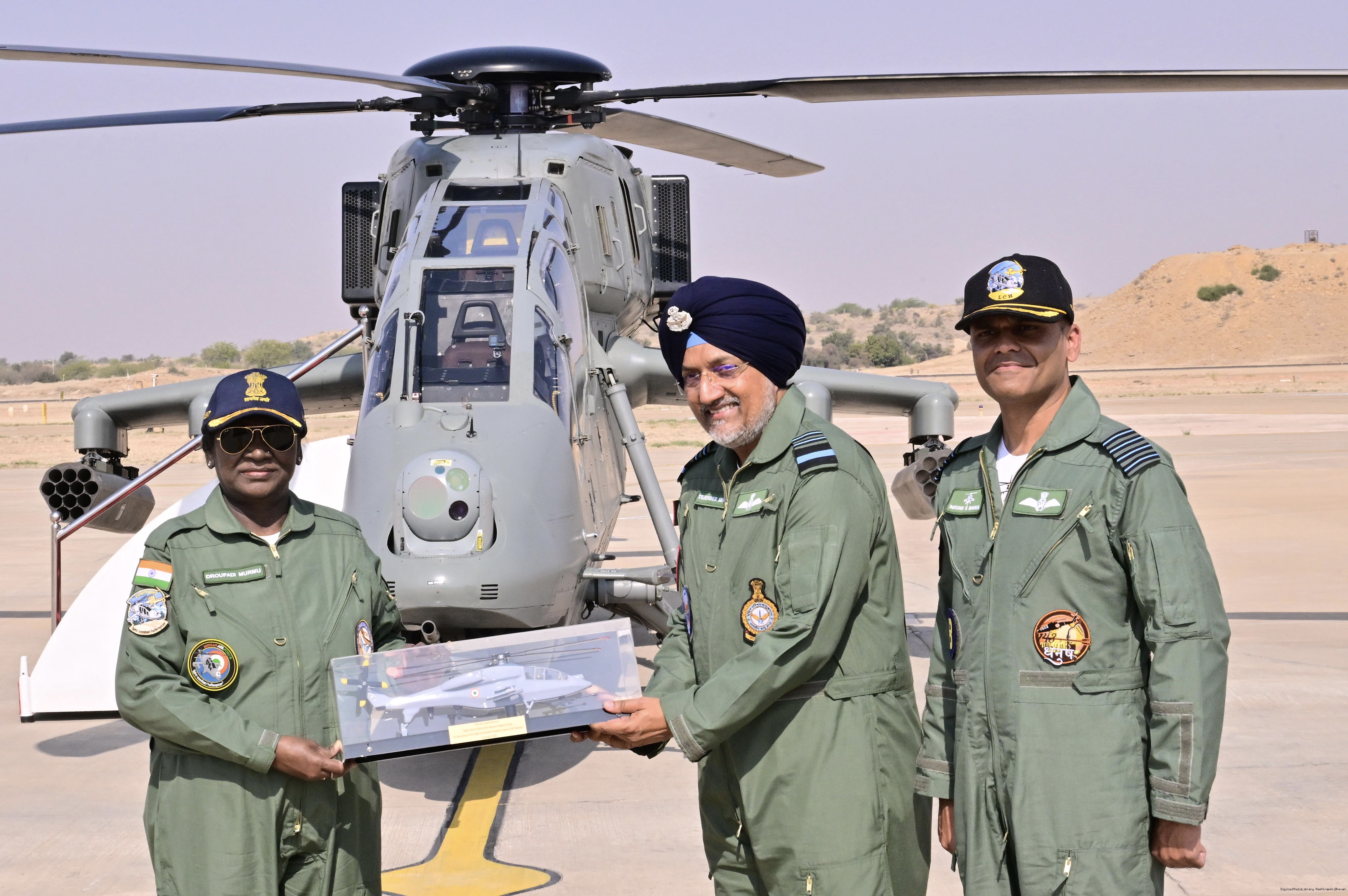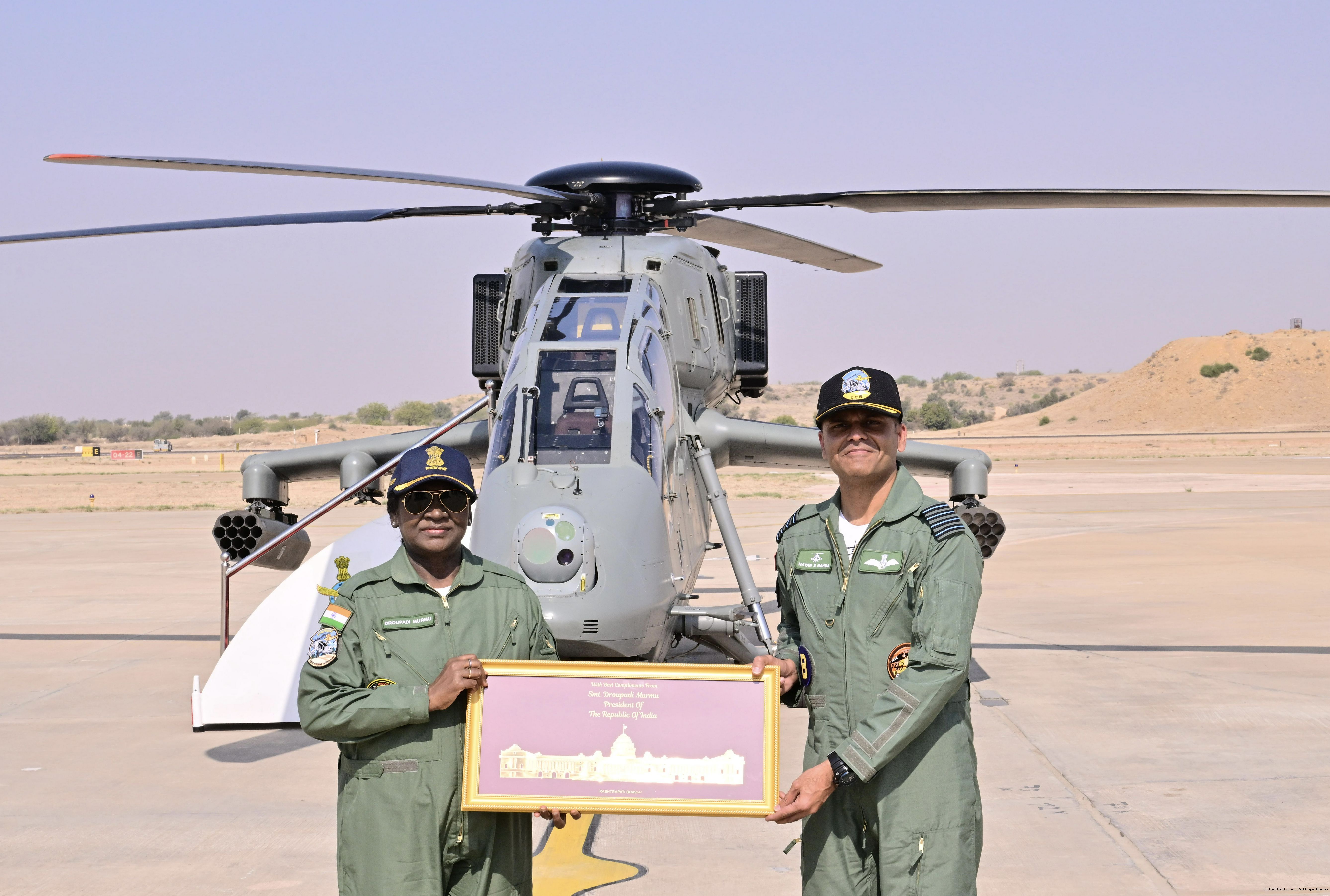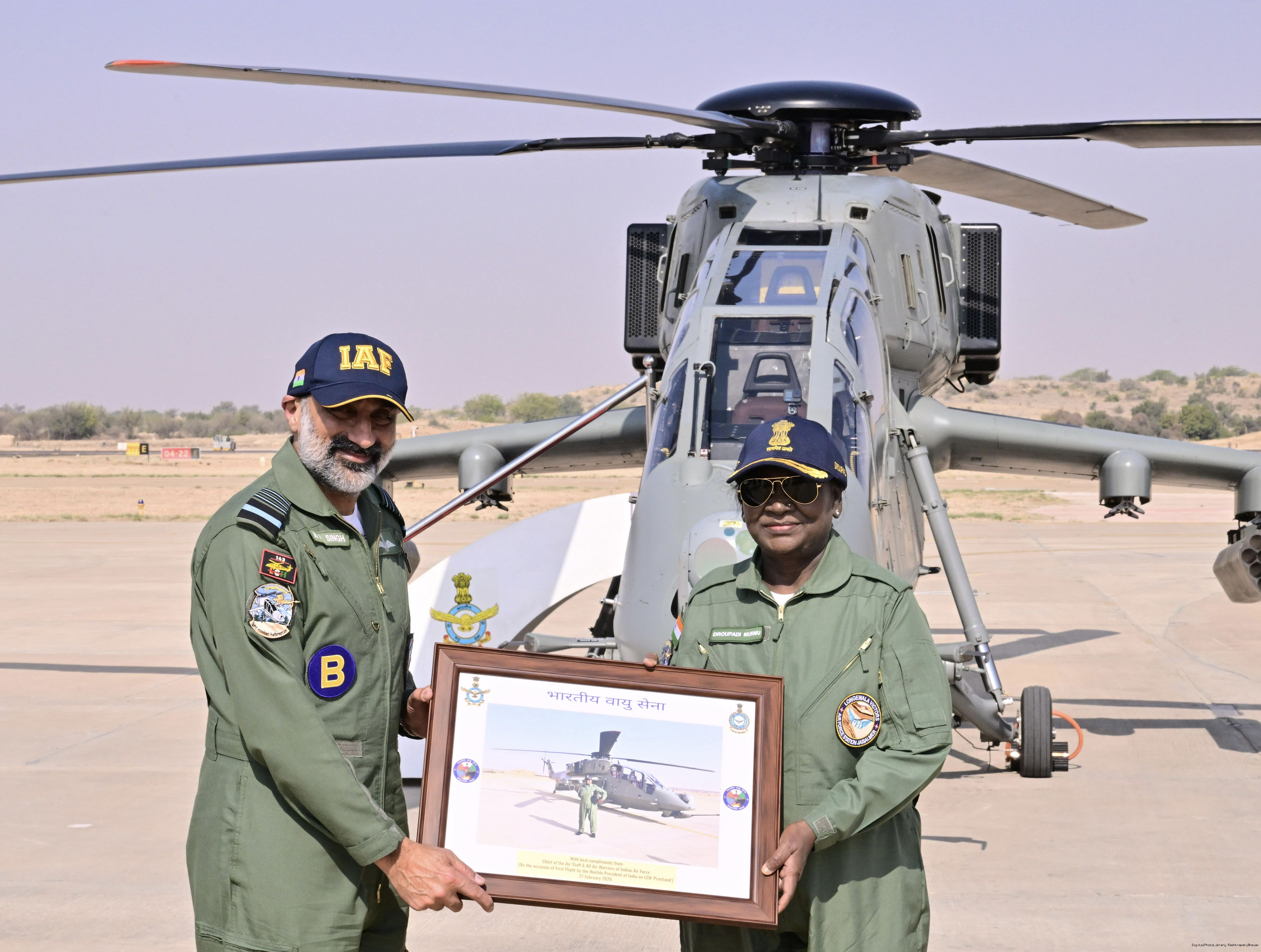 | Caption: | The President of India, Smt Droupadi Murmu undertook a sortie in the indigenous Light Combat Helicopter PRACHAND at Air Force Station Jaisalmer, Rajasthan on February 27, 2026. |