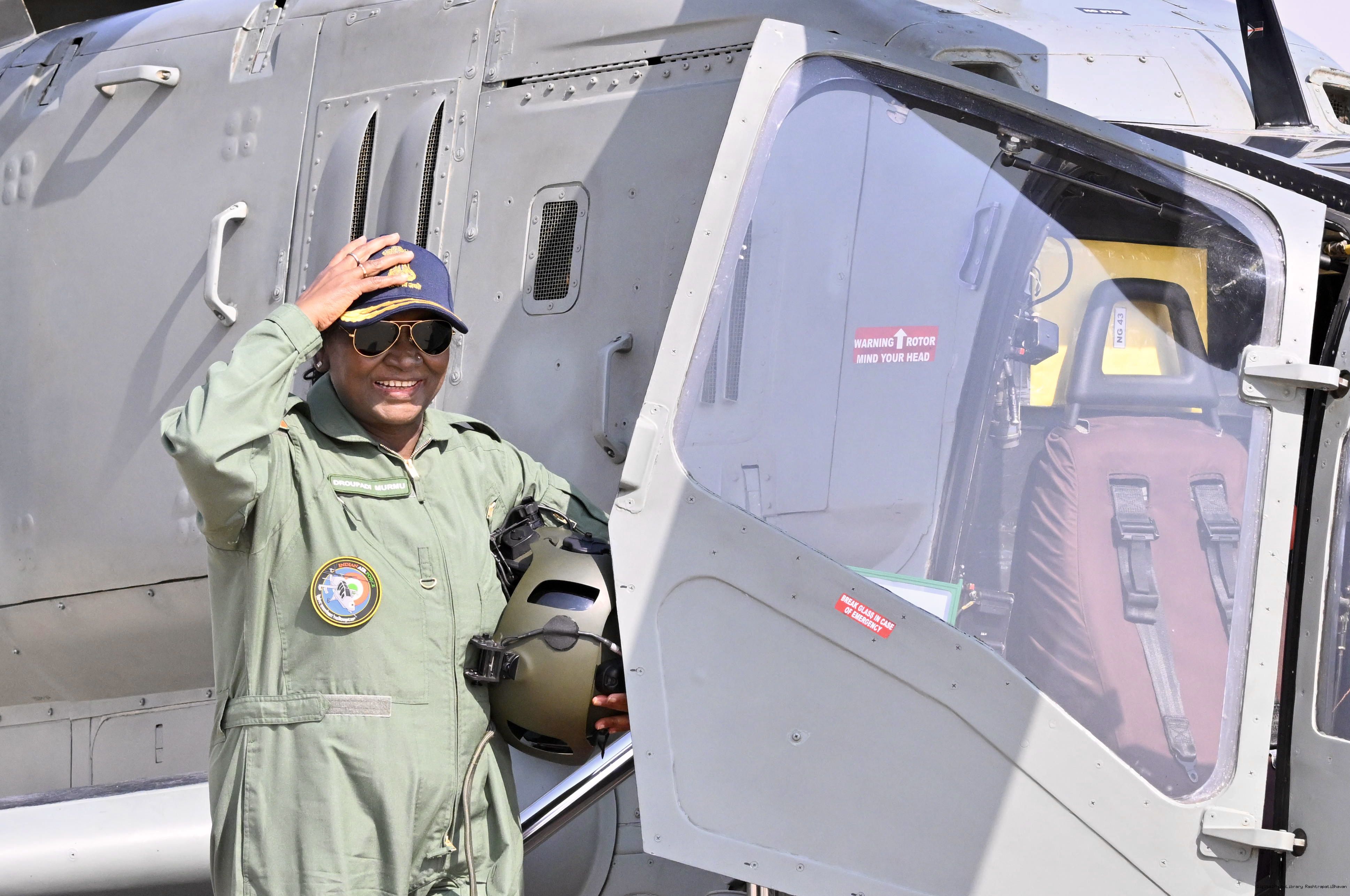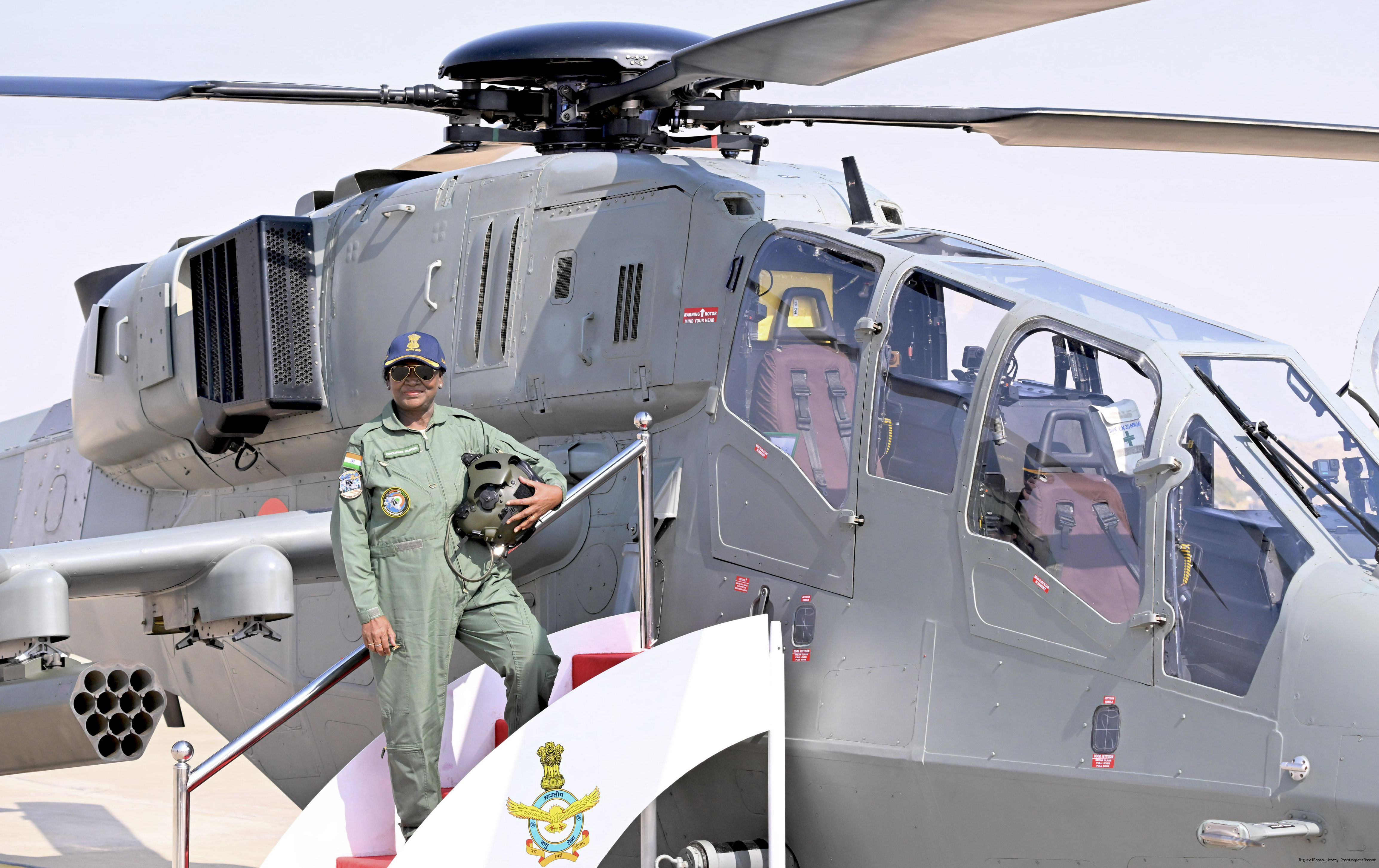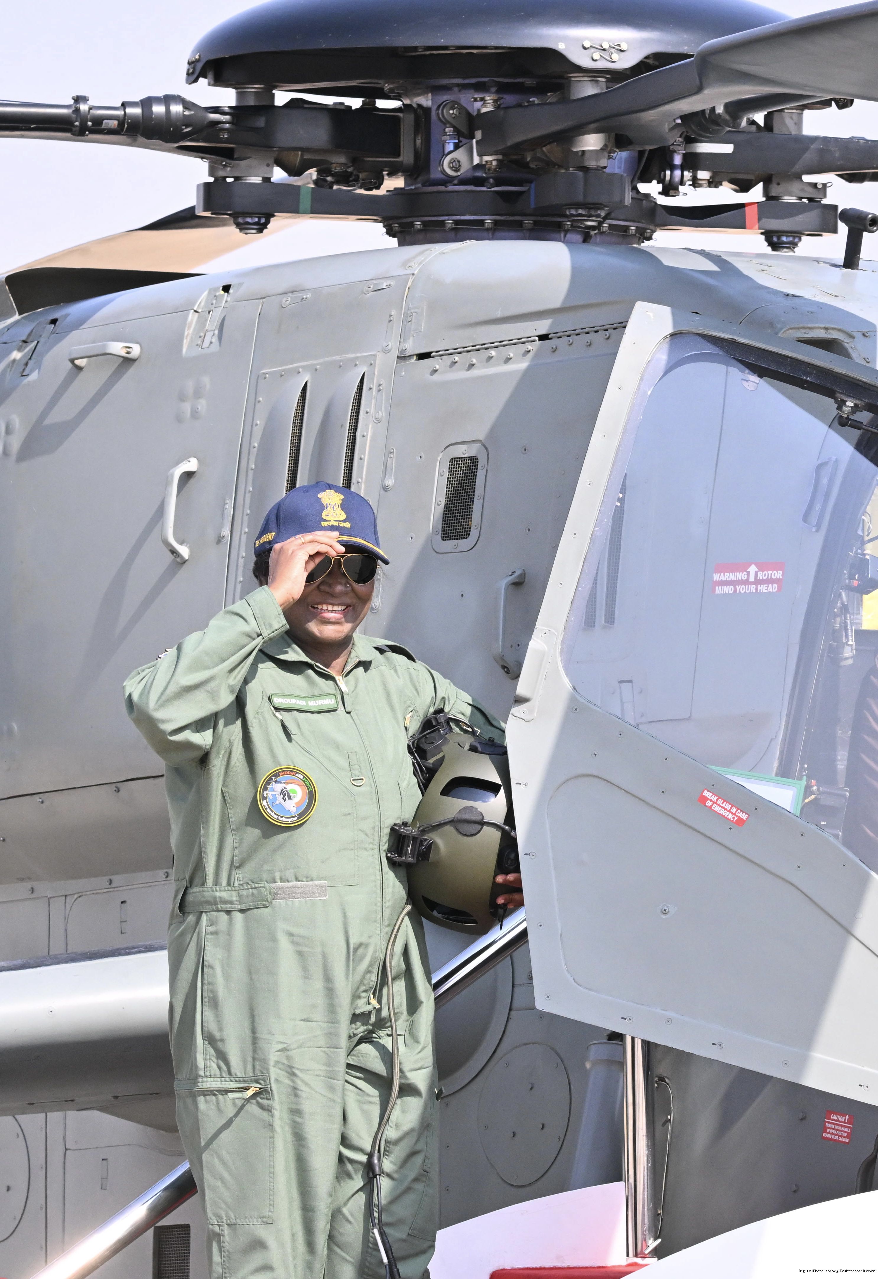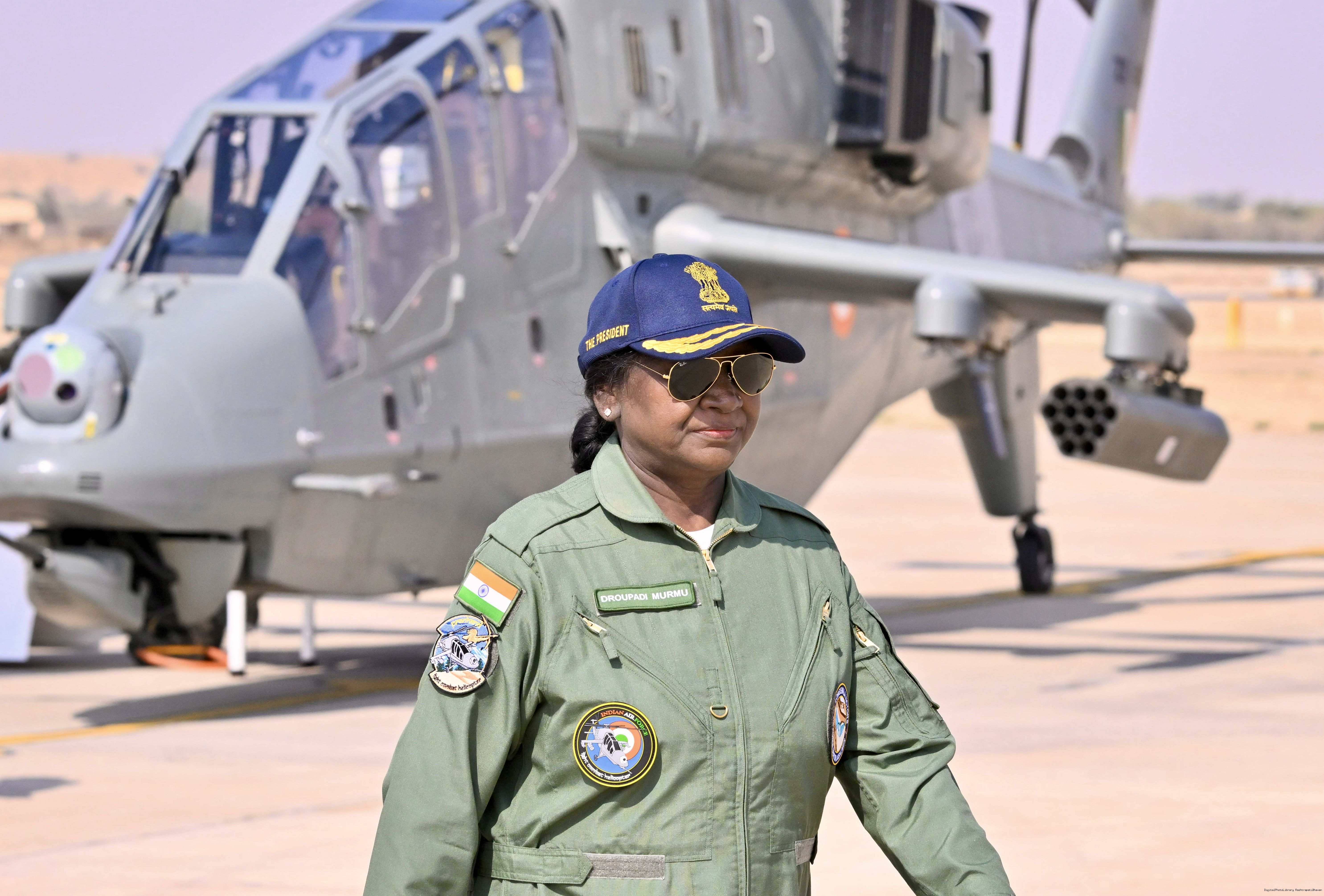 | Caption: | The President of India, Smt Droupadi Murmu undertook a sortie in the indigenous Light Combat Helicopter PRACHAND at Air Force Station Jaisalmer, Rajasthan on February 27, 2026. |