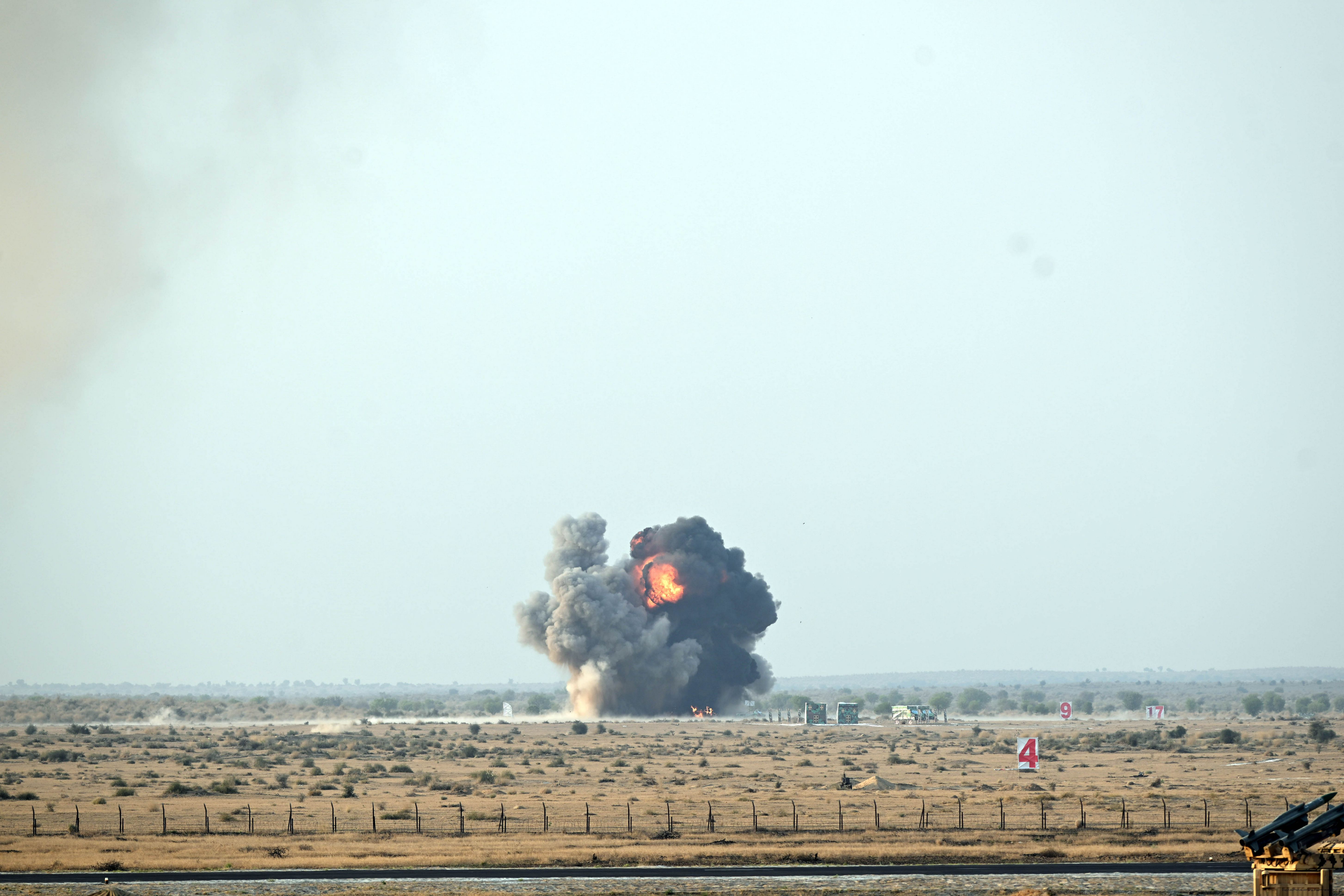 | Caption: | The President of India, Smt Droupadi Murmu witnessed the ‘Vayu Shakti–2026’ exercise at the Pokhran Firing Range, Jaisalmer, Rajasthan on February 27, 2026. |
