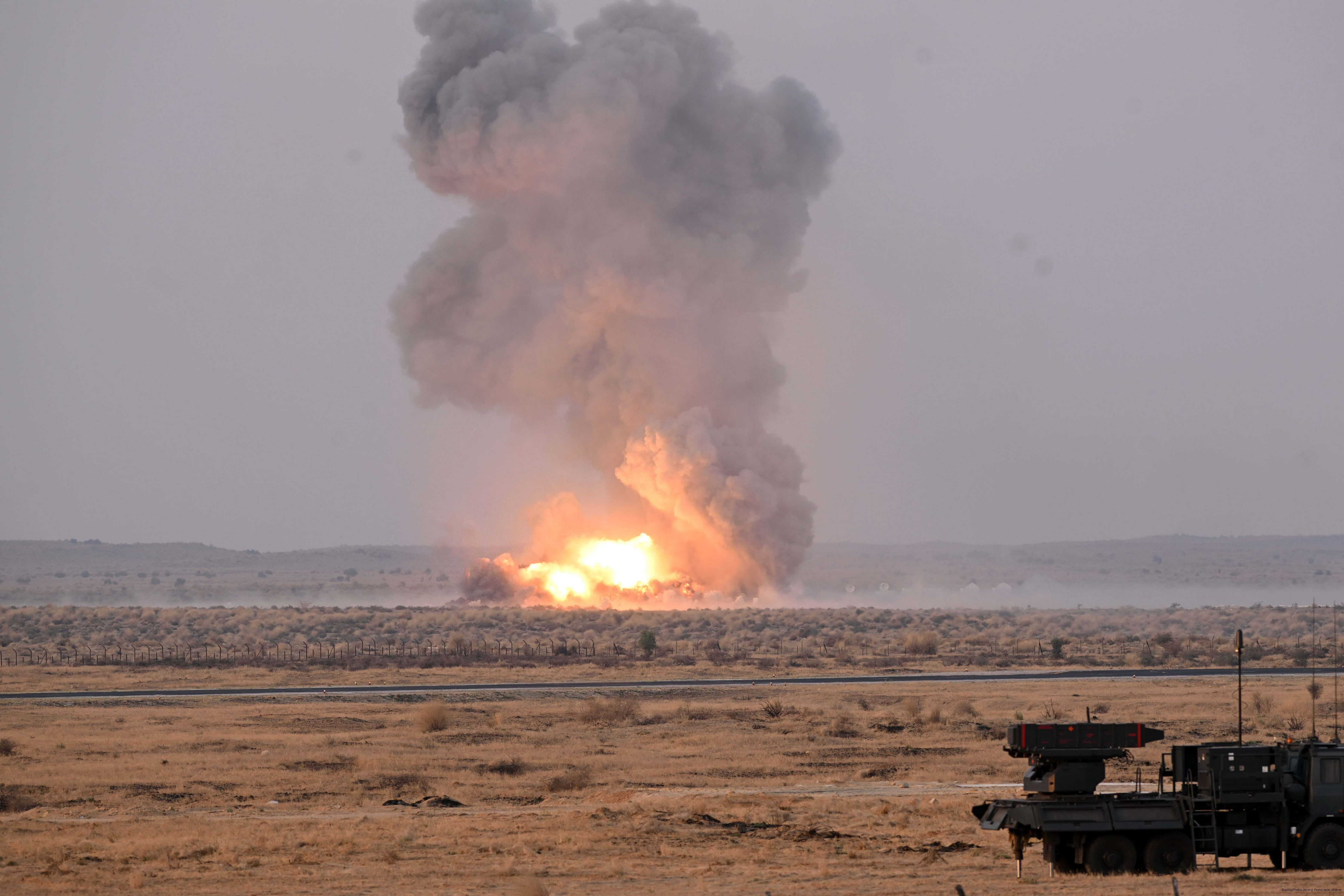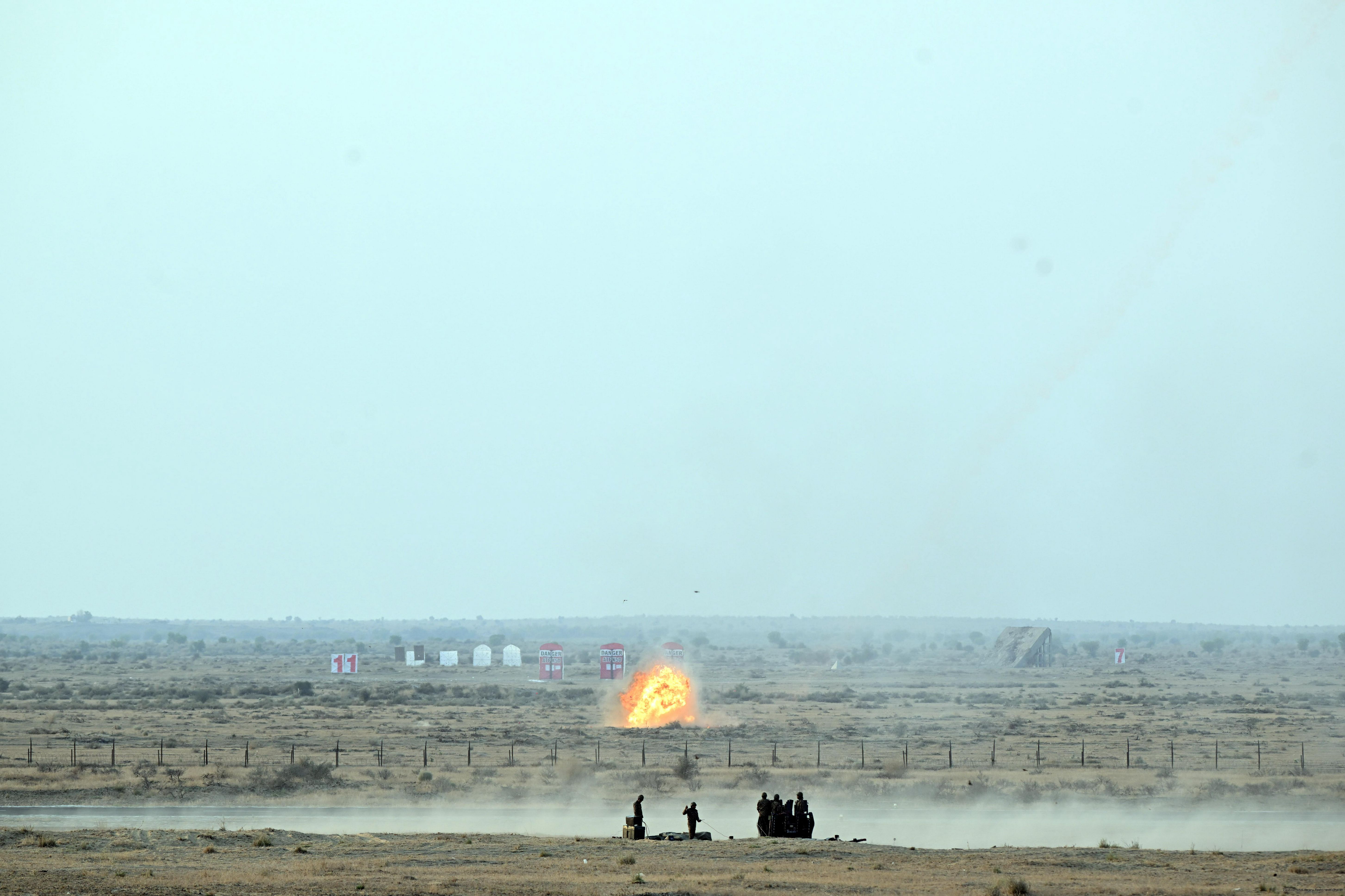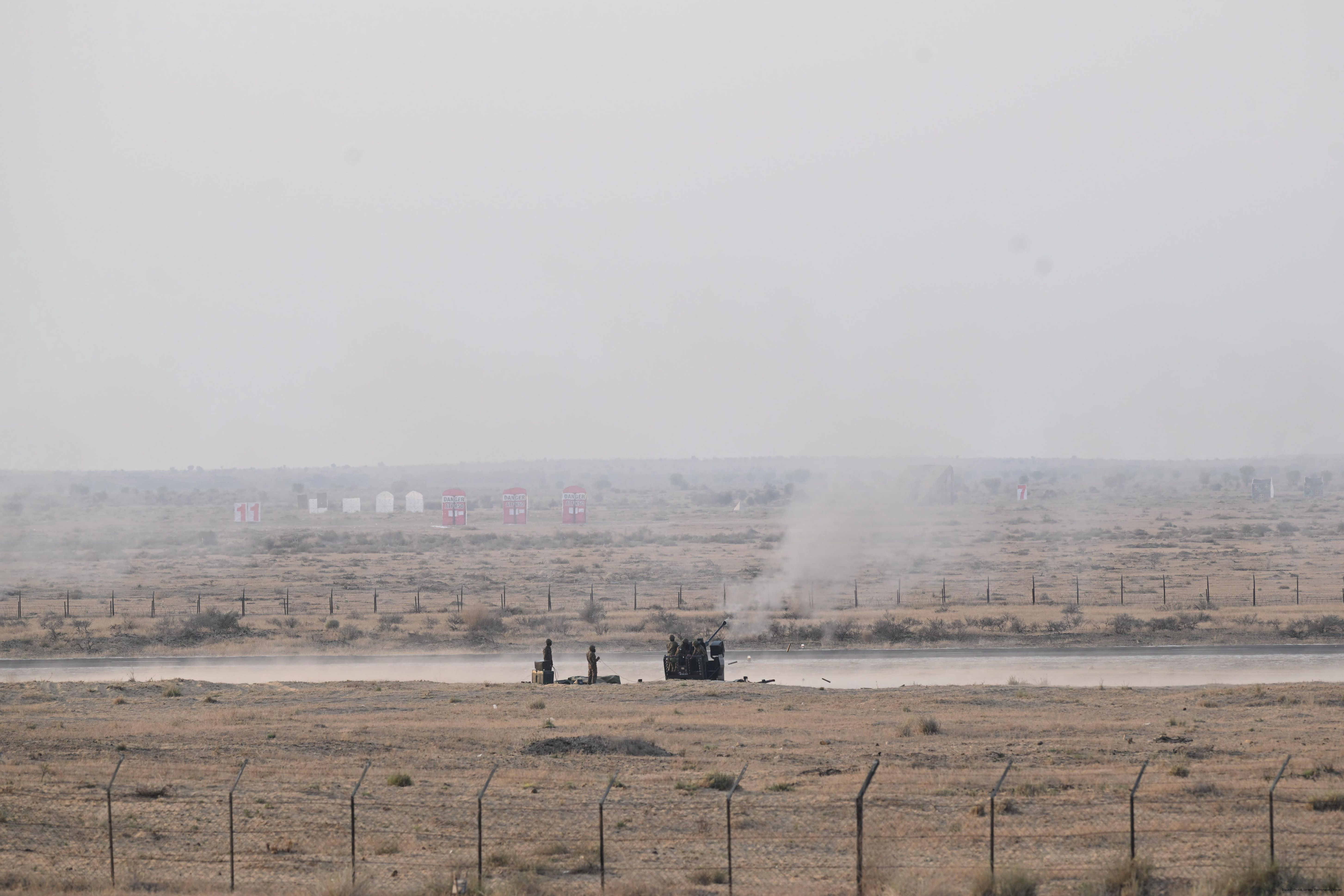 | Caption: | The President of India, Smt Droupadi Murmu witnessed the ‘Vayu Shakti–2026’ exercise at the Pokhran Firing Range, Jaisalmer, Rajasthan on February 27, 2026. |