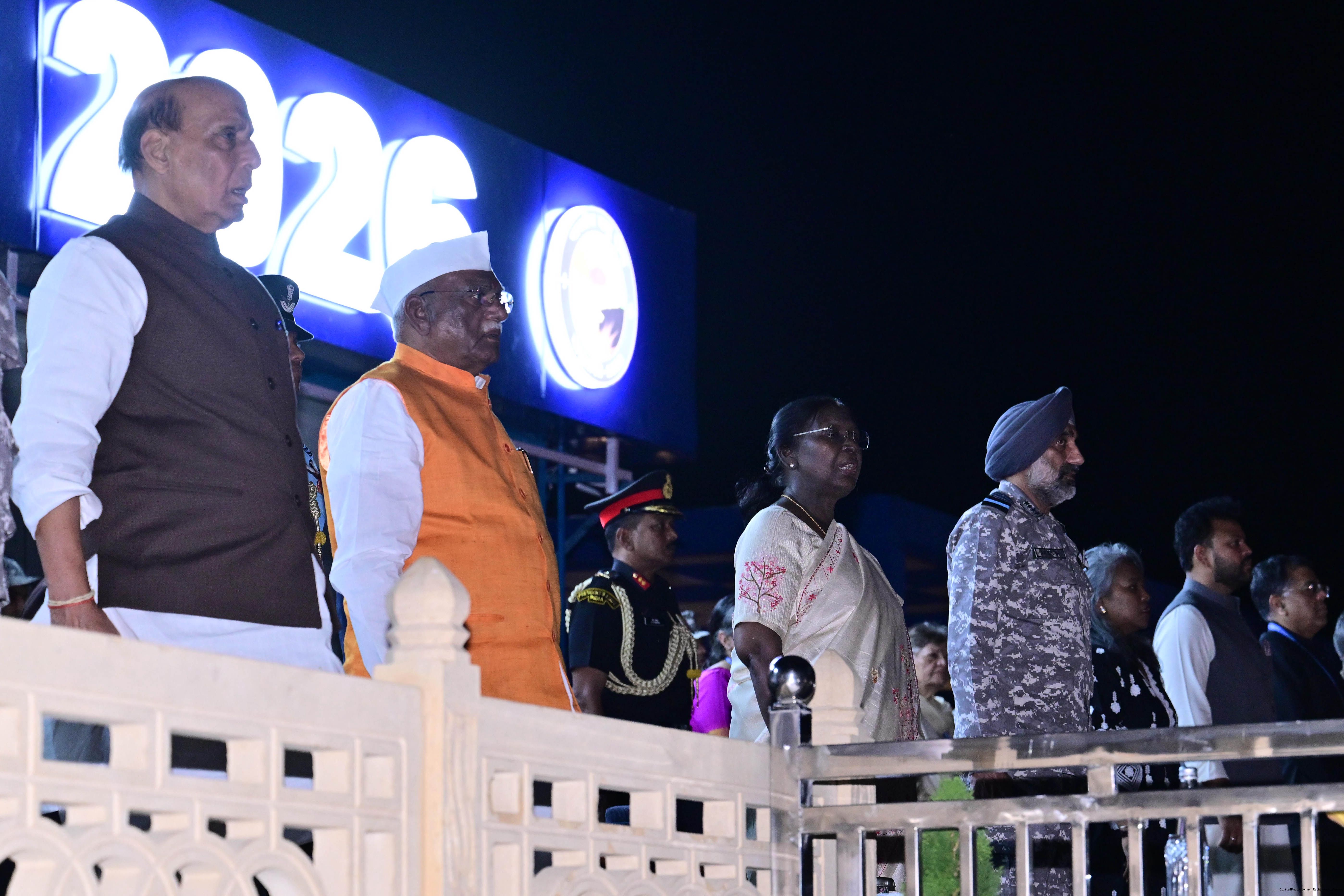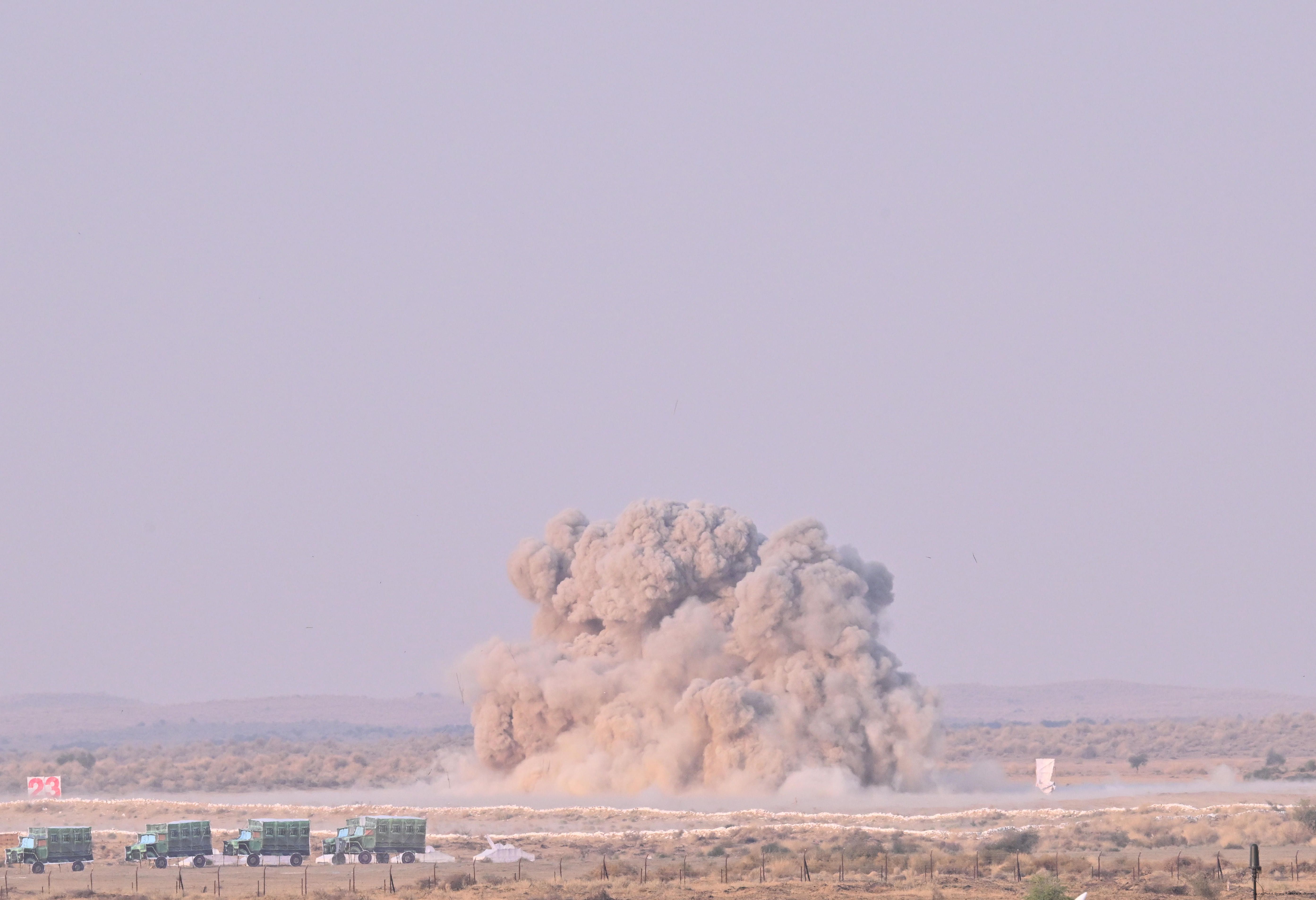 | Caption: | The President of India, Smt Droupadi Murmu witnessed the ‘Vayu Shakti–2026’ exercise at the Pokhran Firing Range, Jaisalmer, Rajasthan on February 27, 2026. |