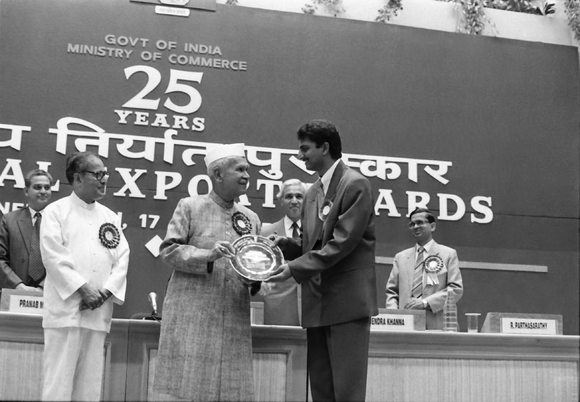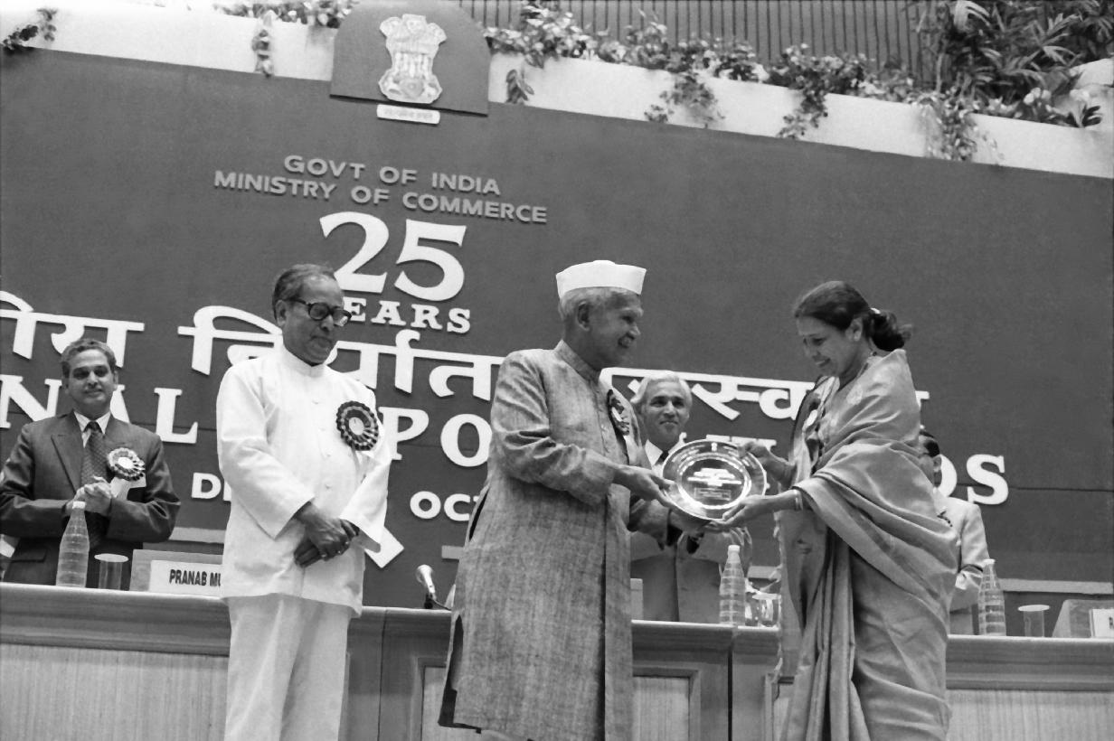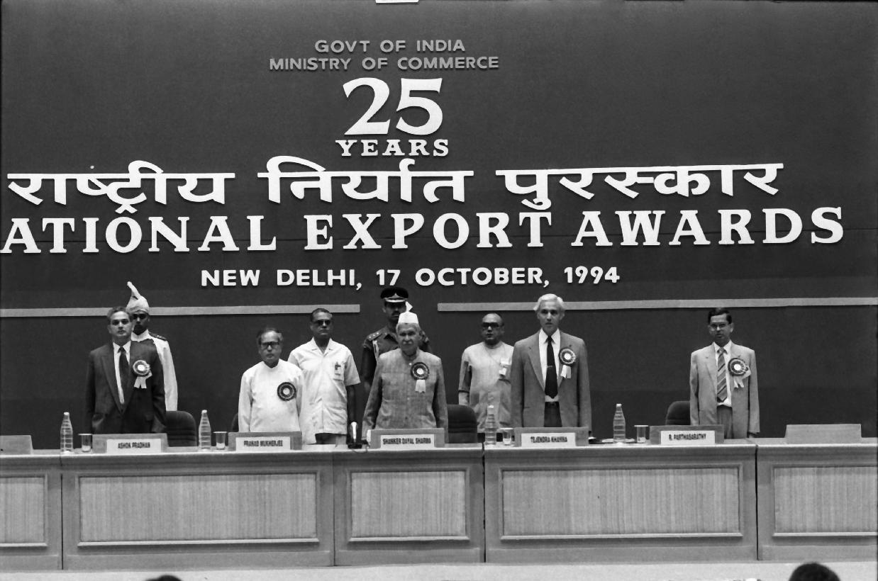| Caption: | The President of India, Dr. Shankar Dayal Sharma presenting the National Export Awards 1991-92 at Vigyan Bhavan in New Delhi on October 17, 1994. |