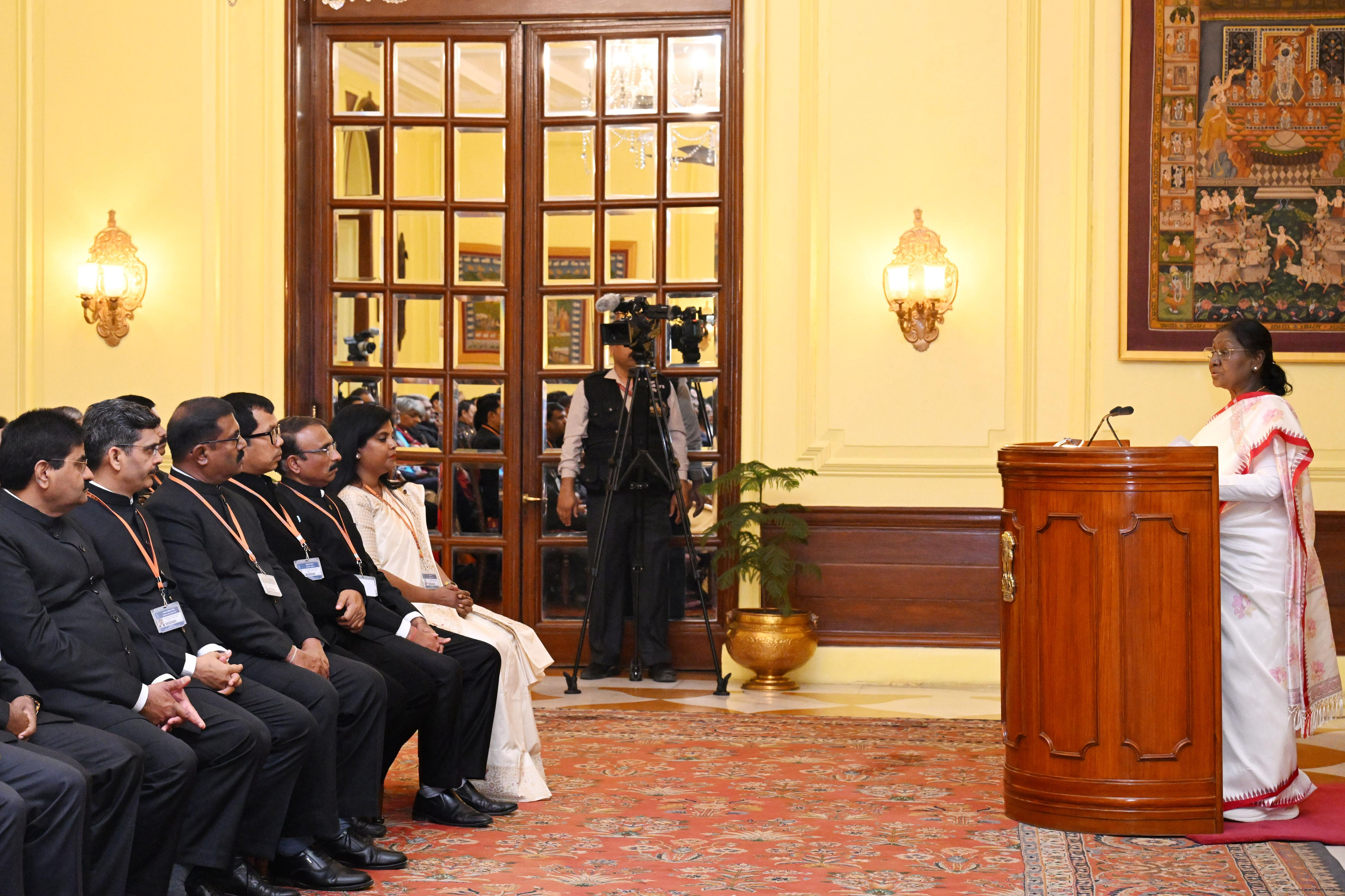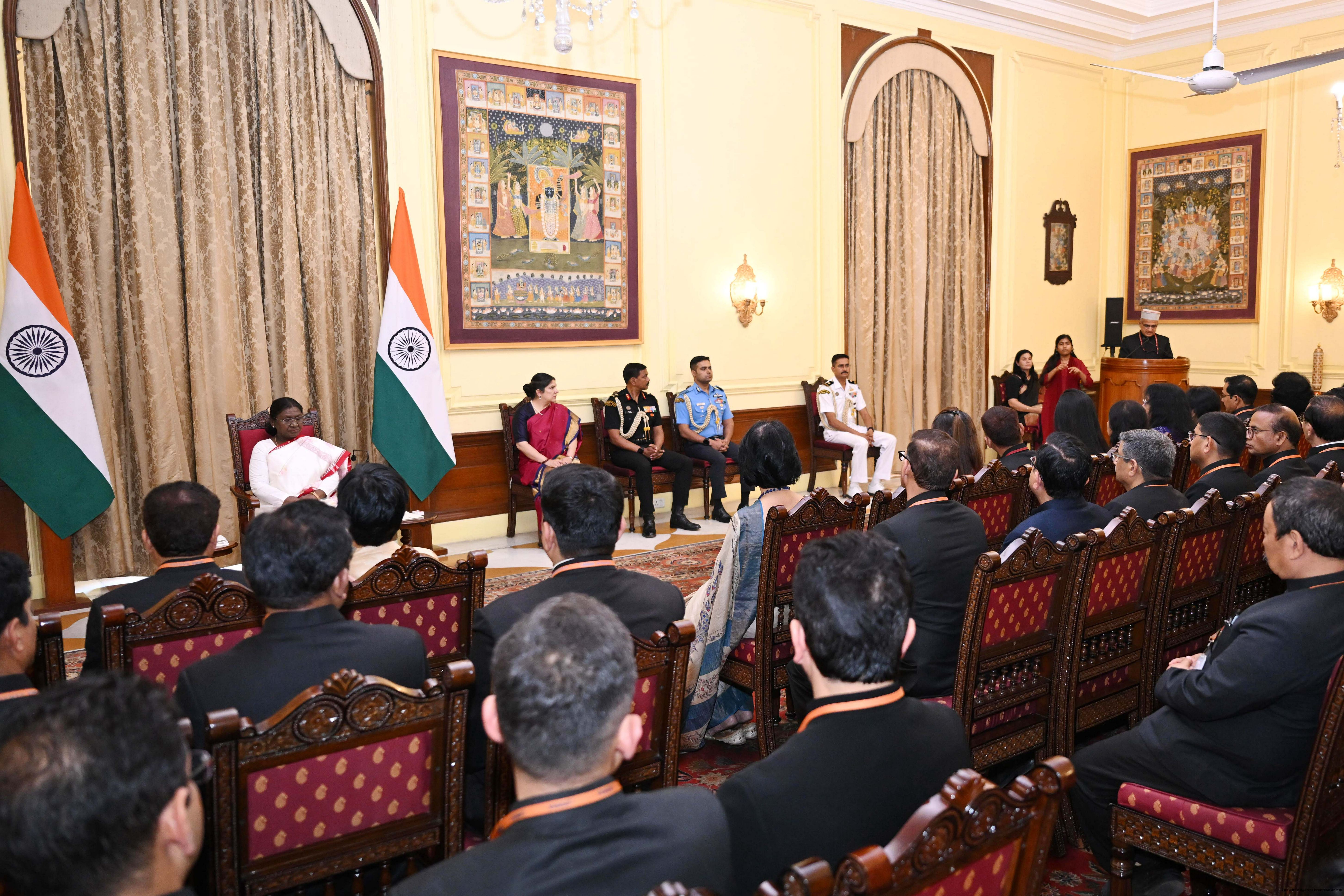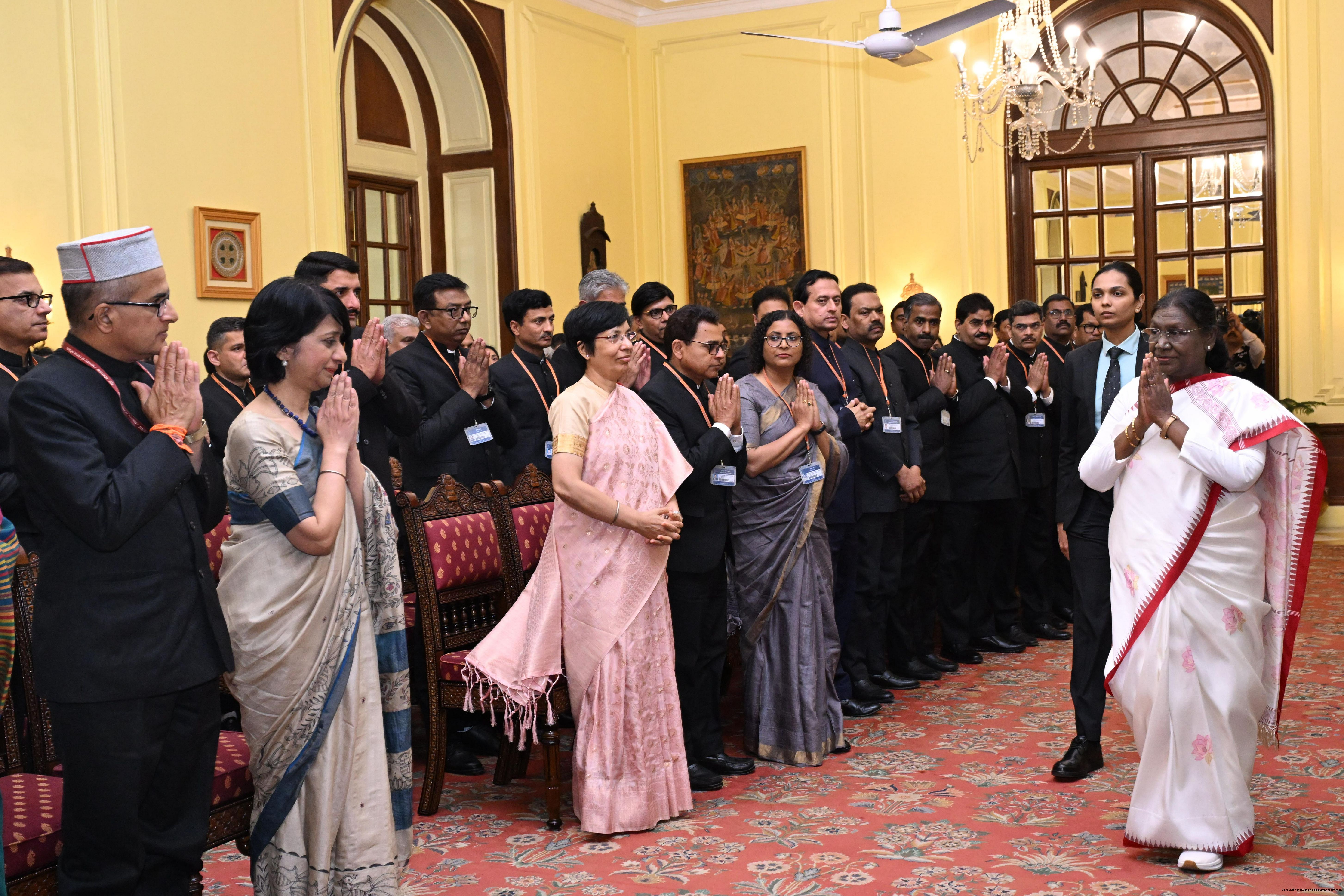 | Caption: | Indian Administrative Service officers inducted from the State Civil Services and attending the 128th Induction Training Programme at Lal Bahadur Shastri National Academy of Administration (LBSNAA) called on the President of India Smt Droupadi Murmu at Rashtrapati Bhavan on March 2, 2026. |