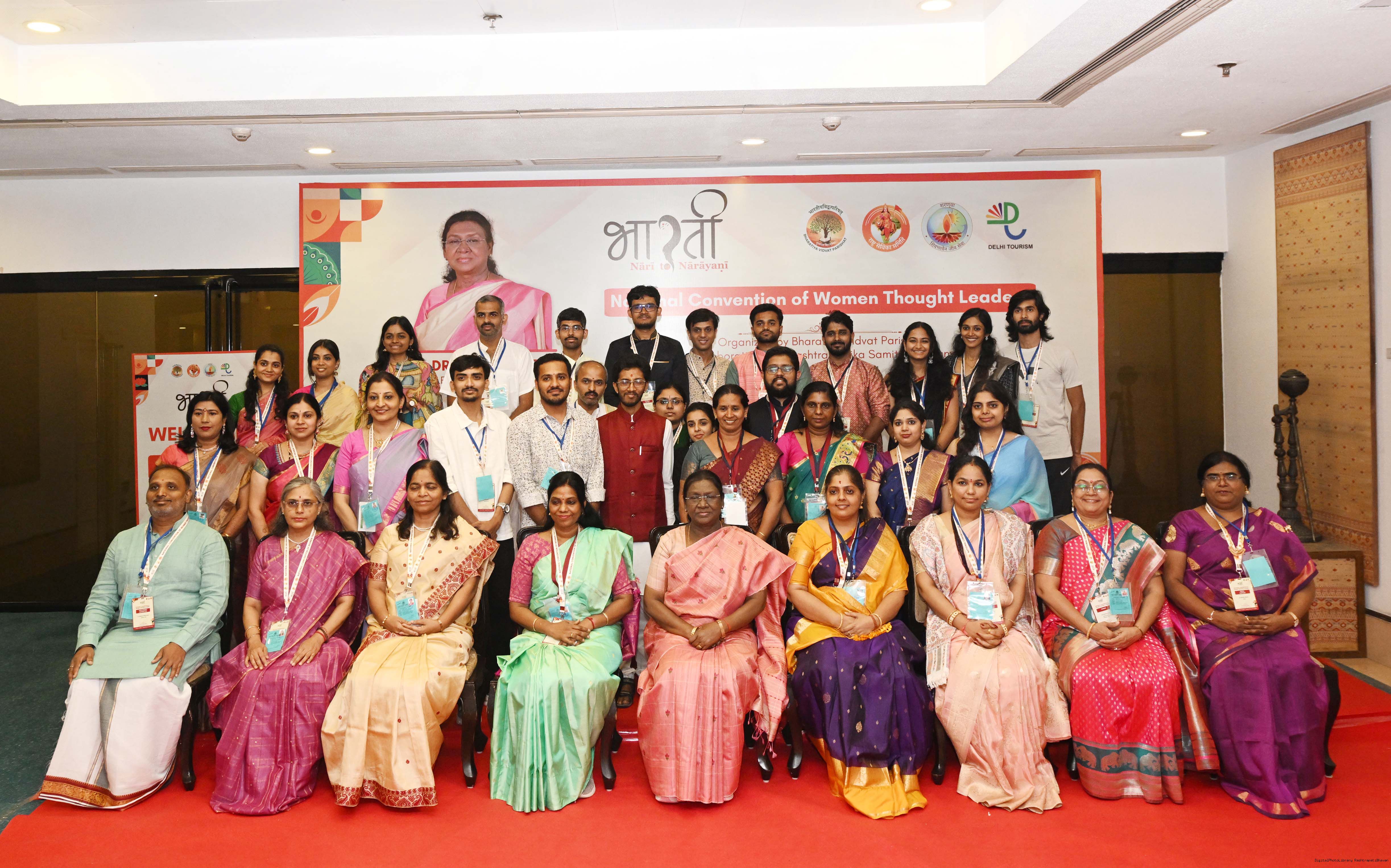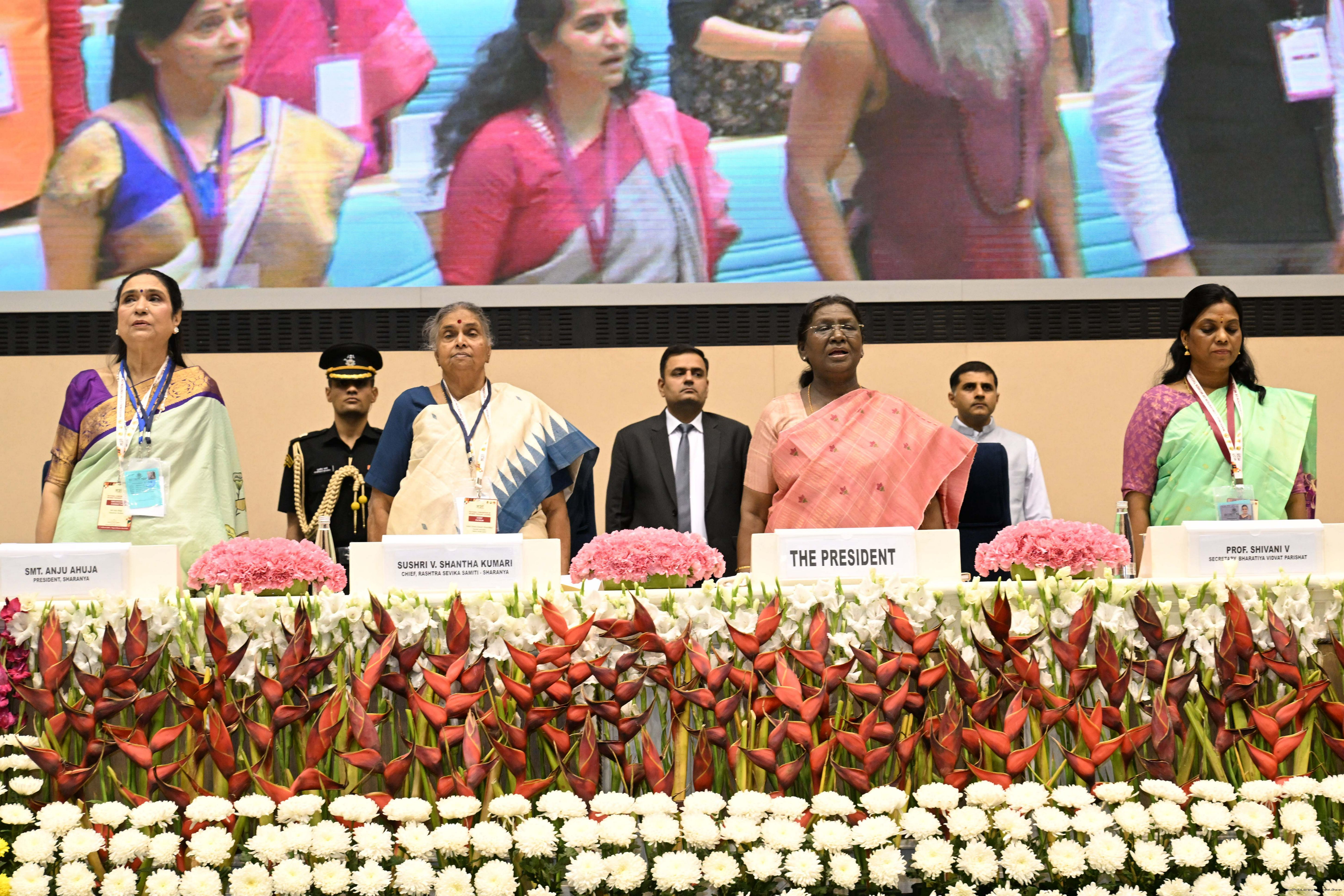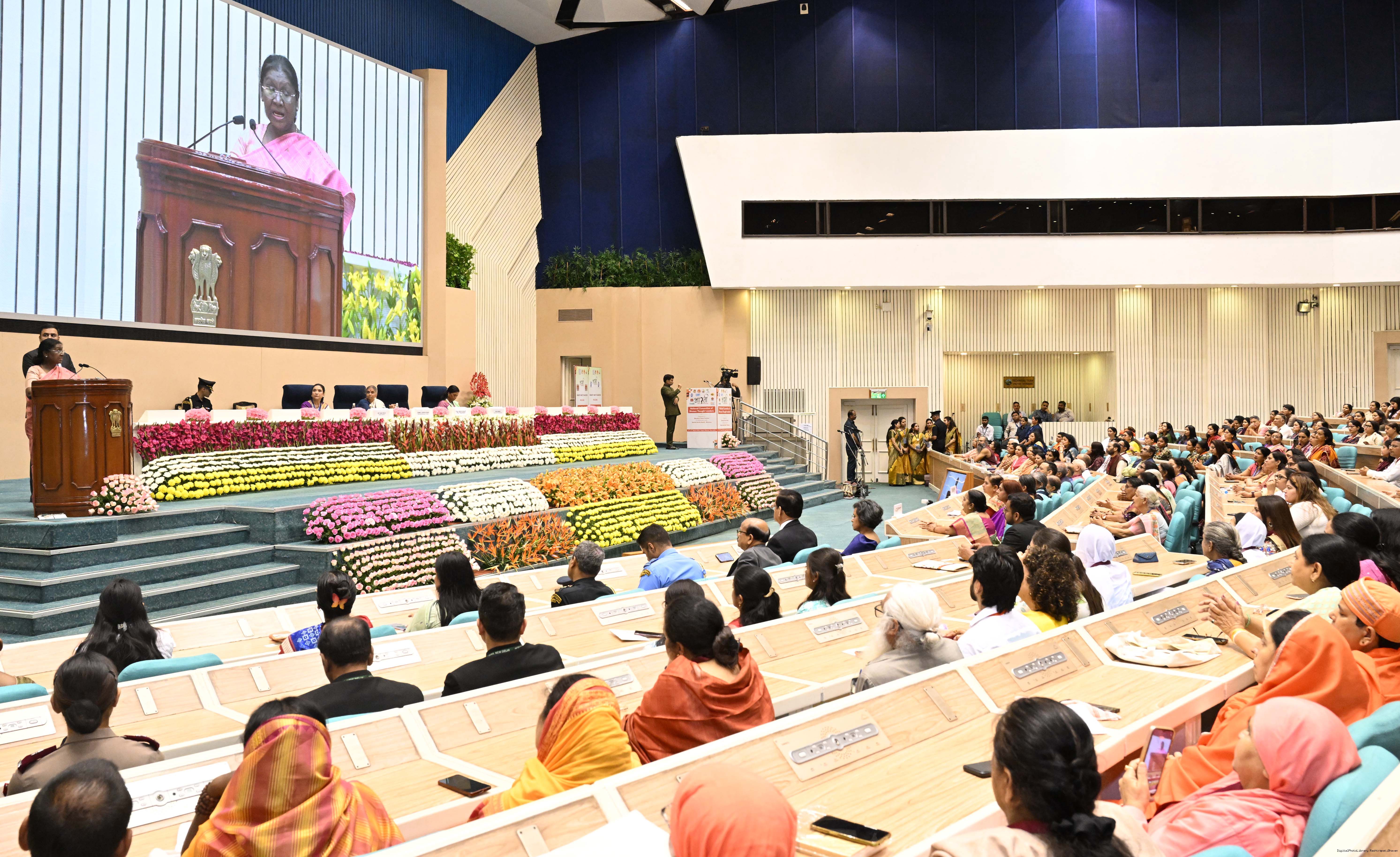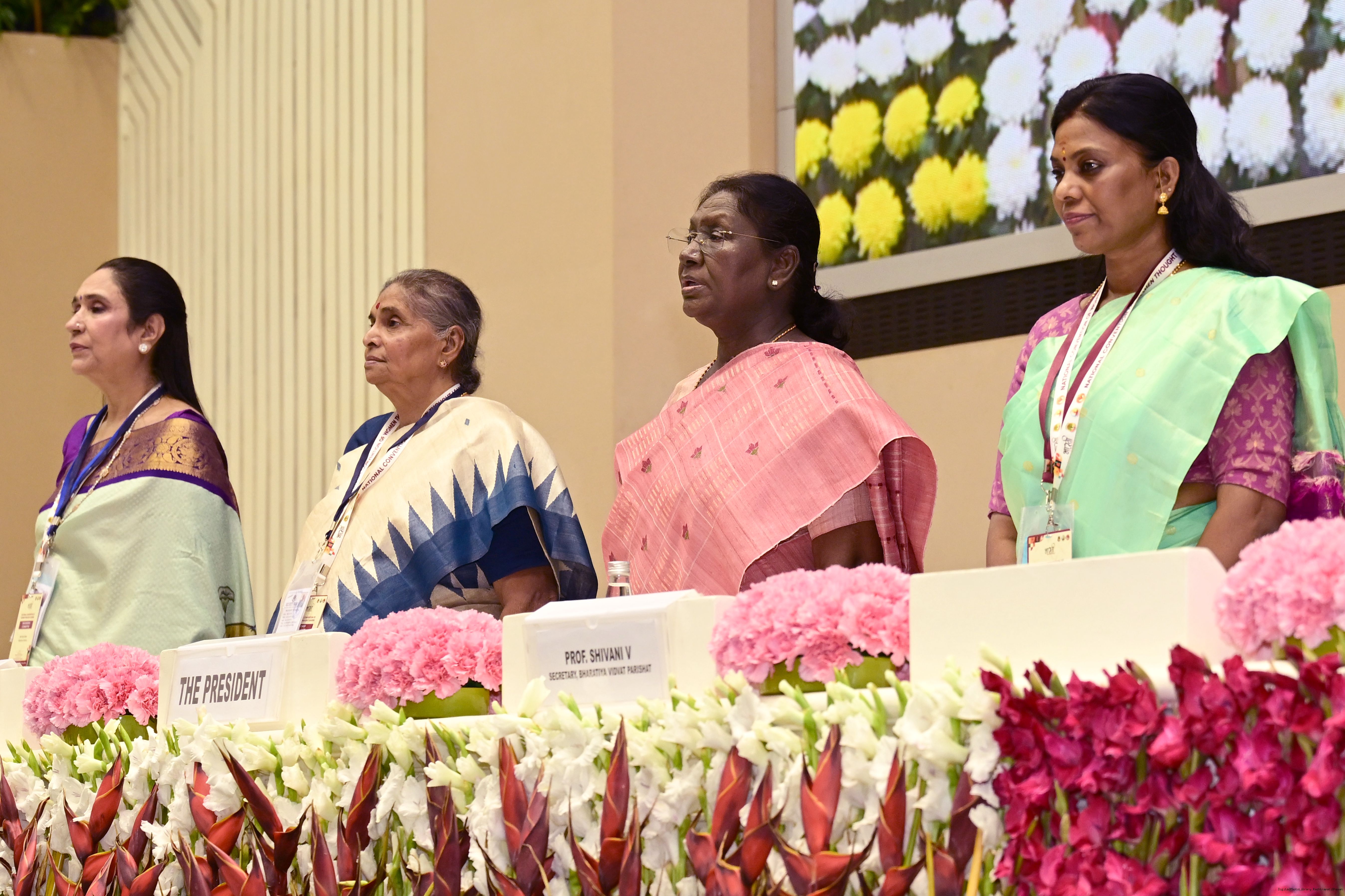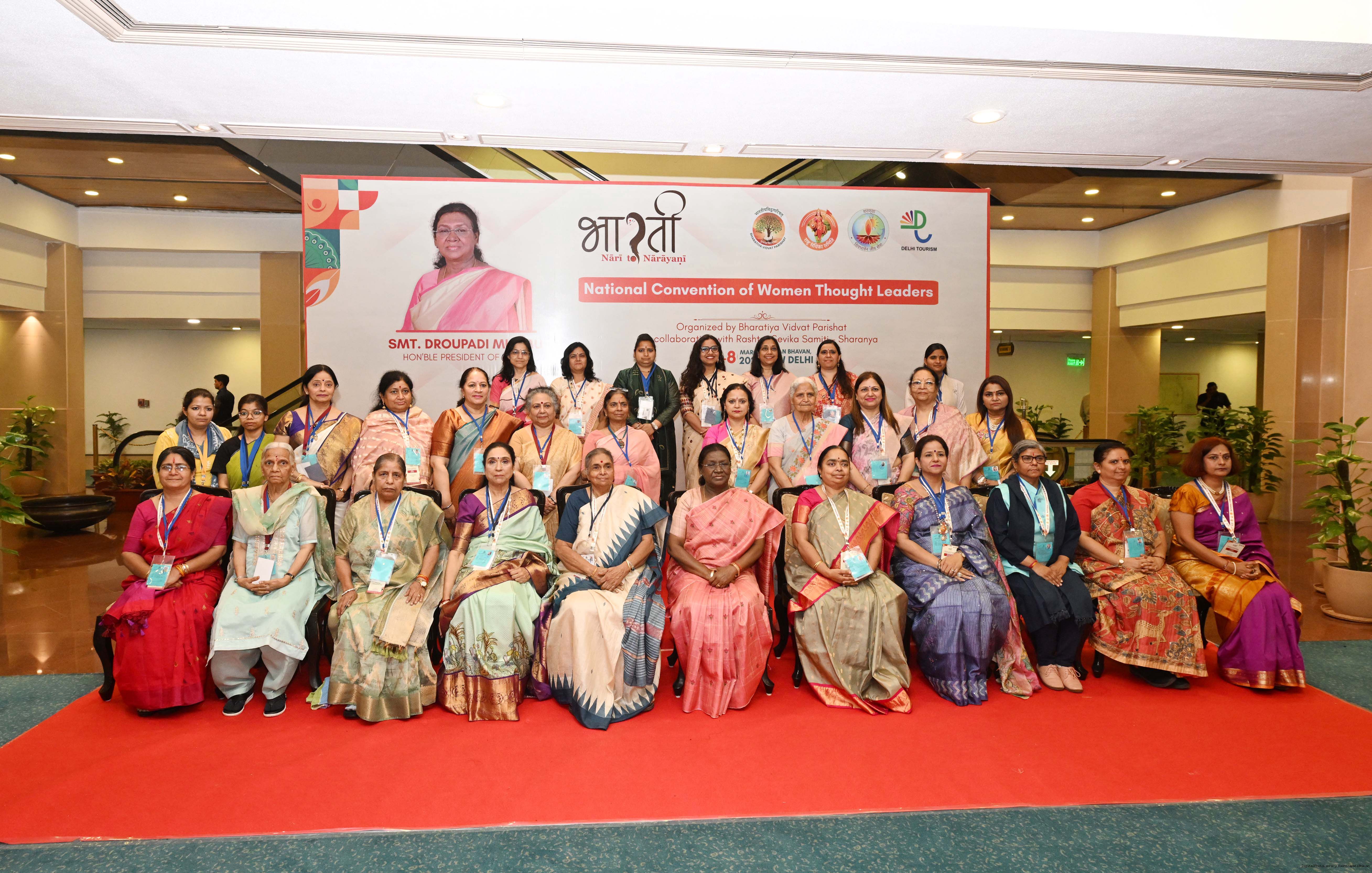 | Caption: | The President of India Smt Droupadi Murmu graced and addressed the National Convention of Women Thought Leaders, organised by Bharatiya Vidvat Parishat in association with Rashtra Sevika Samiti-Sharanya, in New Delhi on March 8, 2026. |
