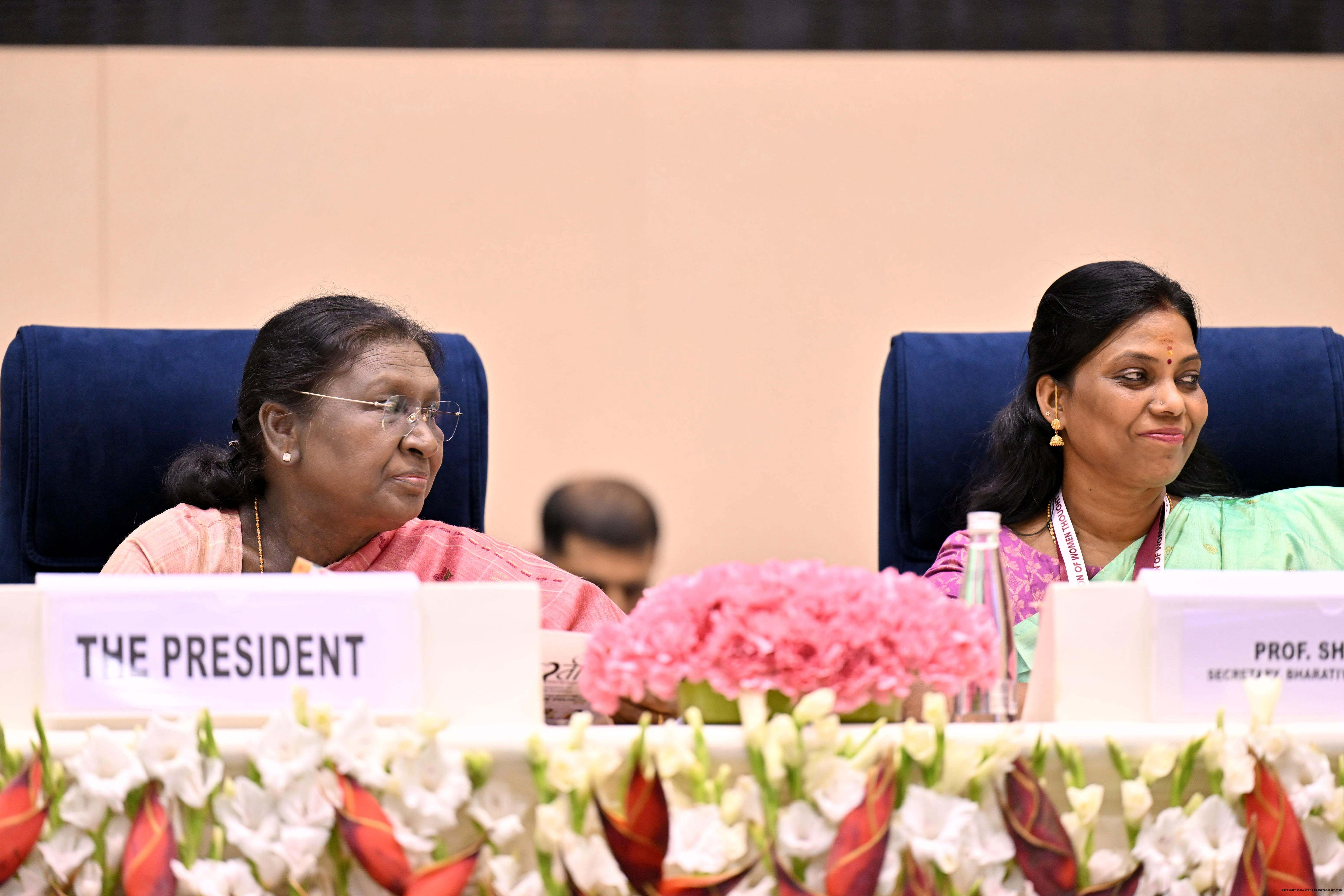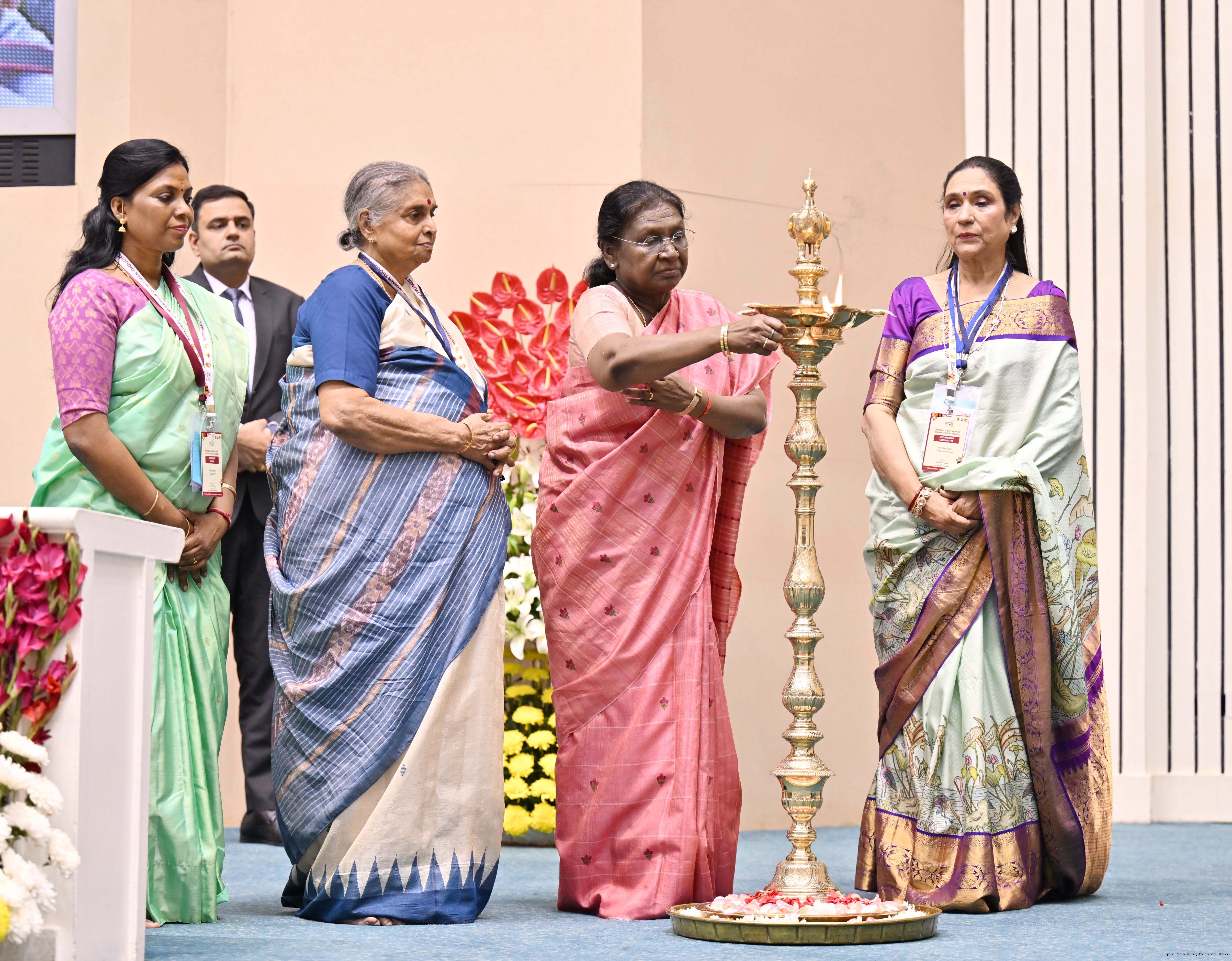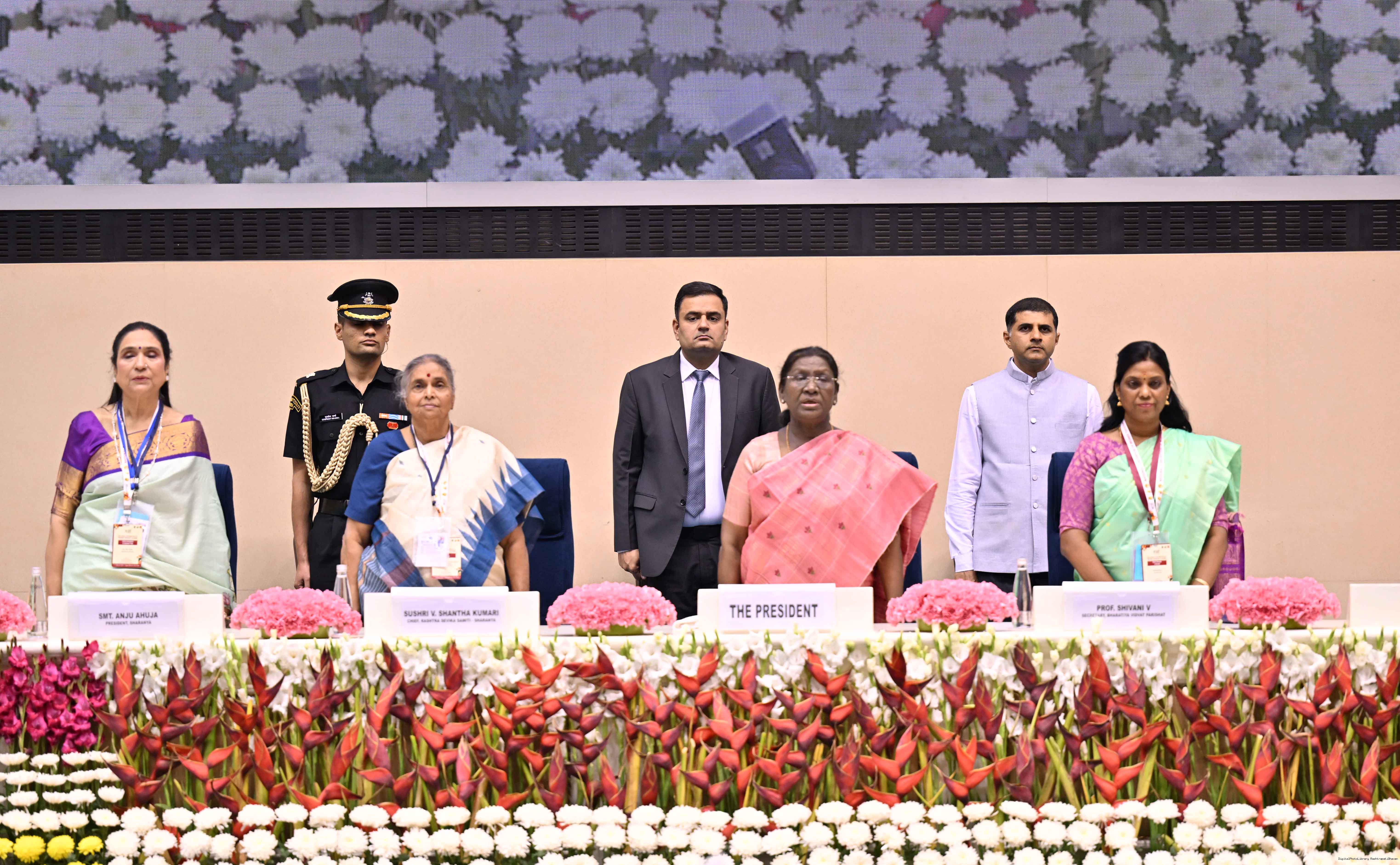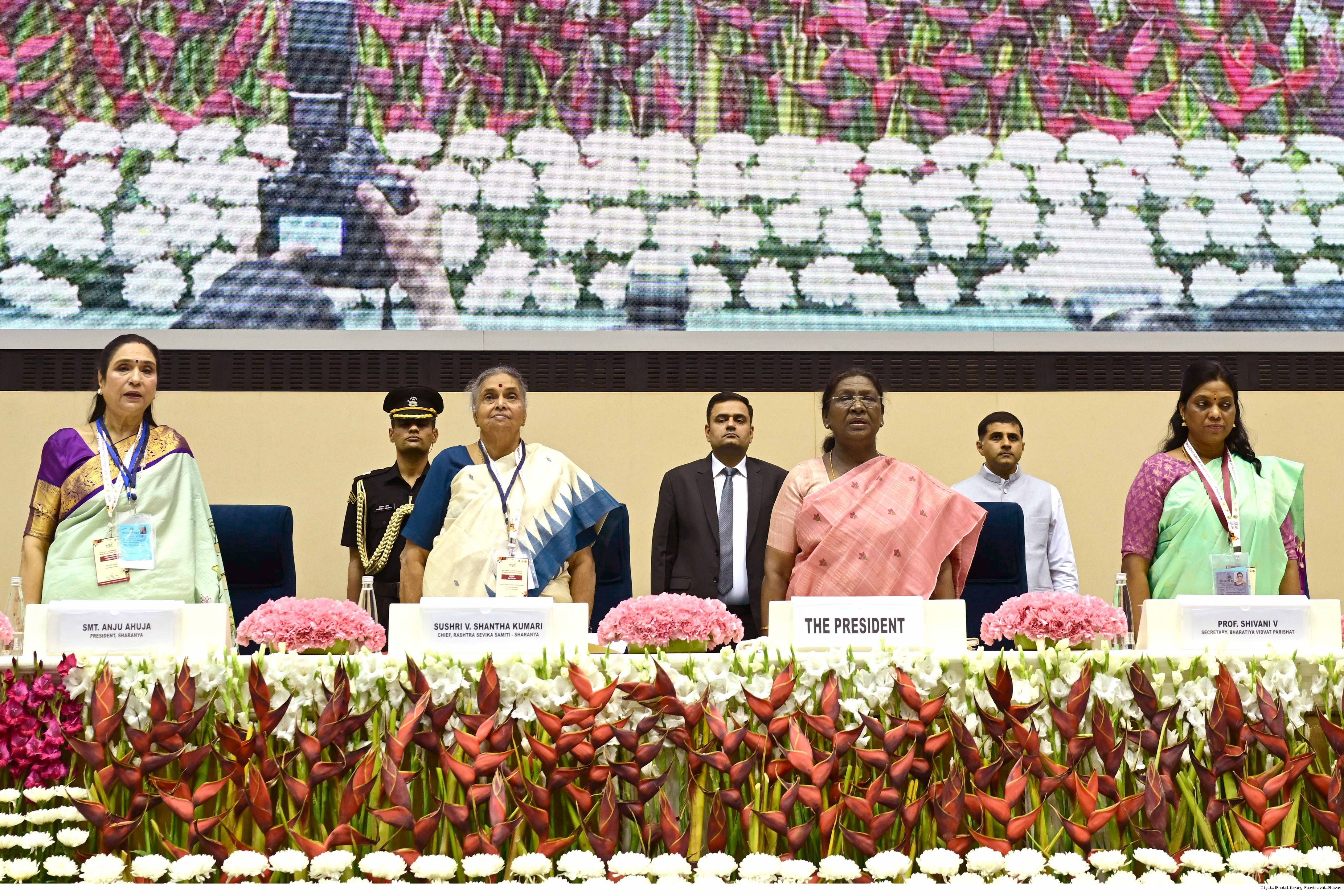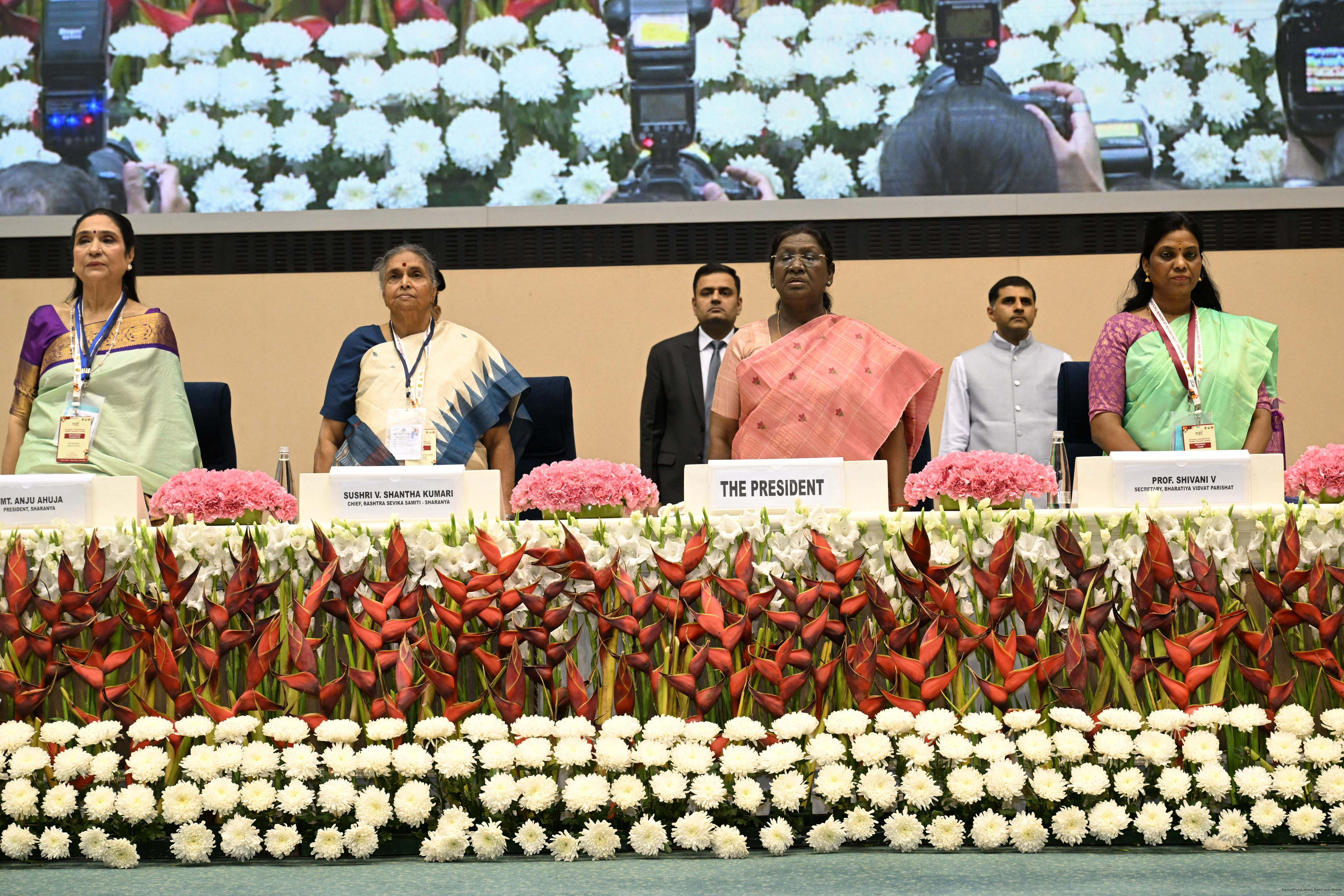 | Caption: | The President of India Smt Droupadi Murmu graced and addressed the National Convention of Women Thought Leaders, organised by Bharatiya Vidvat Parishat in association with Rashtra Sevika Samiti-Sharanya, in New Delhi on March 8, 2026. |