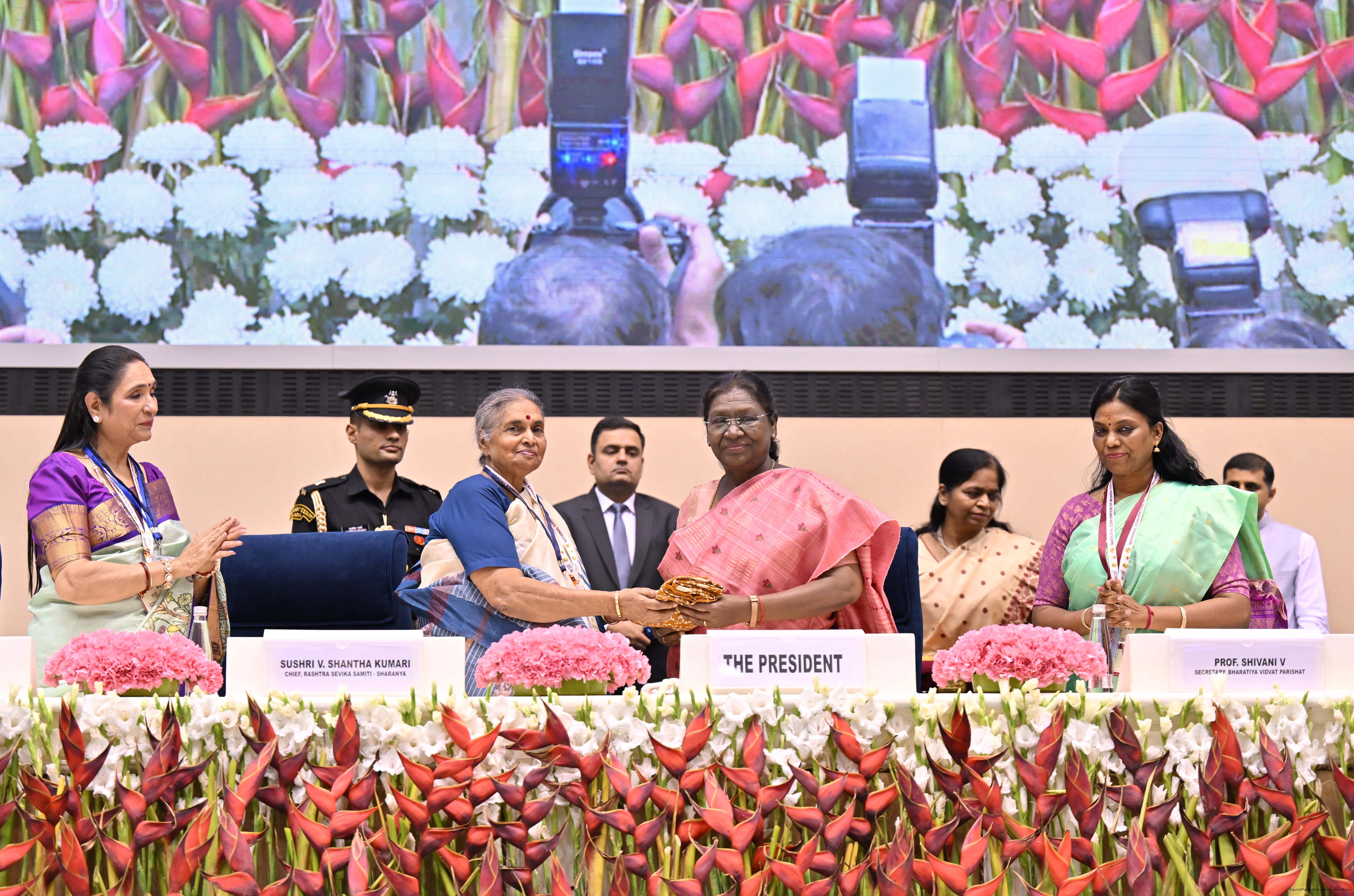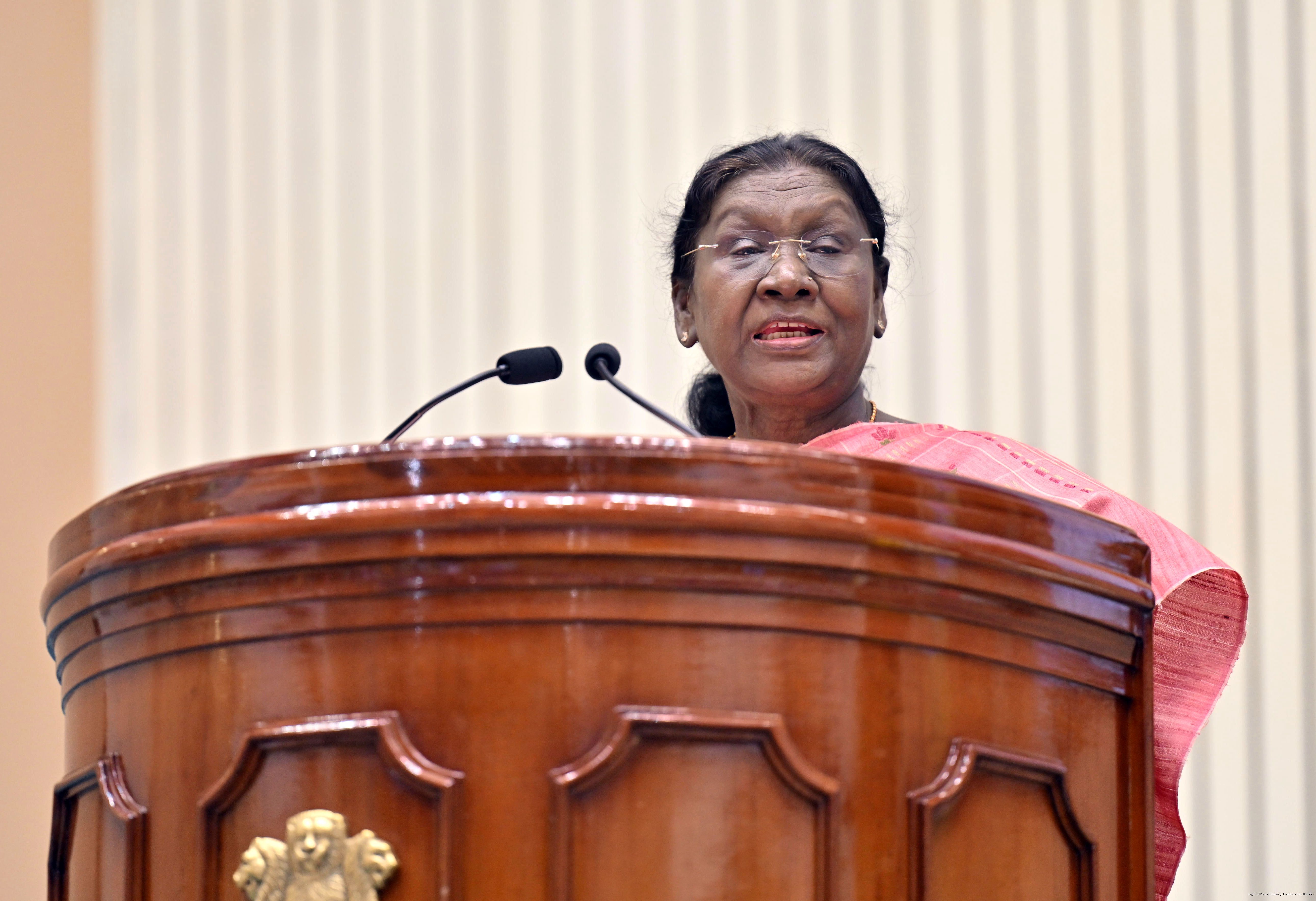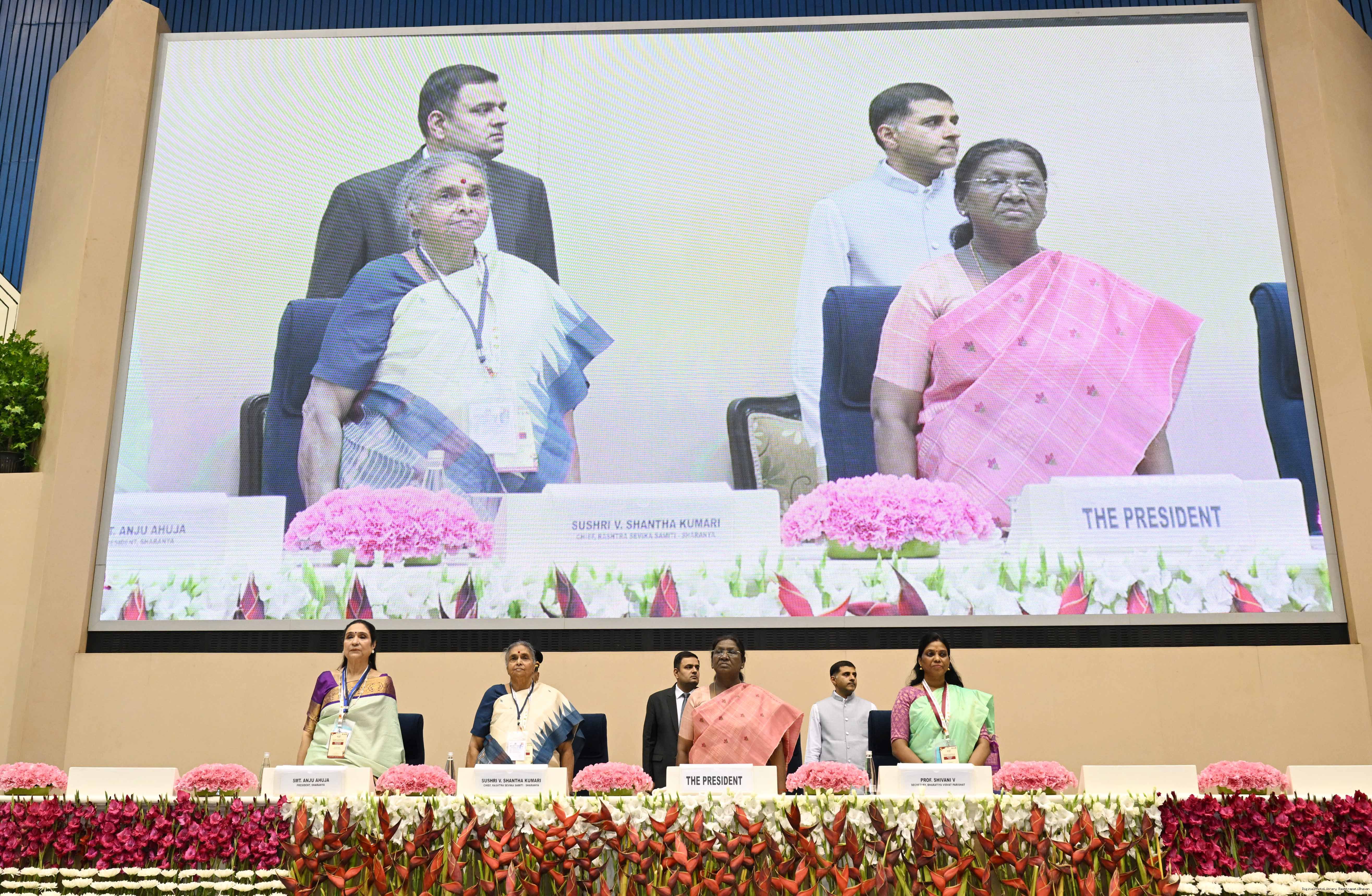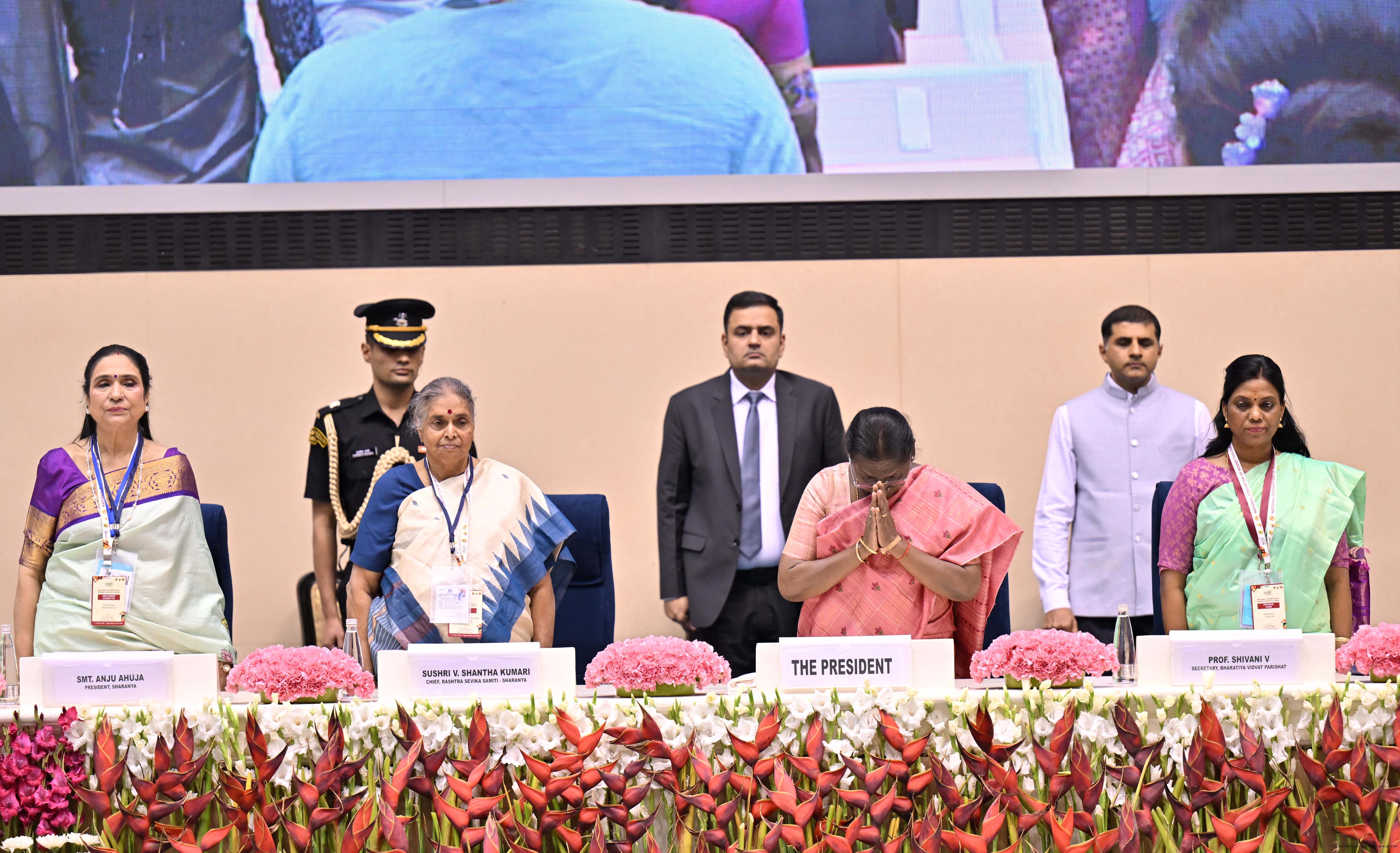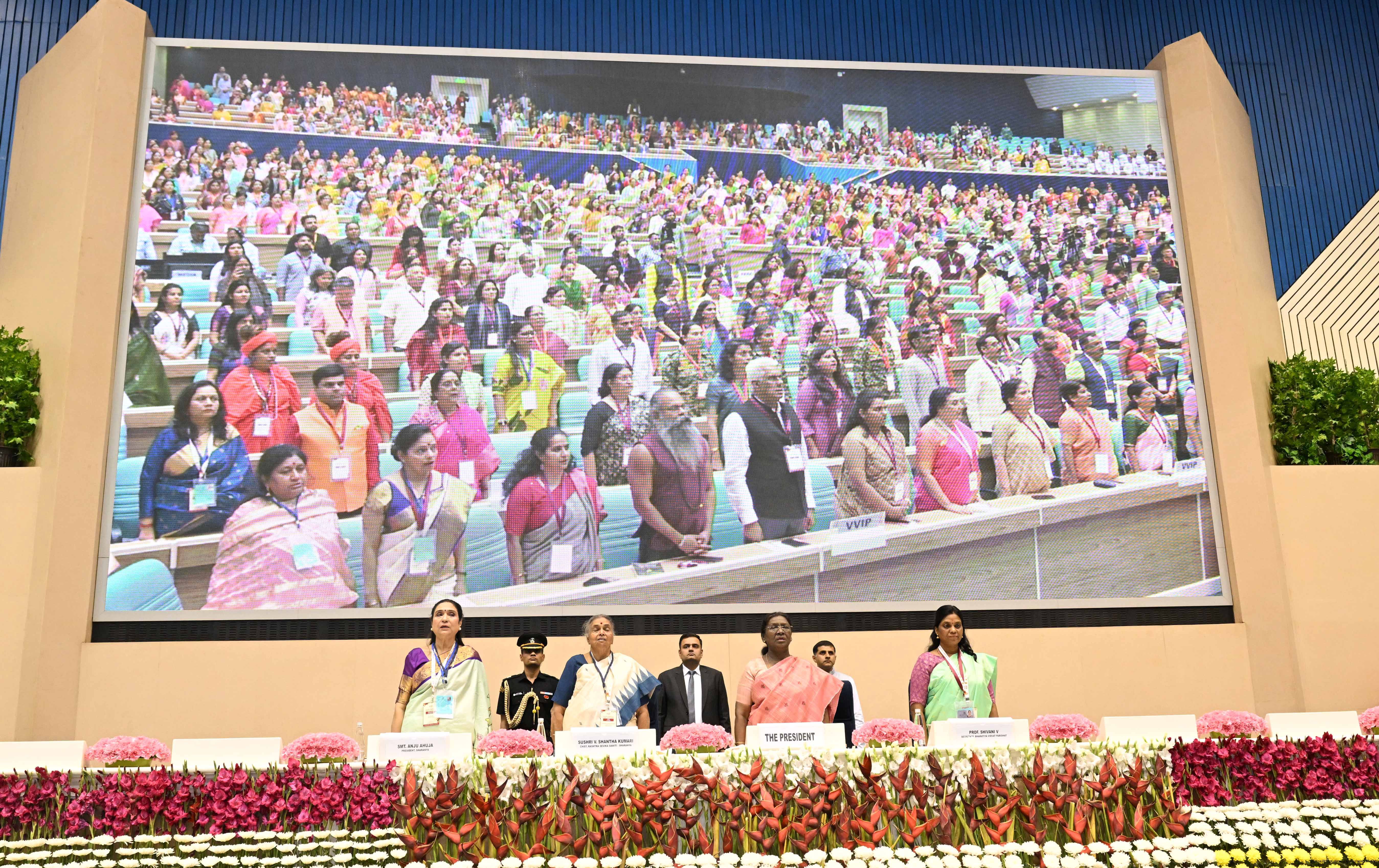 | Caption: | The President of India Smt Droupadi Murmu graced and addressed the National Convention of Women Thought Leaders, organised by Bharatiya Vidvat Parishat in association with Rashtra Sevika Samiti-Sharanya, in New Delhi on March 8, 2026. |
