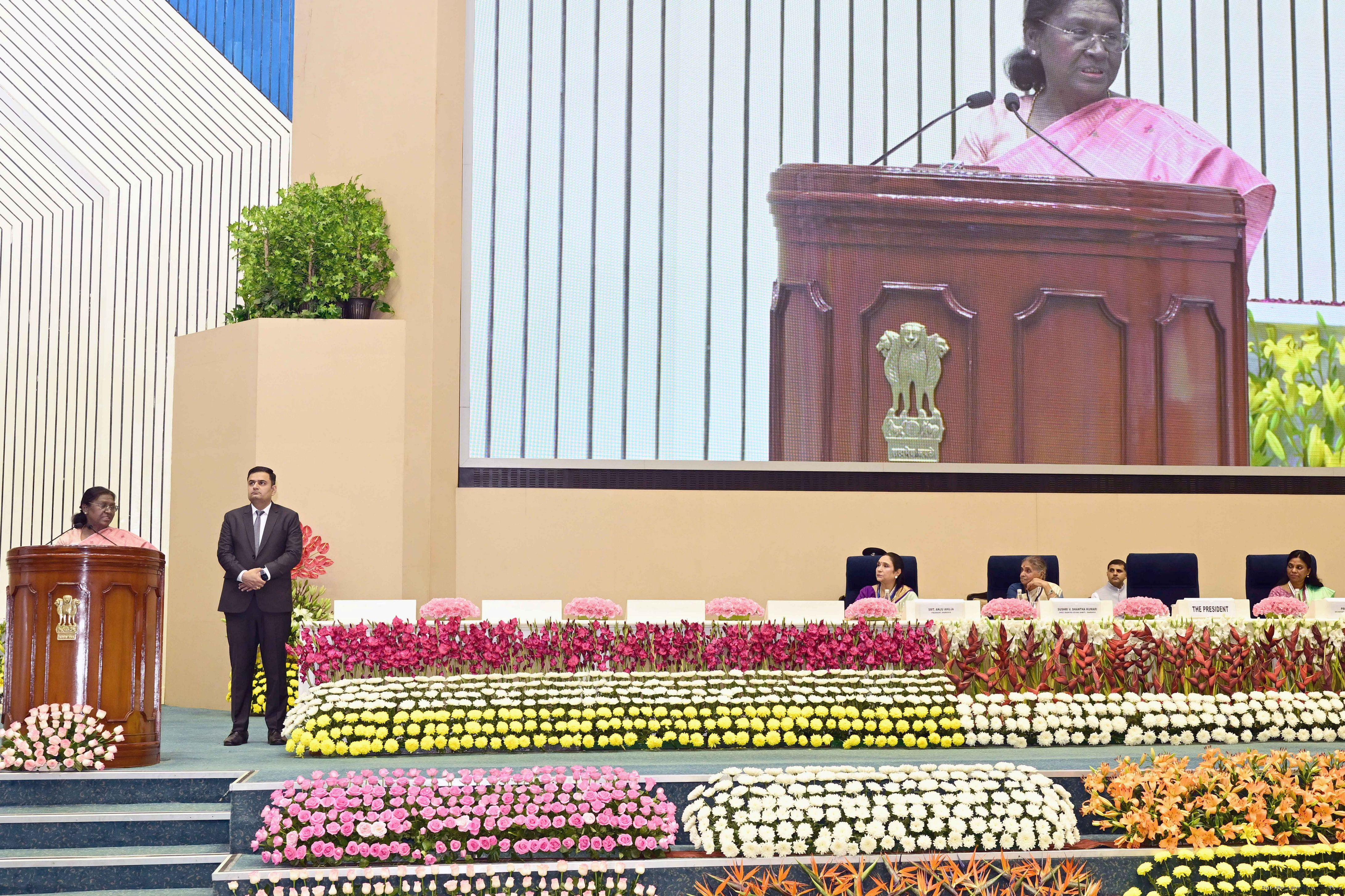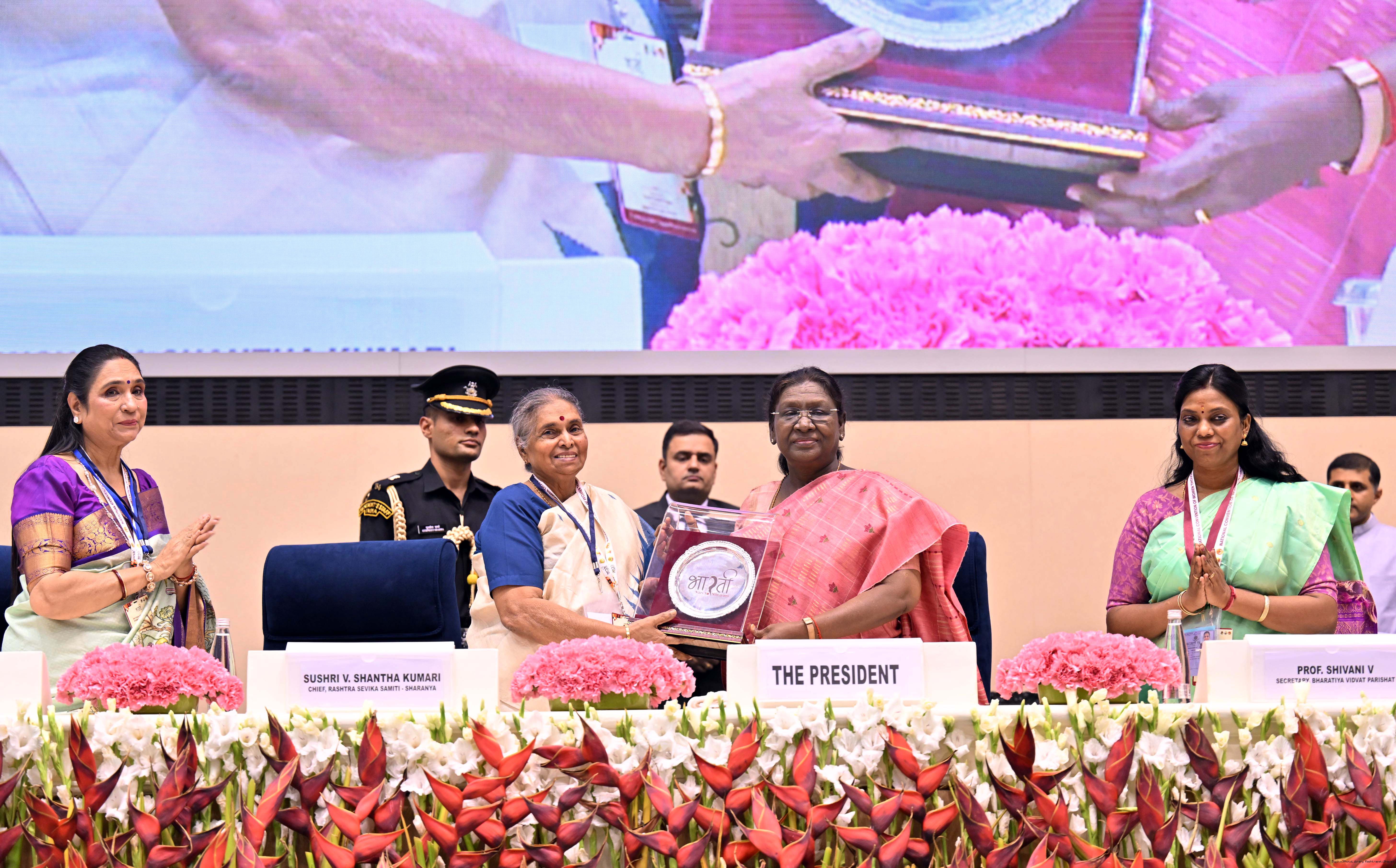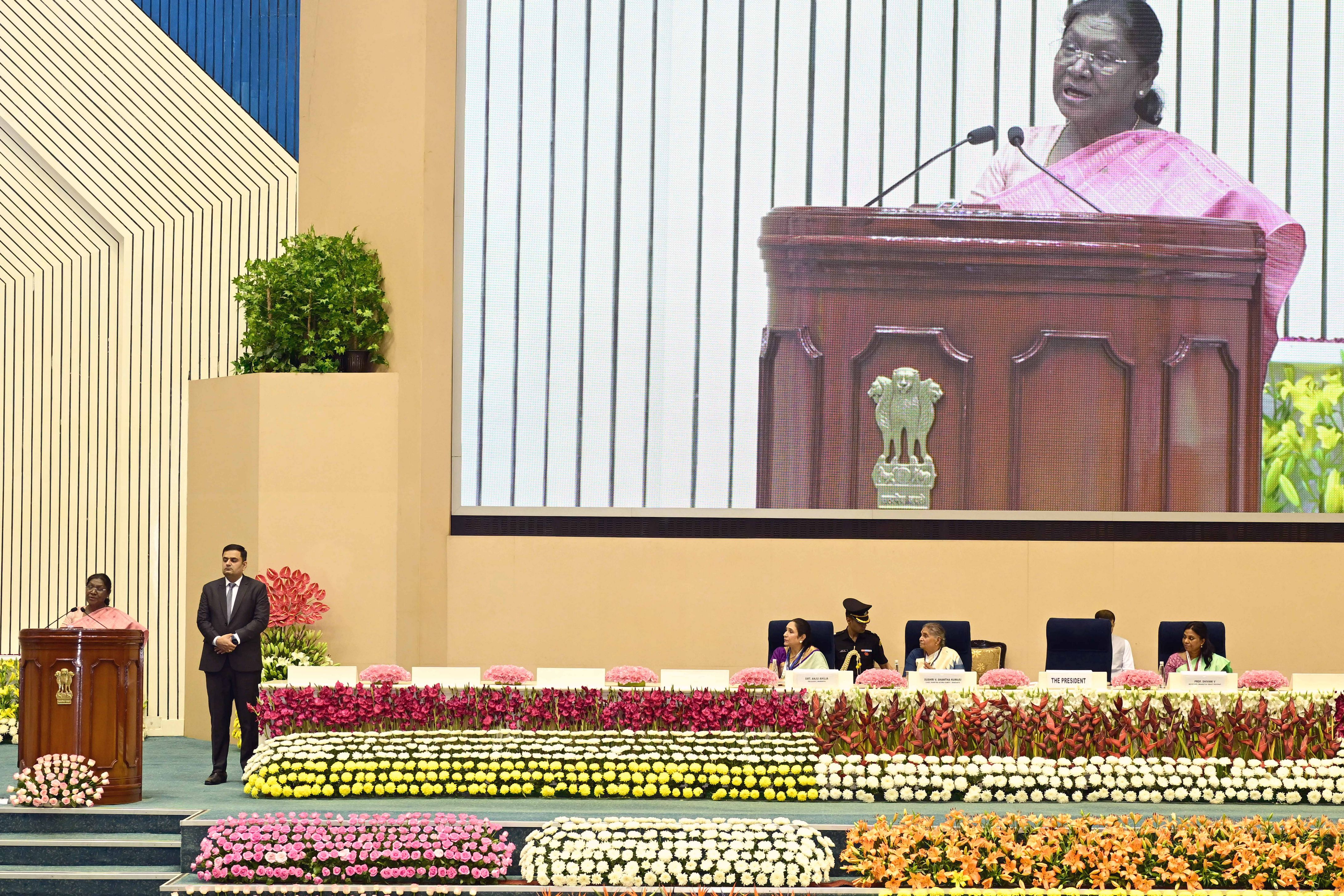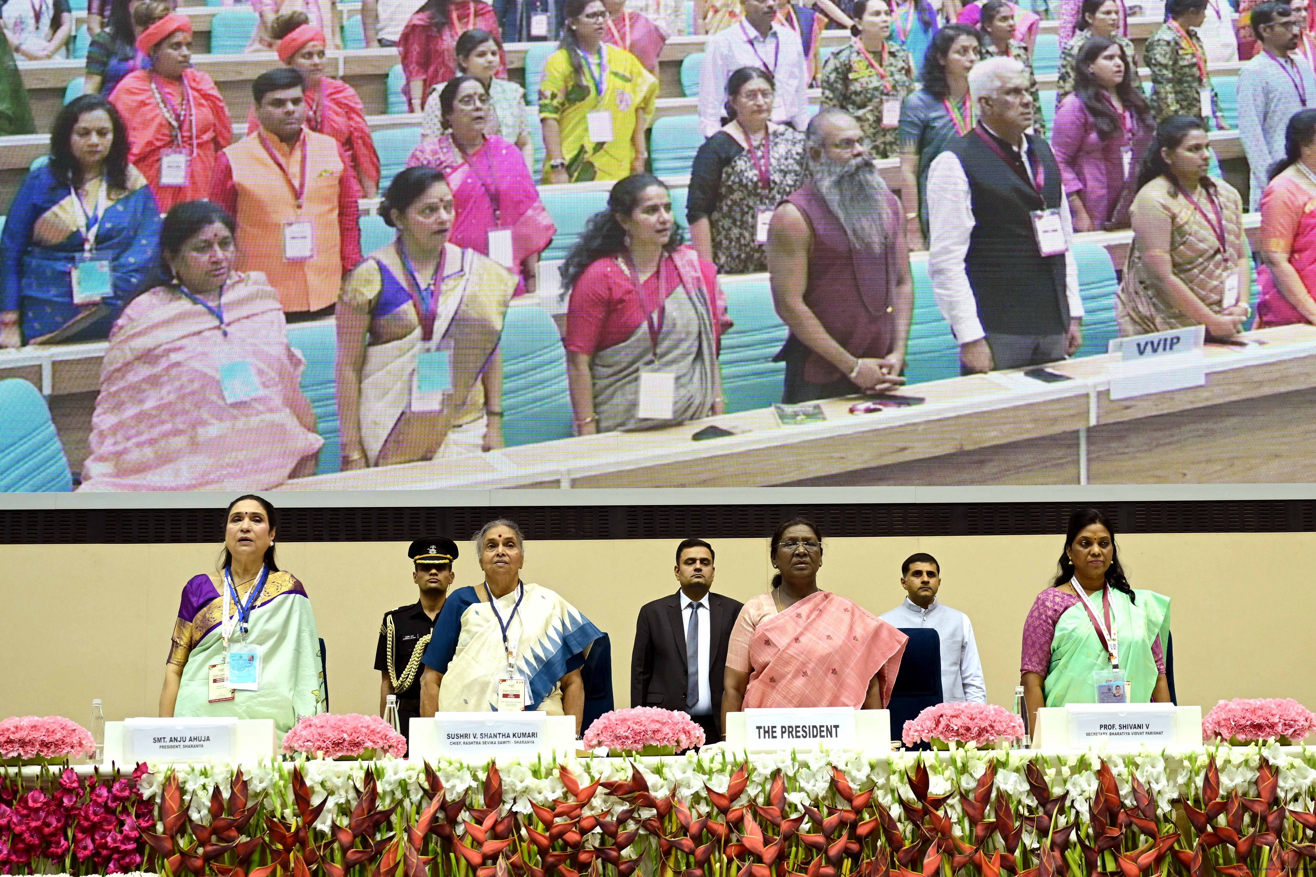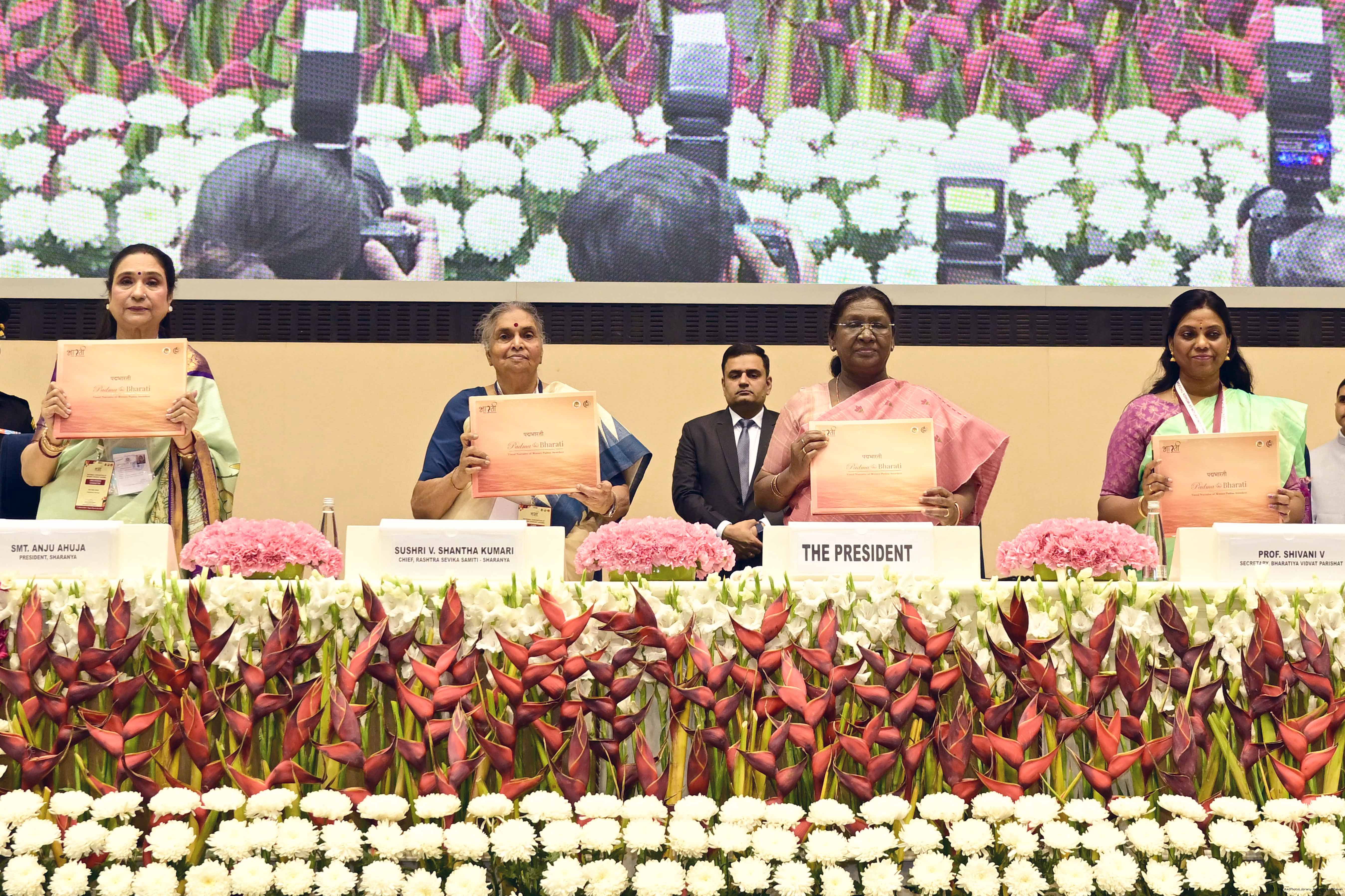 | Caption: | The President of India Smt Droupadi Murmu graced and addressed the National Convention of Women Thought Leaders, organised by Bharatiya Vidvat Parishat in association with Rashtra Sevika Samiti-Sharanya, in New Delhi on March 8, 2026. |