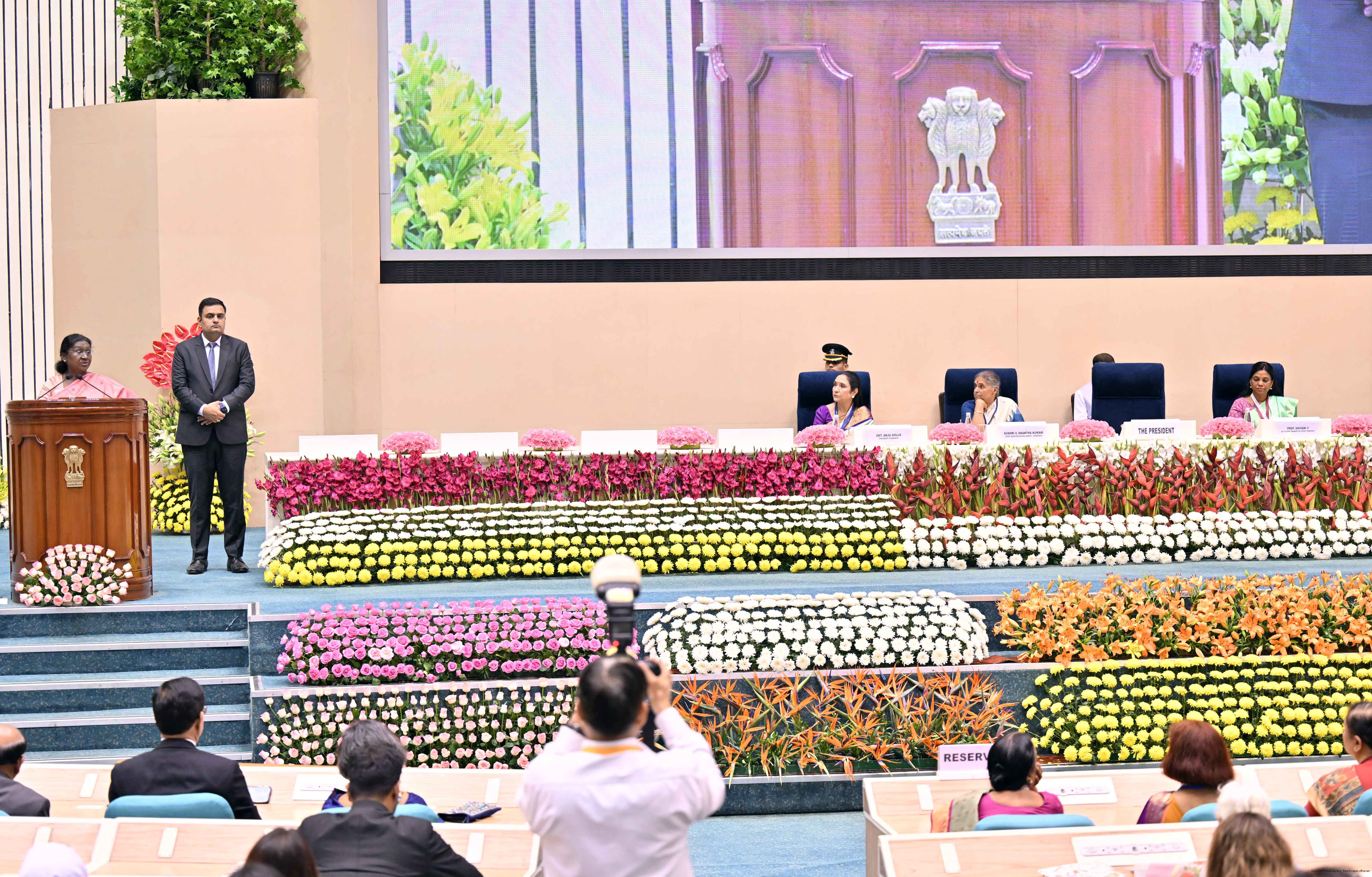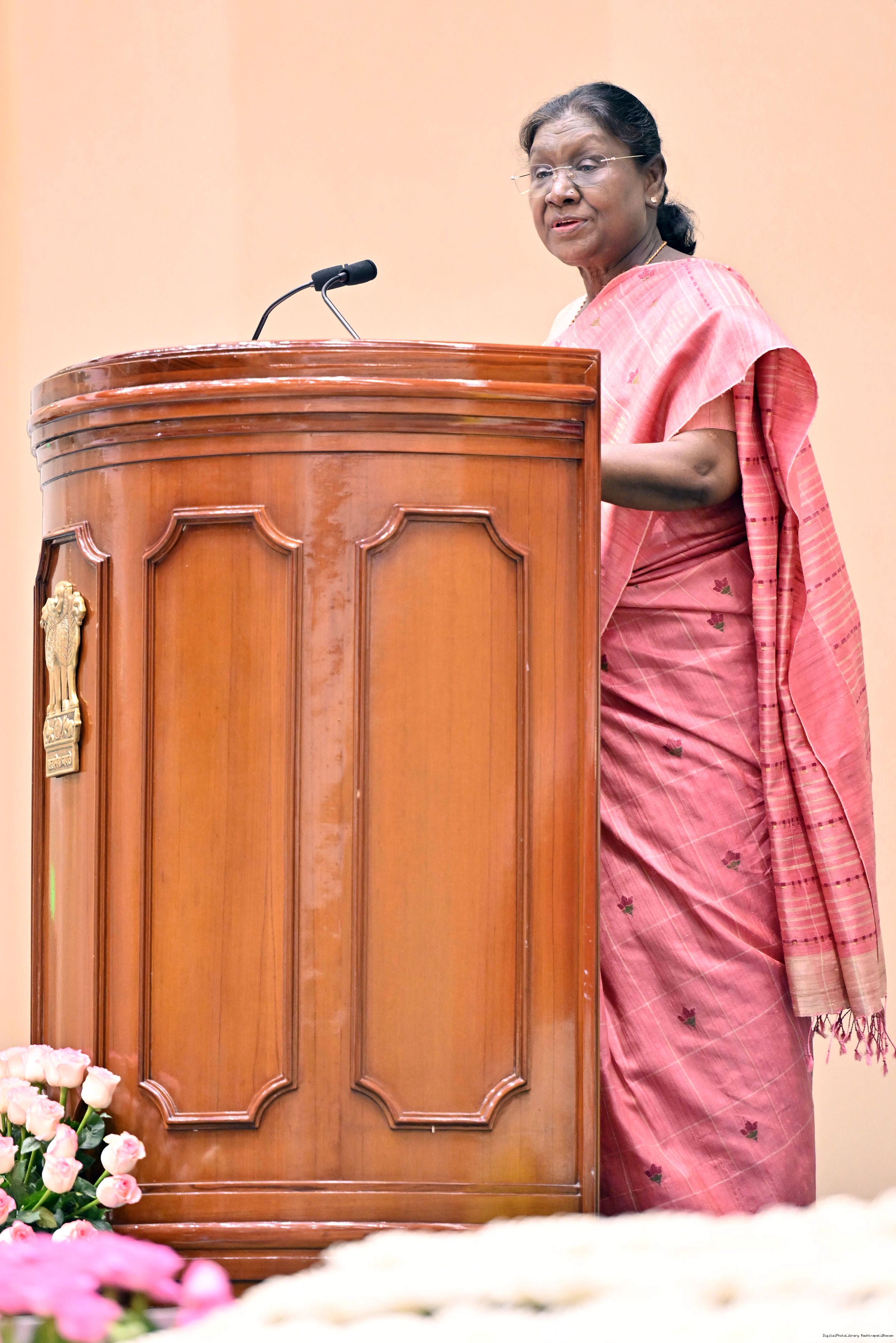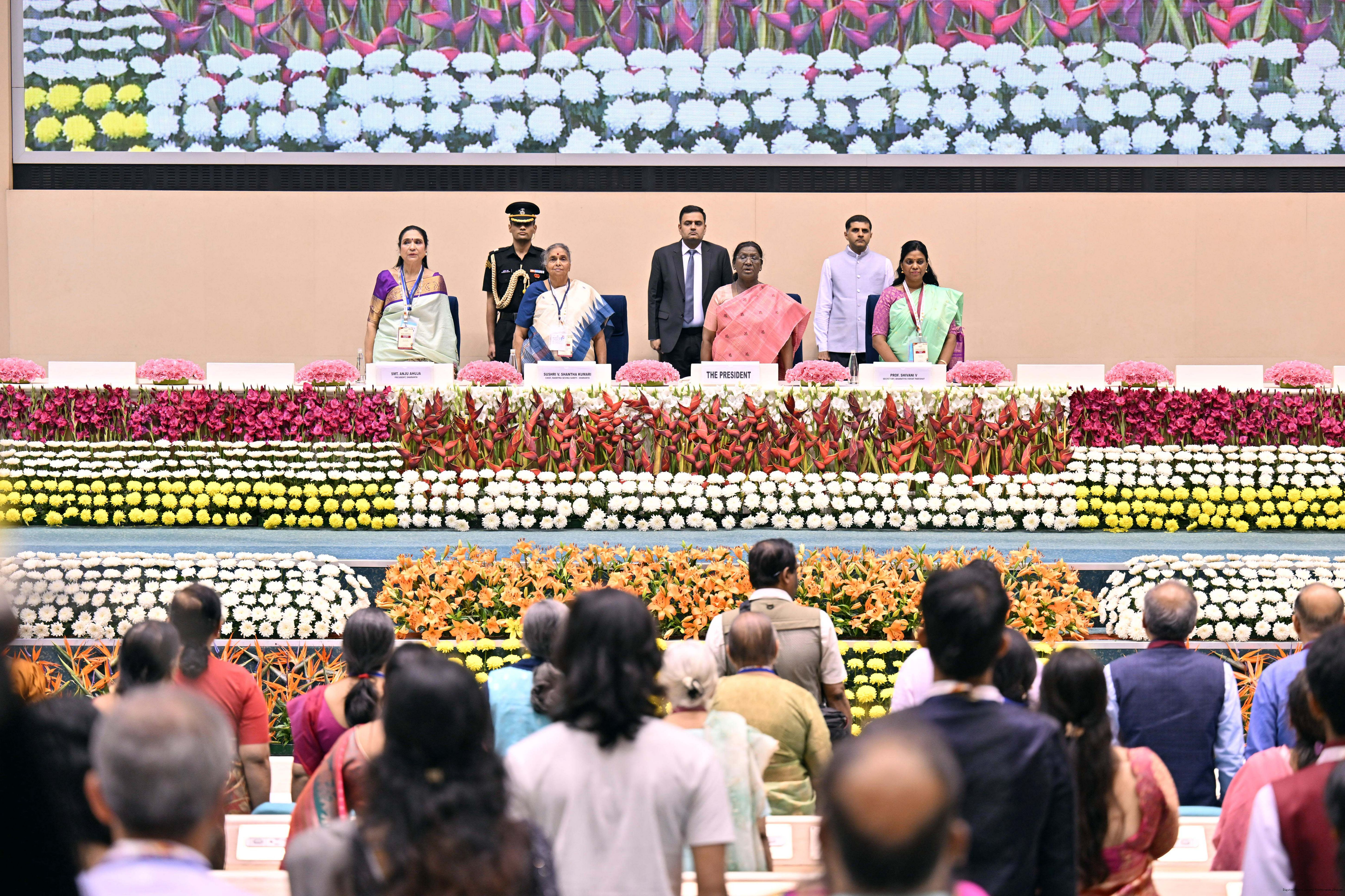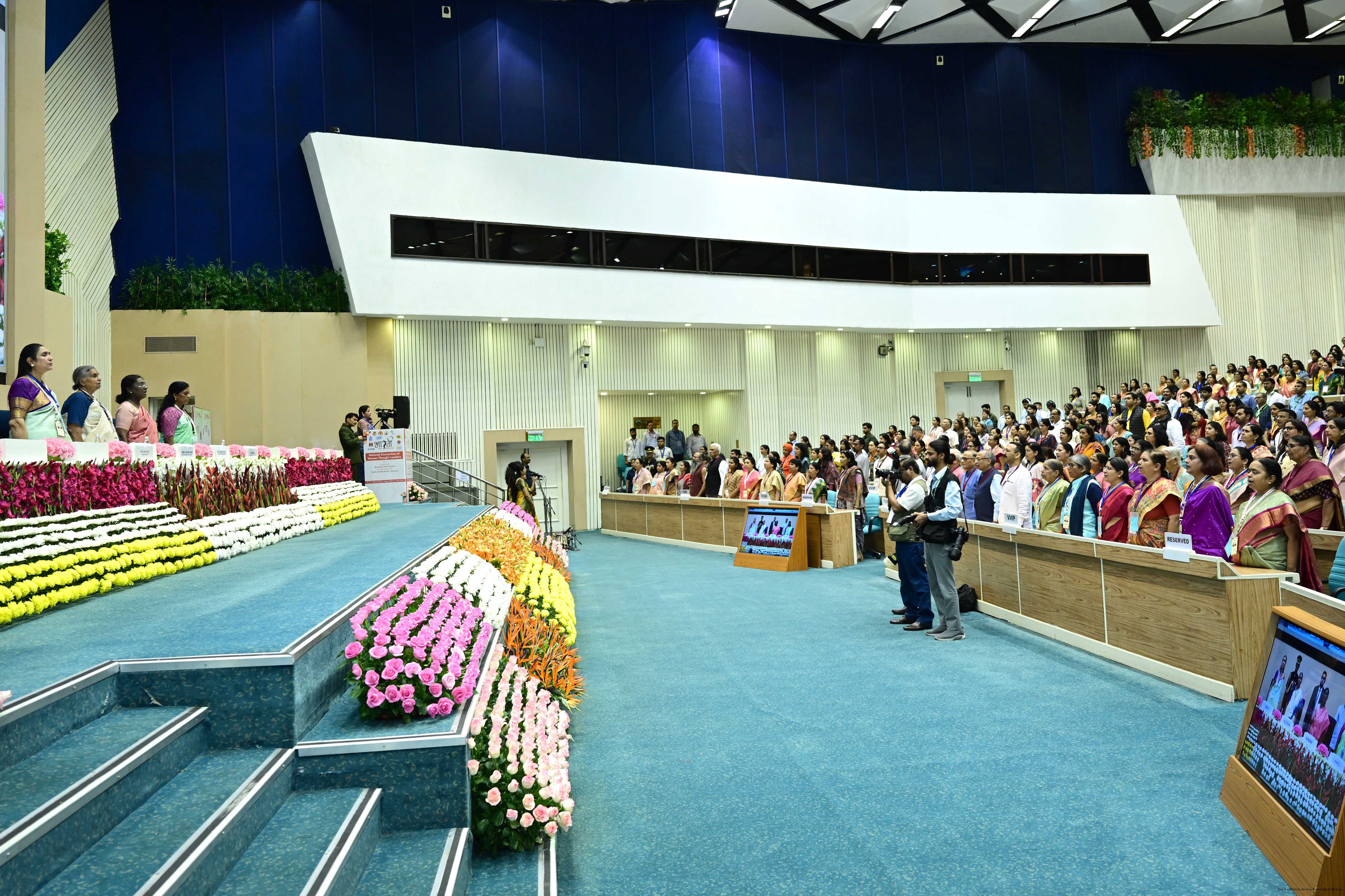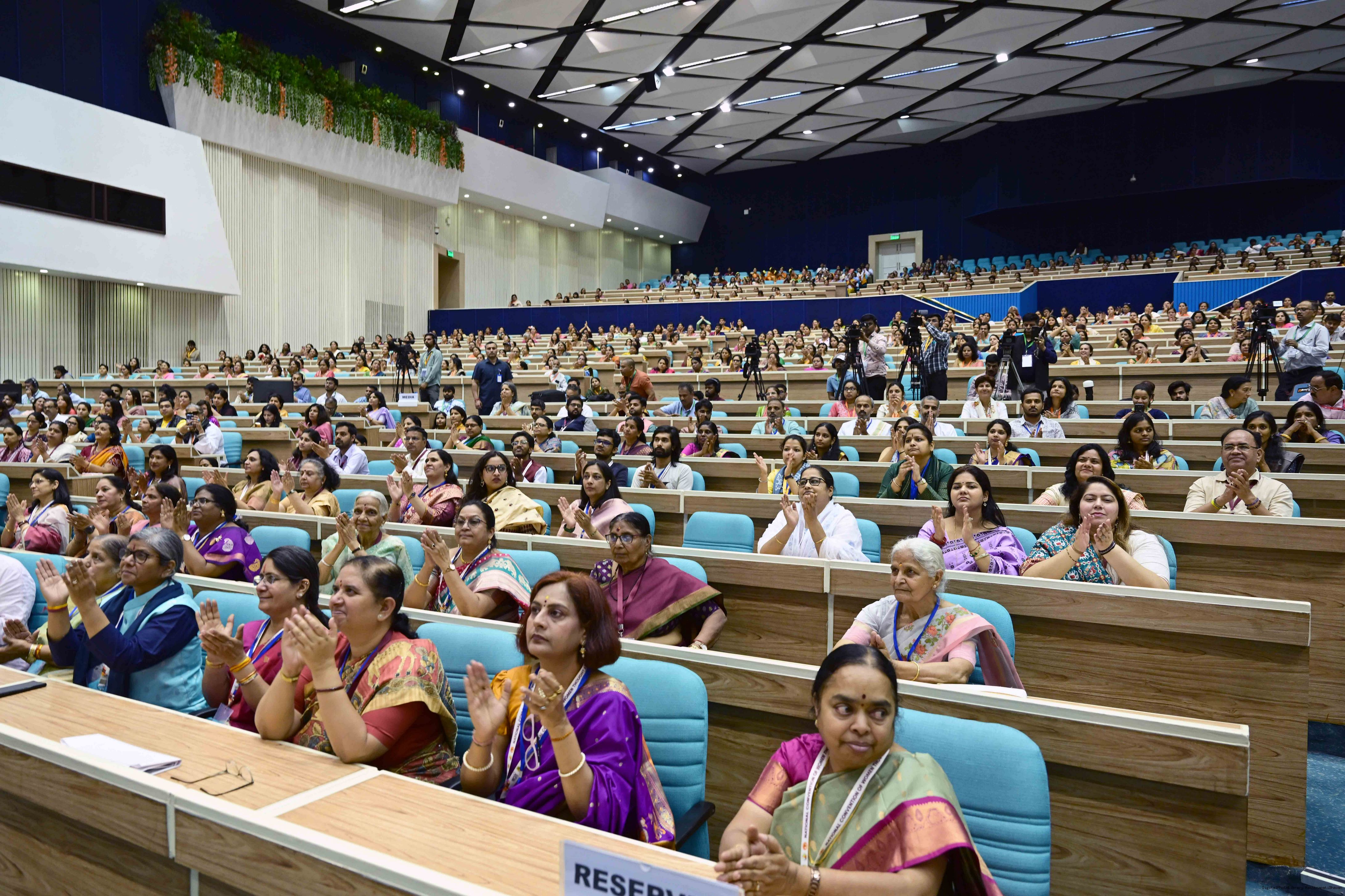 | Caption: | The President of India Smt Droupadi Murmu graced and addressed the National Convention of Women Thought Leaders, organised by Bharatiya Vidvat Parishat in association with Rashtra Sevika Samiti-Sharanya, in New Delhi on March 8, 2026. |