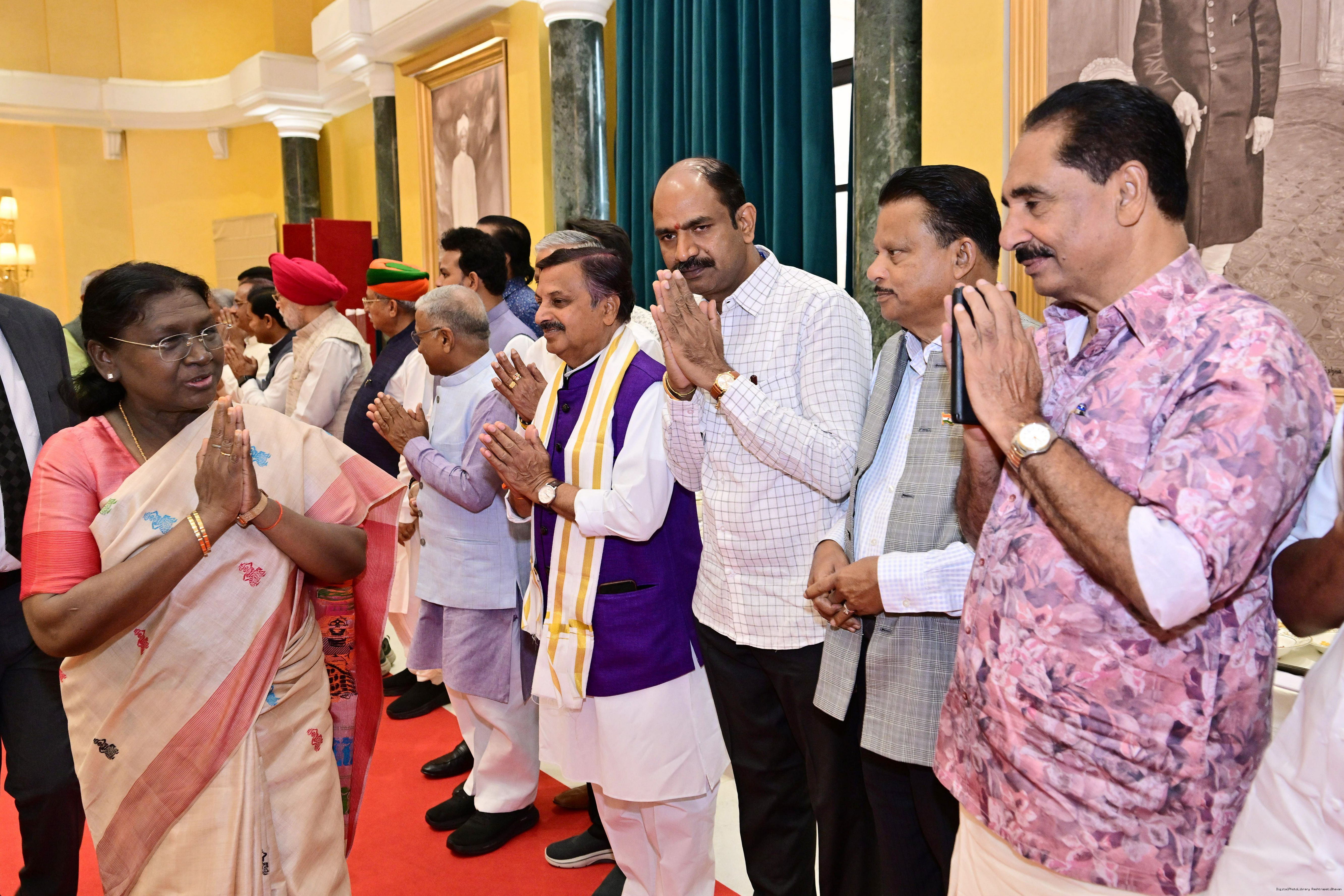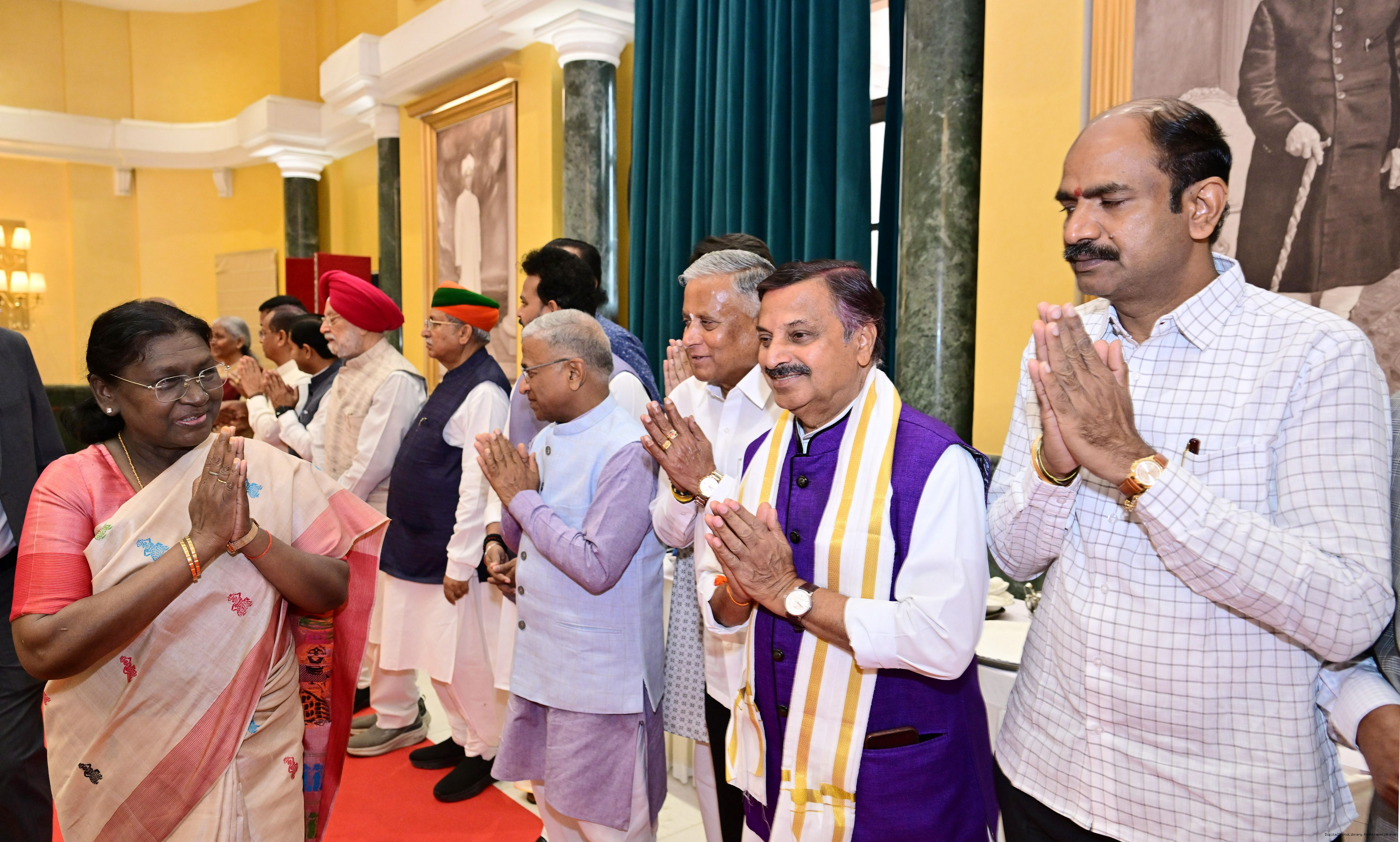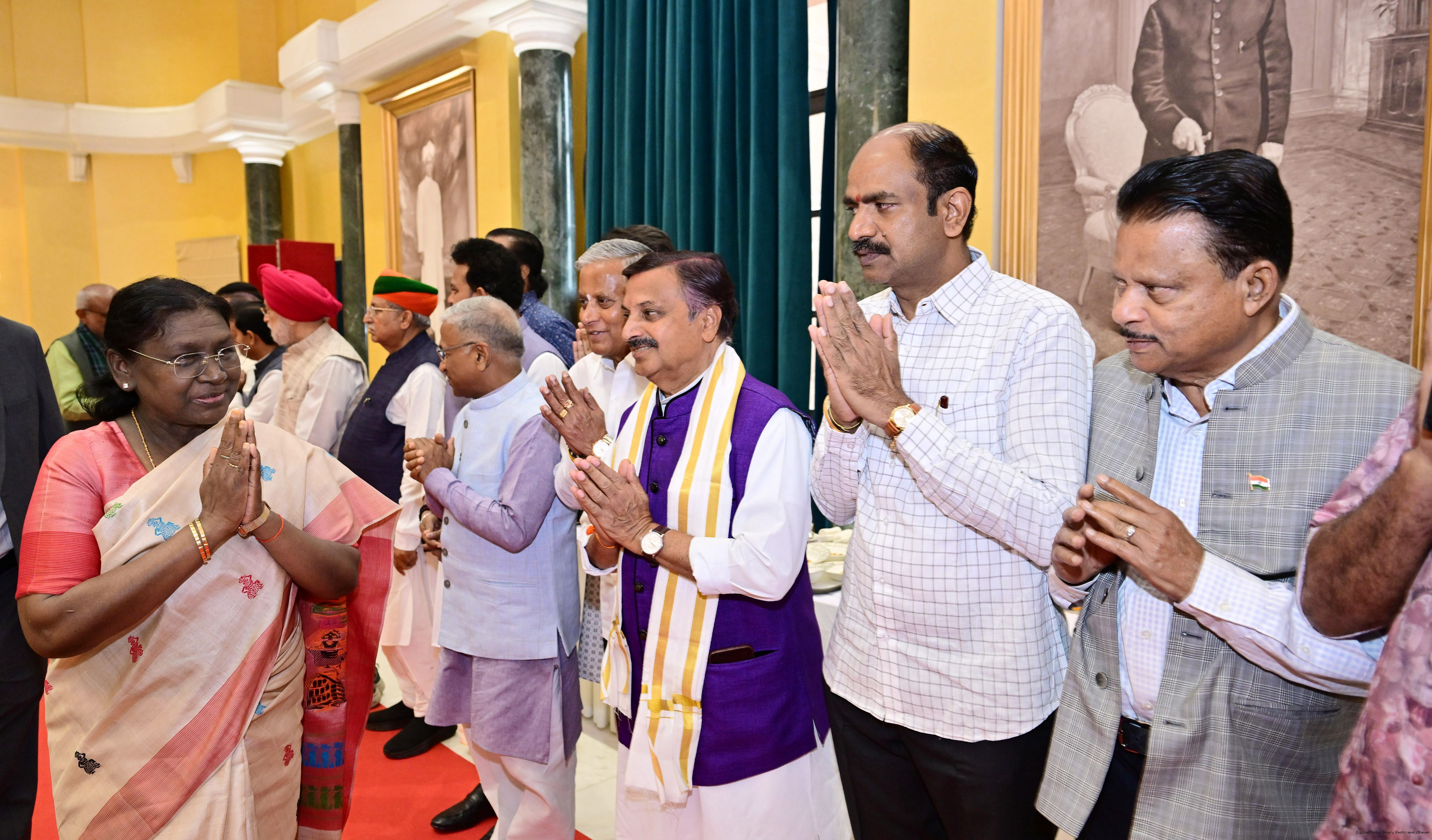 | Caption: | The President of Indis, Smt Droupadi Murmu hosted Members of Parliament from Andhra Pradesh, Karnataka, Kerala, Haryana, Uttar Pradesh and Punjab at Rashtrapati Bhavan Cultural Centre on March 10, 2026. |