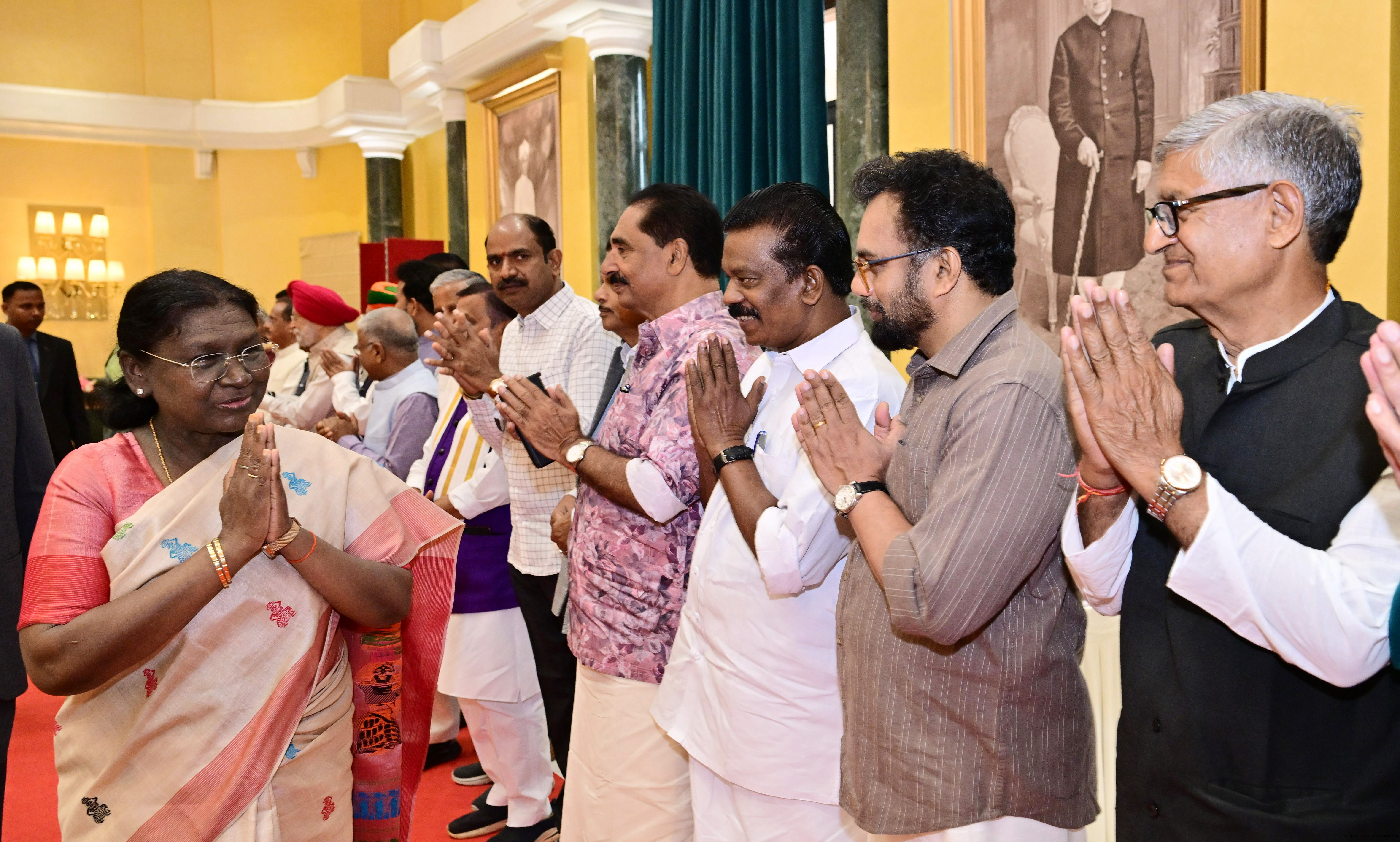 | Caption: | The President of Indis, Smt Droupadi Murmu hosted Members of Parliament from Andhra Pradesh, Karnataka, Kerala, Haryana, Uttar Pradesh and Punjab at Rashtrapati Bhavan Cultural Centre on March 10, 2026. |