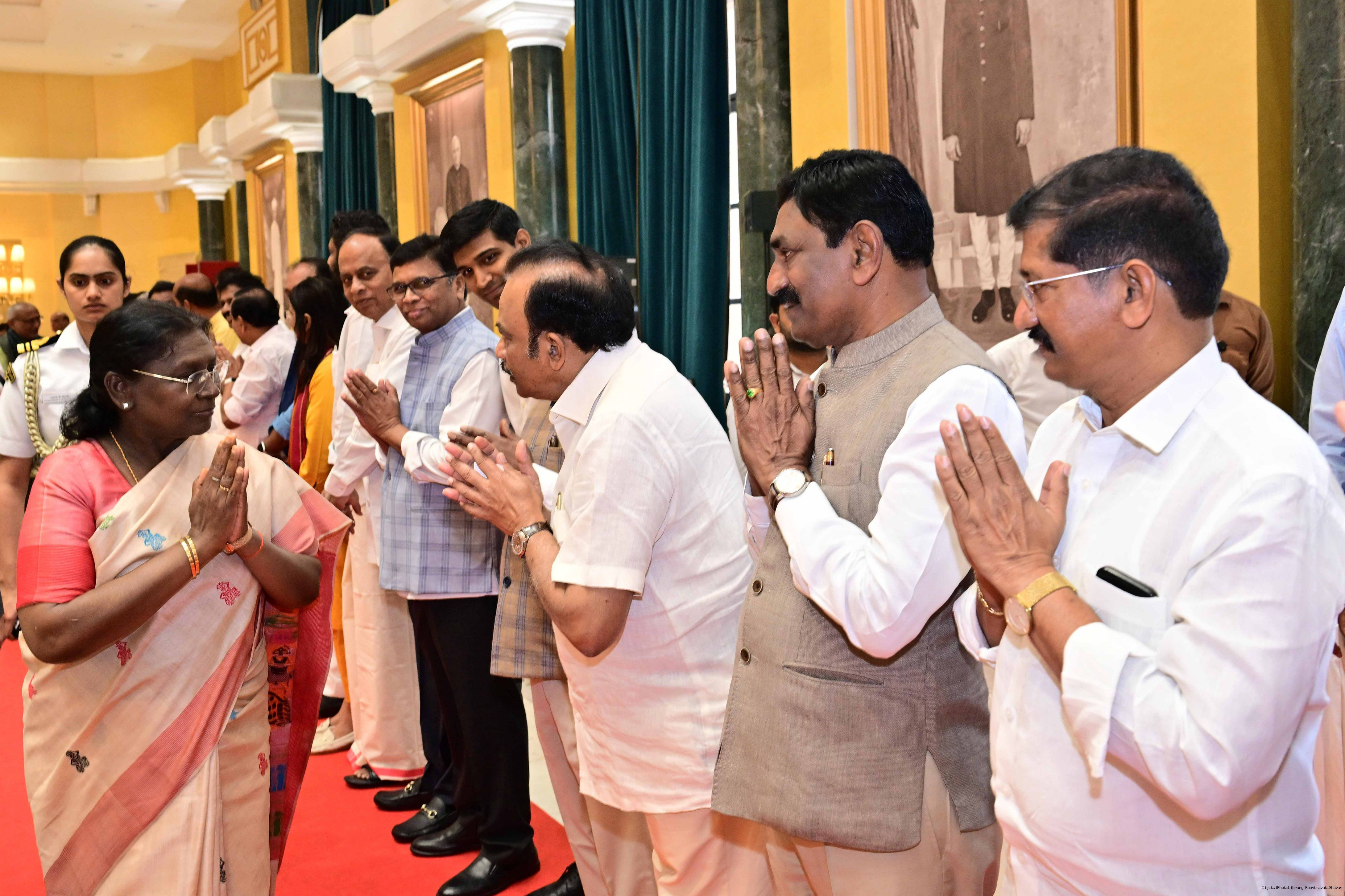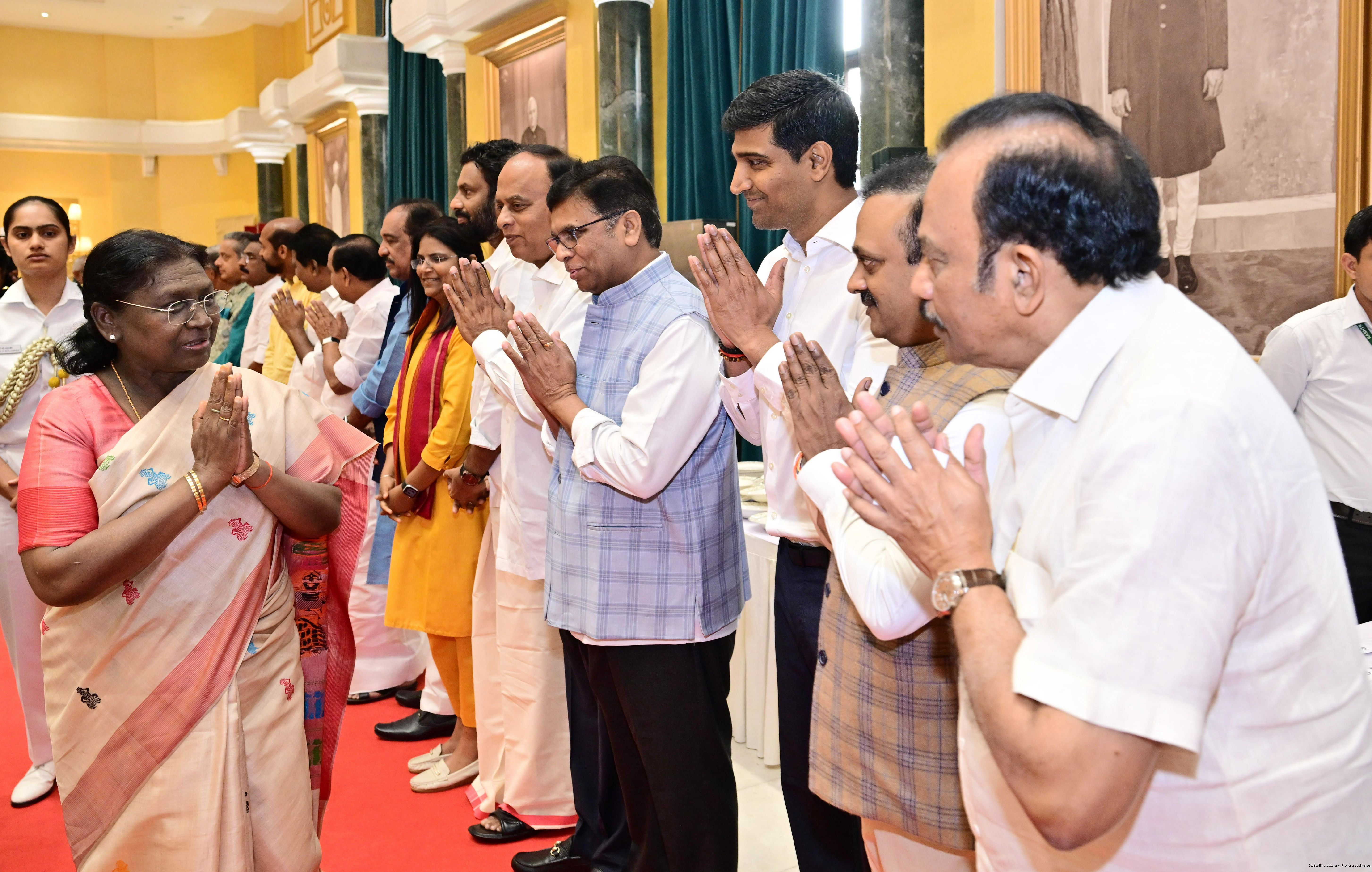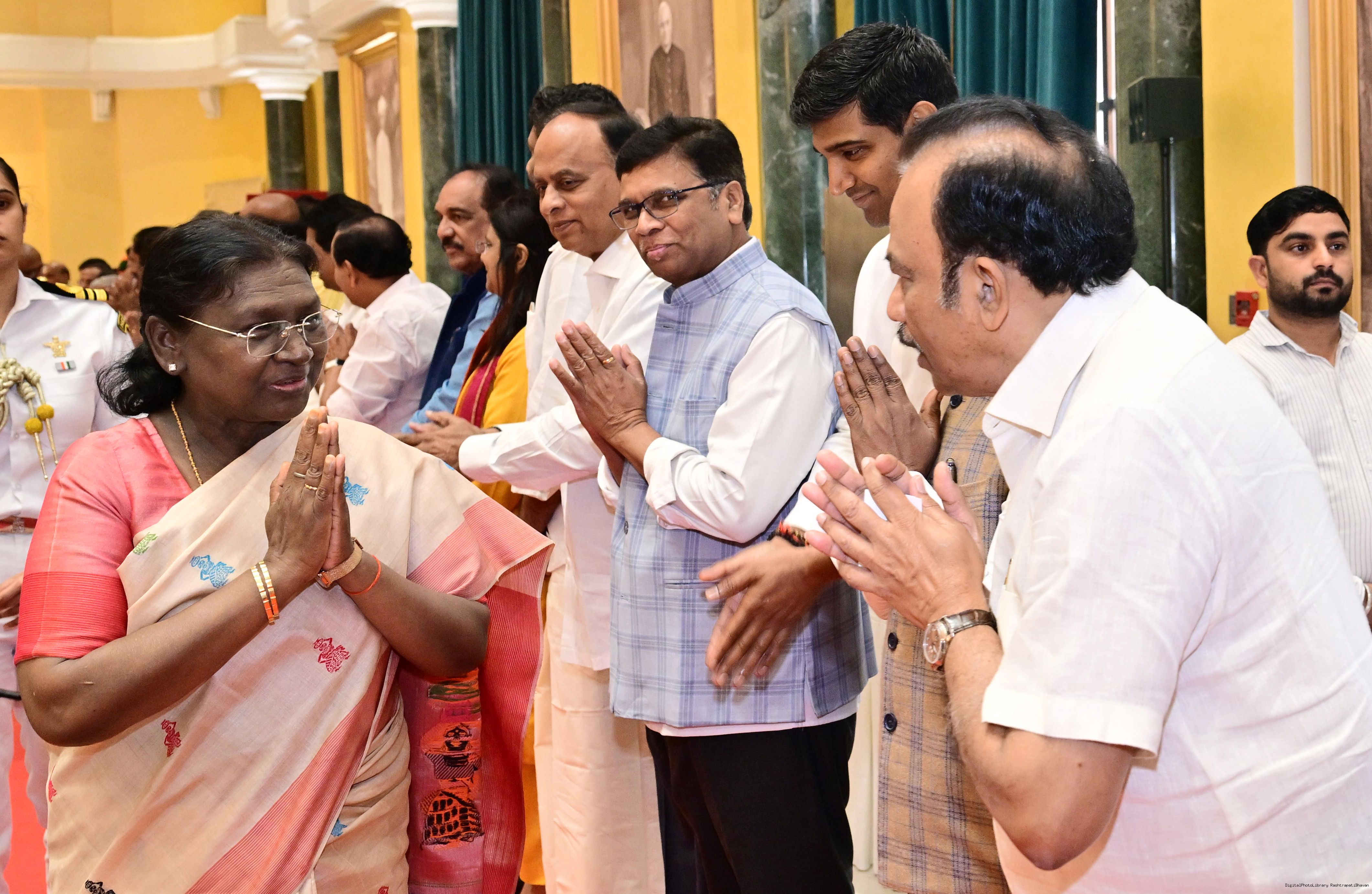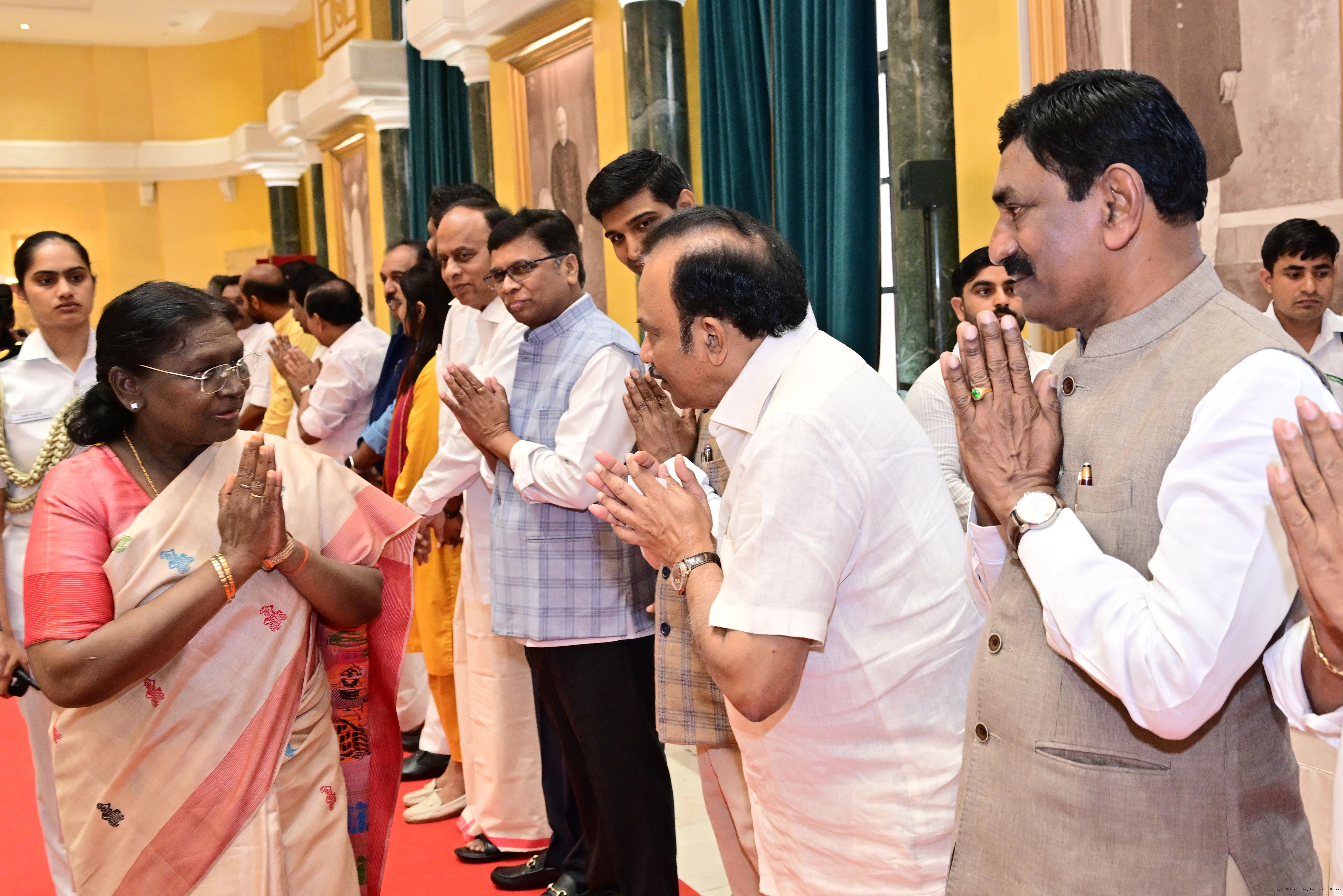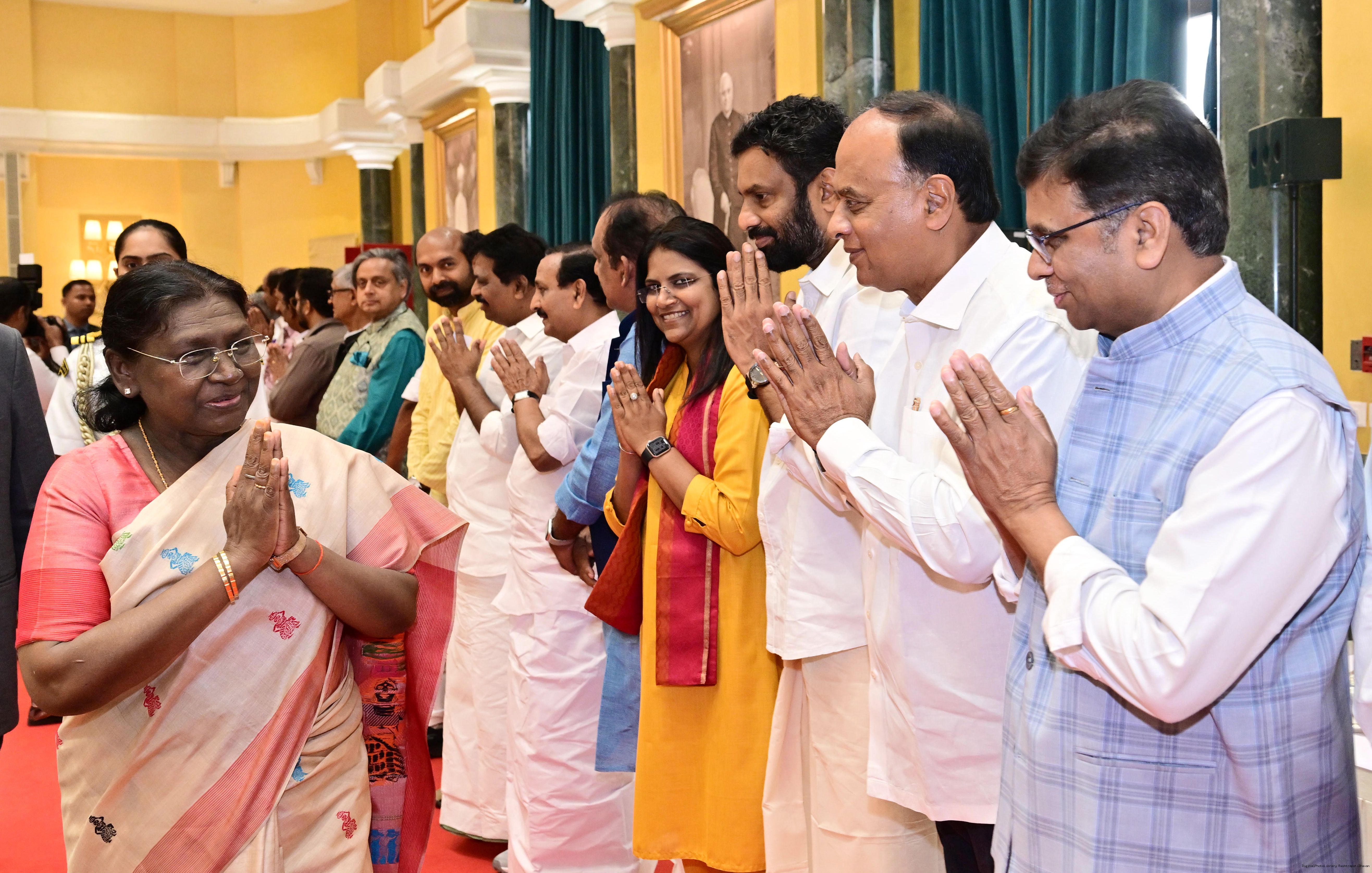 | Caption: | The President of Indis, Smt Droupadi Murmu hosted Members of Parliament from Andhra Pradesh, Karnataka, Kerala, Haryana, Uttar Pradesh and Punjab at Rashtrapati Bhavan Cultural Centre on March 10, 2026. |