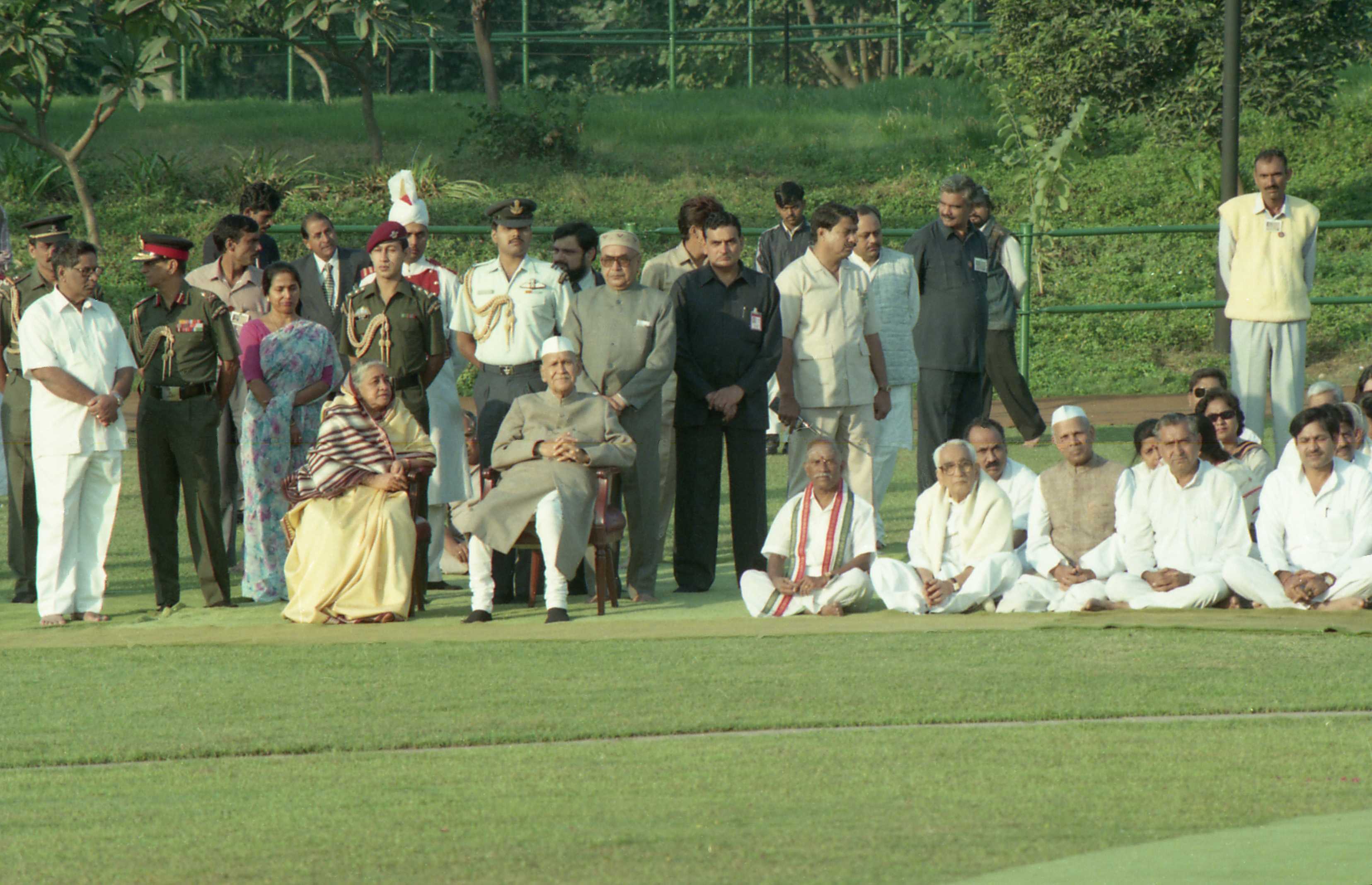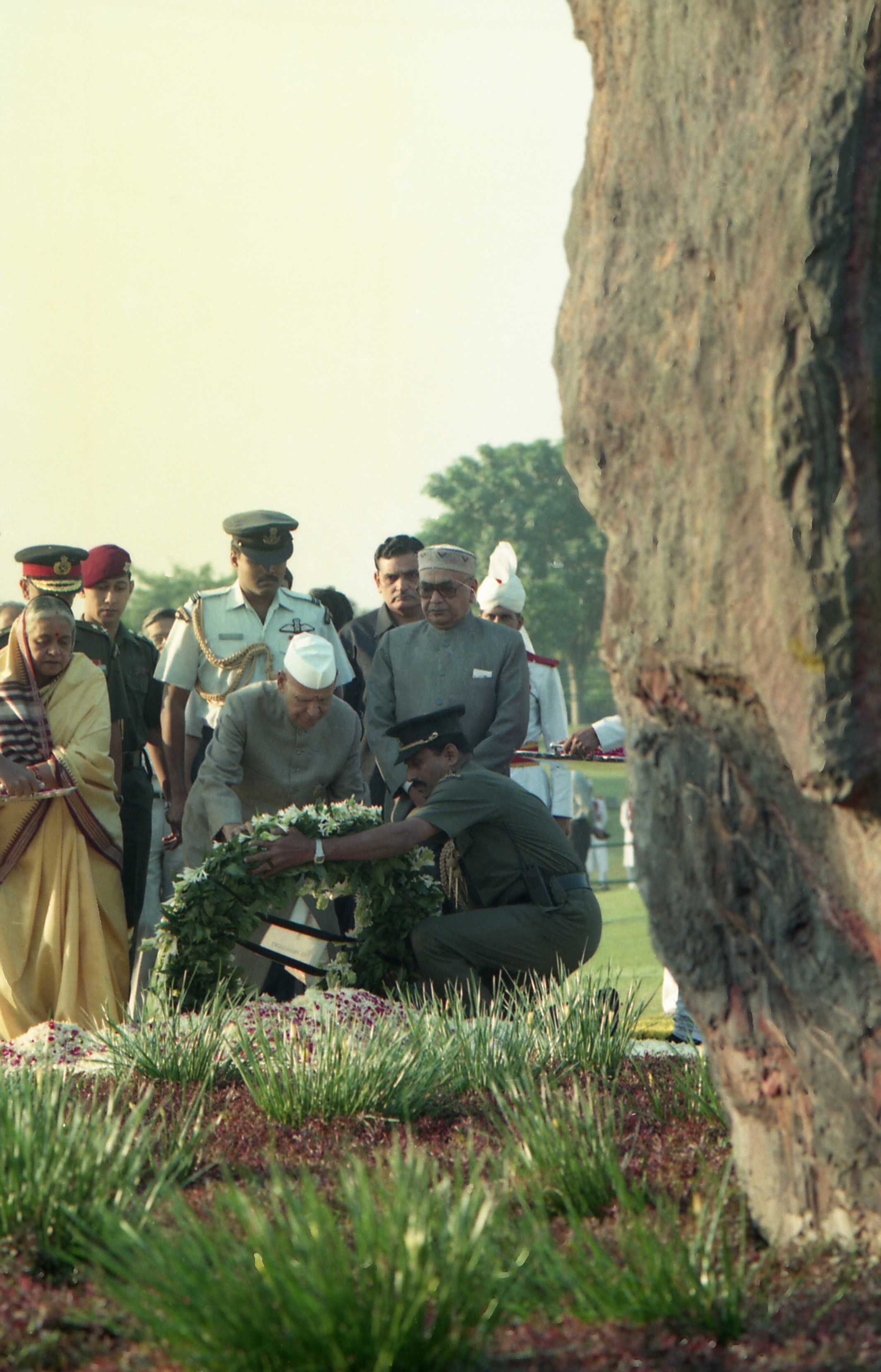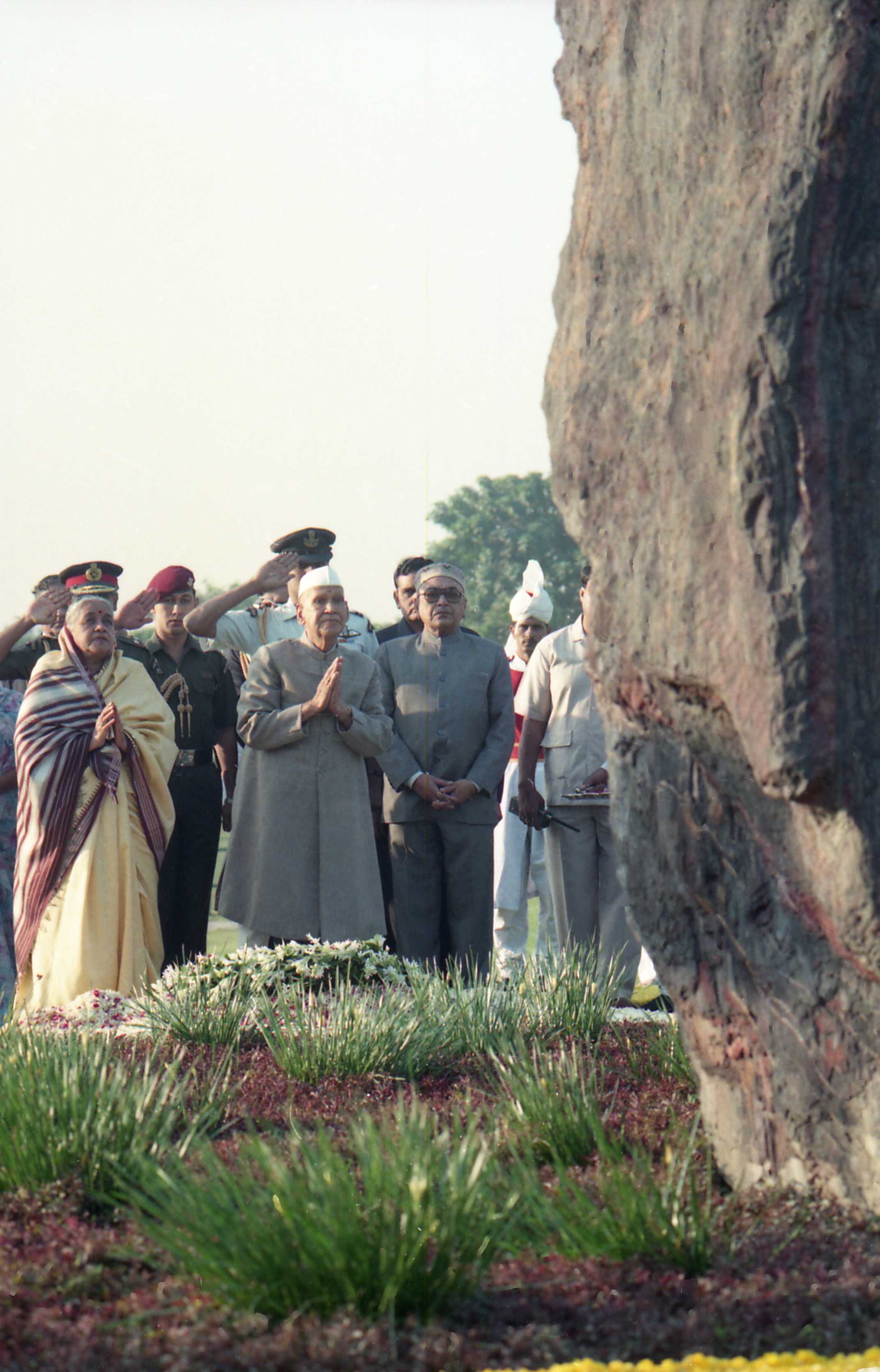 | Caption: | The President of India, Dr. Shankar Dayal Sharma laying wreath at the Samadhi of late Smt. Indira Gandhi on the occasion of her 12th death Anniversary at Shakti Sthal in Delhi on October 31, 1996. |