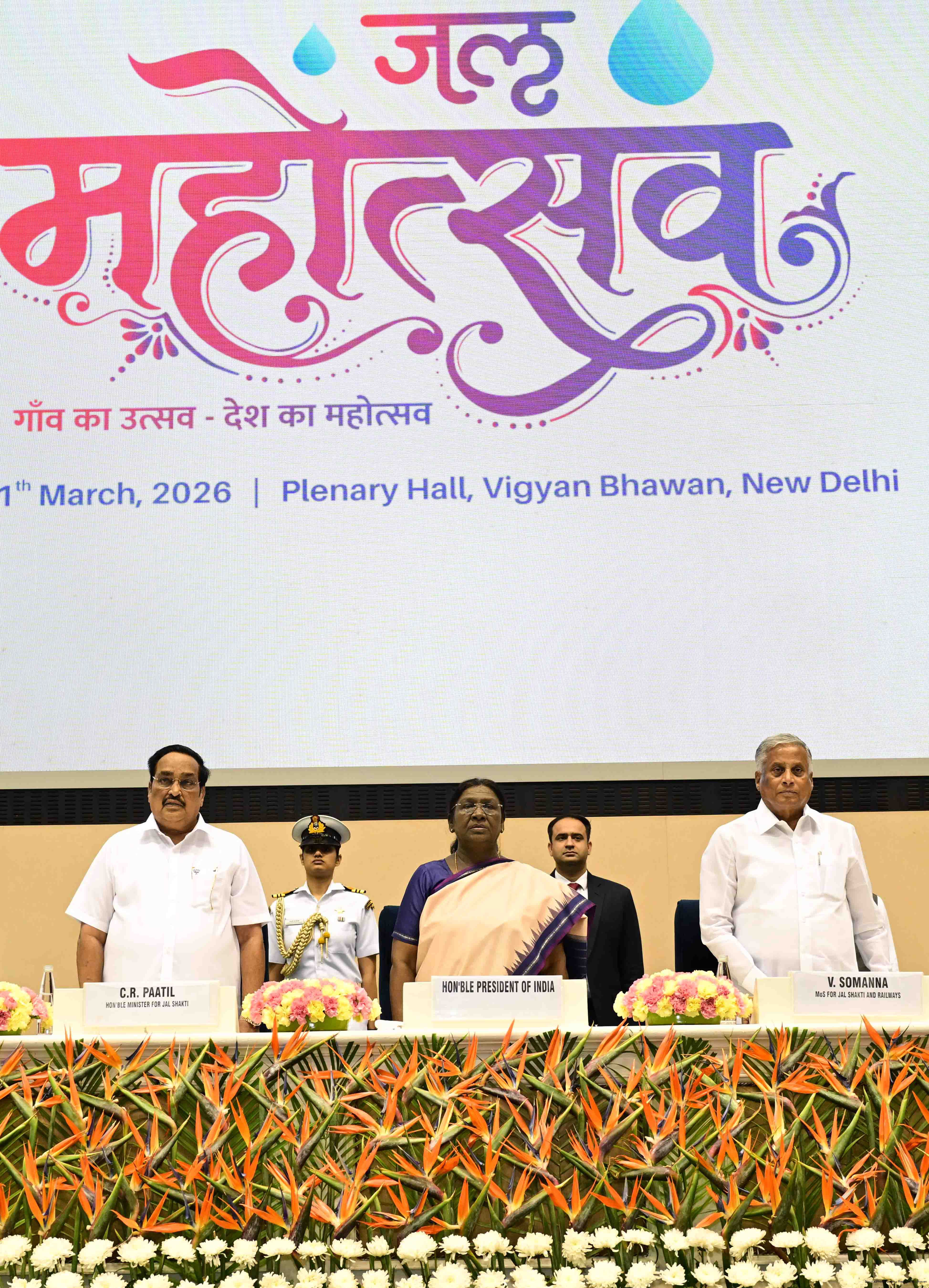| Caption: | The President of India Smt Droupadi Murmu graced and addressed the ‘Jal Mahotsav 2026’ in New Delhi on March 11, 2026. |