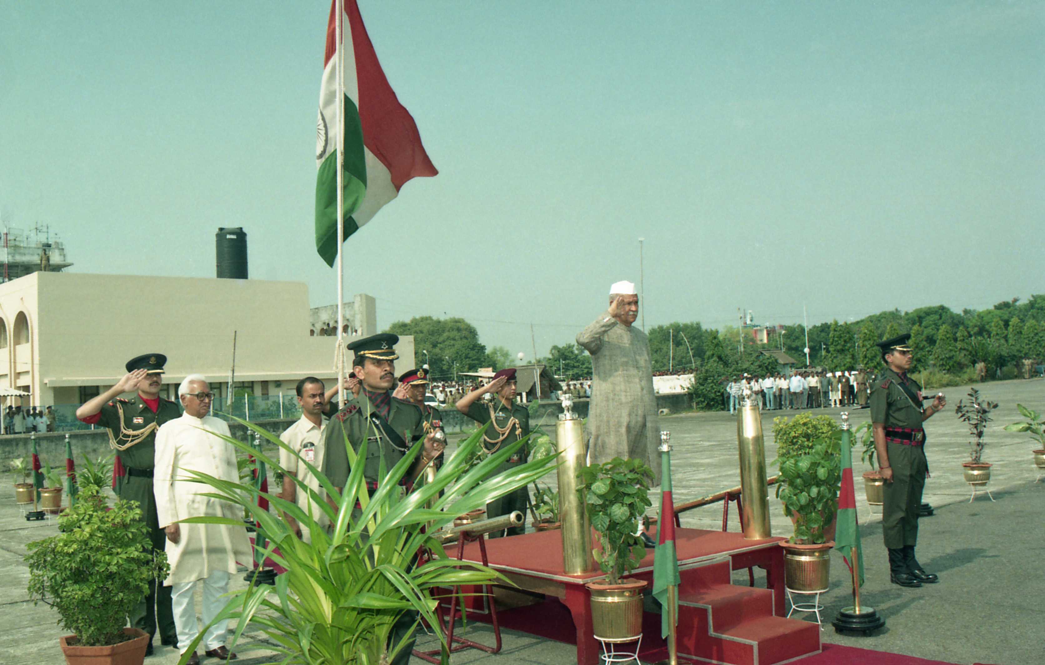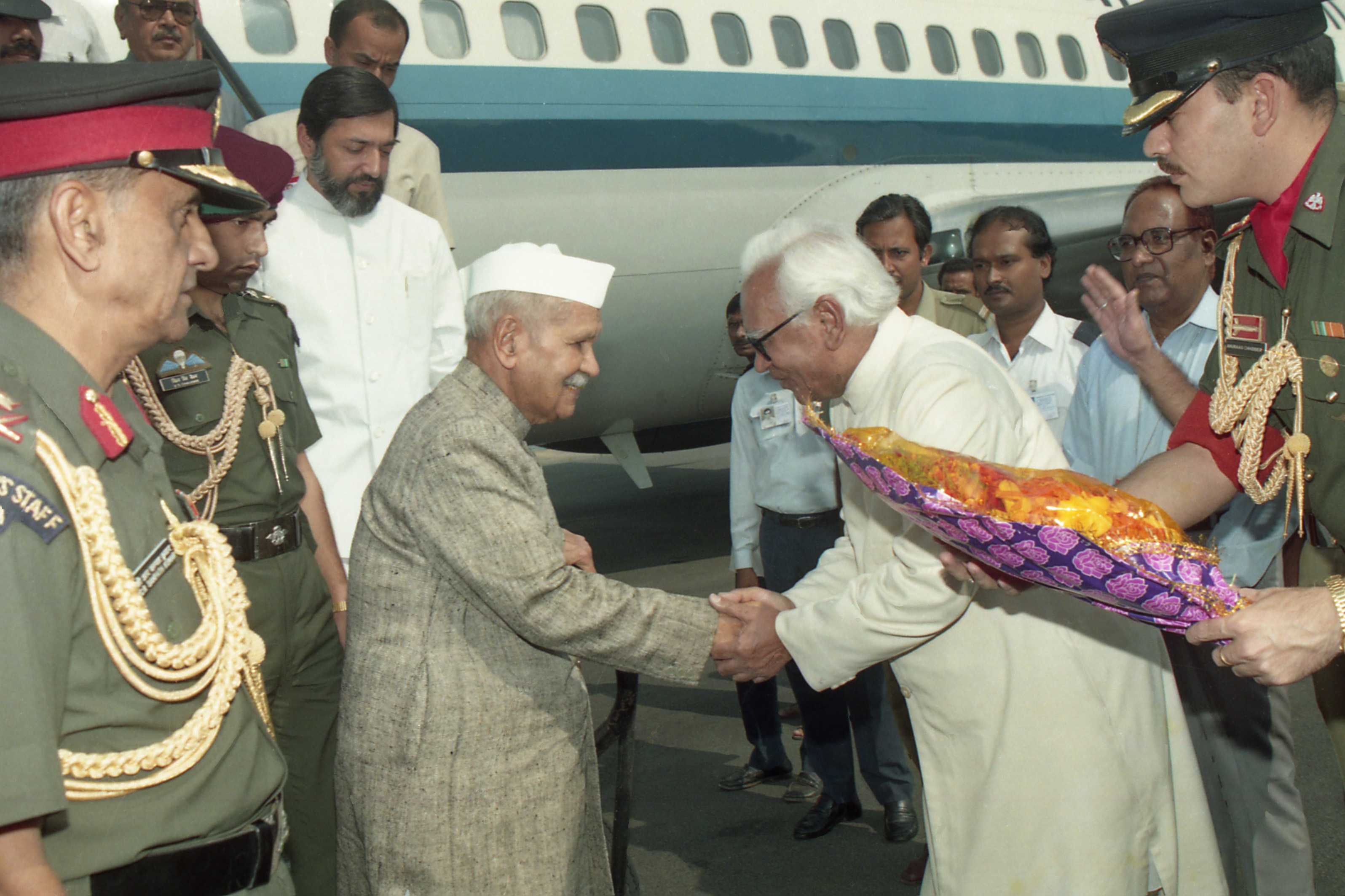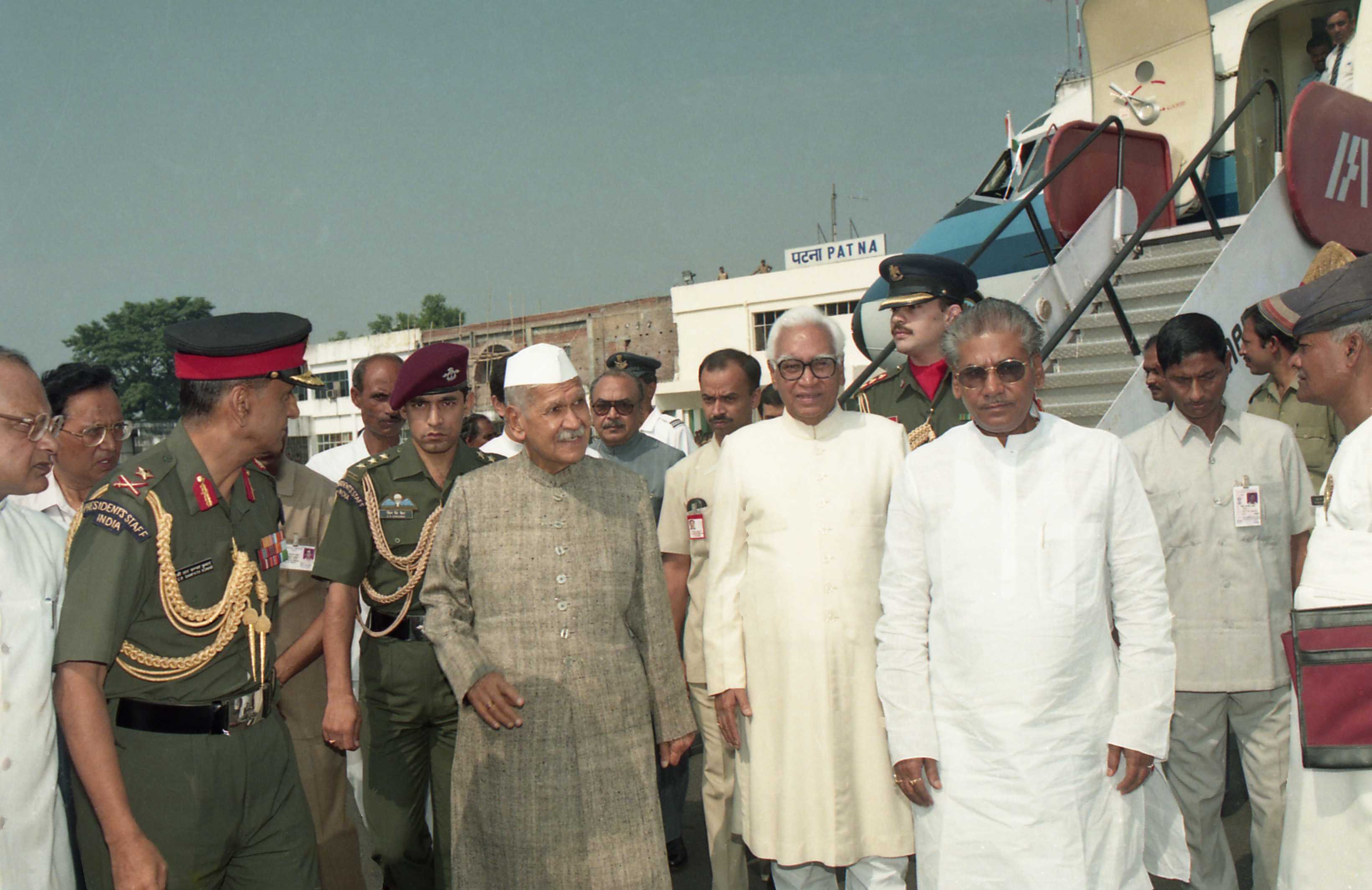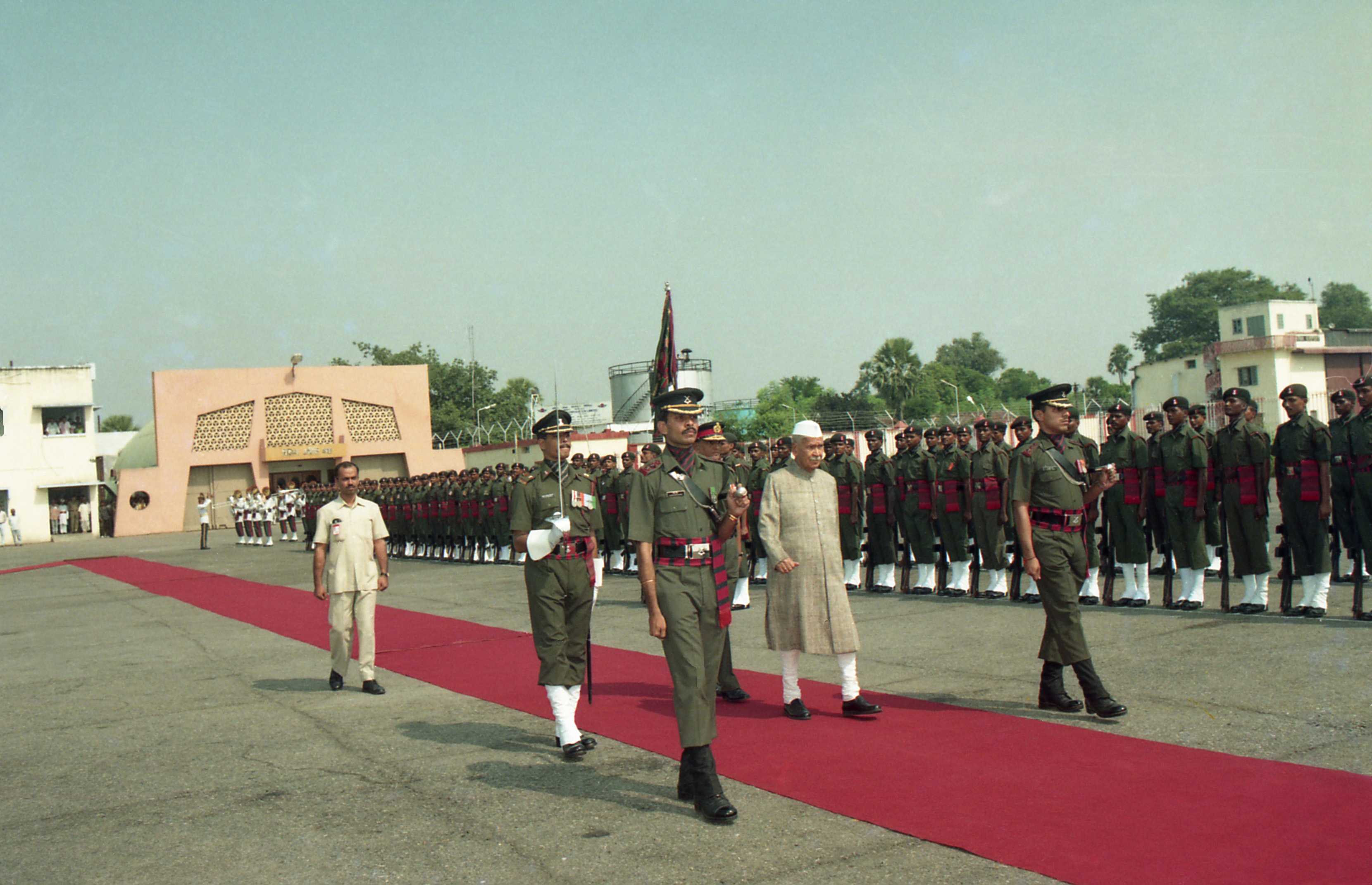 | Caption: | The President of India, Dr. Shankar Dayal Sharma inspecting Guard of Honour, after received by the Governor of Bihar, Shri A.R. Kidwai, at Patna airport, in Bihar on October 23, 1996. |